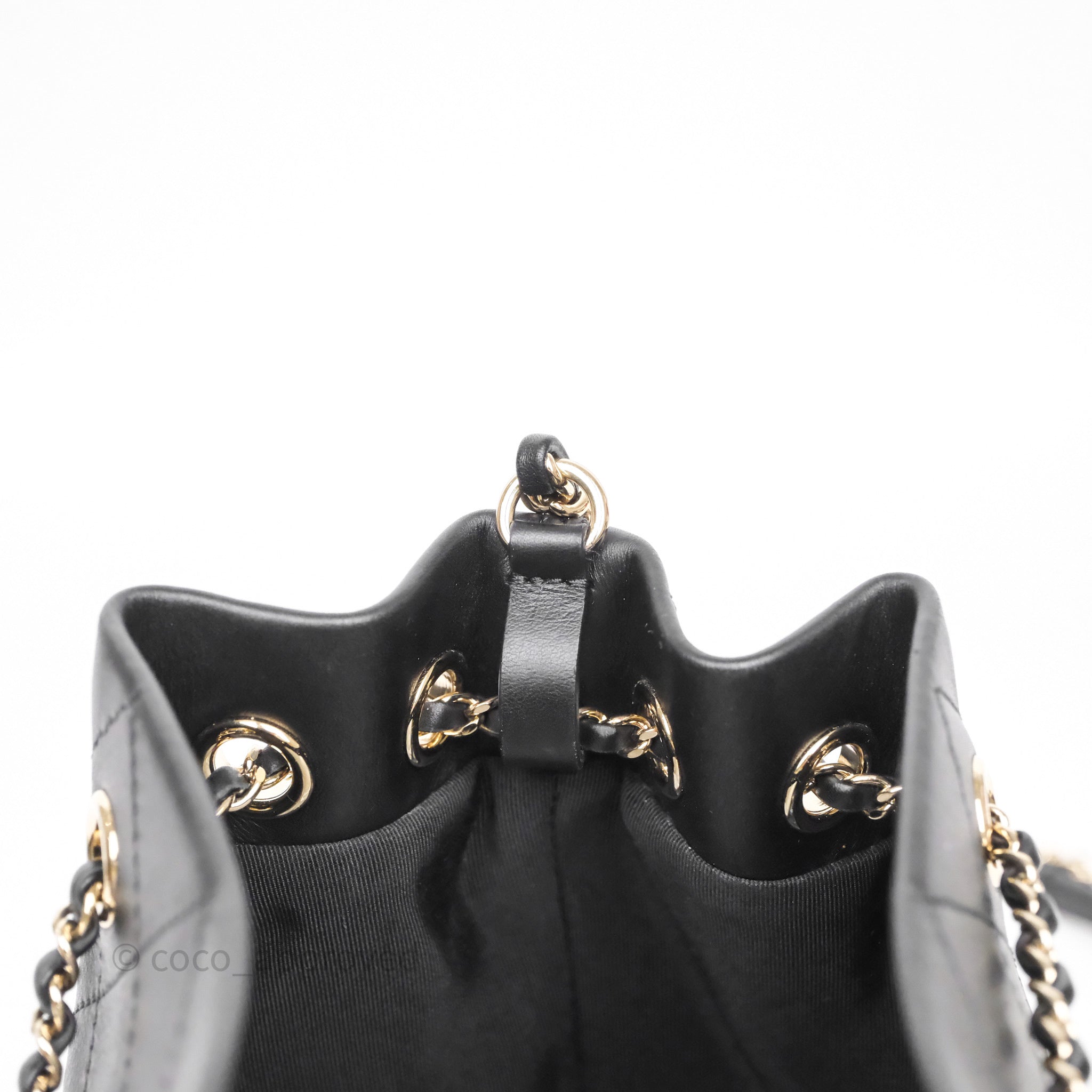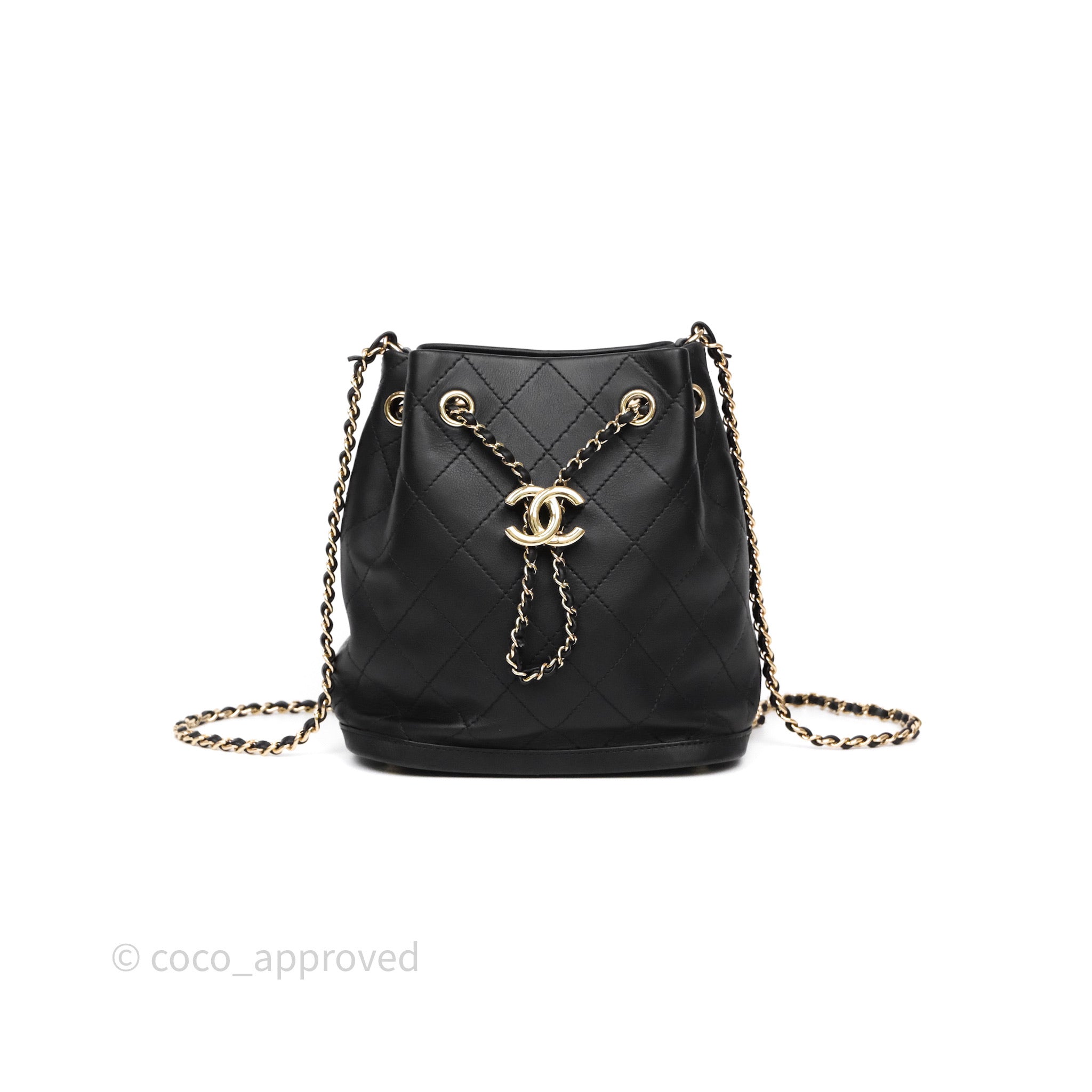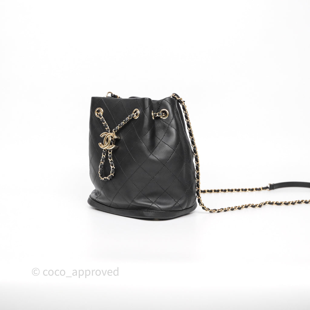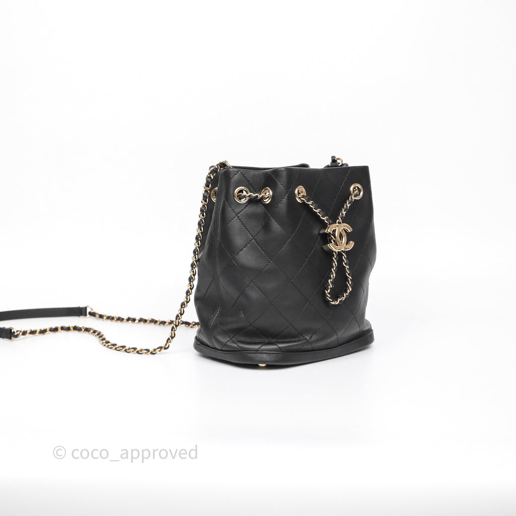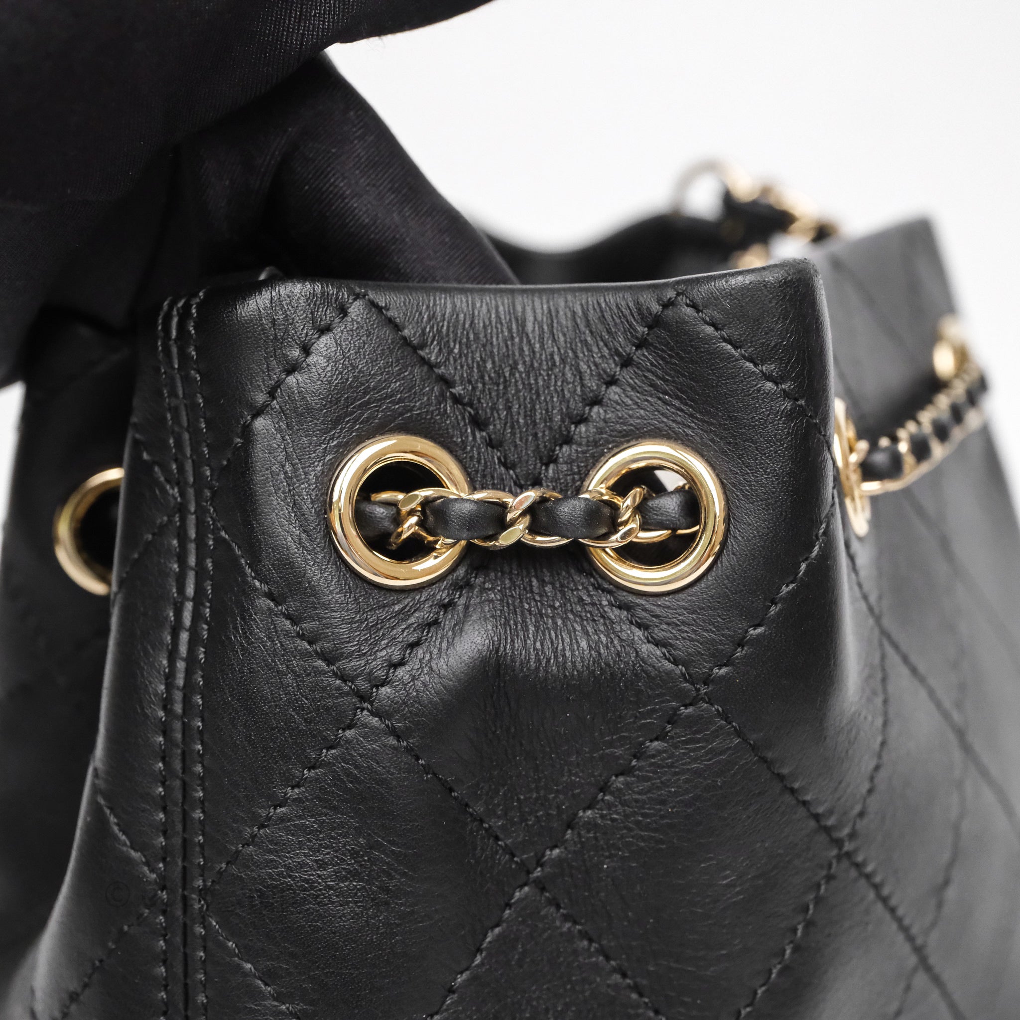 Chanel Quilted Drawstring Bucket Bag Black Calfskin Gold Hardware