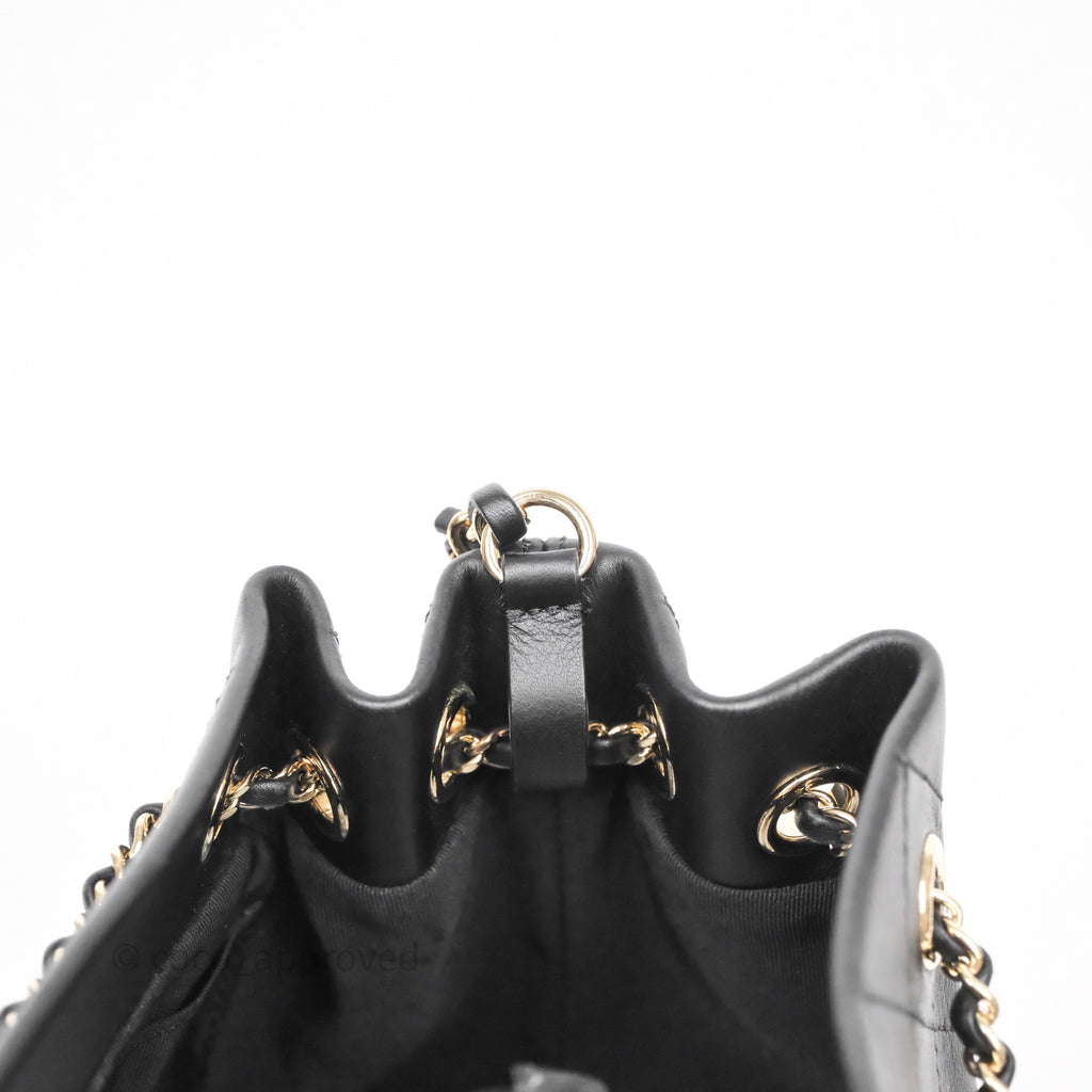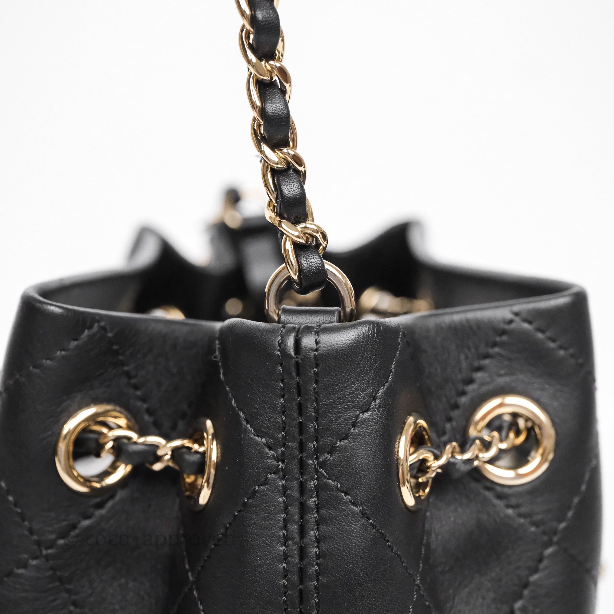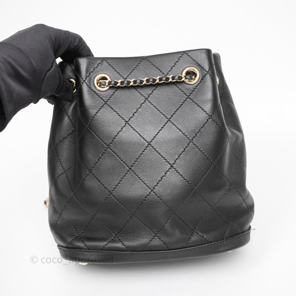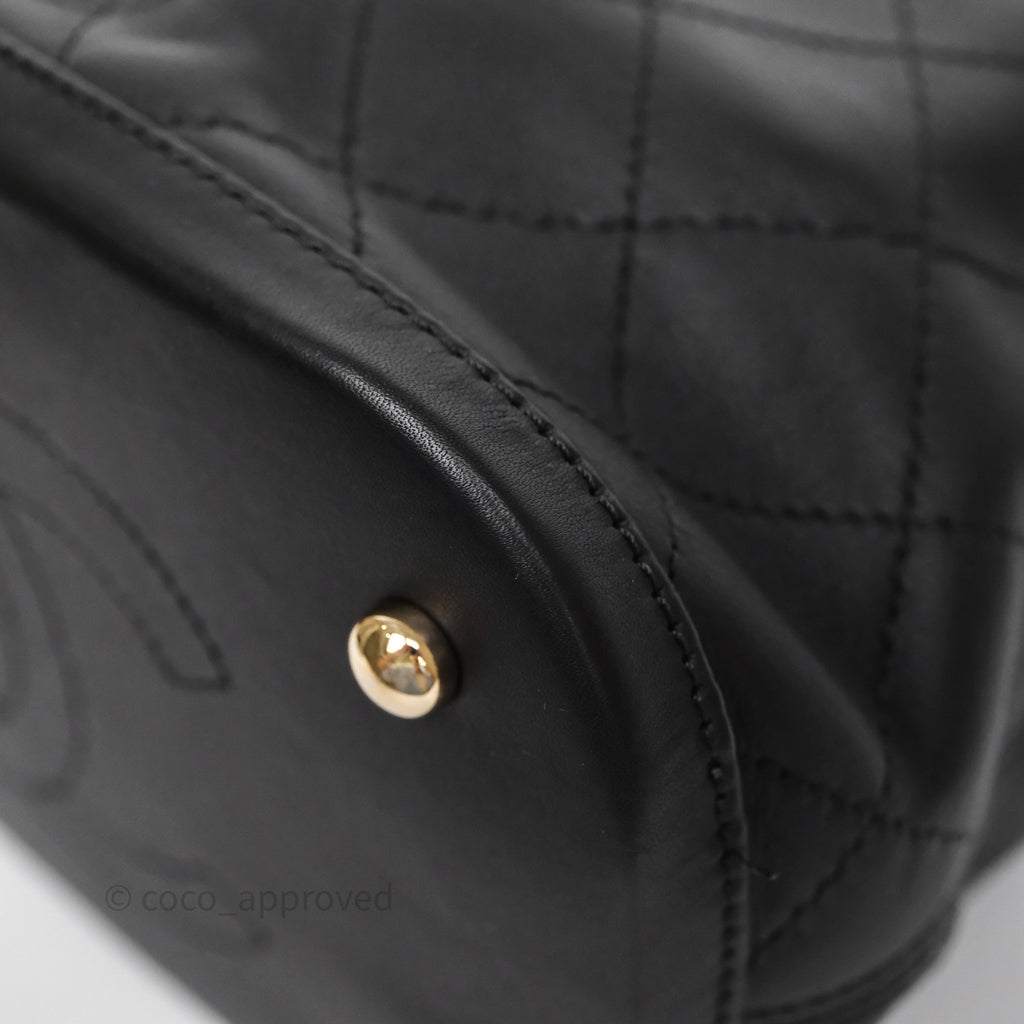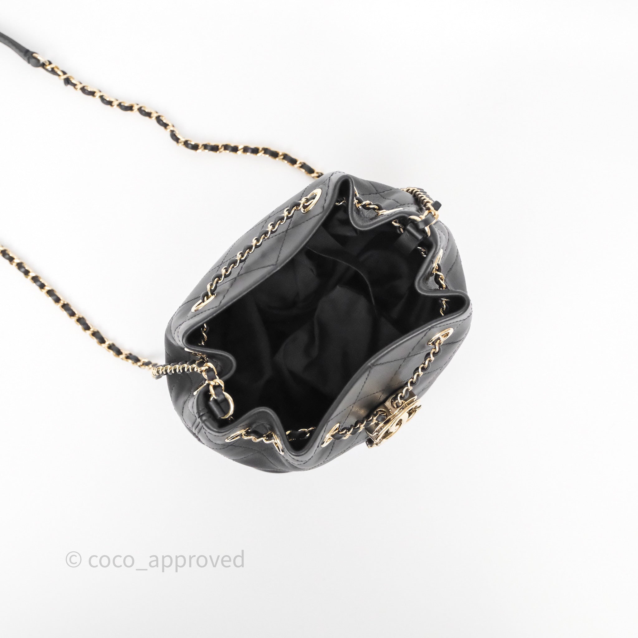 Chanel Quilted Drawstring Bucket Bag Black Calfskin Gold Hardware