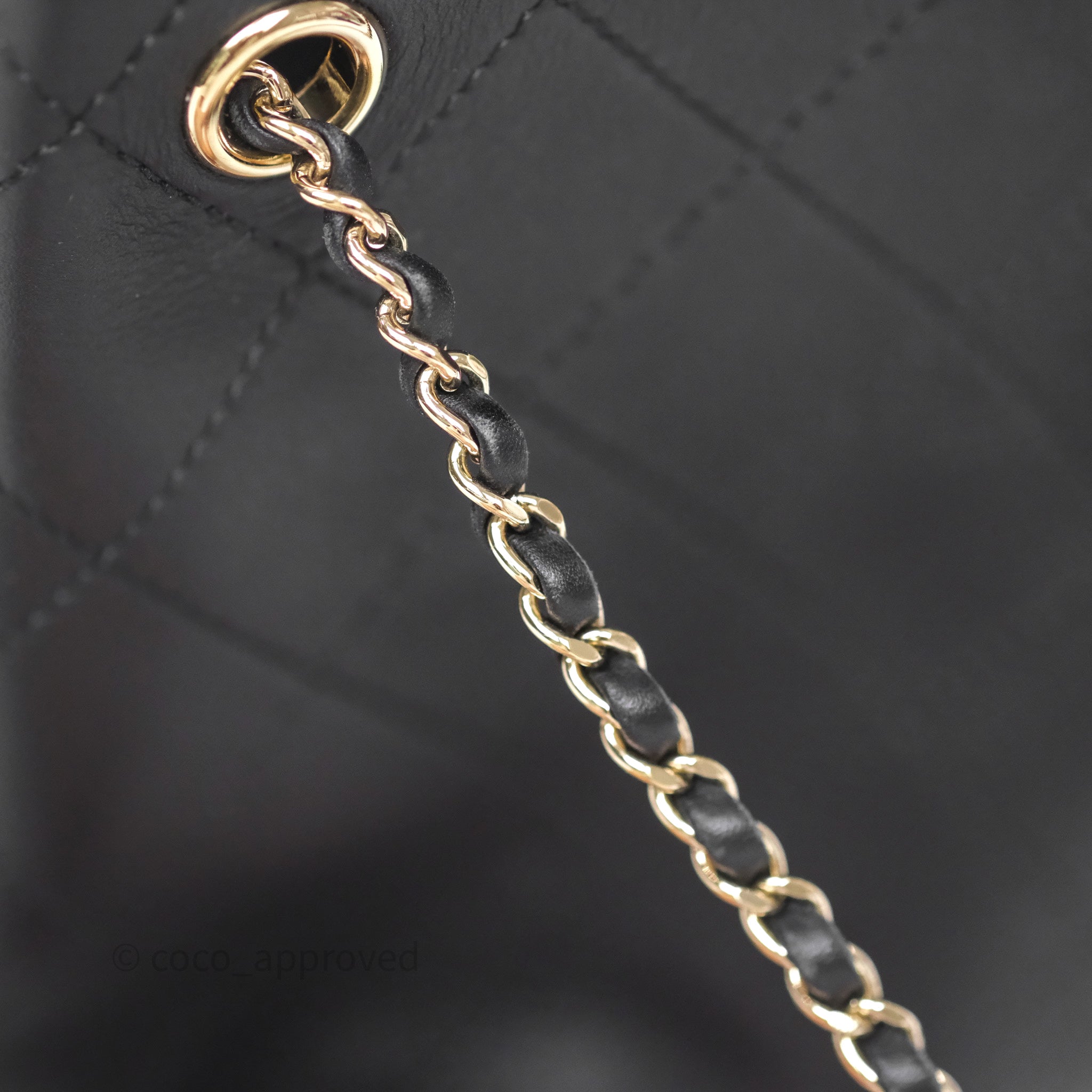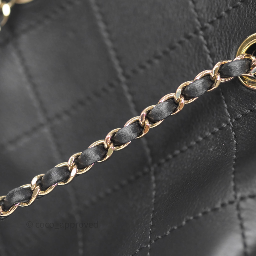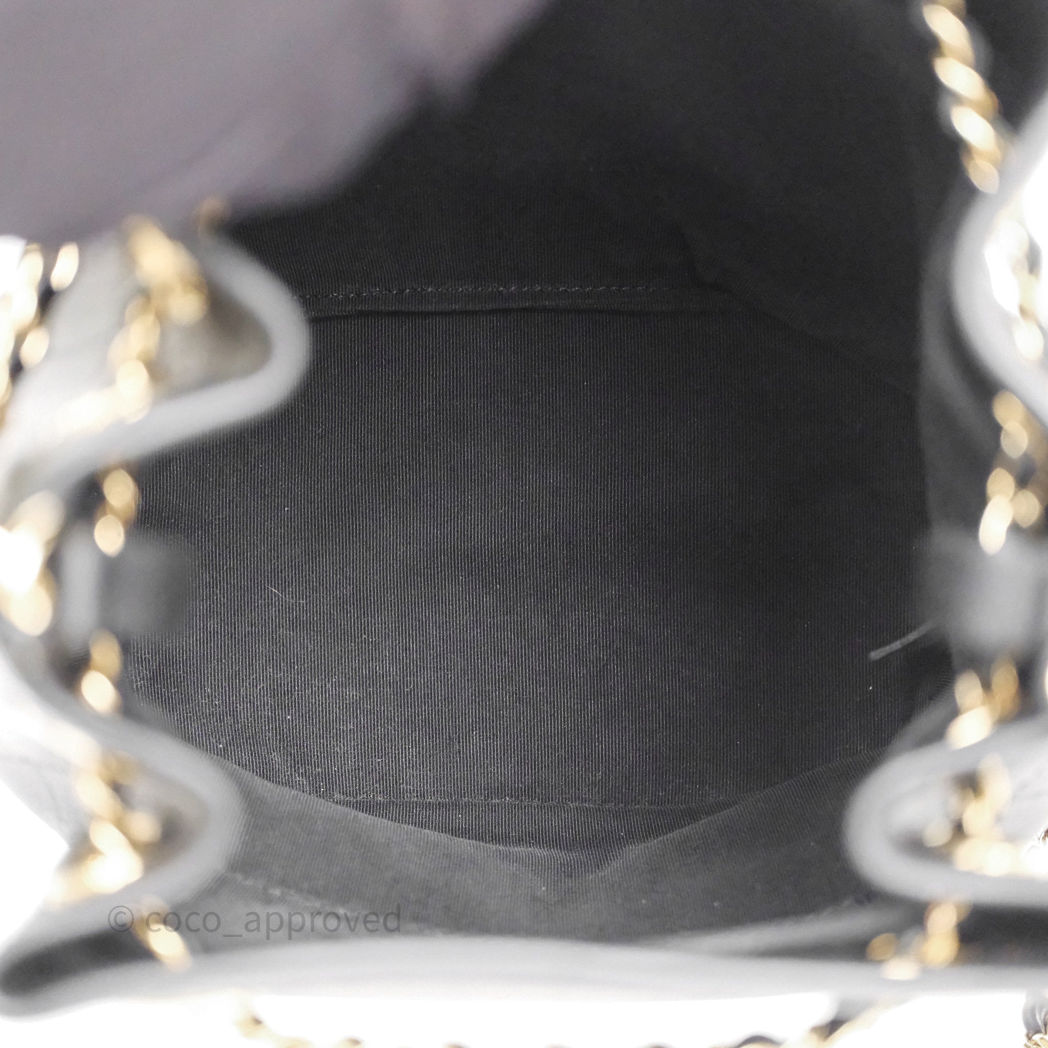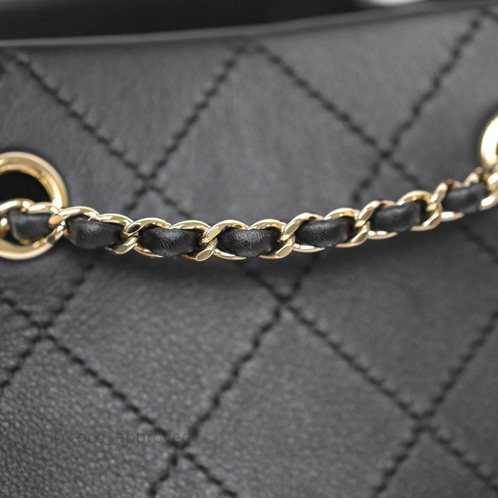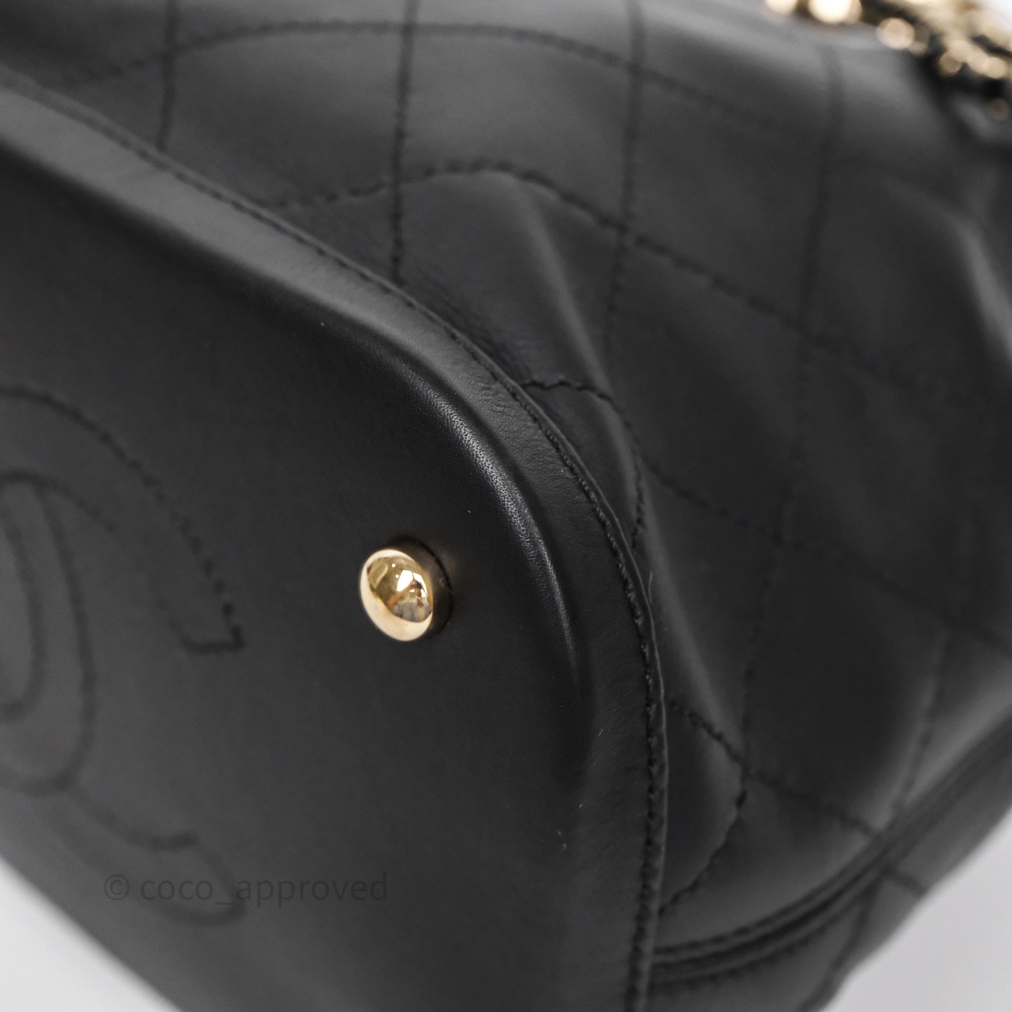 Chanel Quilted Drawstring Bucket Bag Black Calfskin Gold Hardware