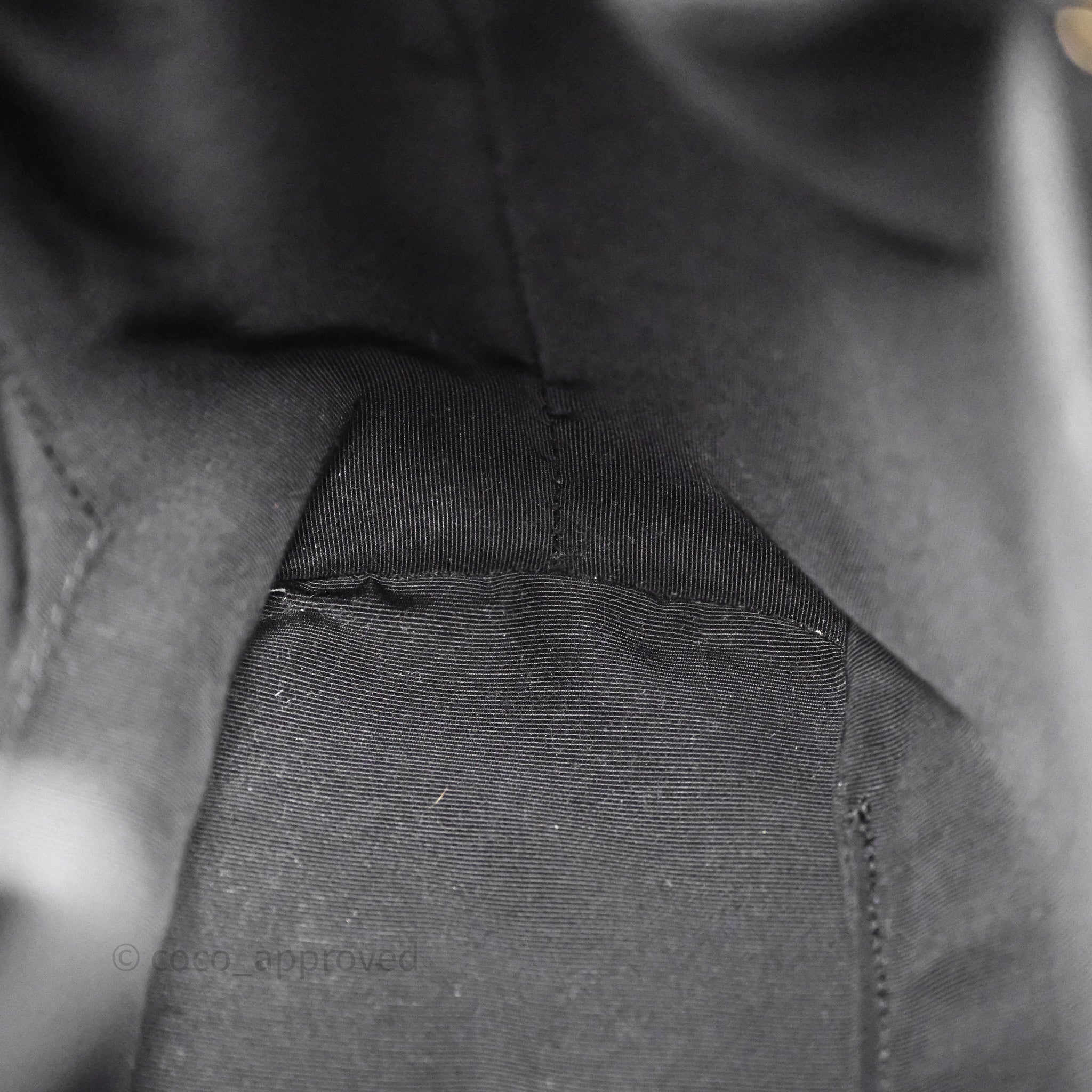 9.3/10 excellent condition. Rubbings on drawstring. Minor fading on bottom studs. Slight mark on interior. Hairlines on bottom and hardware.