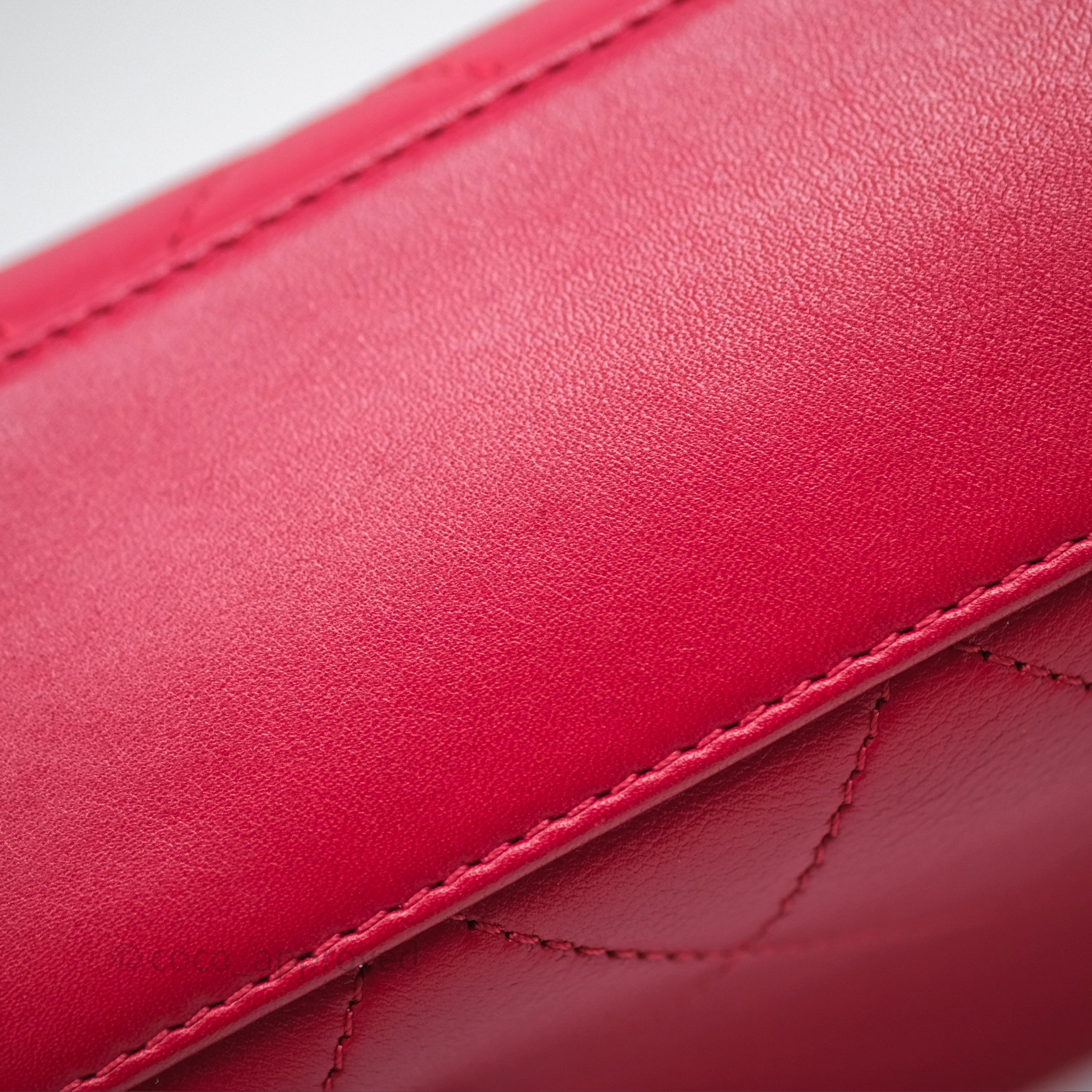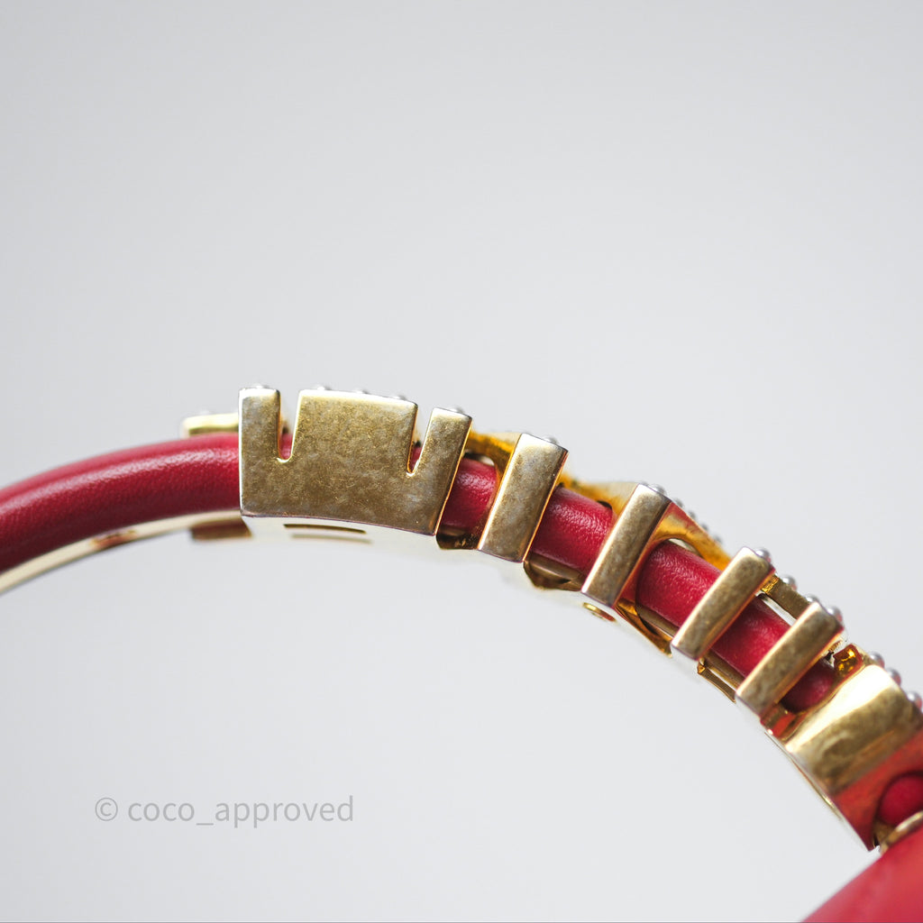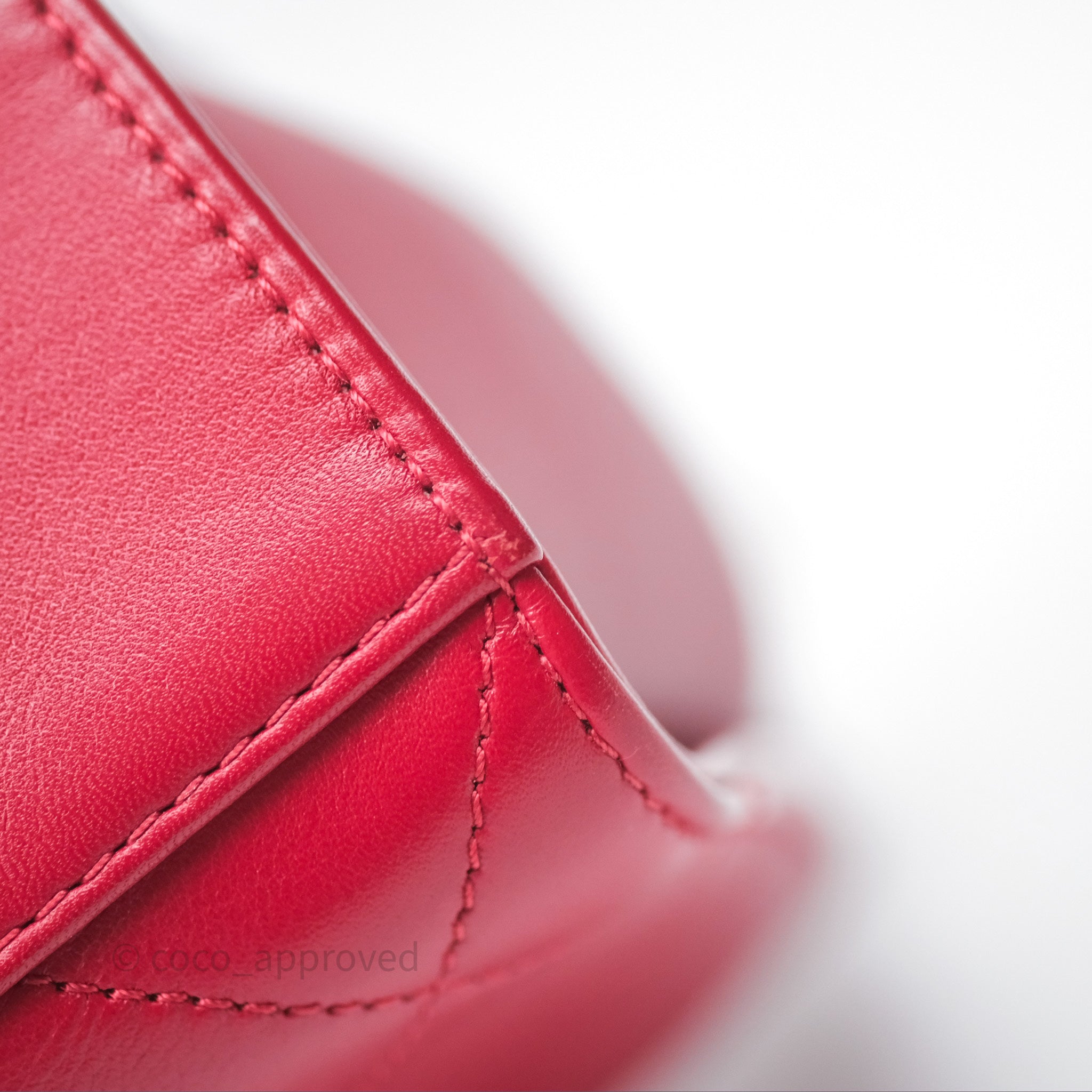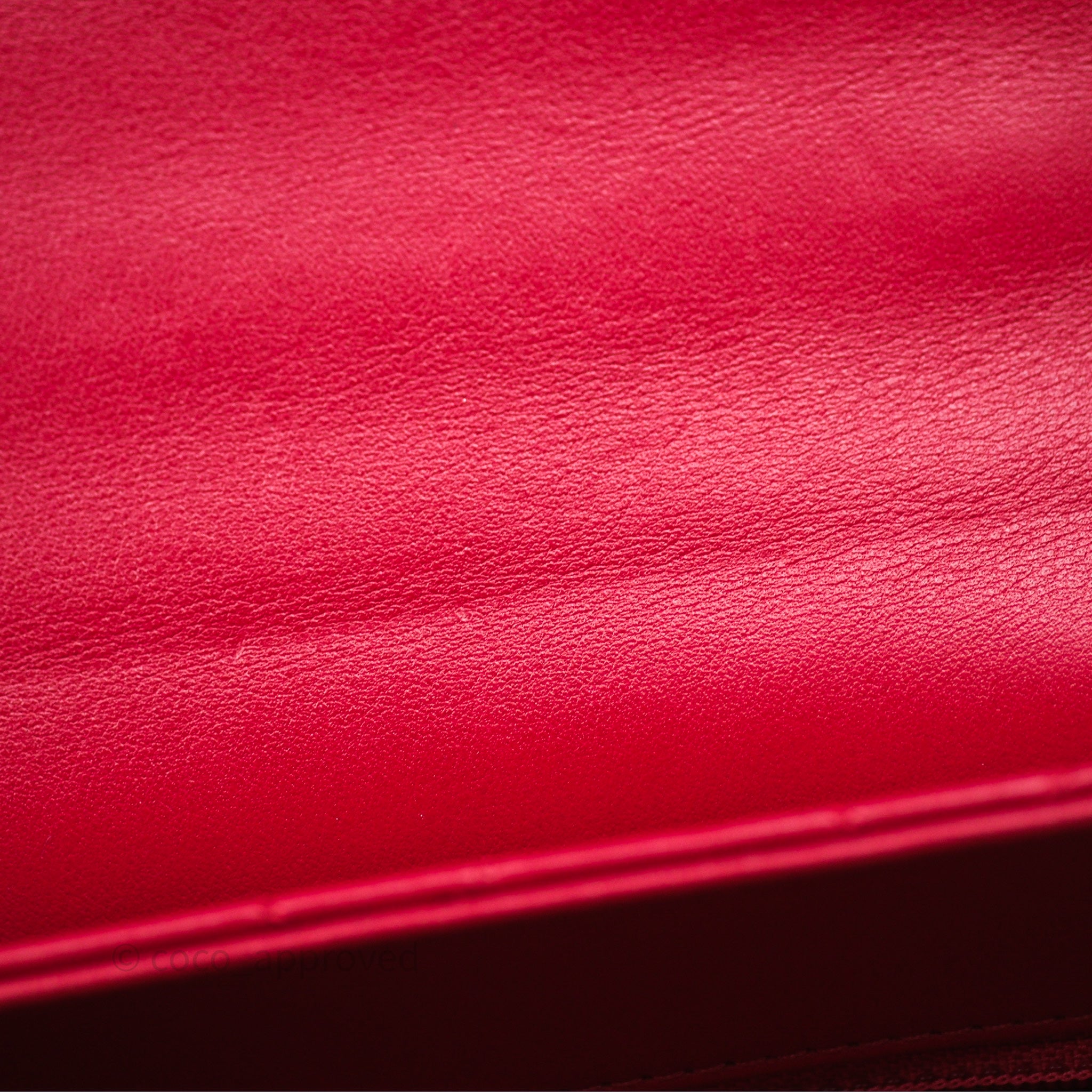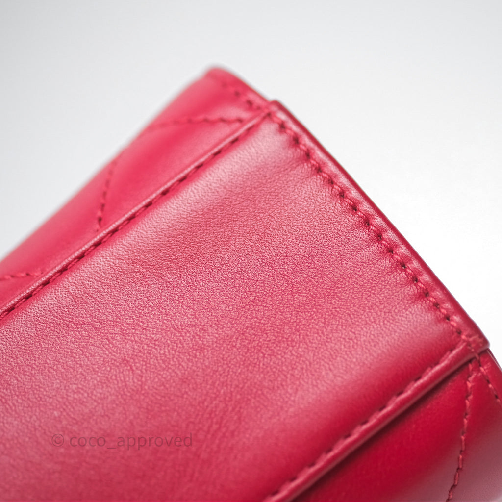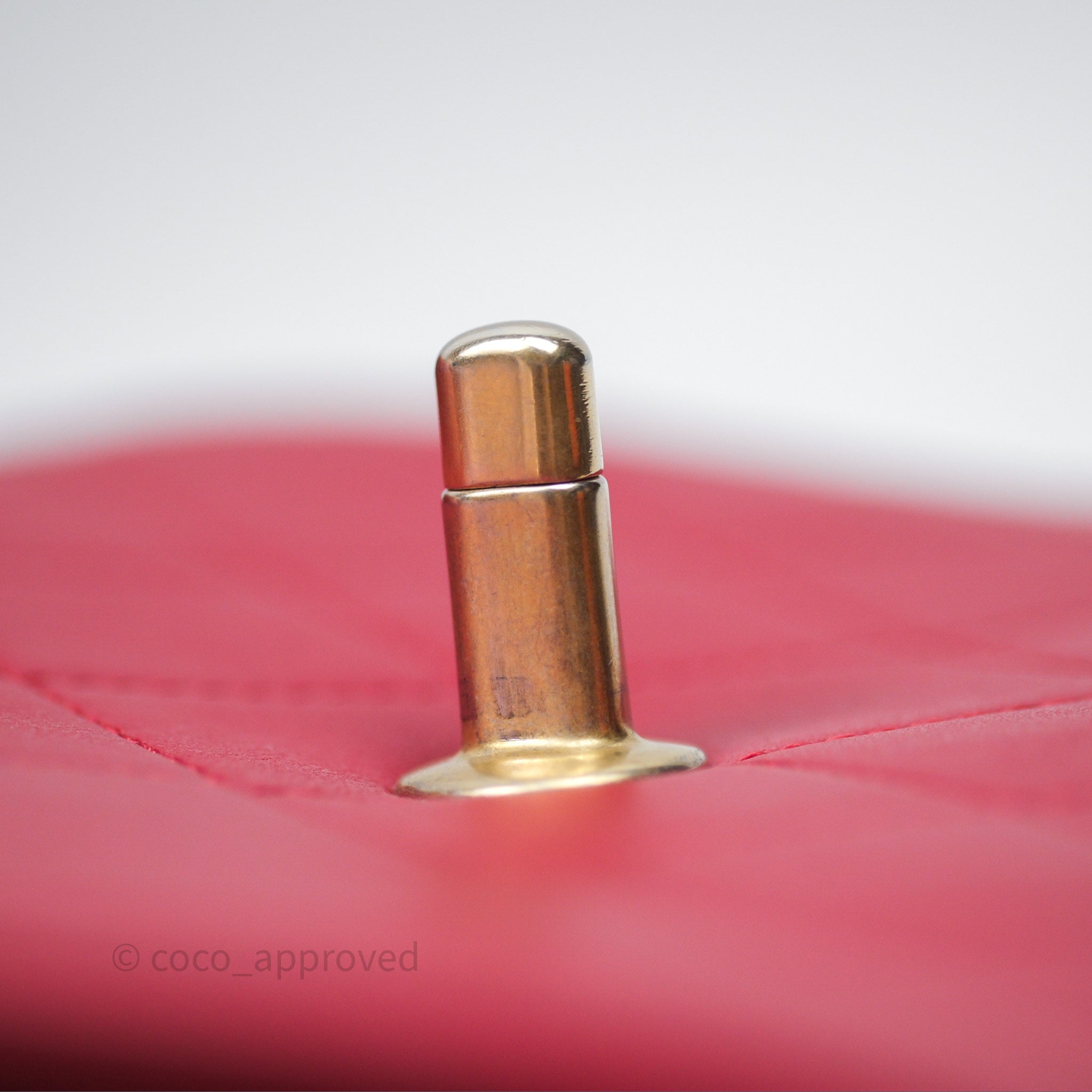 Chanel Quilted Flap Bag with Pearl Logo Top Handle Red Lambskin Aged Gold Hardware is now sold. Please subscribe for any updates if similar item becomes available.