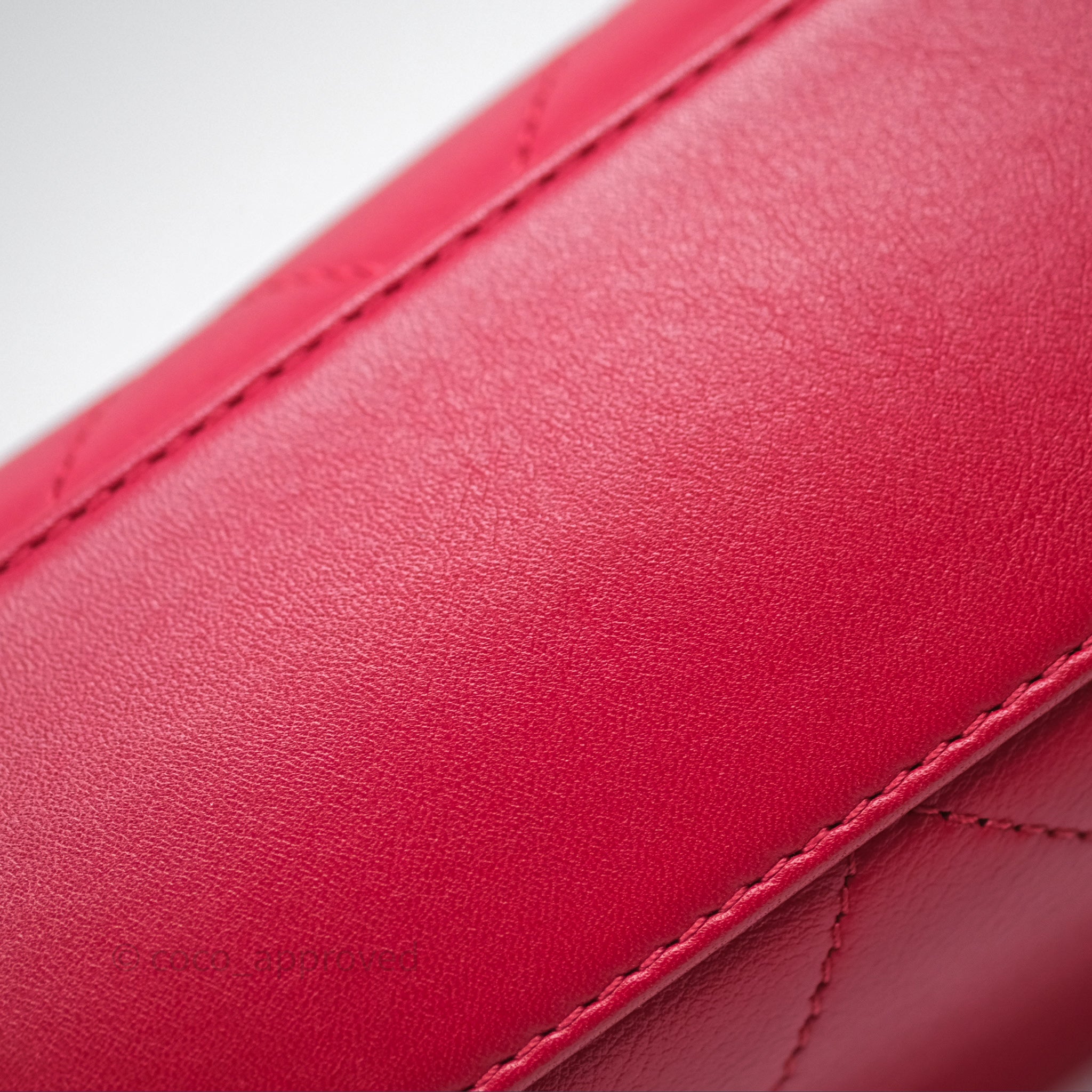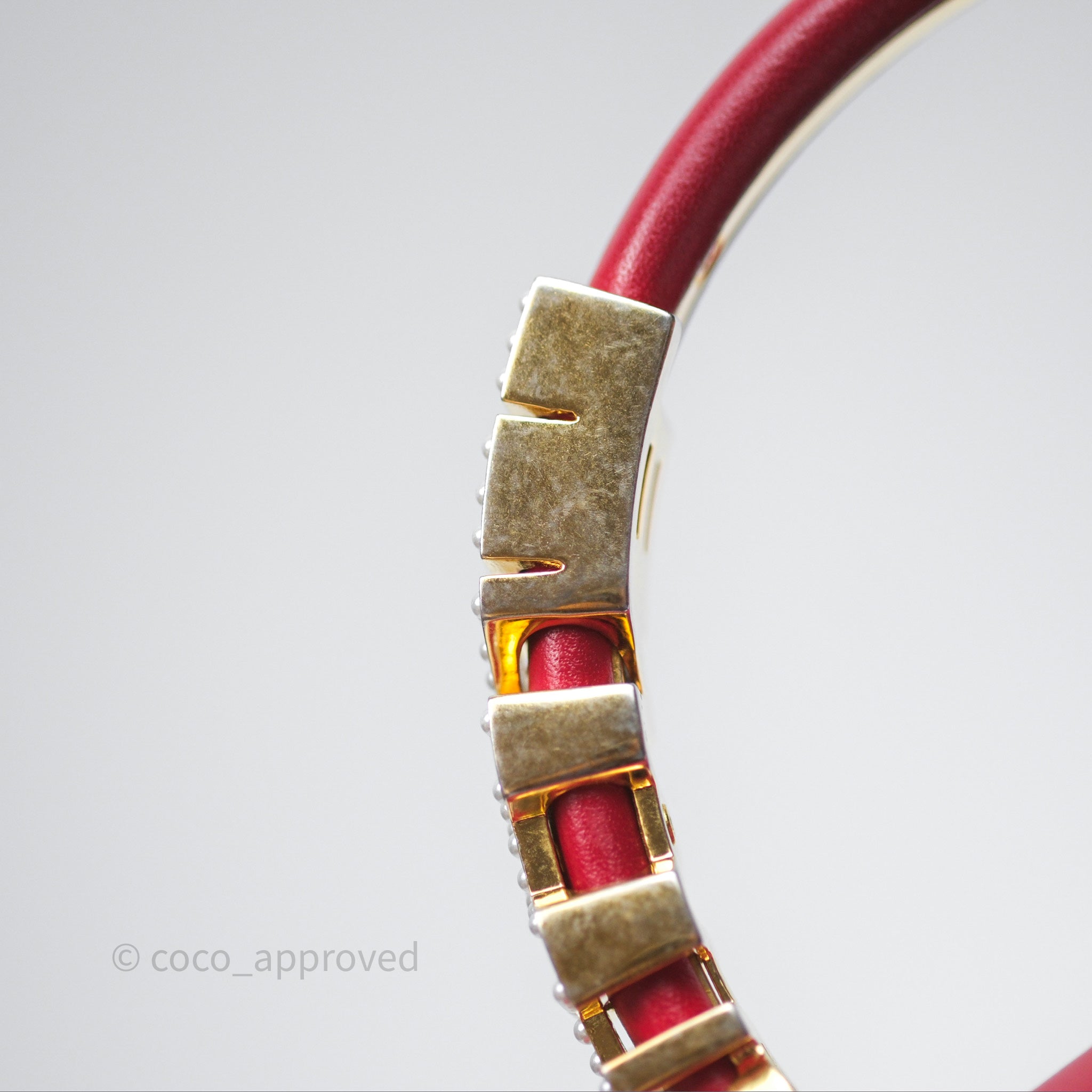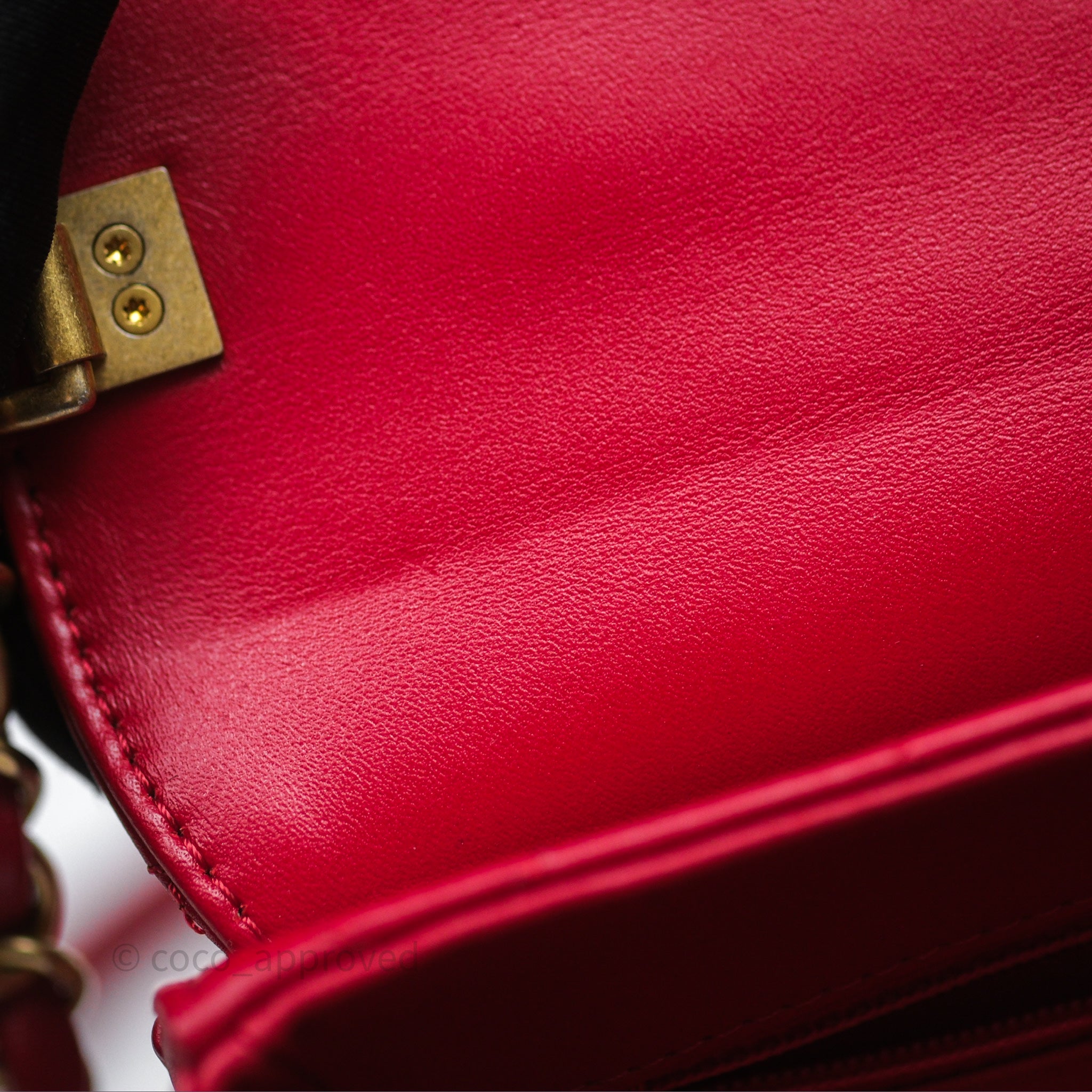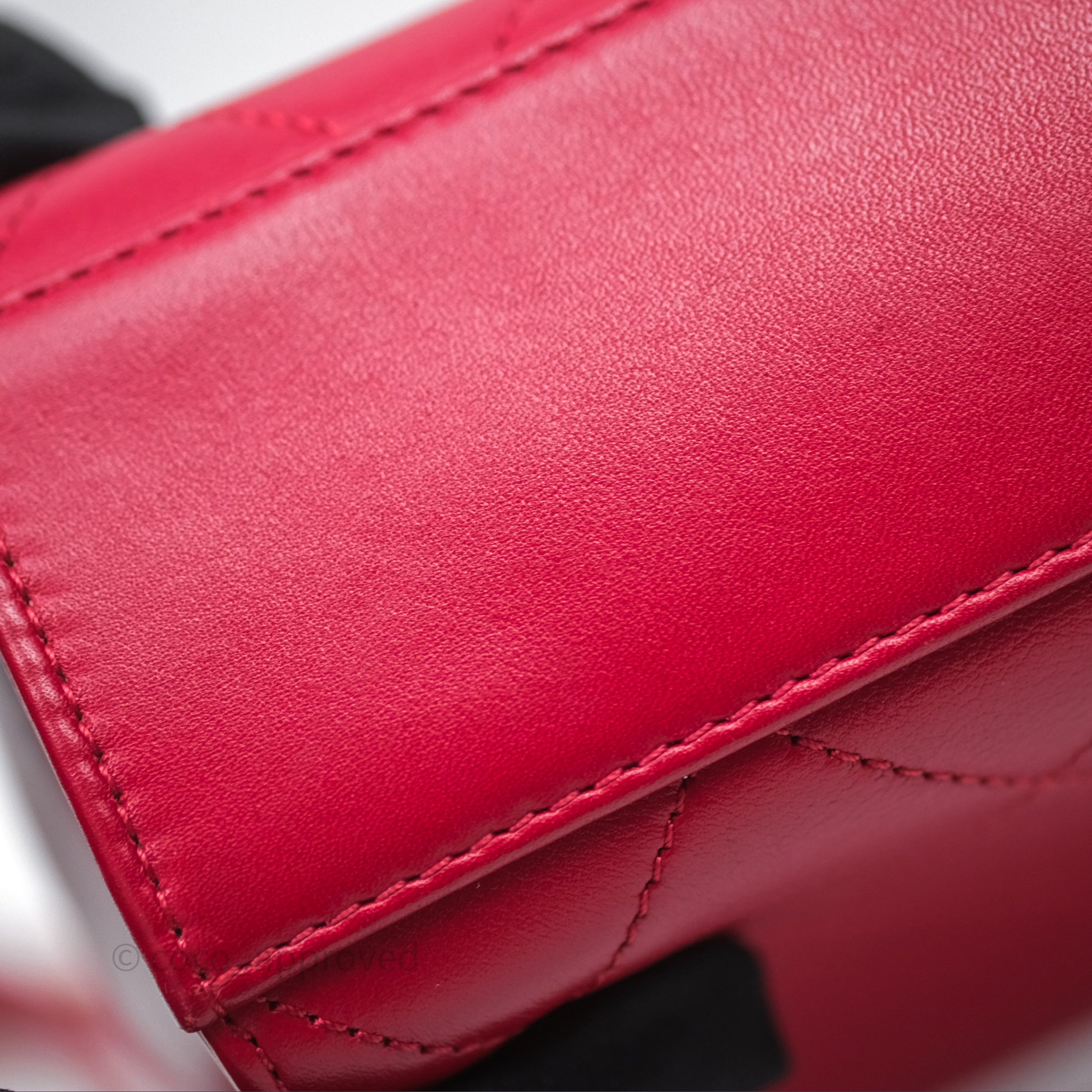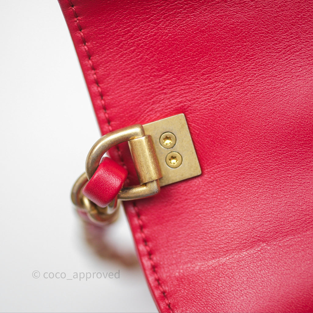 Chanel Quilted Flap Bag with Pearl Logo Top Handle Red Lambskin Aged Gold Hardware is now sold. Please subscribe for any updates if similar item becomes available.