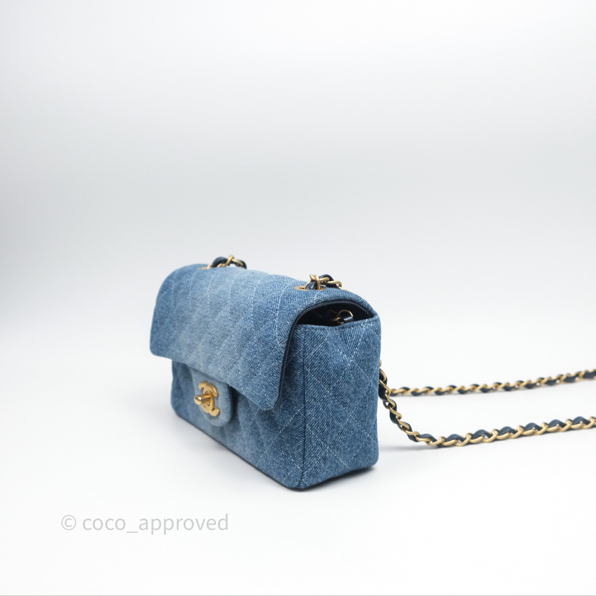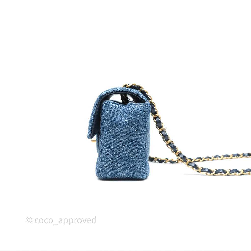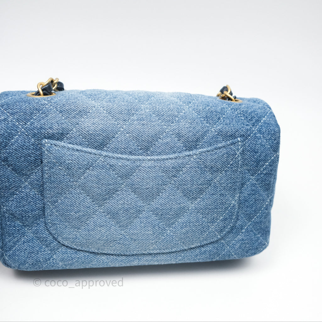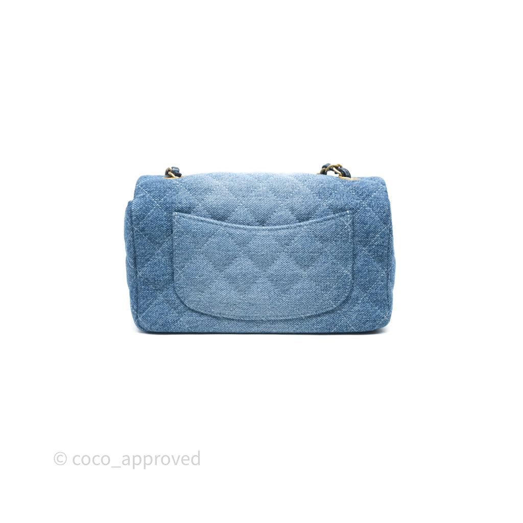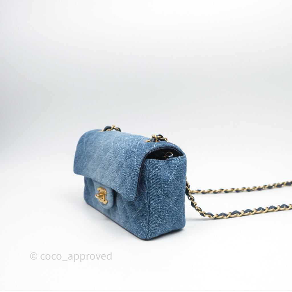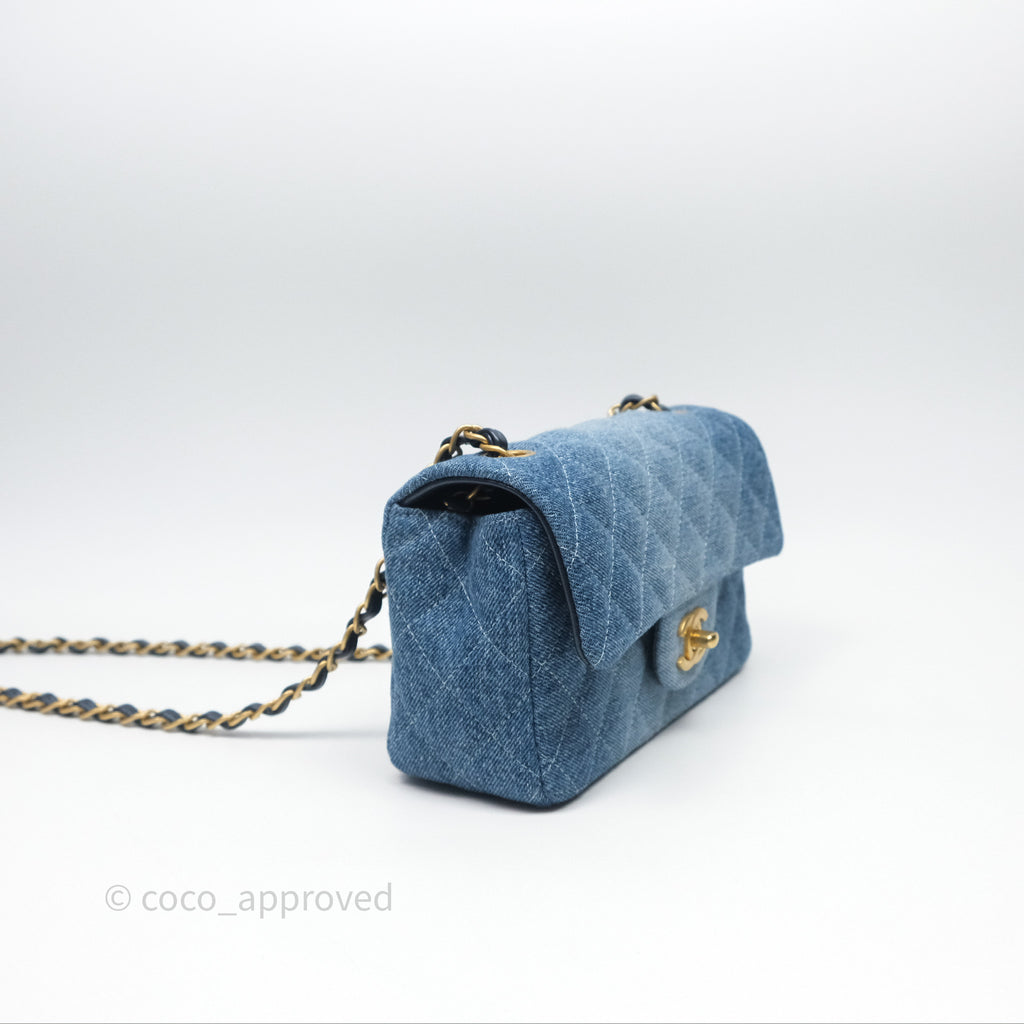 Chanel Quilted Mini Rectangular Flap Denim Aged Gold Hardware