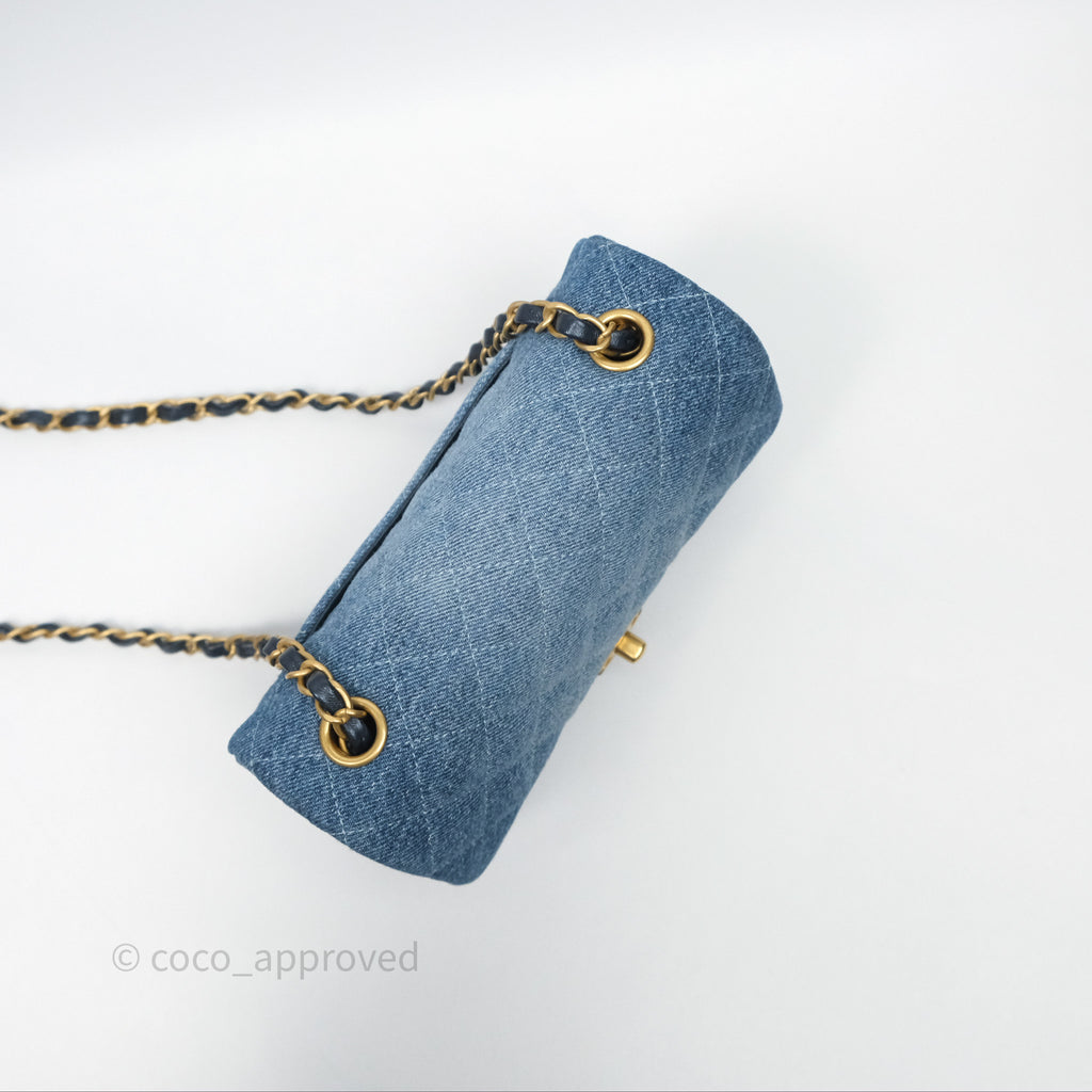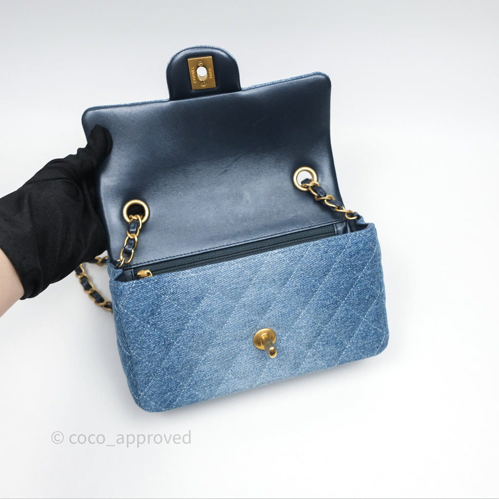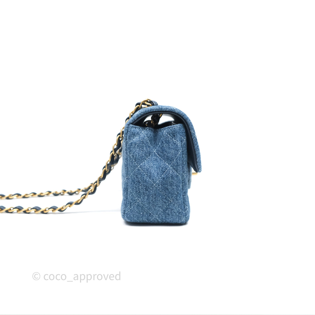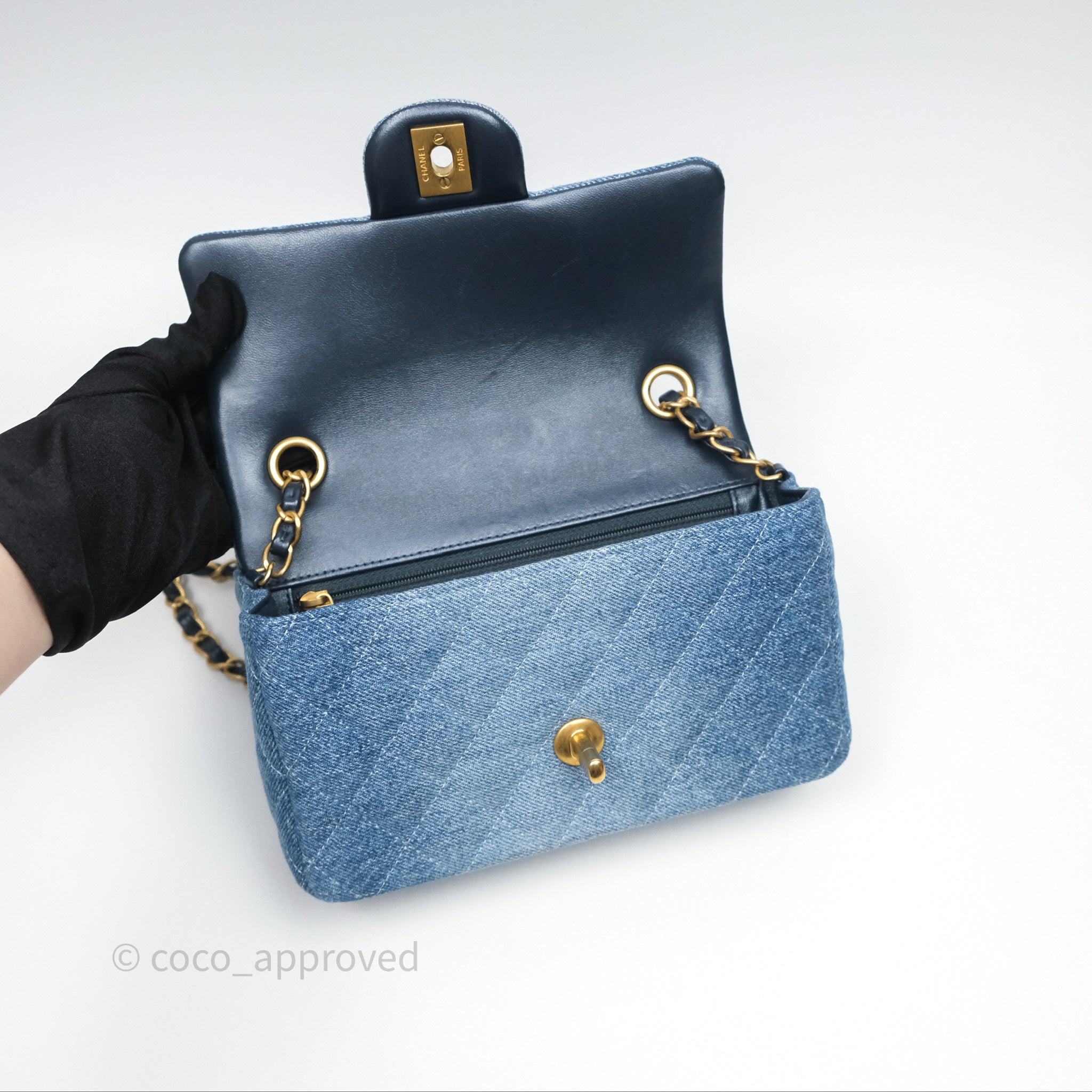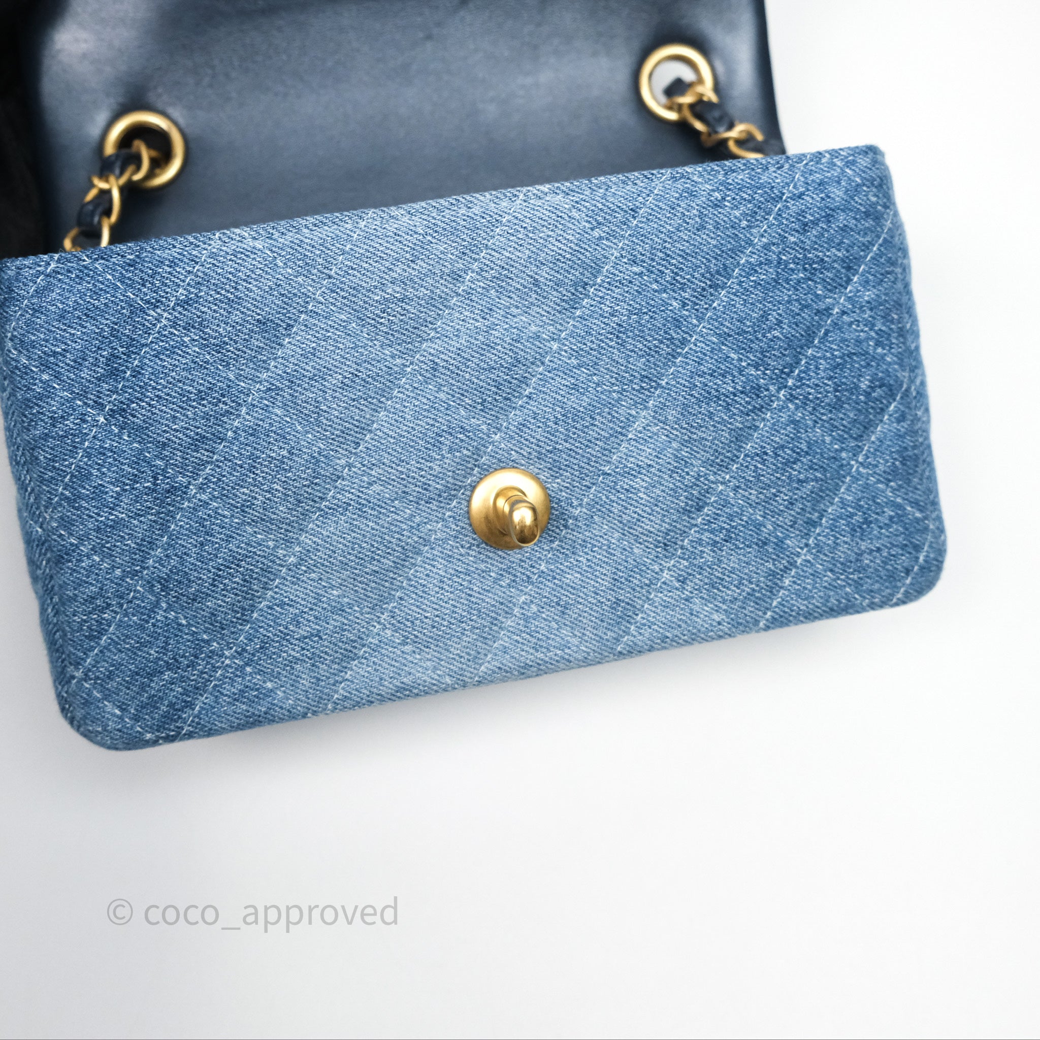 Chanel Quilted Mini Rectangular Flap Denim Aged Gold Hardware