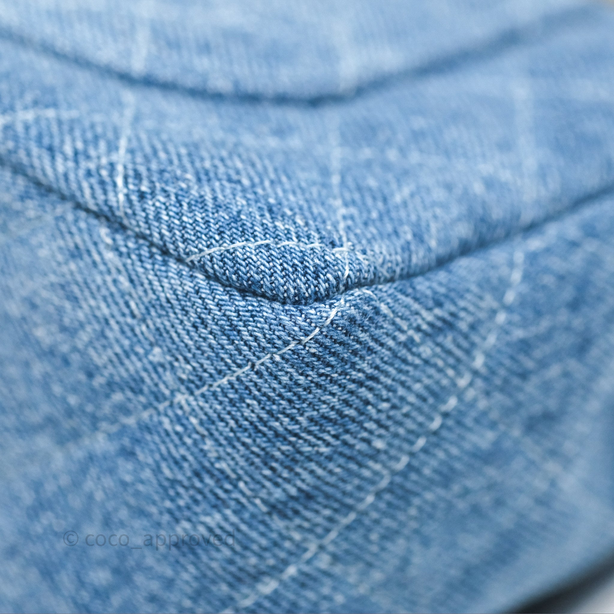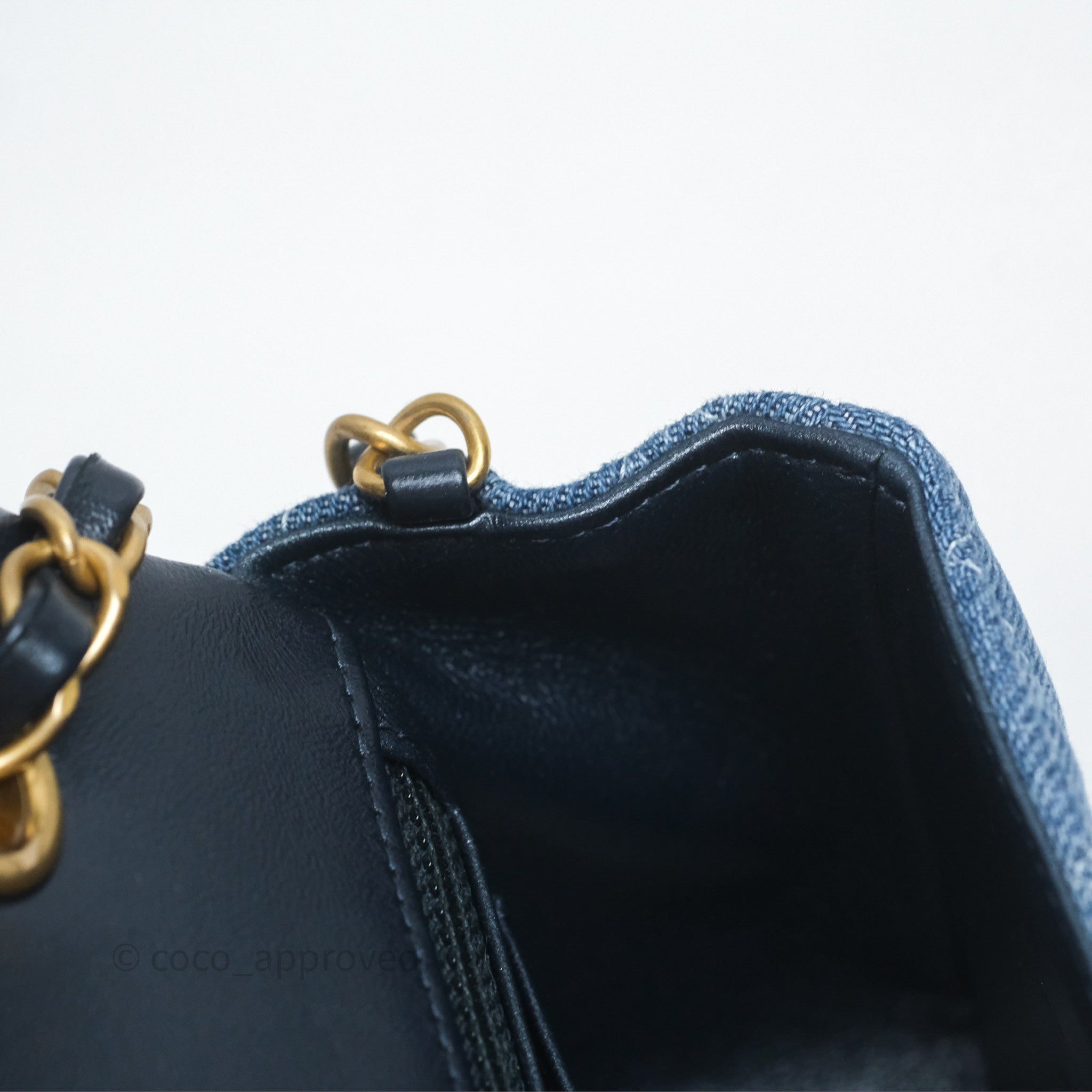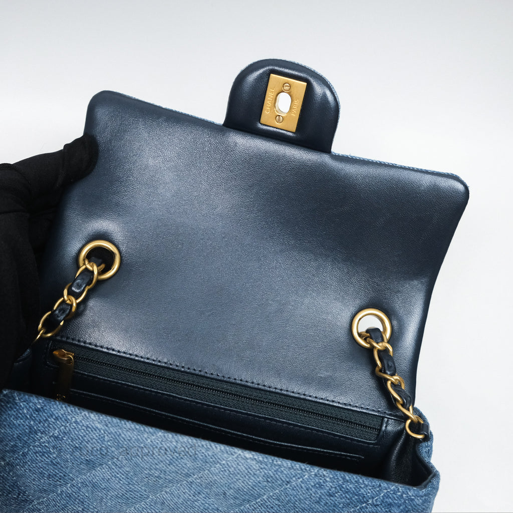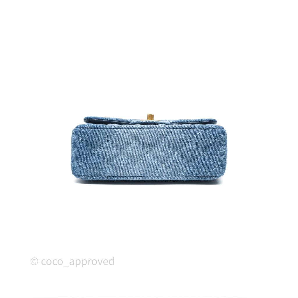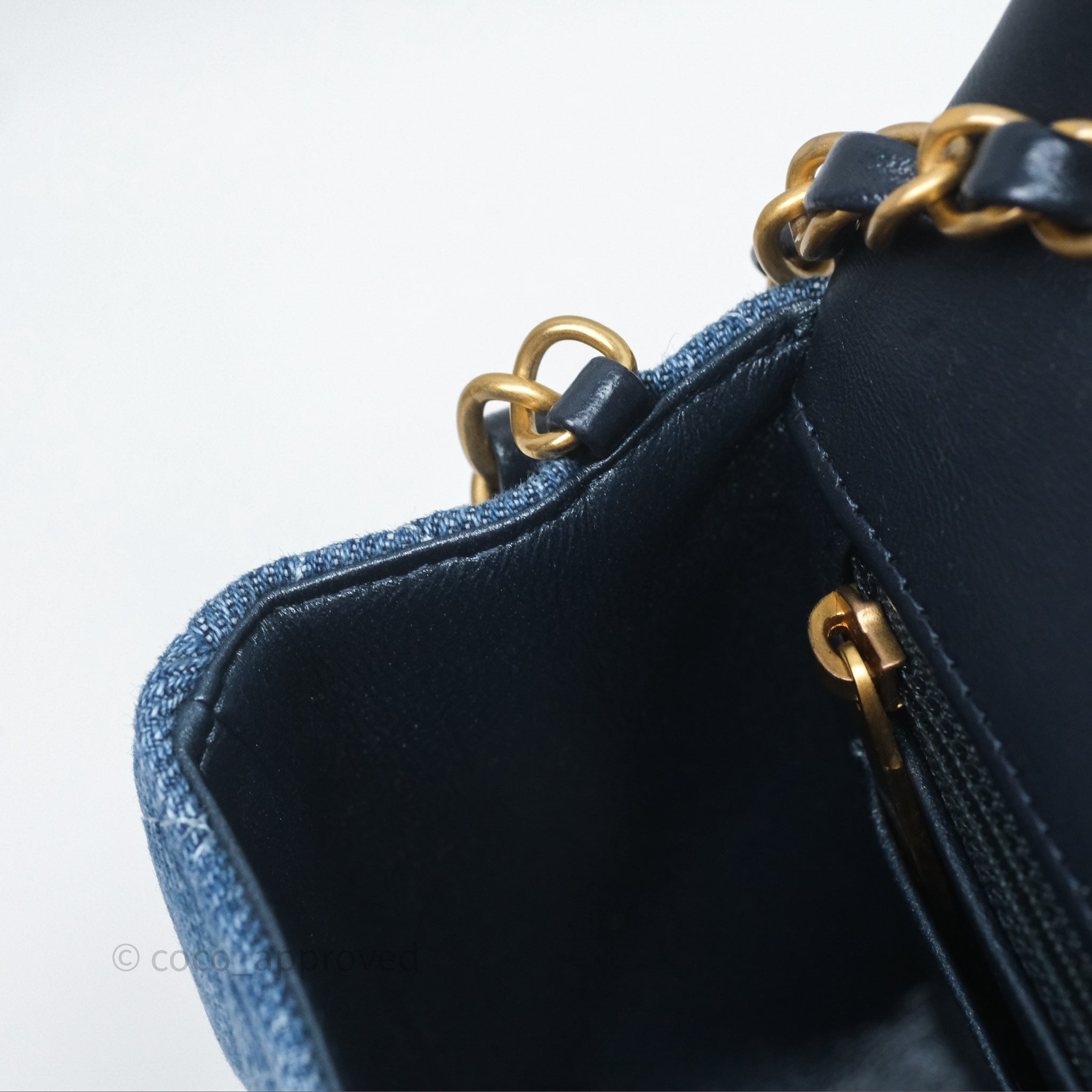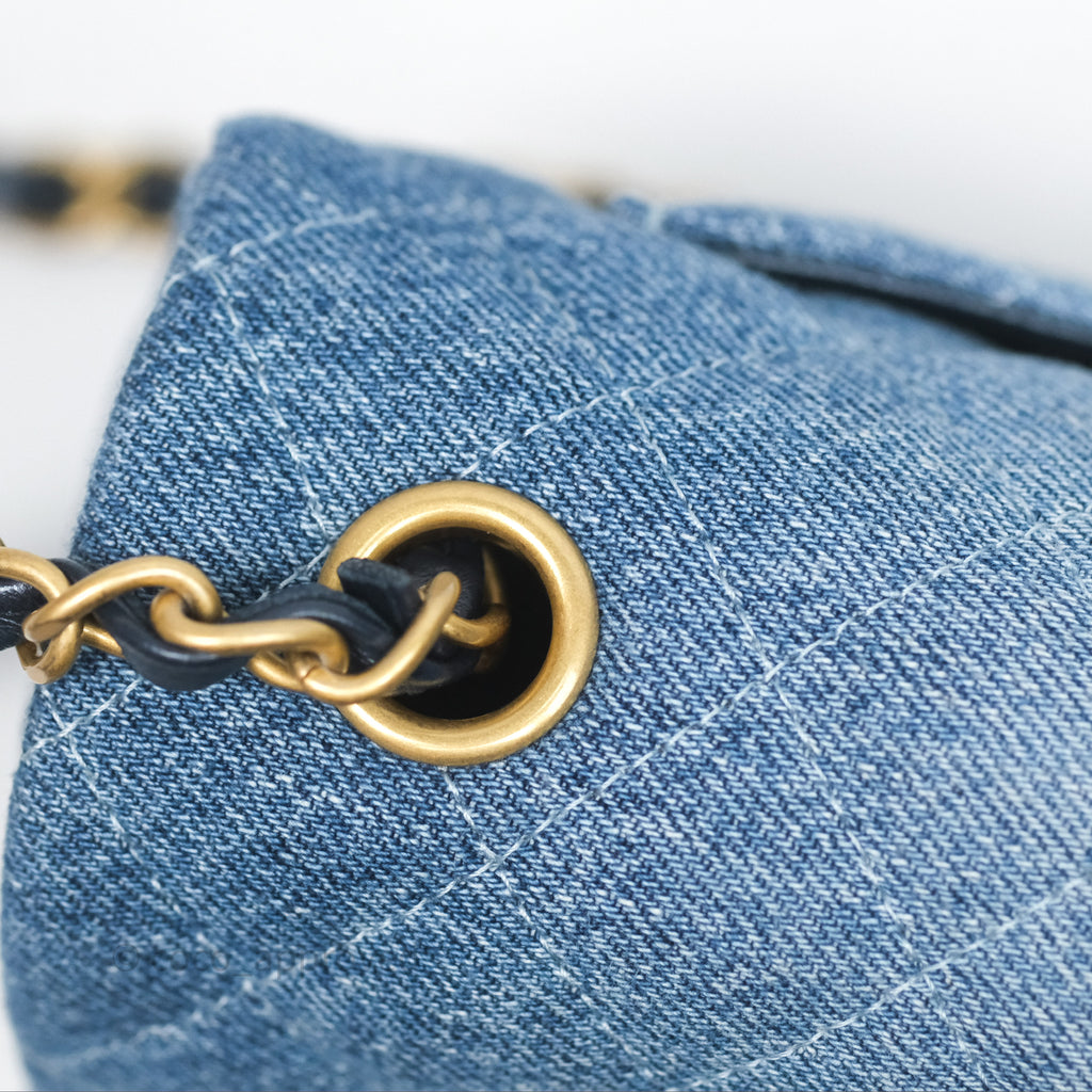 Chanel Quilted Mini Rectangular Flap Denim Aged Gold Hardware