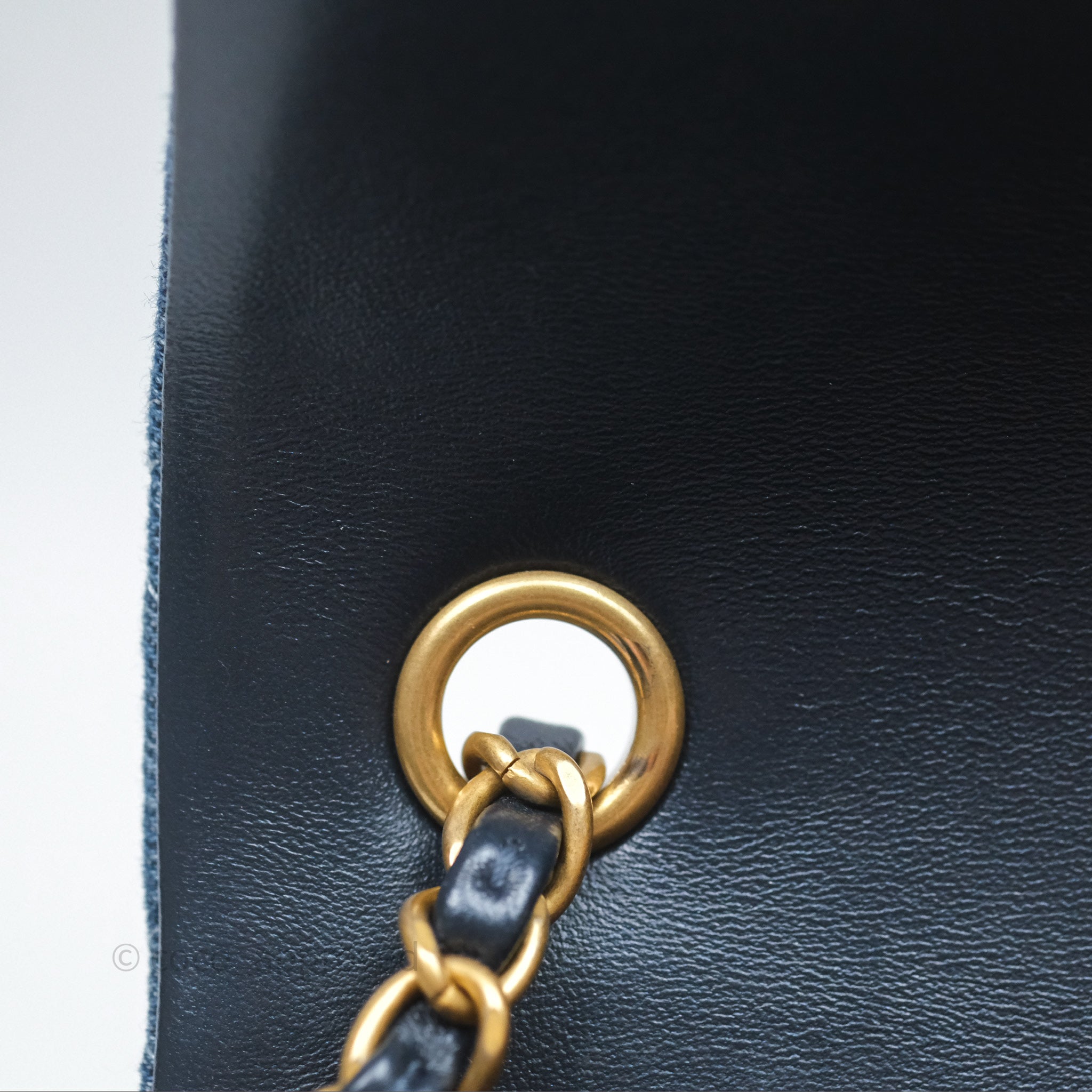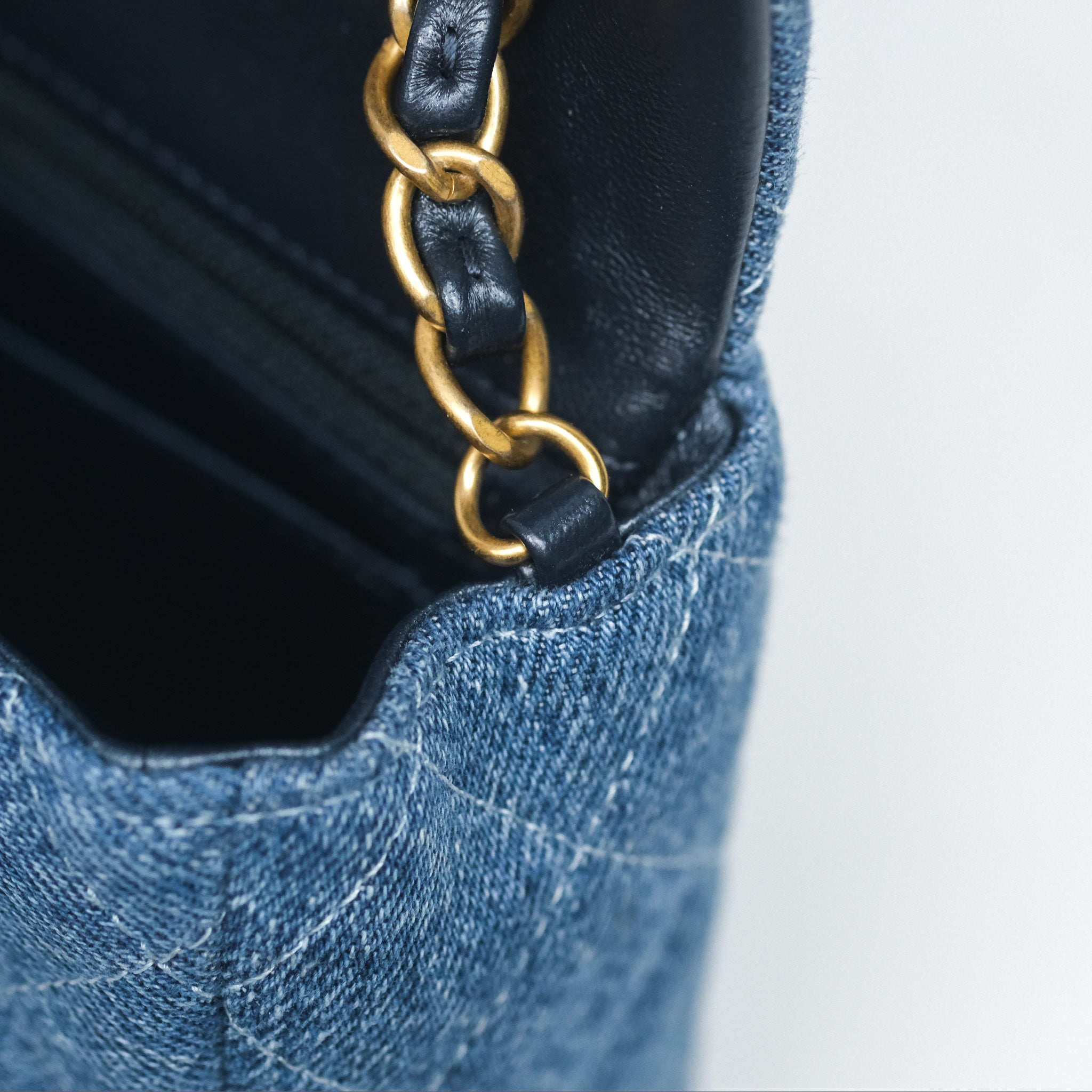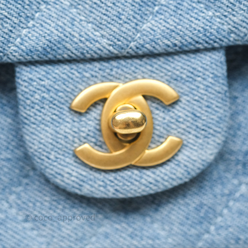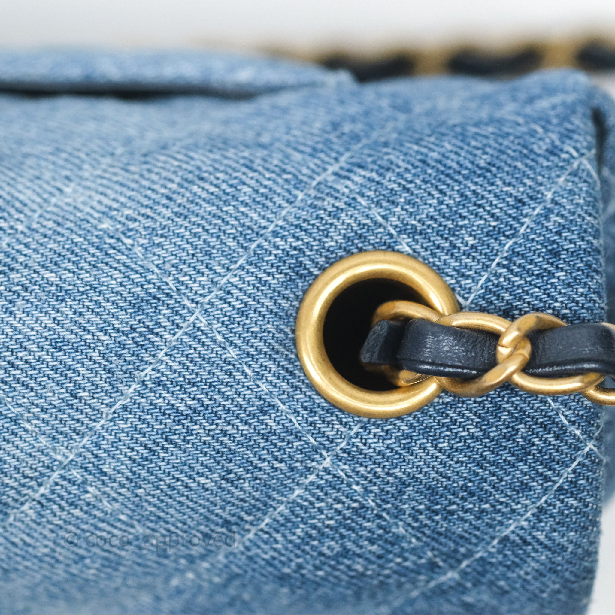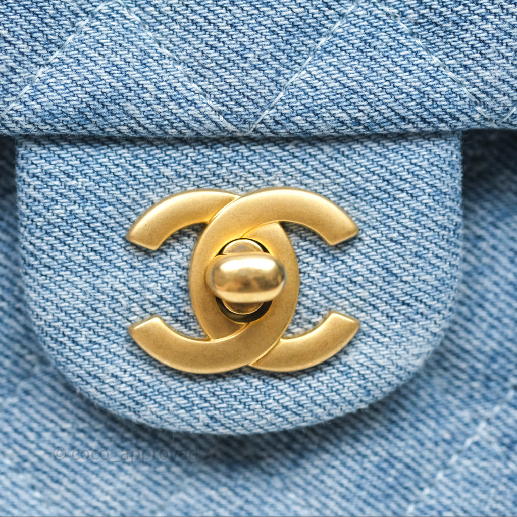 Chanel Quilted Mini Rectangular Flap Denim Aged Gold Hardware