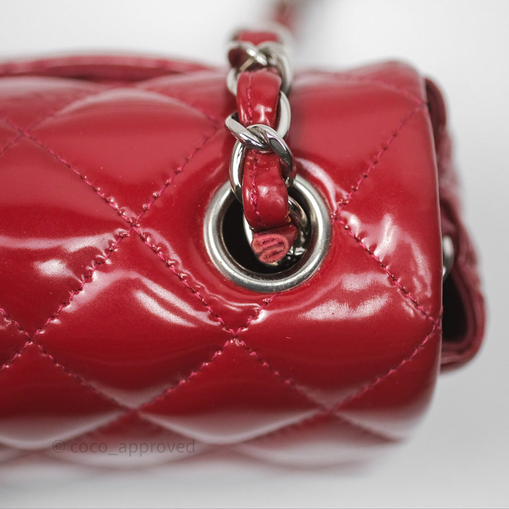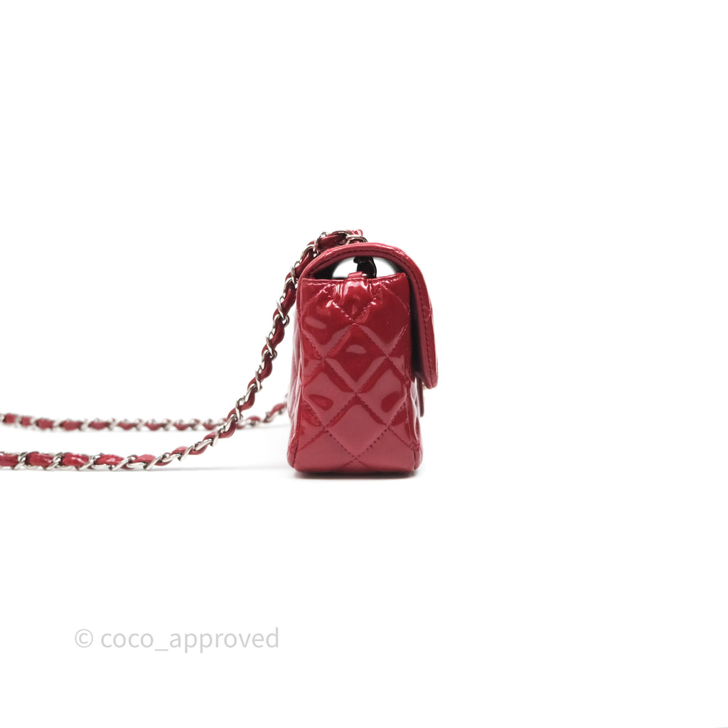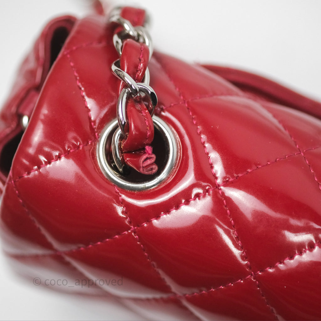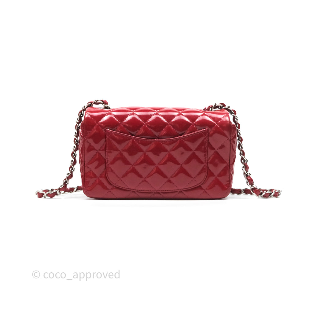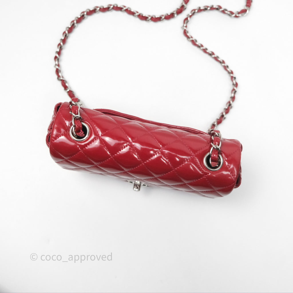 Chanel Quilted Mini Rectangular Flap Red Patent Silver Hardware