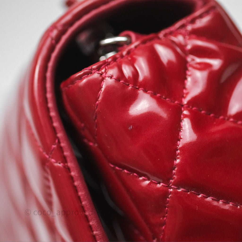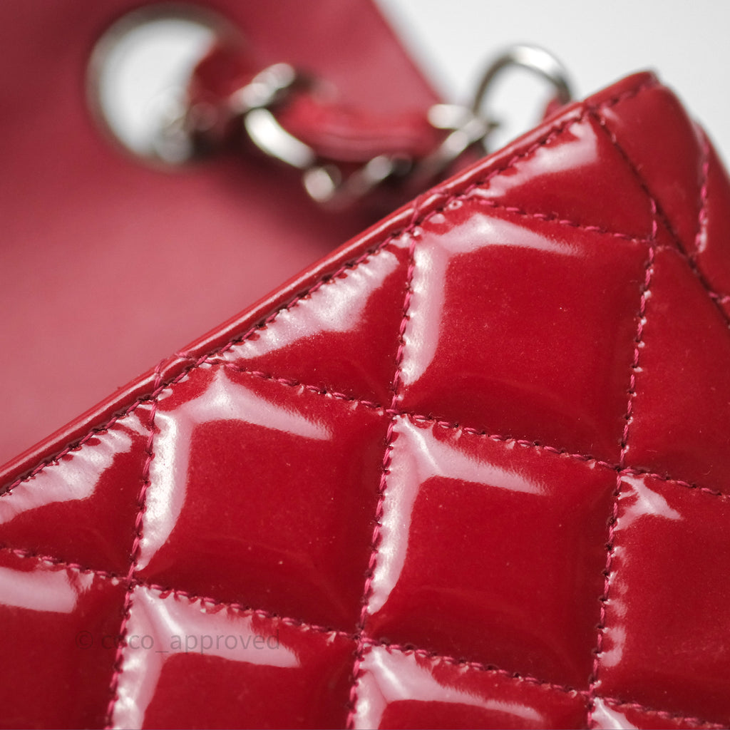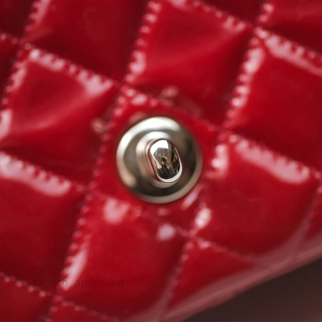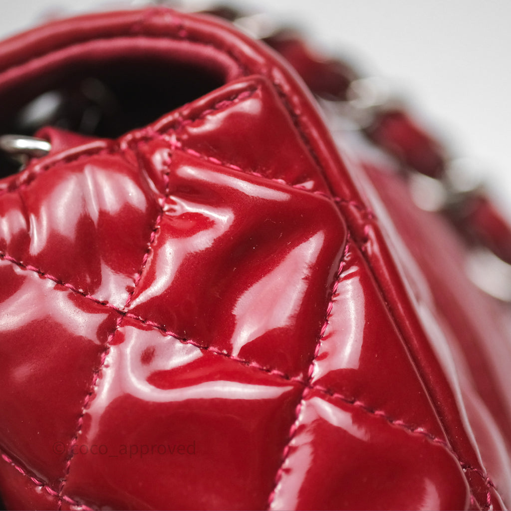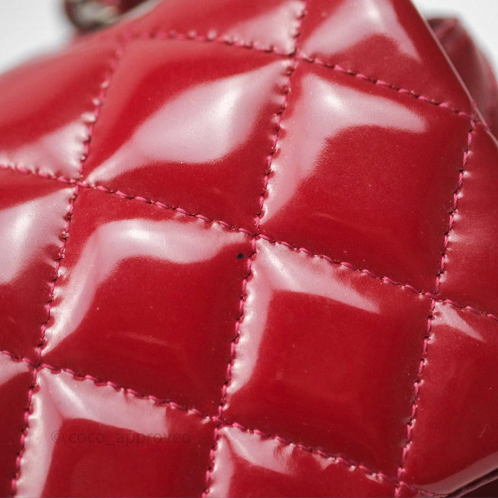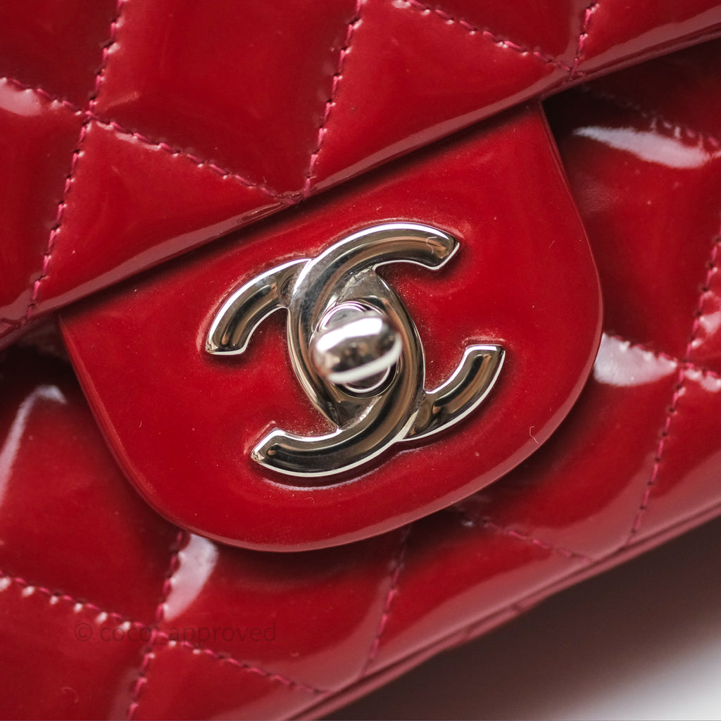 Chanel Quilted Mini Rectangular Flap Red Patent Silver Hardware