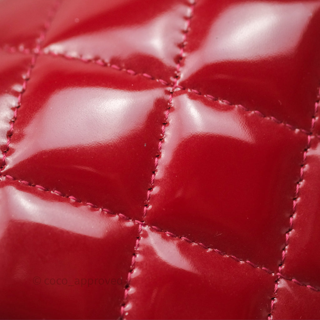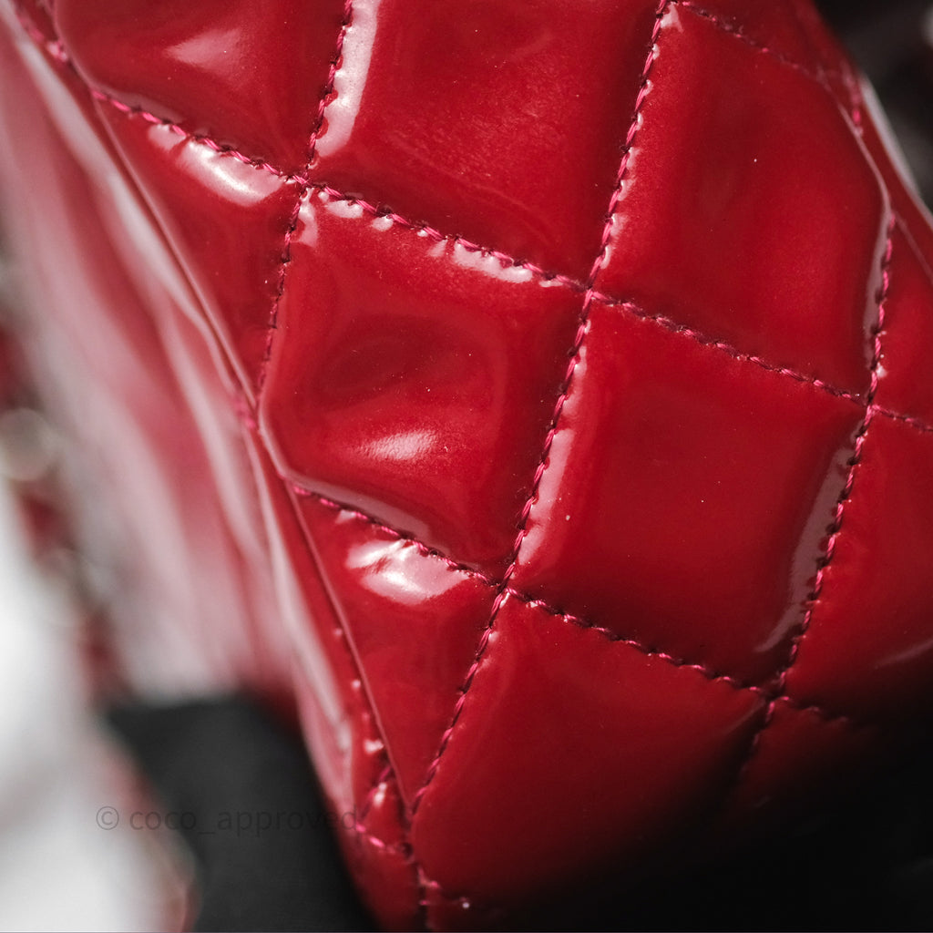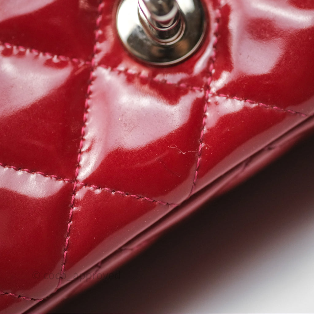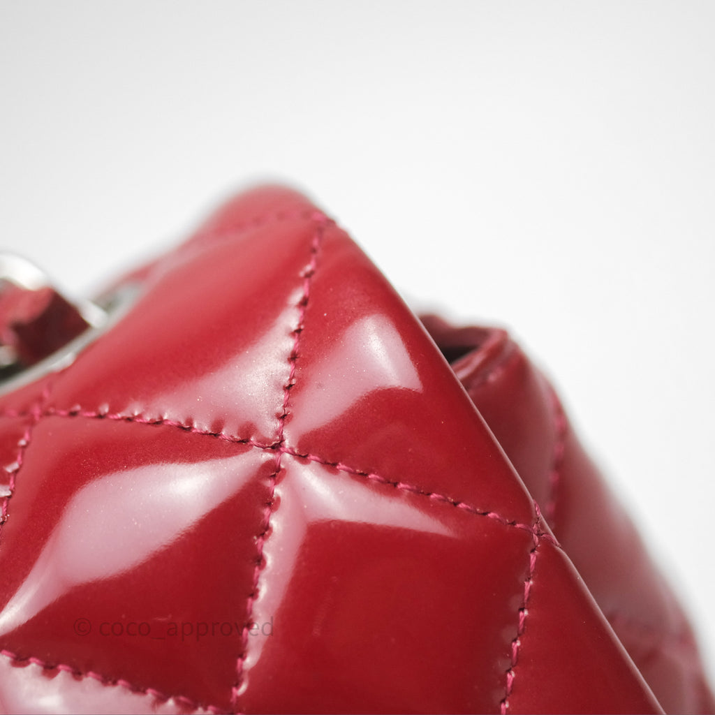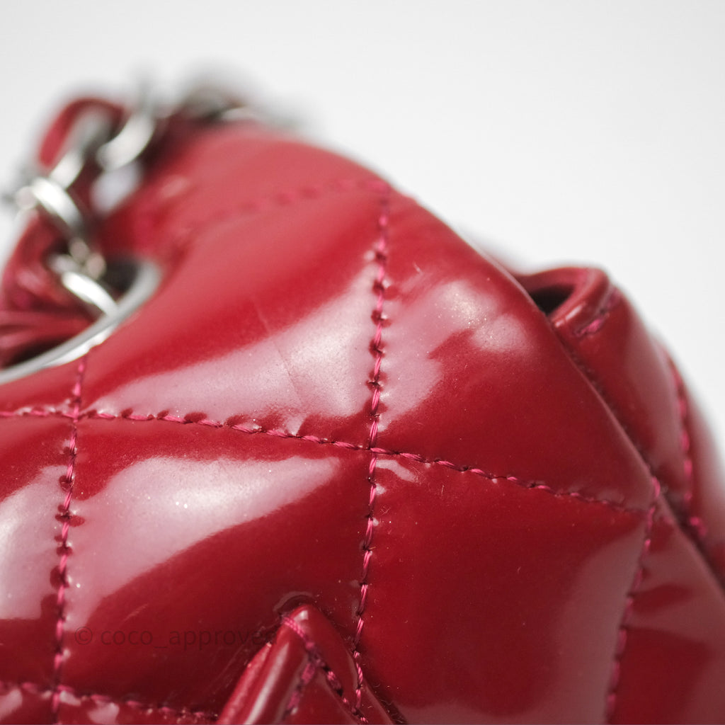 Chanel Quilted Mini Rectangular Flap Red Patent Silver Hardware