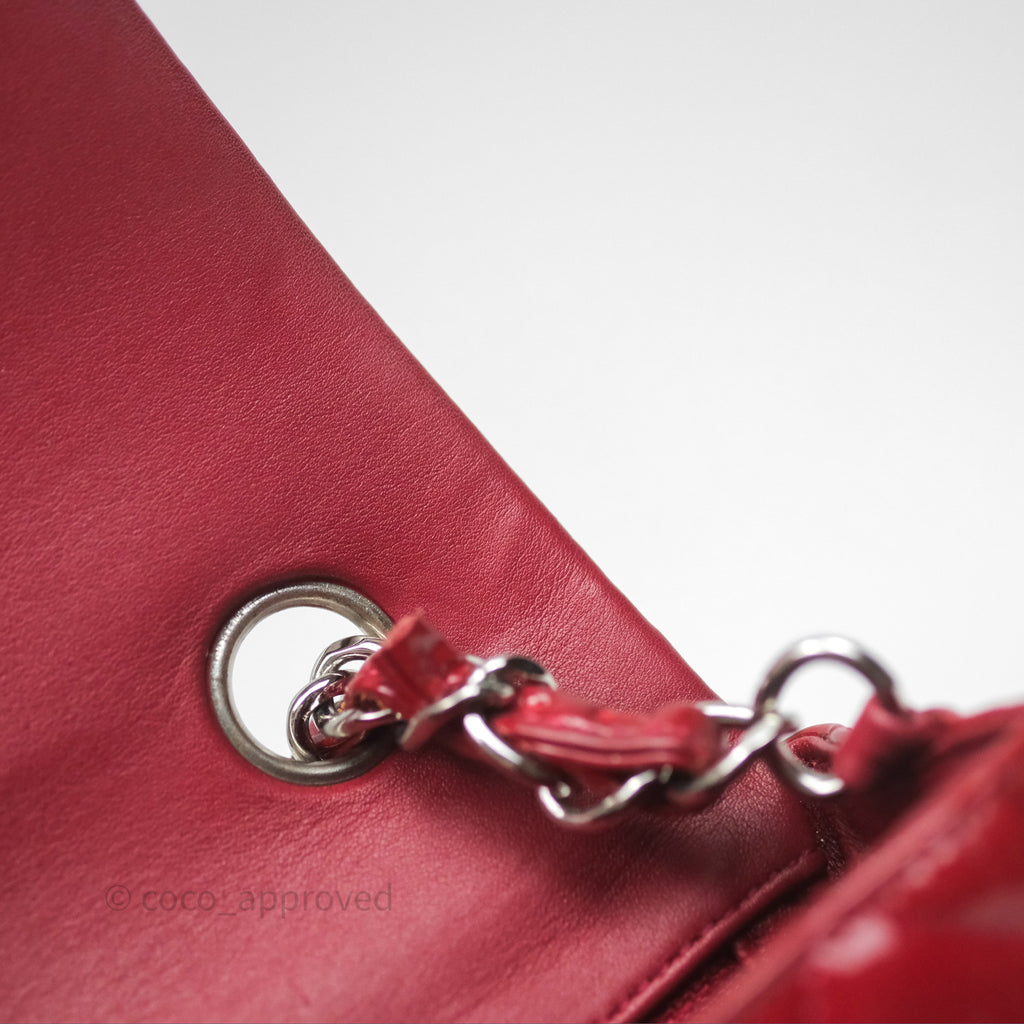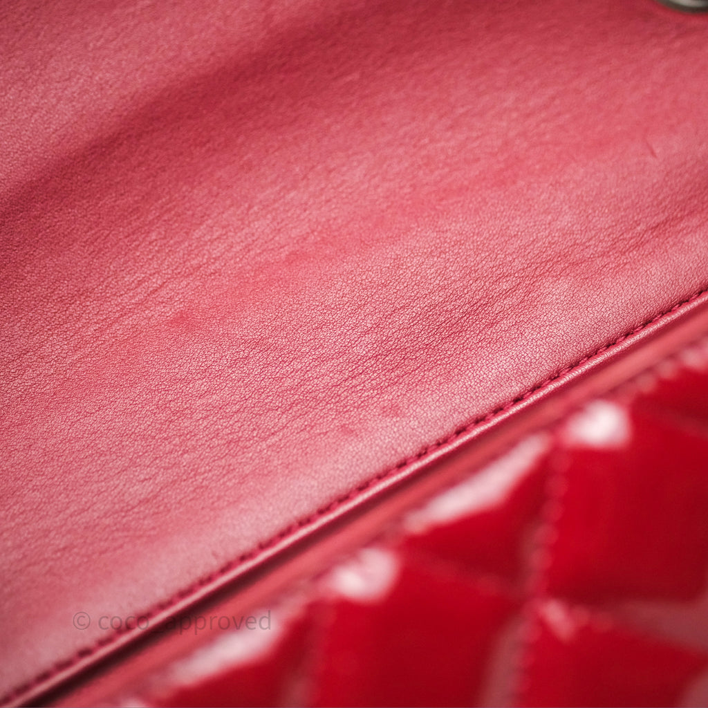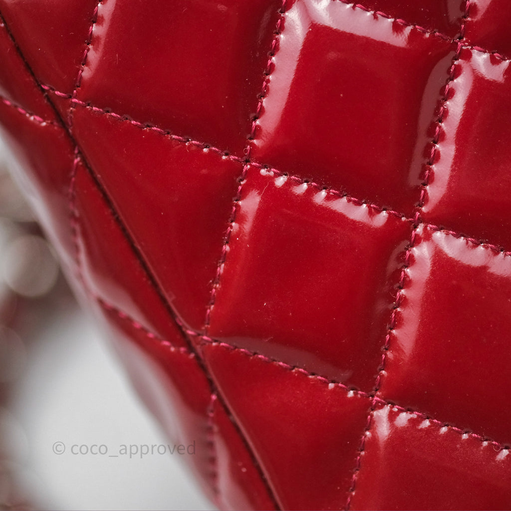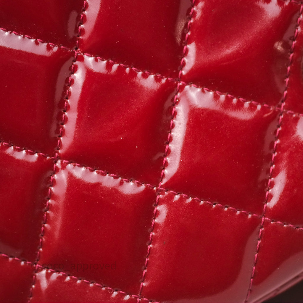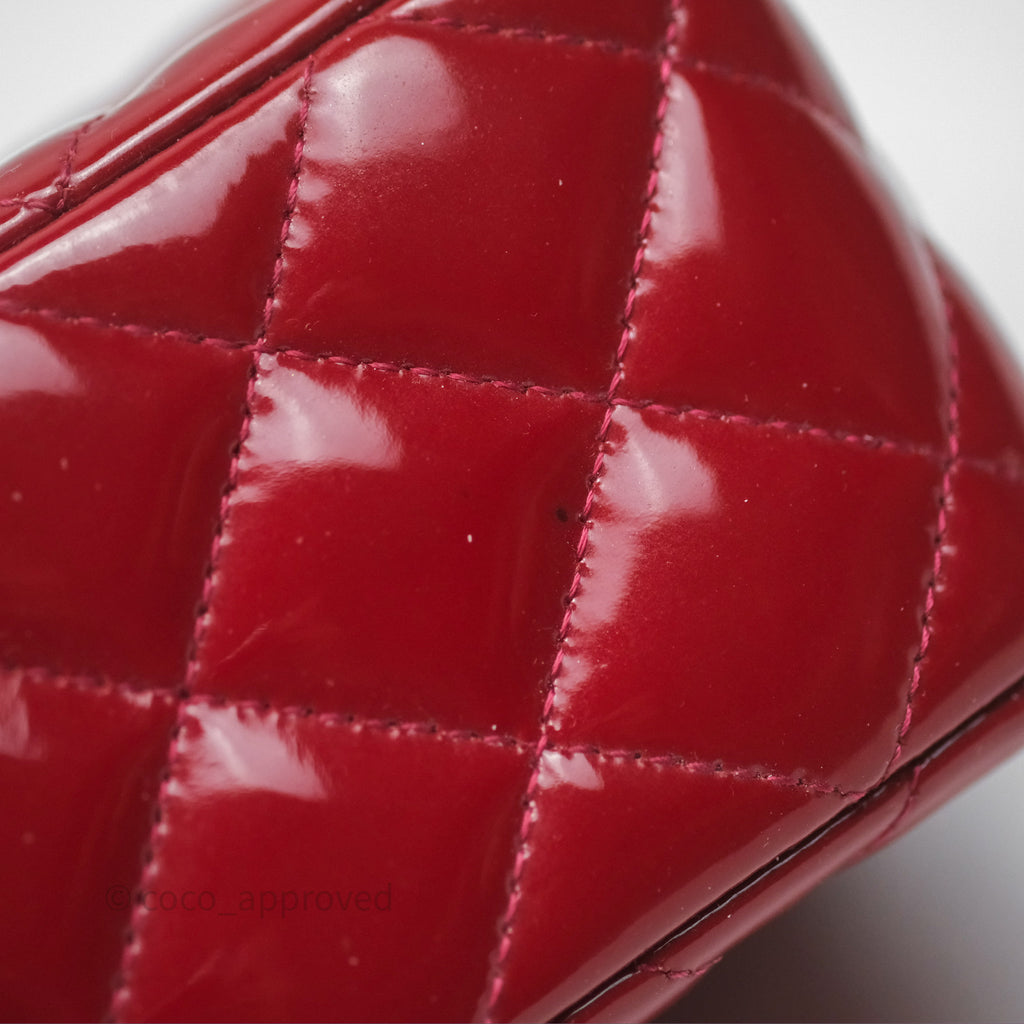 Chanel Quilted Mini Rectangular Flap Red Patent Silver Hardware