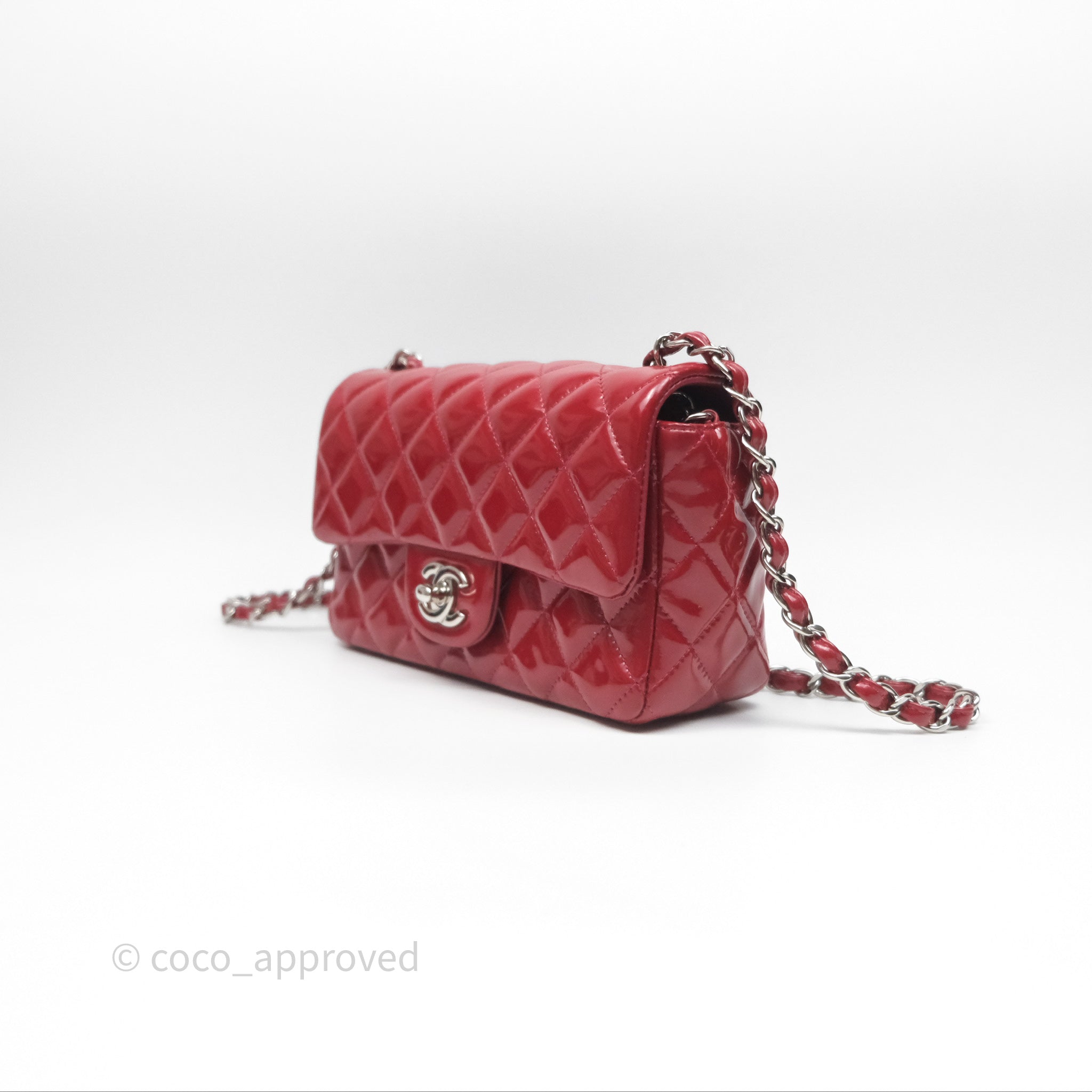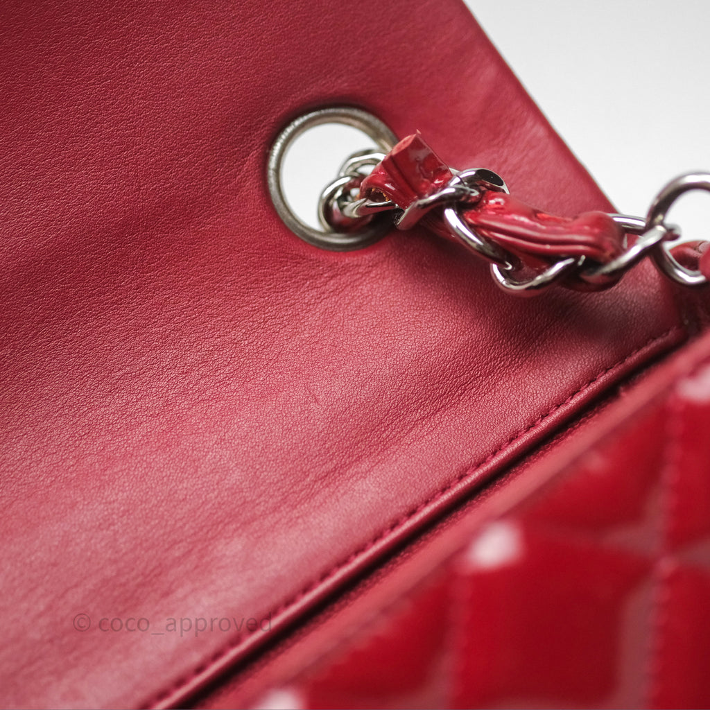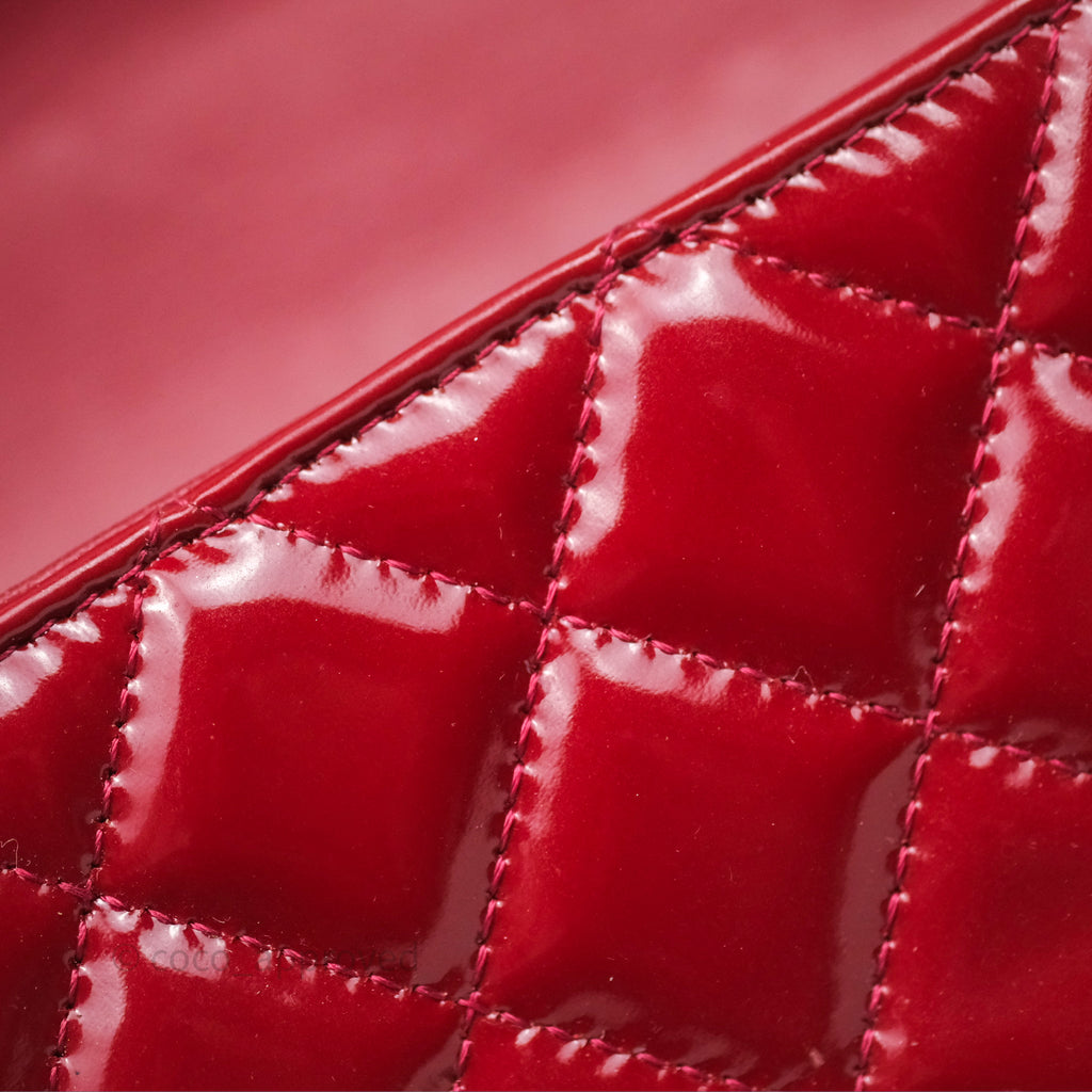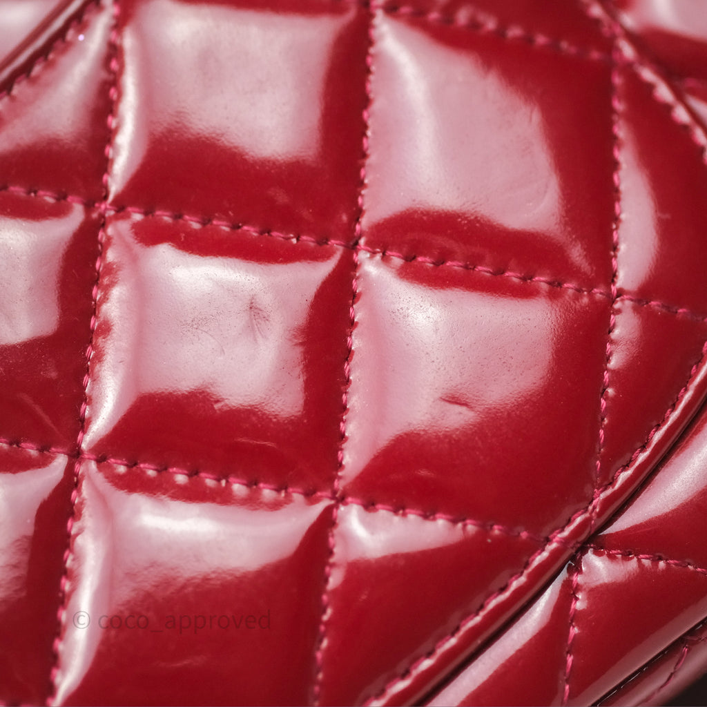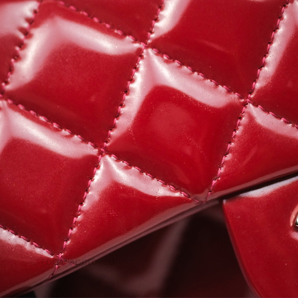 Chanel Quilted Mini Rectangular Flap Red Patent Silver Hardware