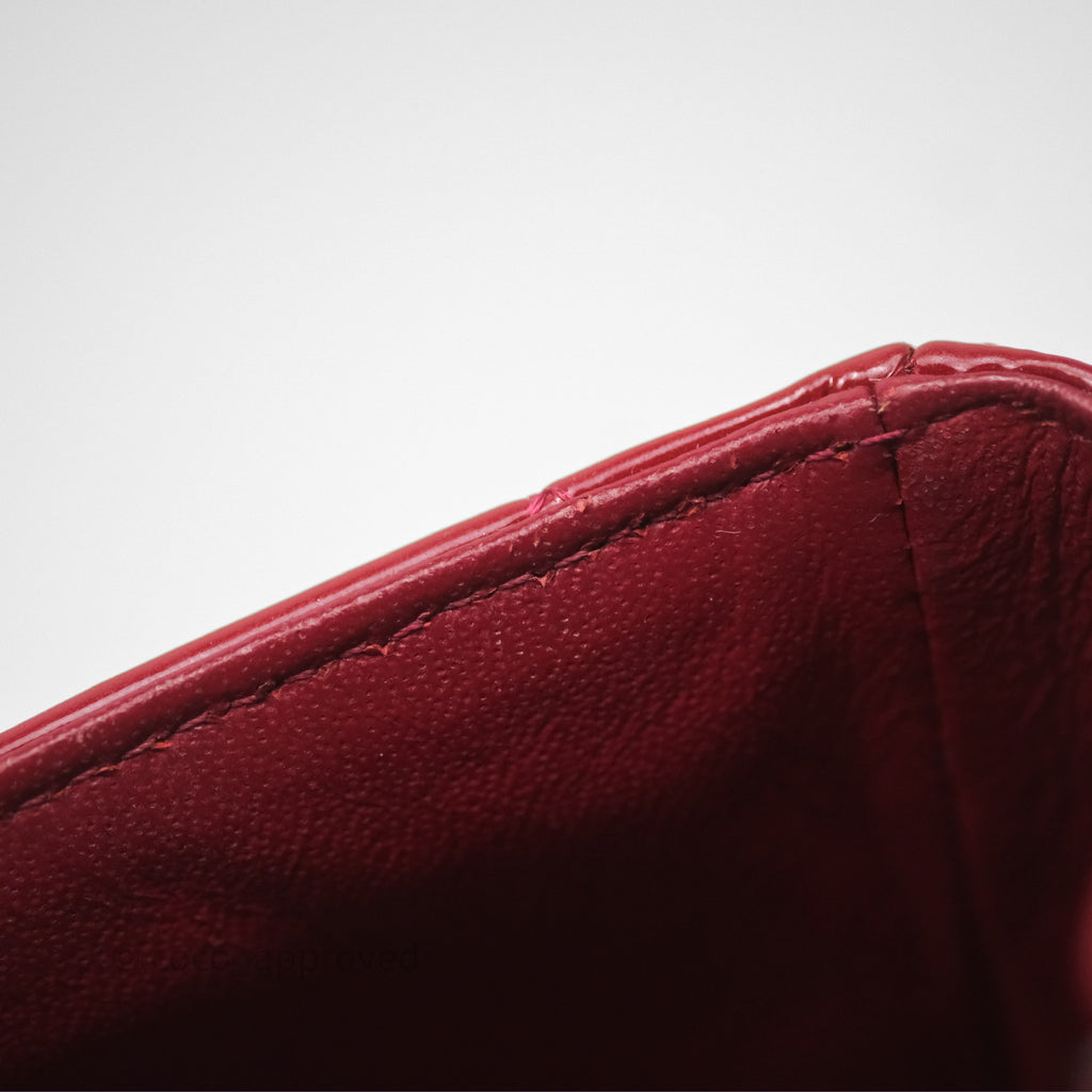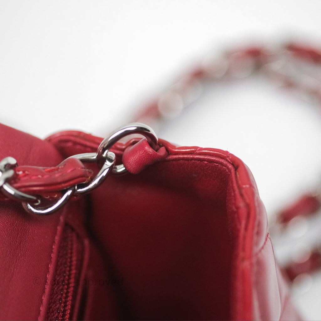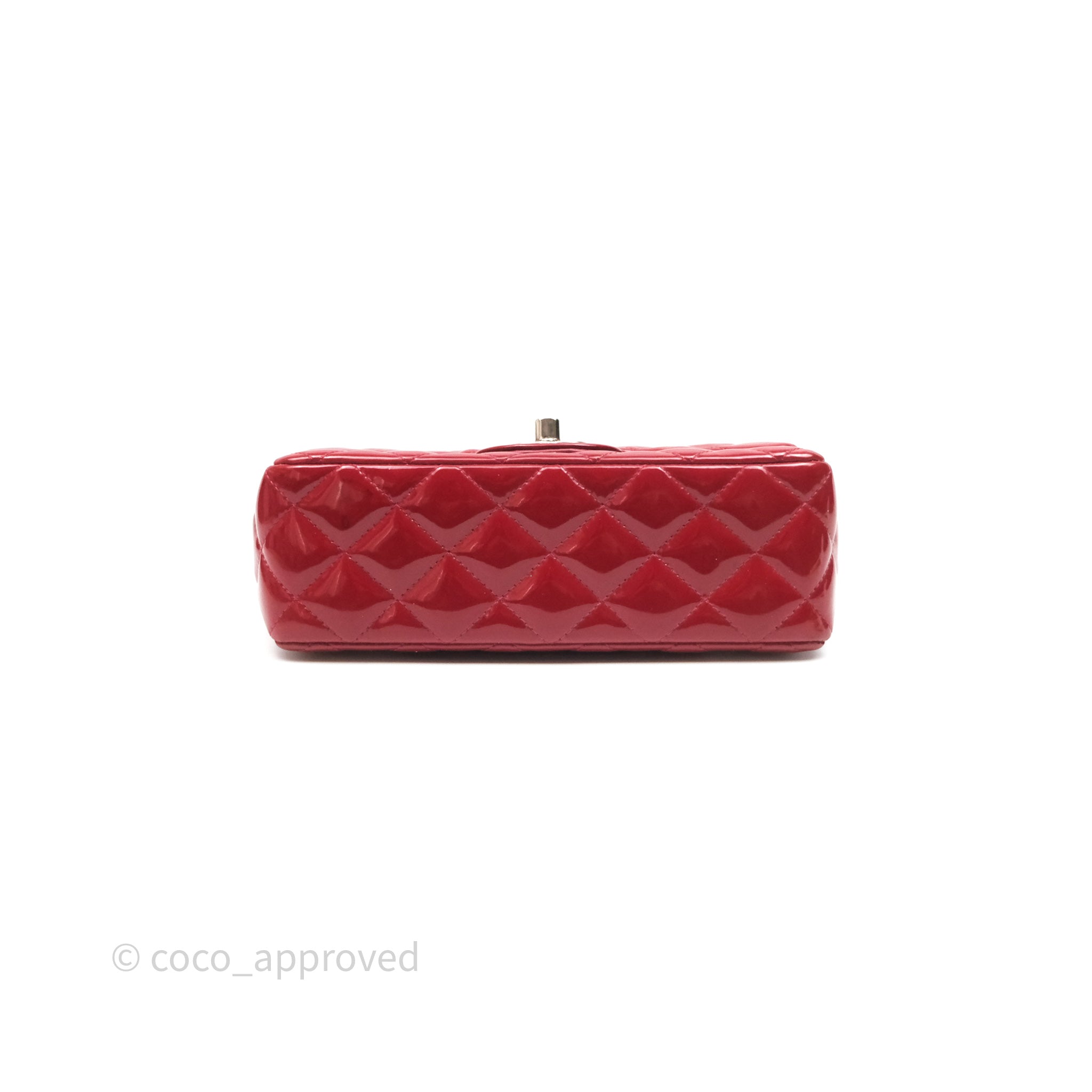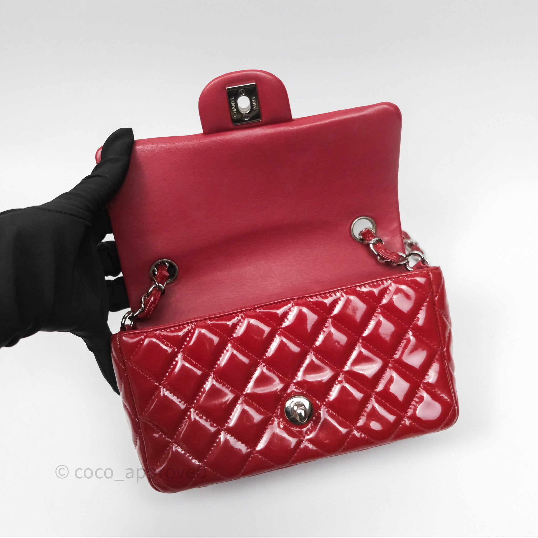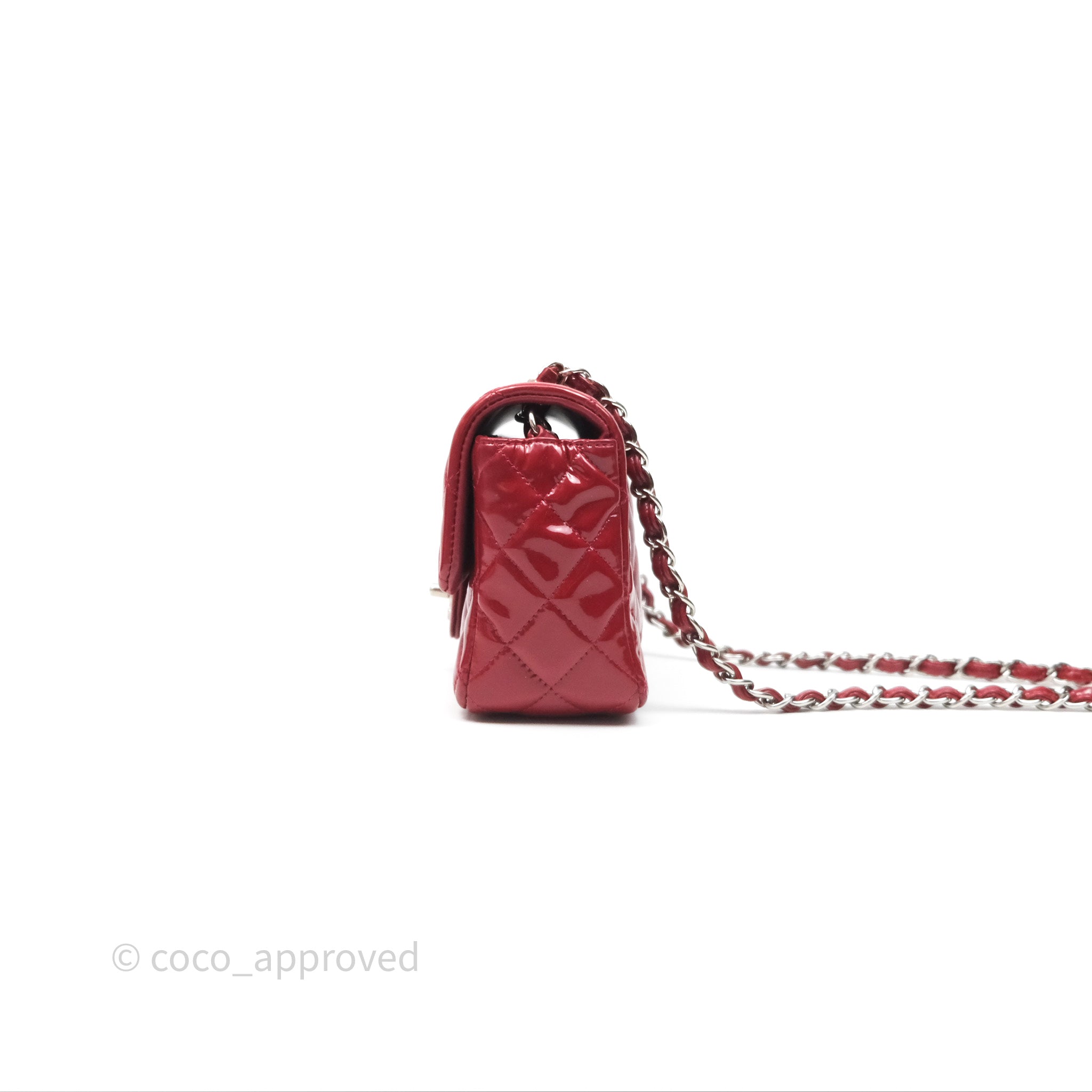 Chanel Quilted Mini Rectangular Flap Red Patent Silver Hardware