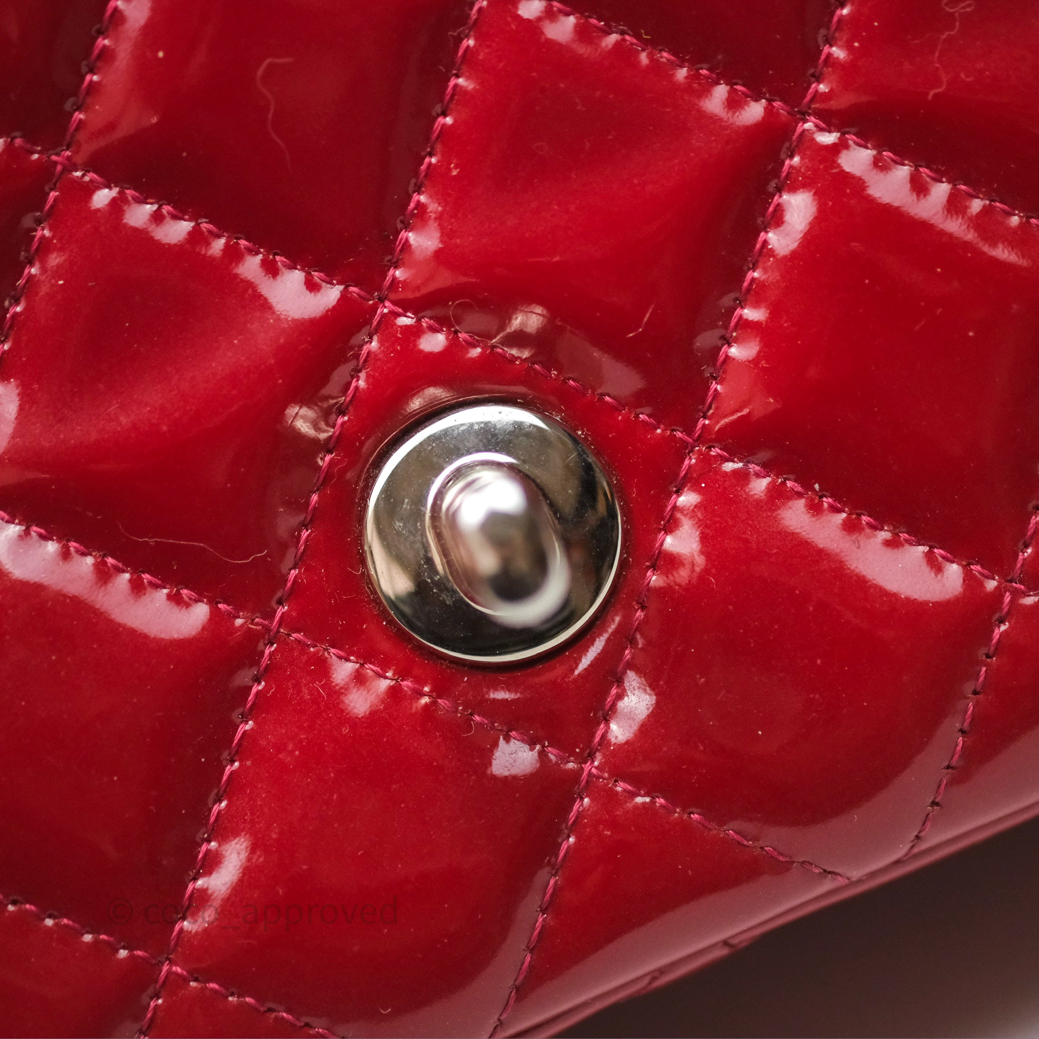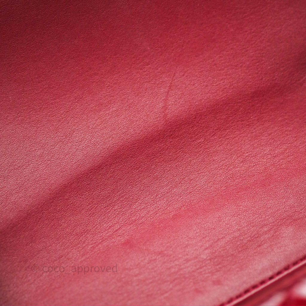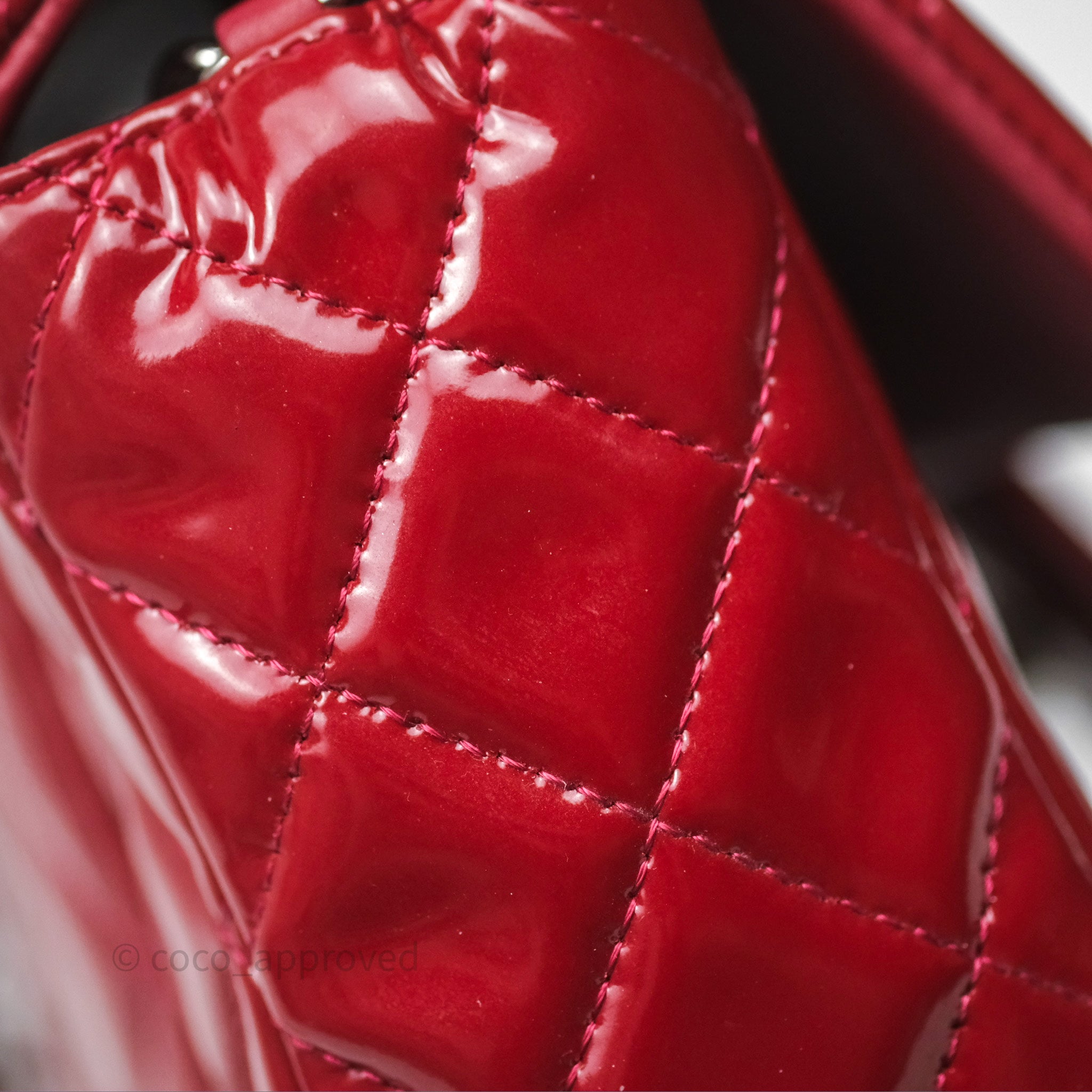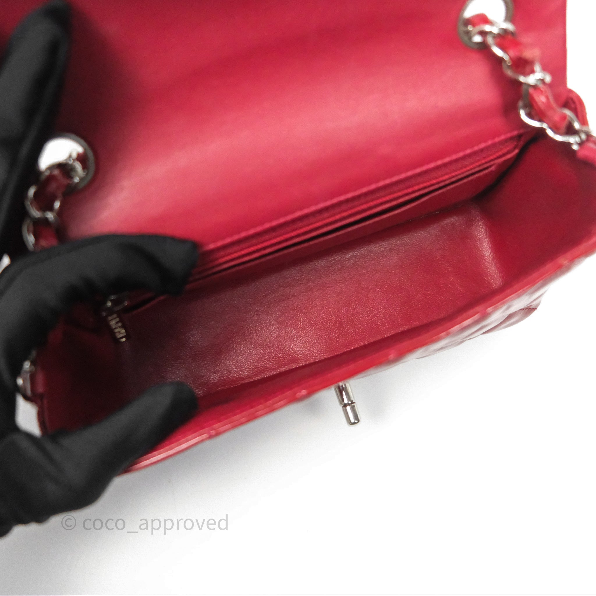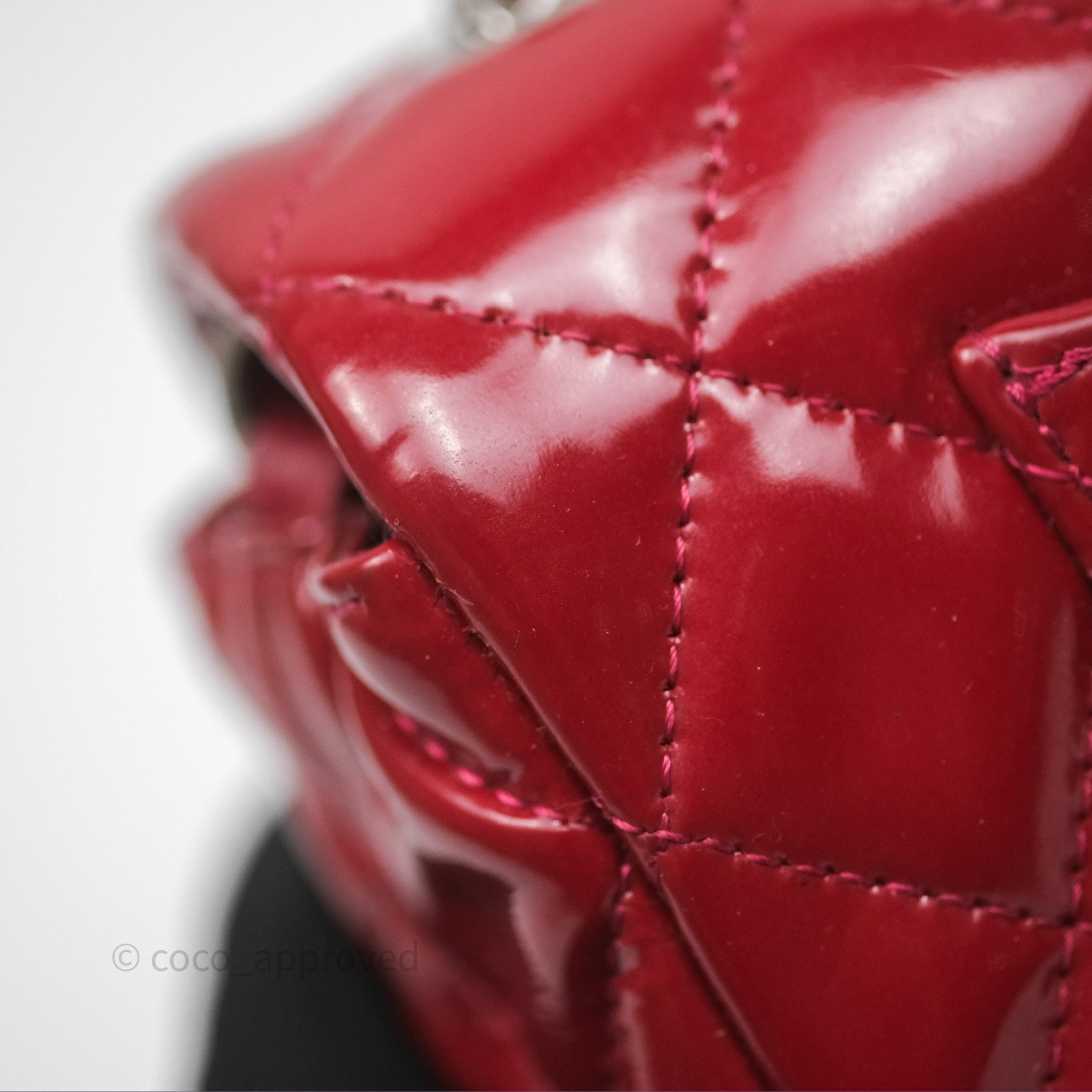Chanel Quilted Mini Rectangular Flap Red Patent Silver Hardware