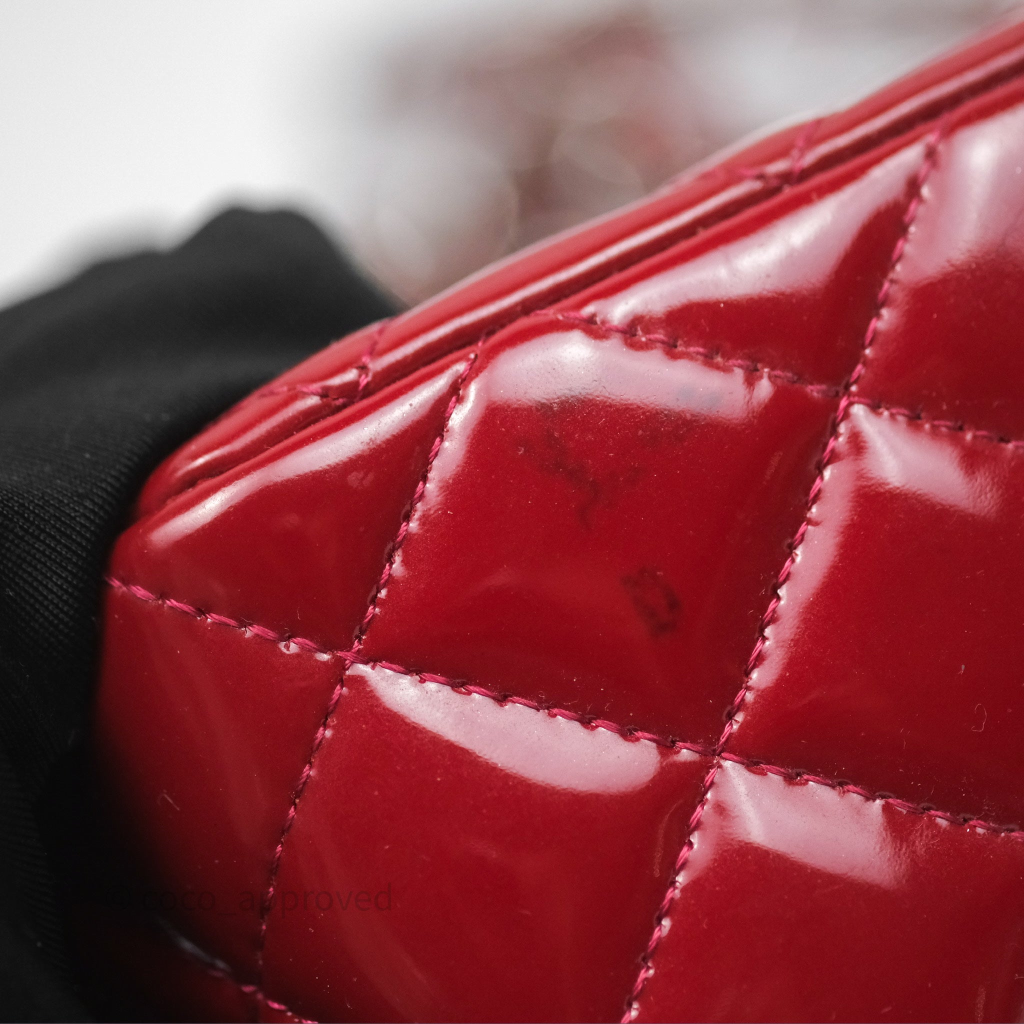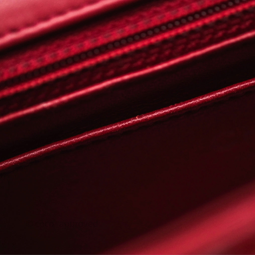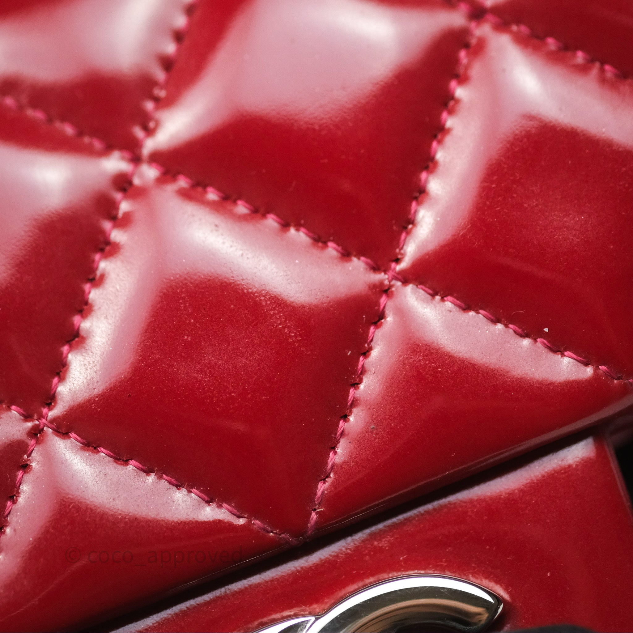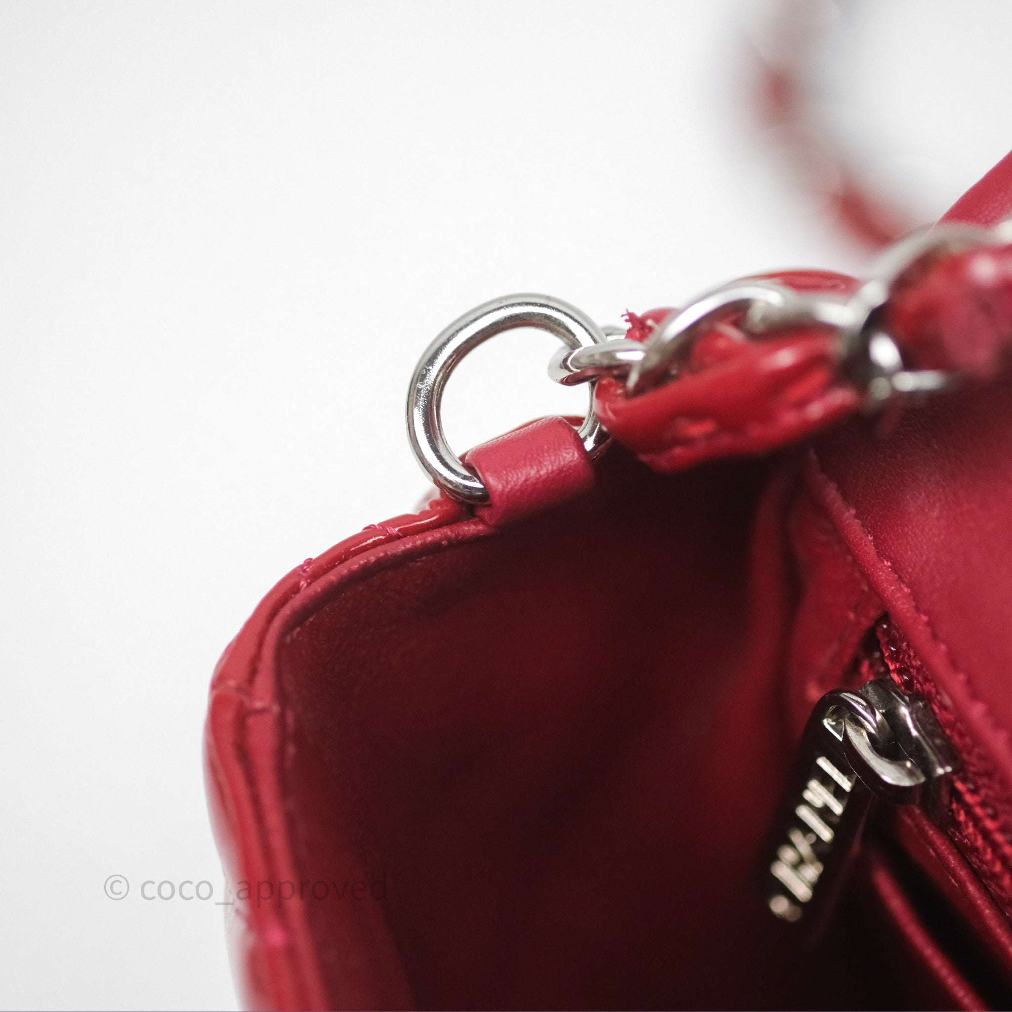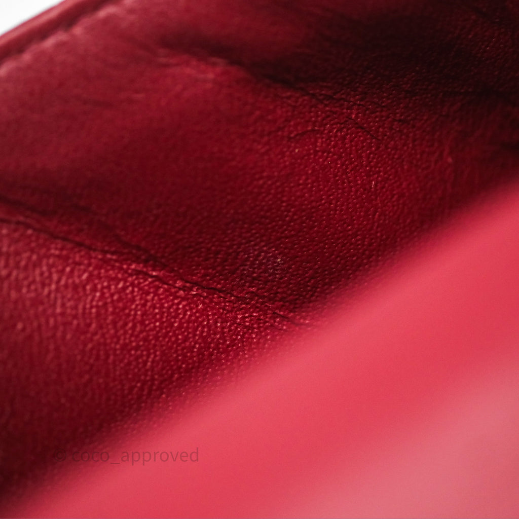Chanel Quilted Mini Rectangular Flap Red Patent Silver Hardware