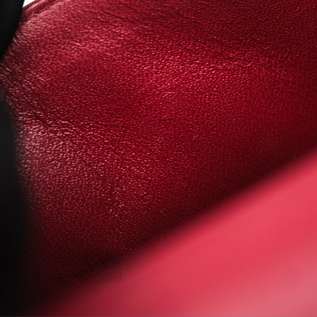 9.3/10 excellent condition. Marks and scratches on surface and interior. Scratches on hardware. Dent under the flap.