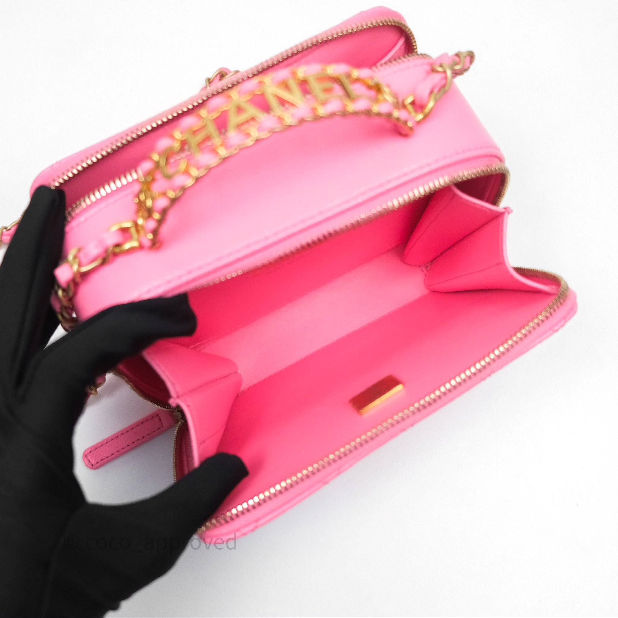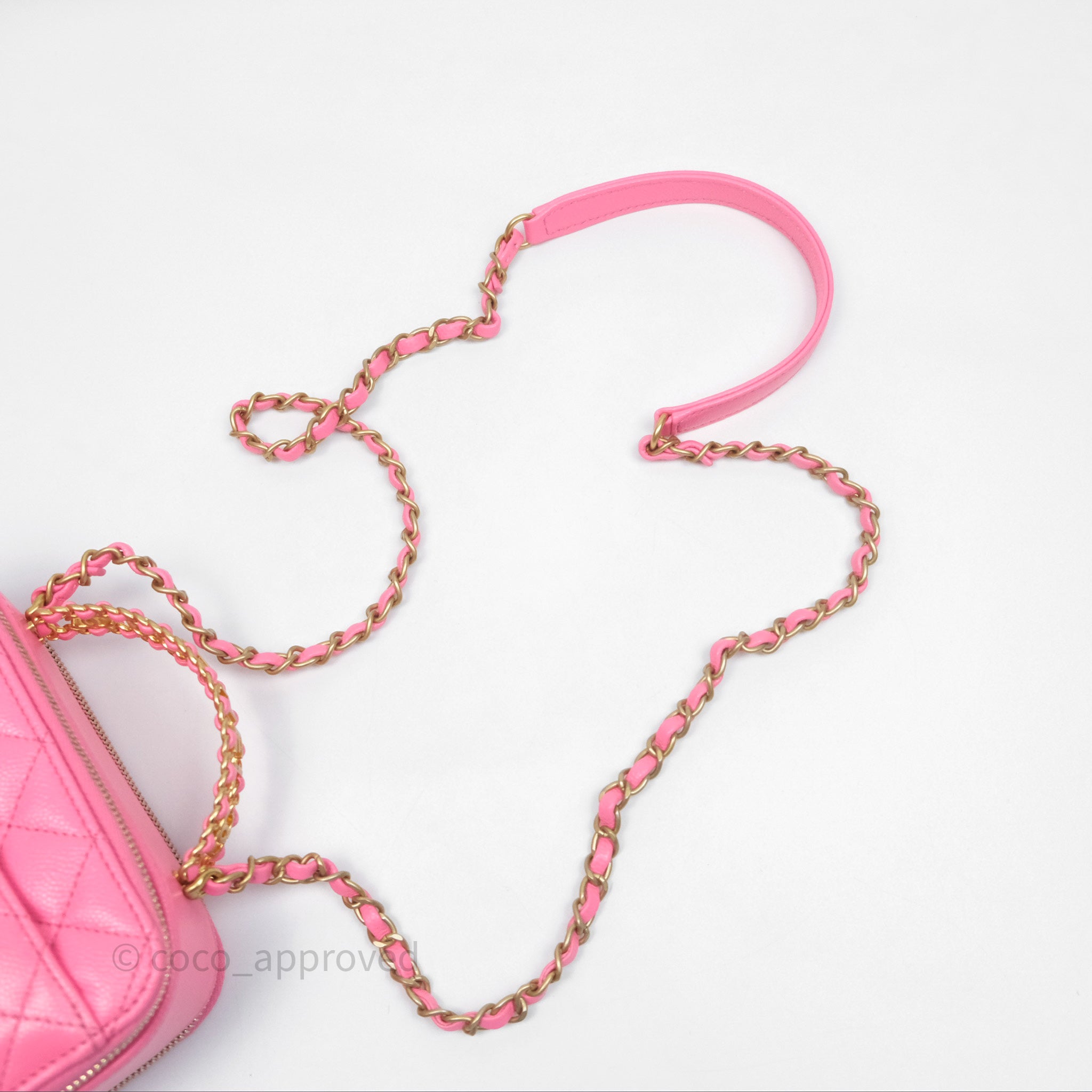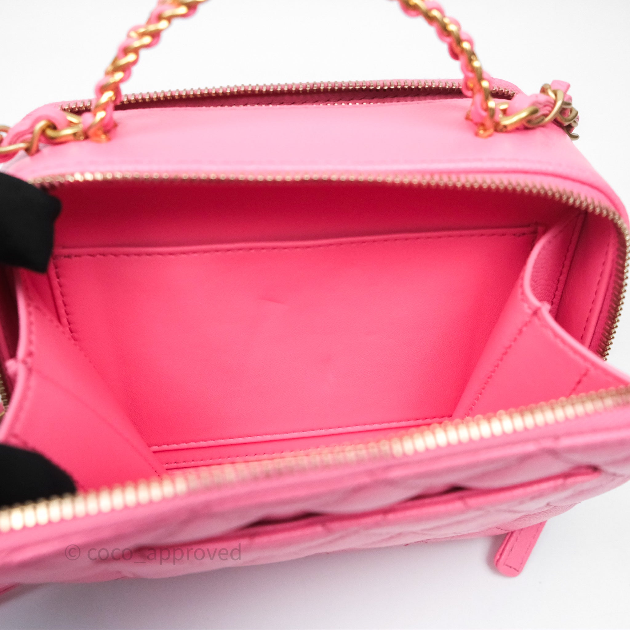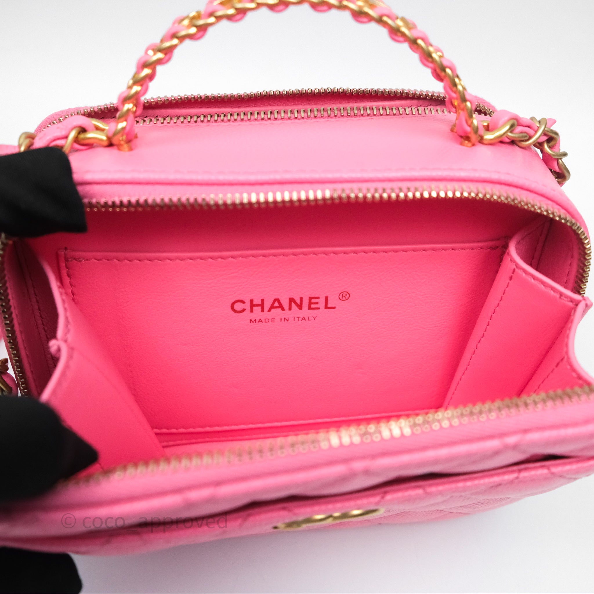Chanel Quilted Pick Me Up Small Vanity Case Hot Pink Caviar Aged Gold Hardware