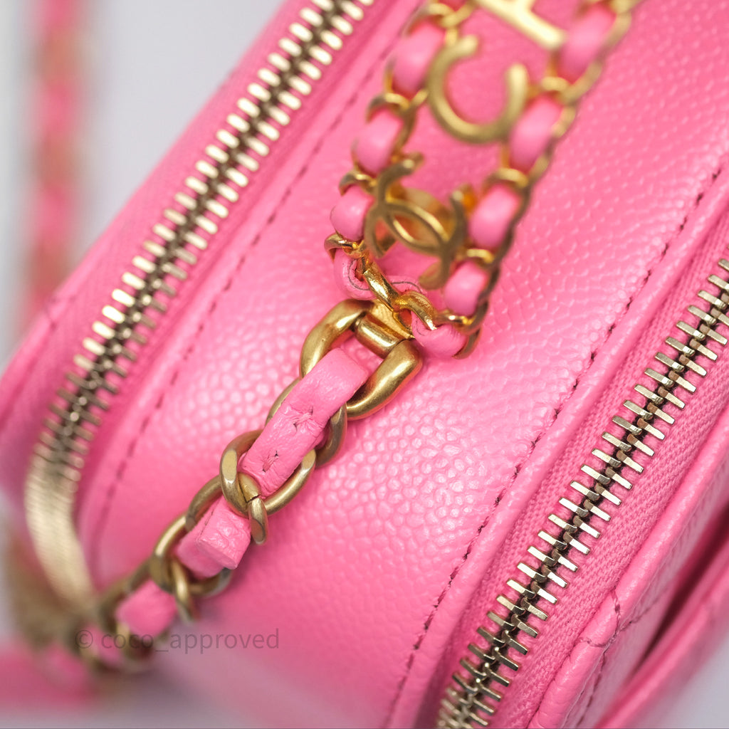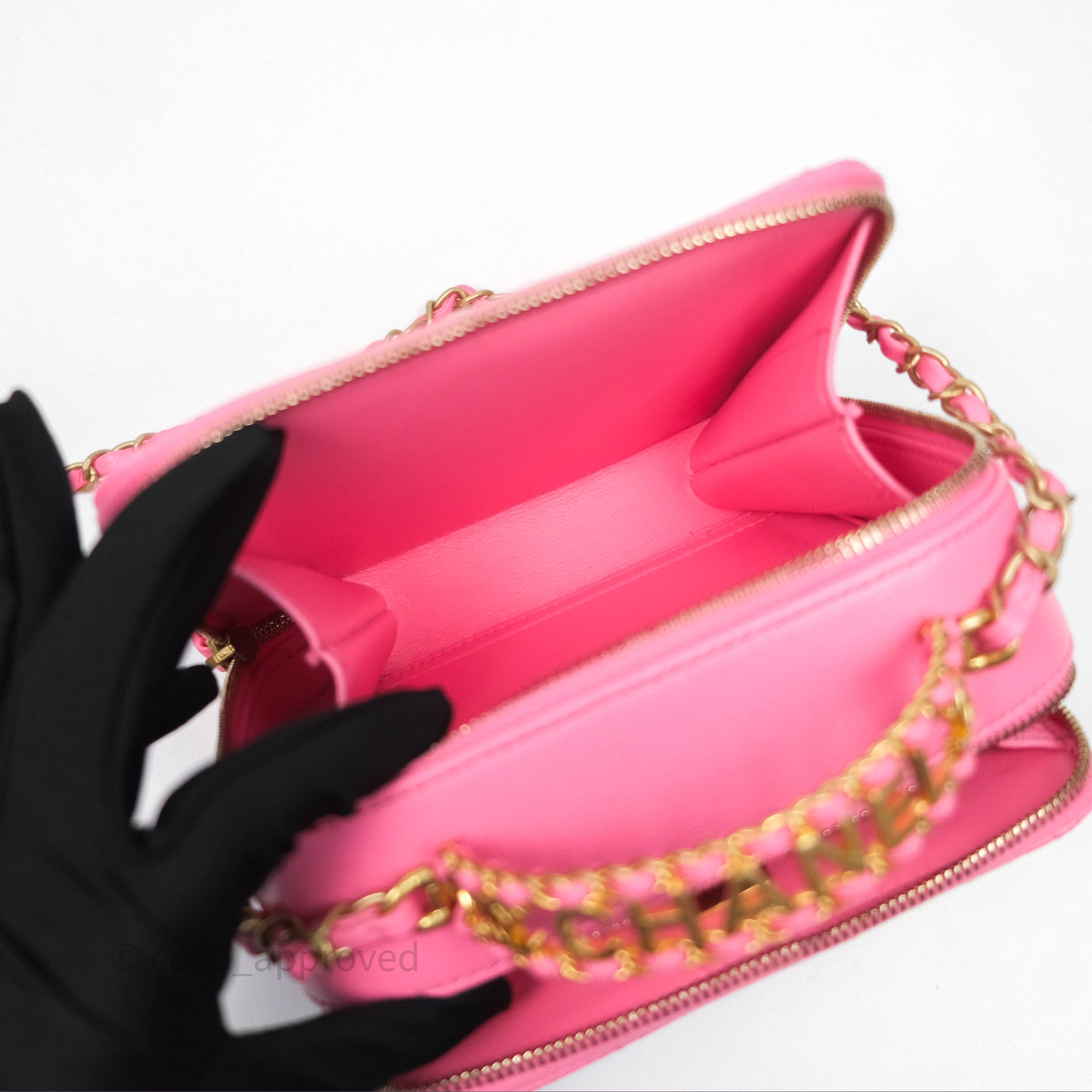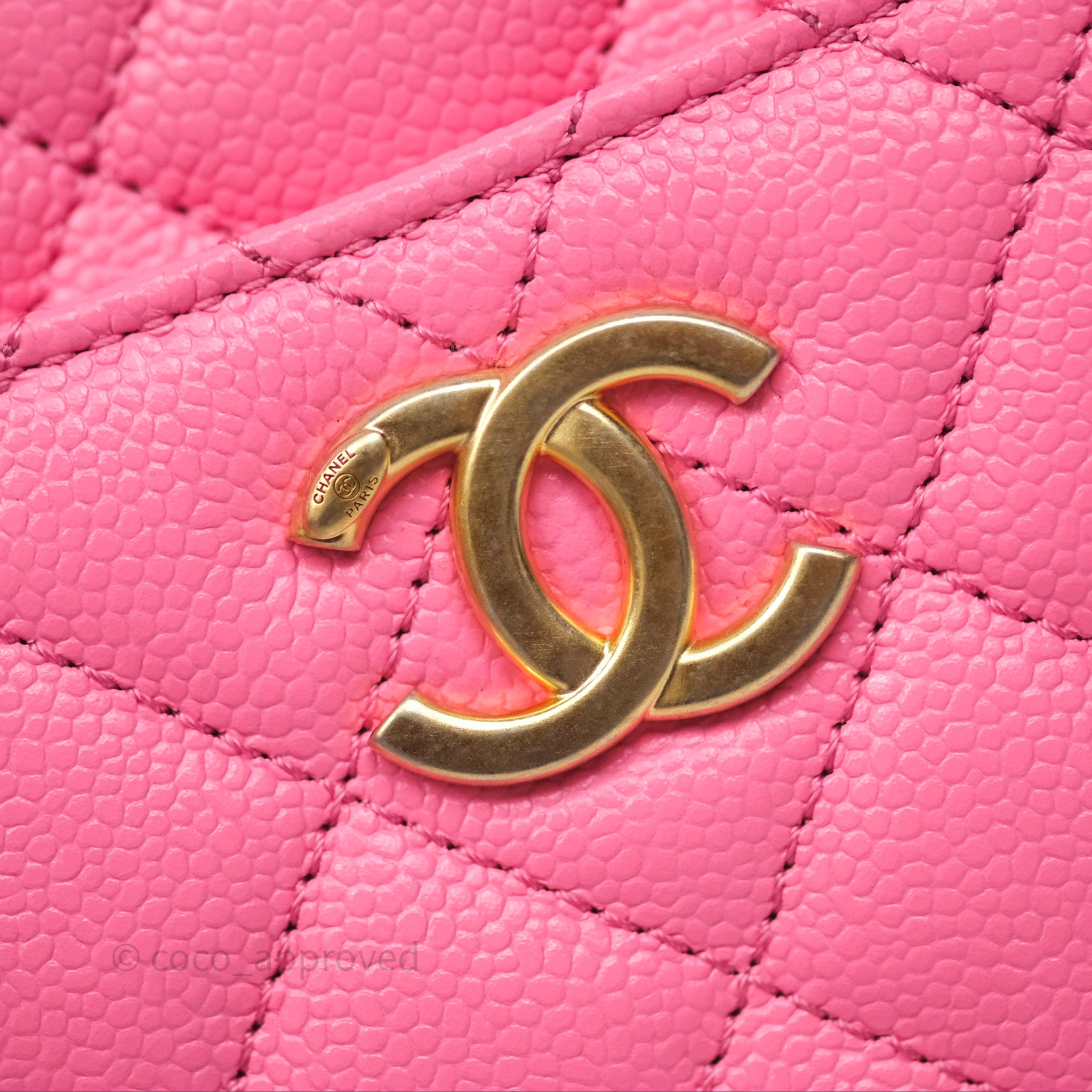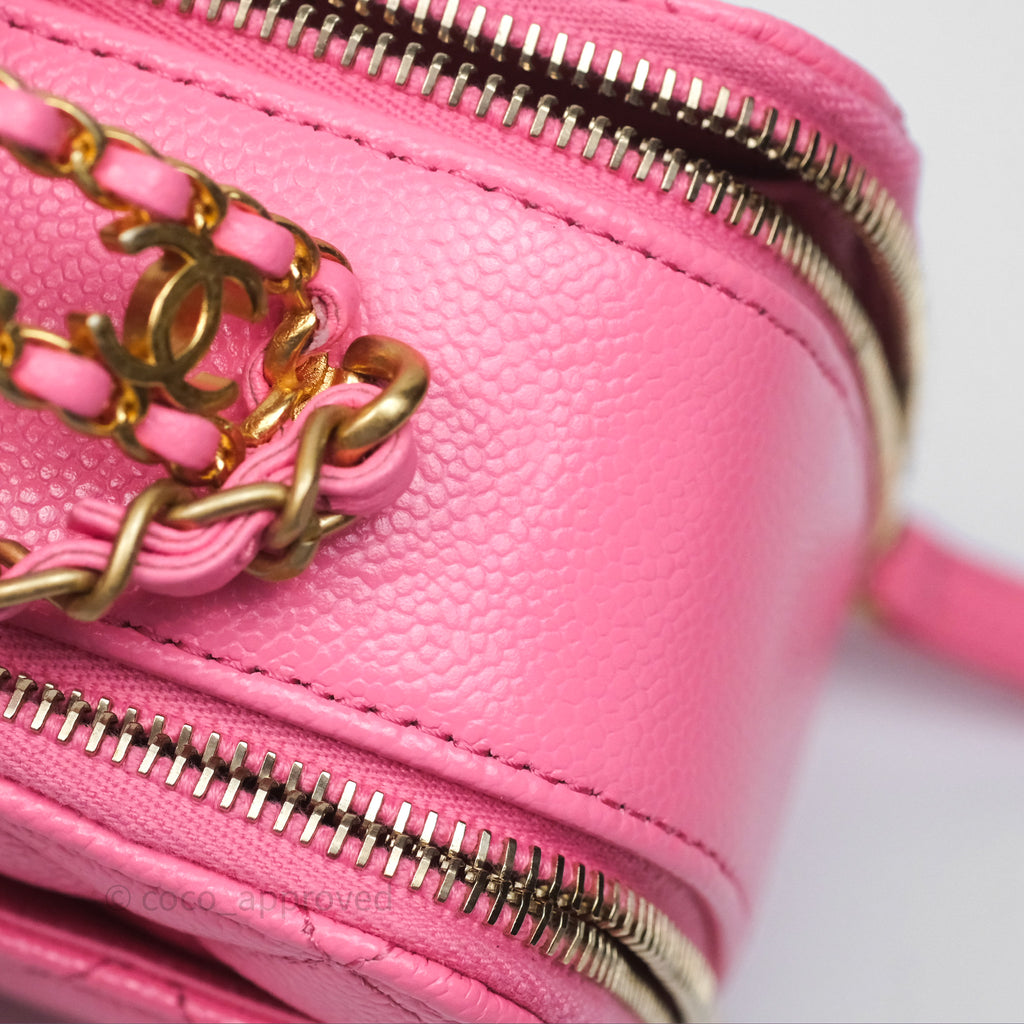 Chanel Quilted Pick Me Up Small Vanity Case Hot Pink Caviar Aged Gold Hardware