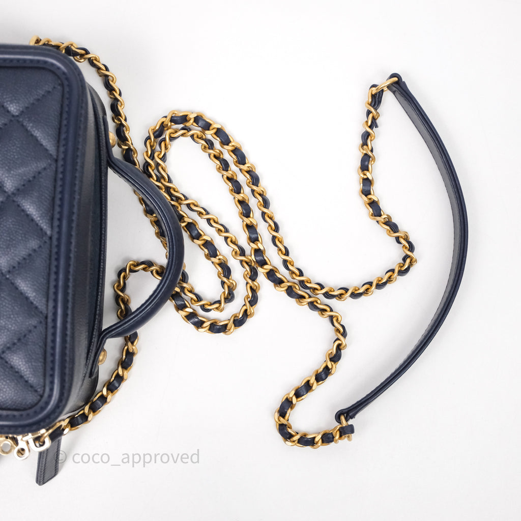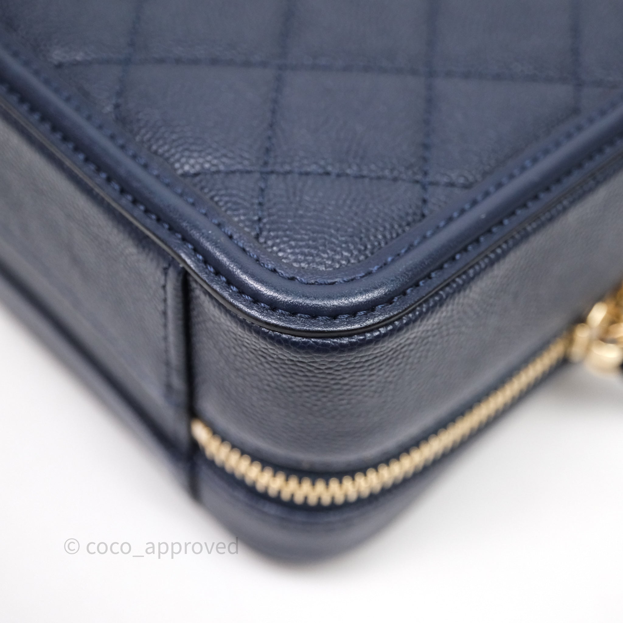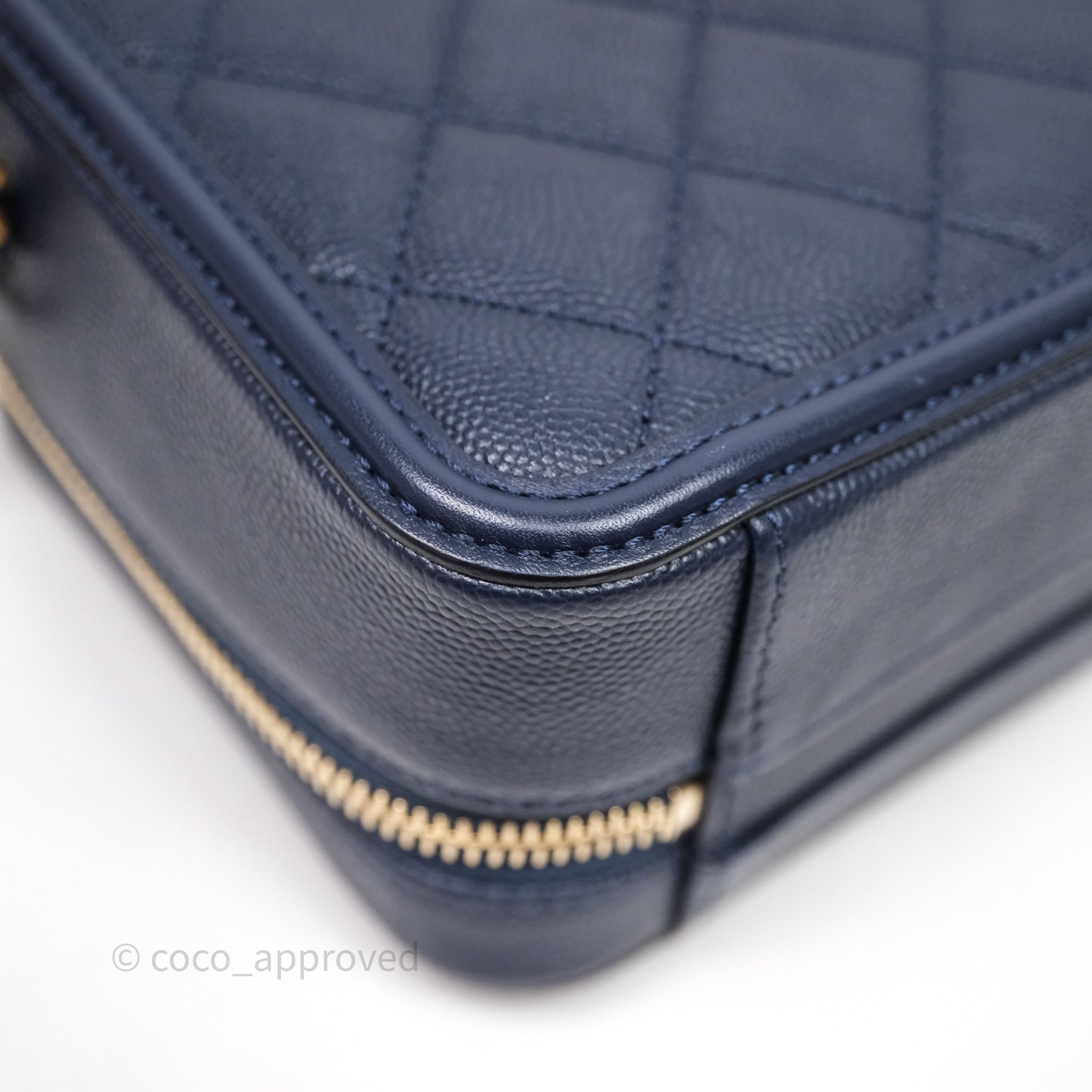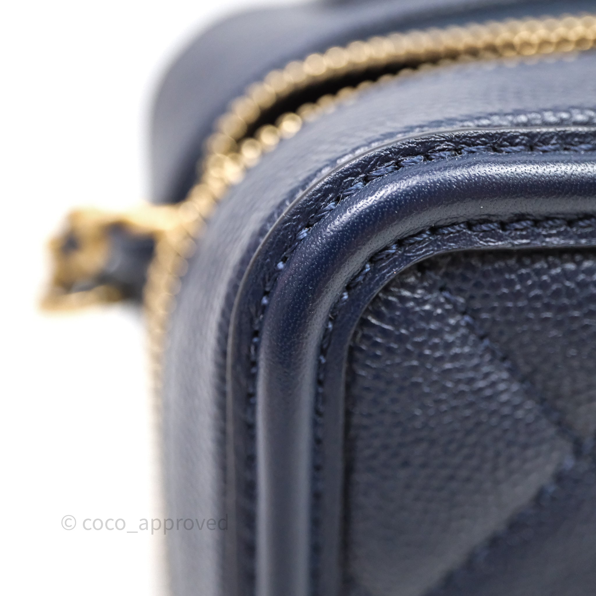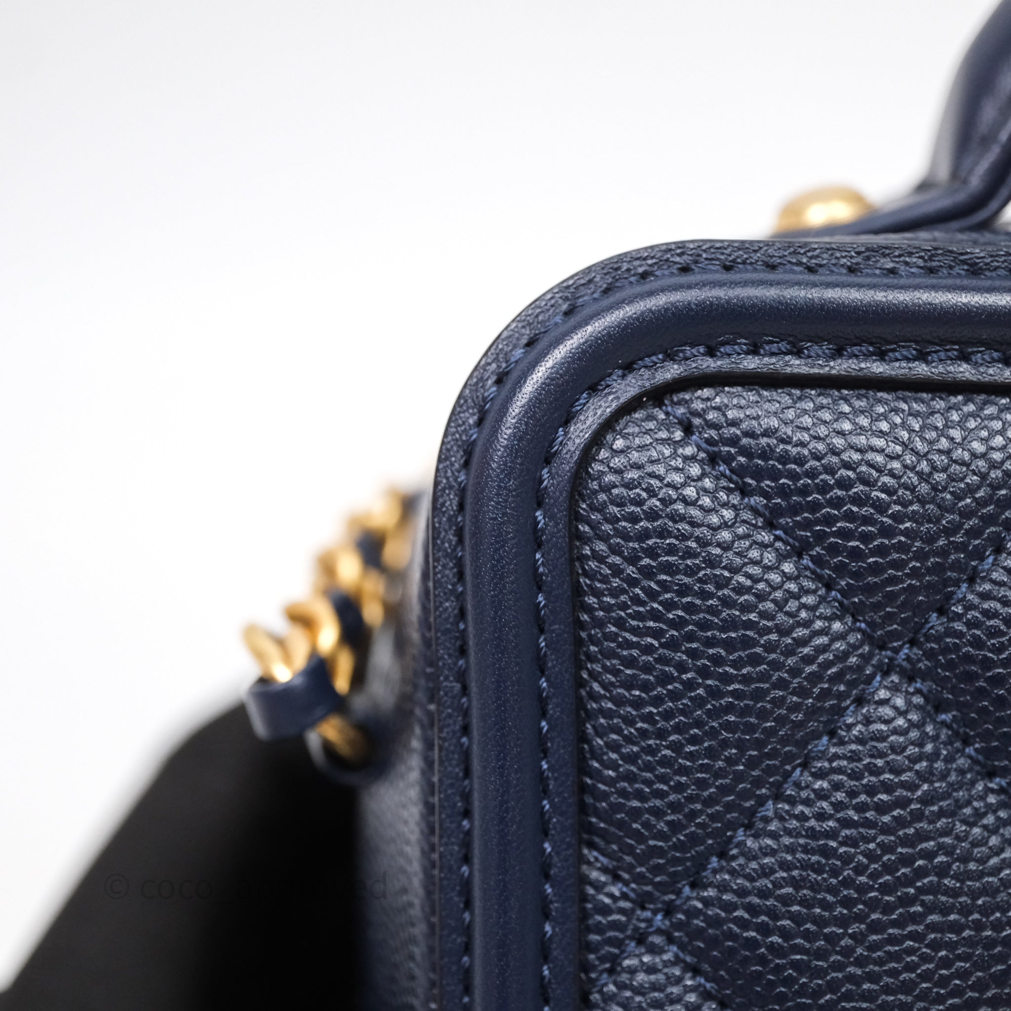 Chanel Quilted Small CC Filigree Vanity Case Navy Caviar Gold Hardware