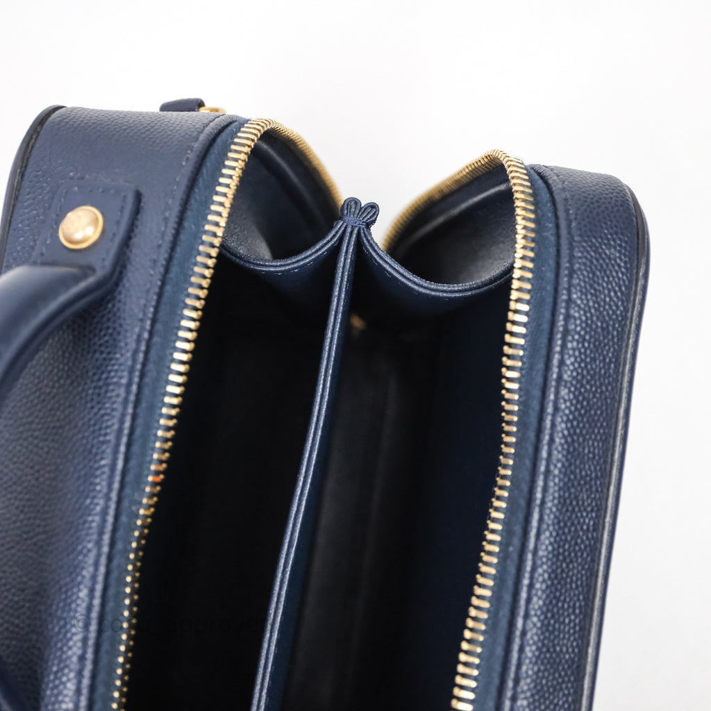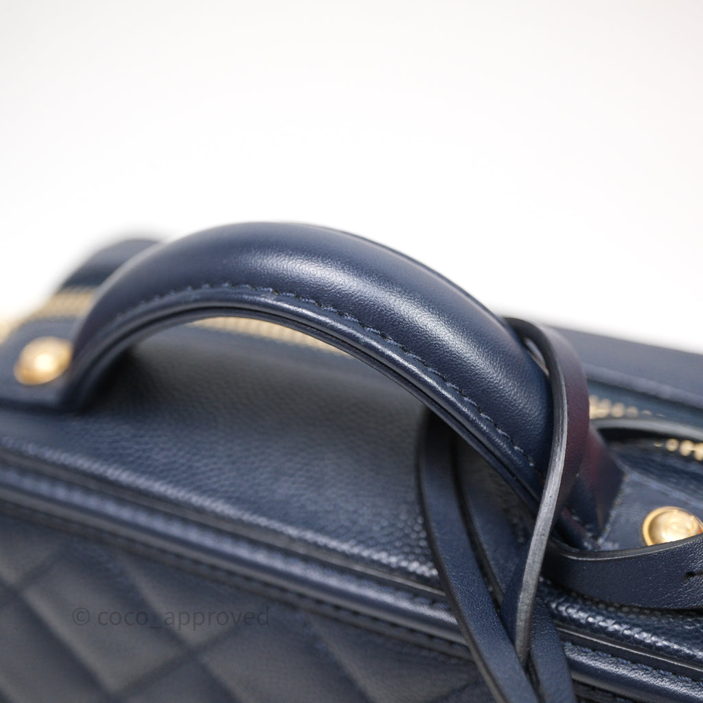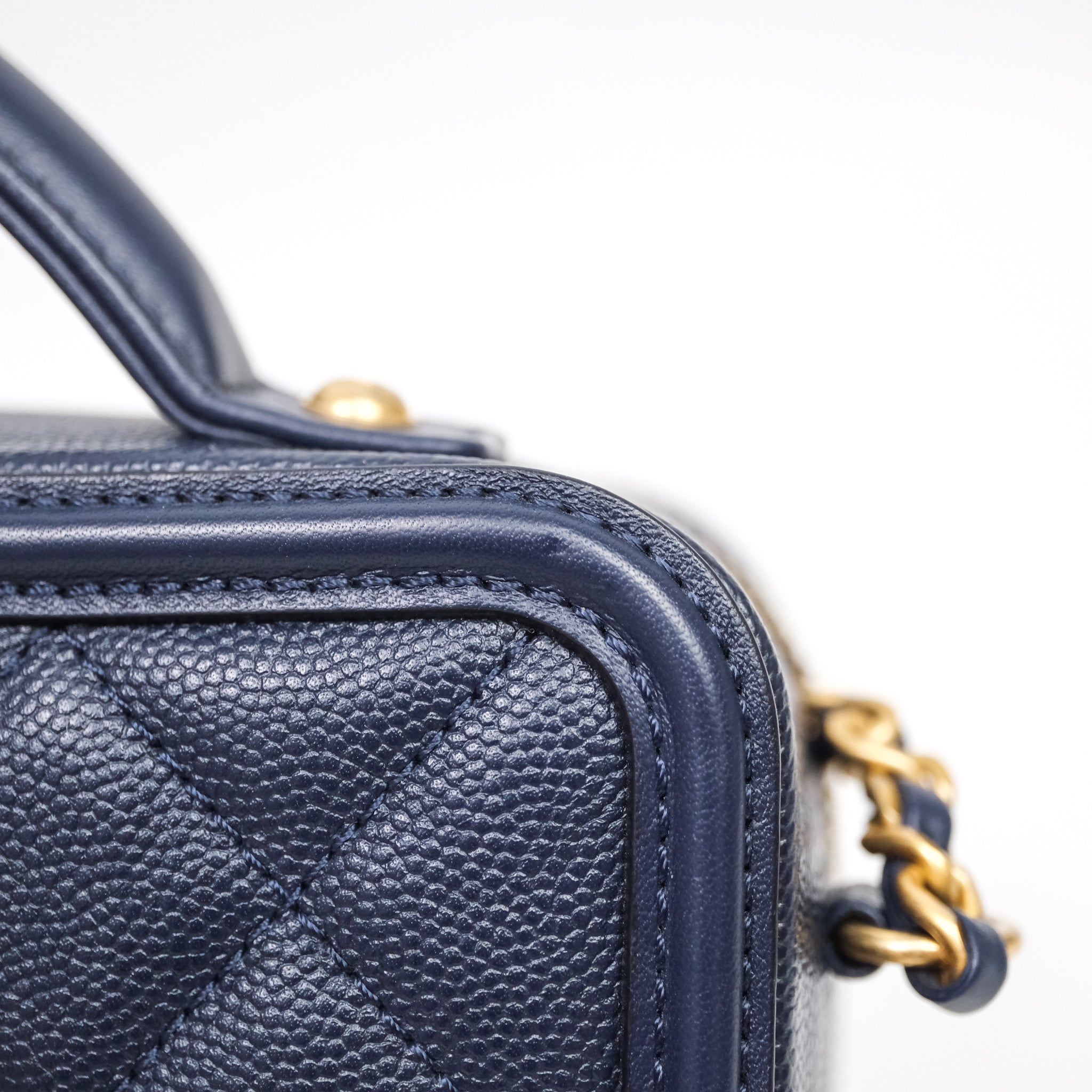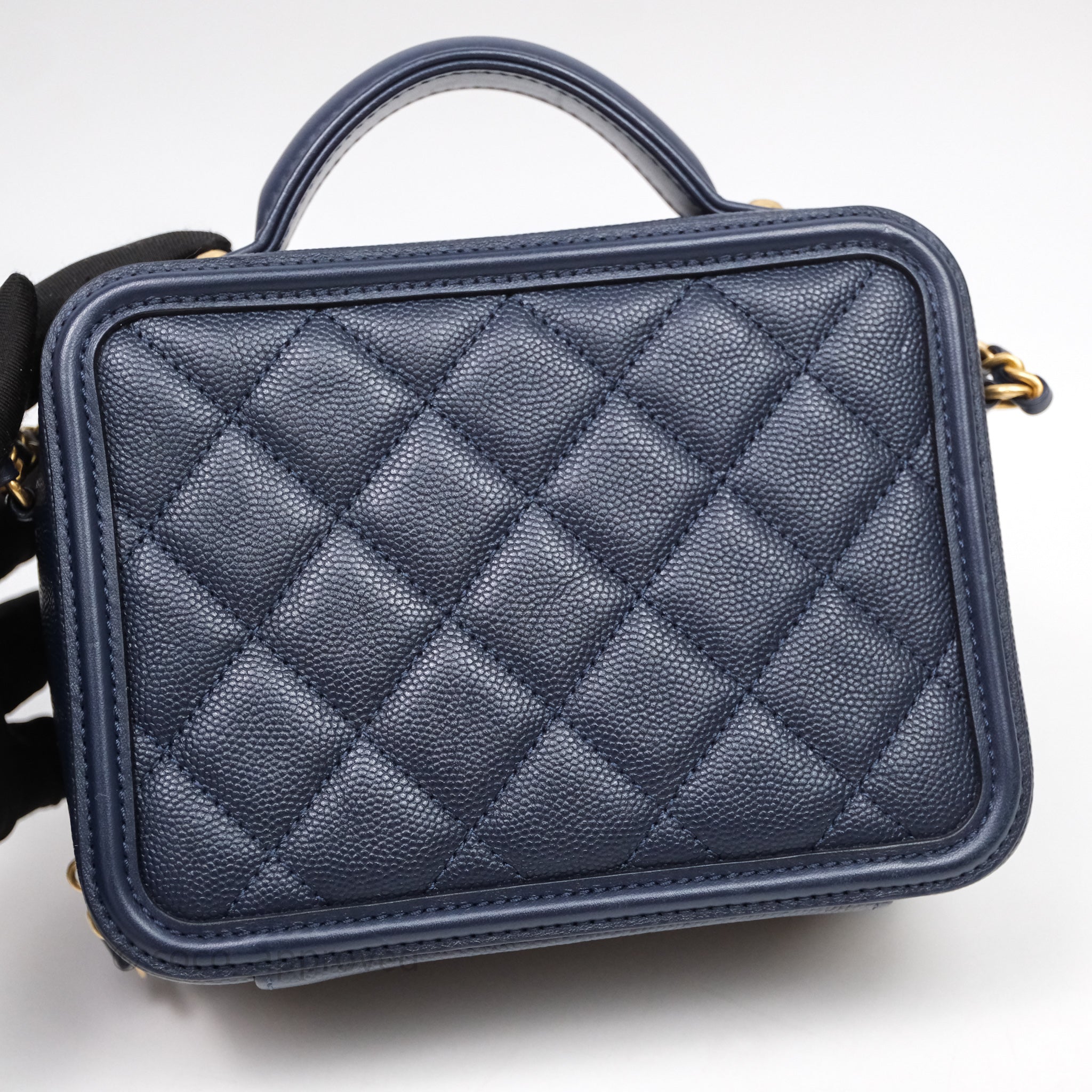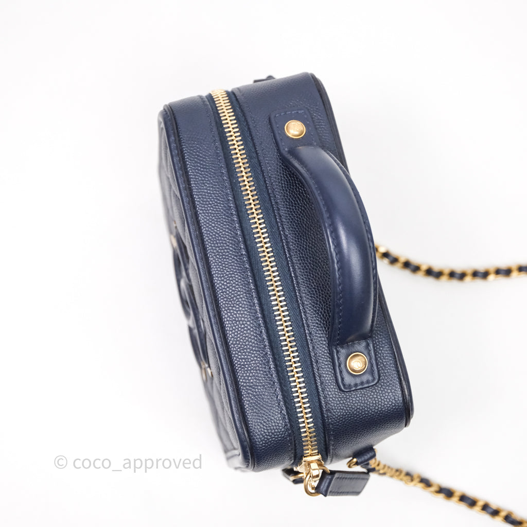 Chanel Quilted Small CC Filigree Vanity Case Navy Caviar Gold Hardware