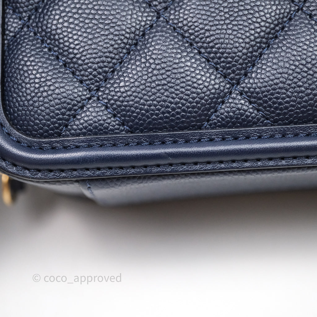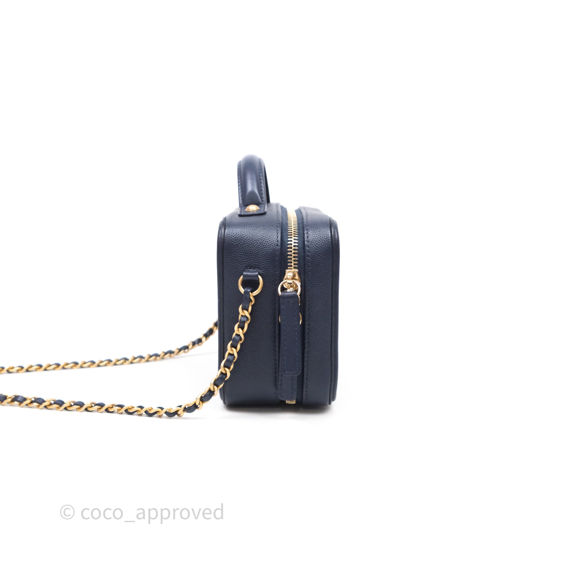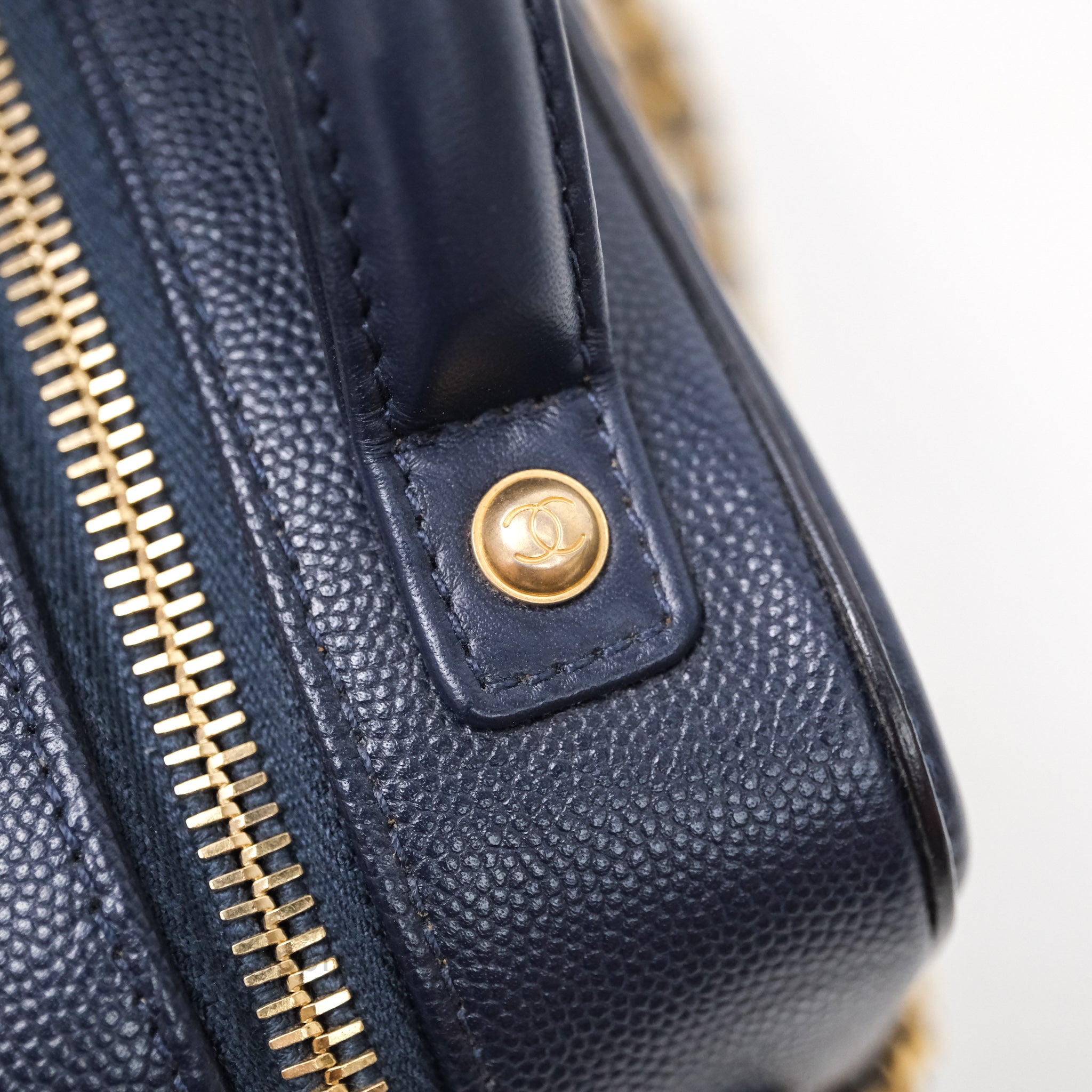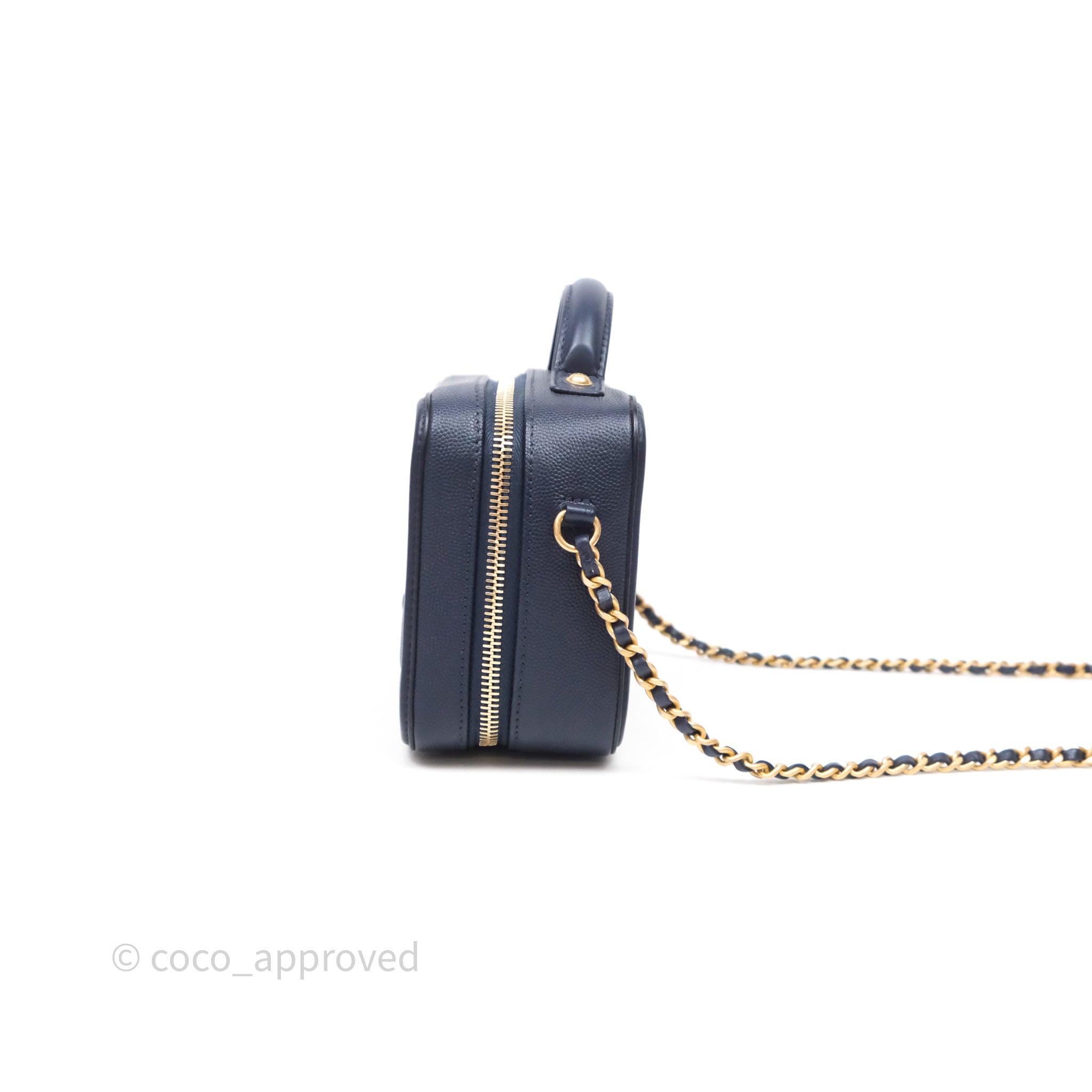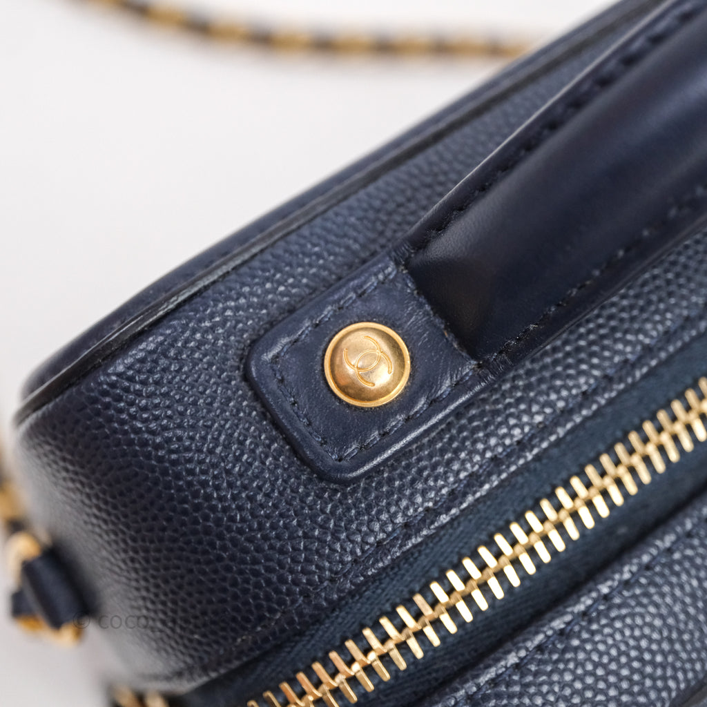 Chanel Quilted Small CC Filigree Vanity Case Navy Caviar Gold Hardware