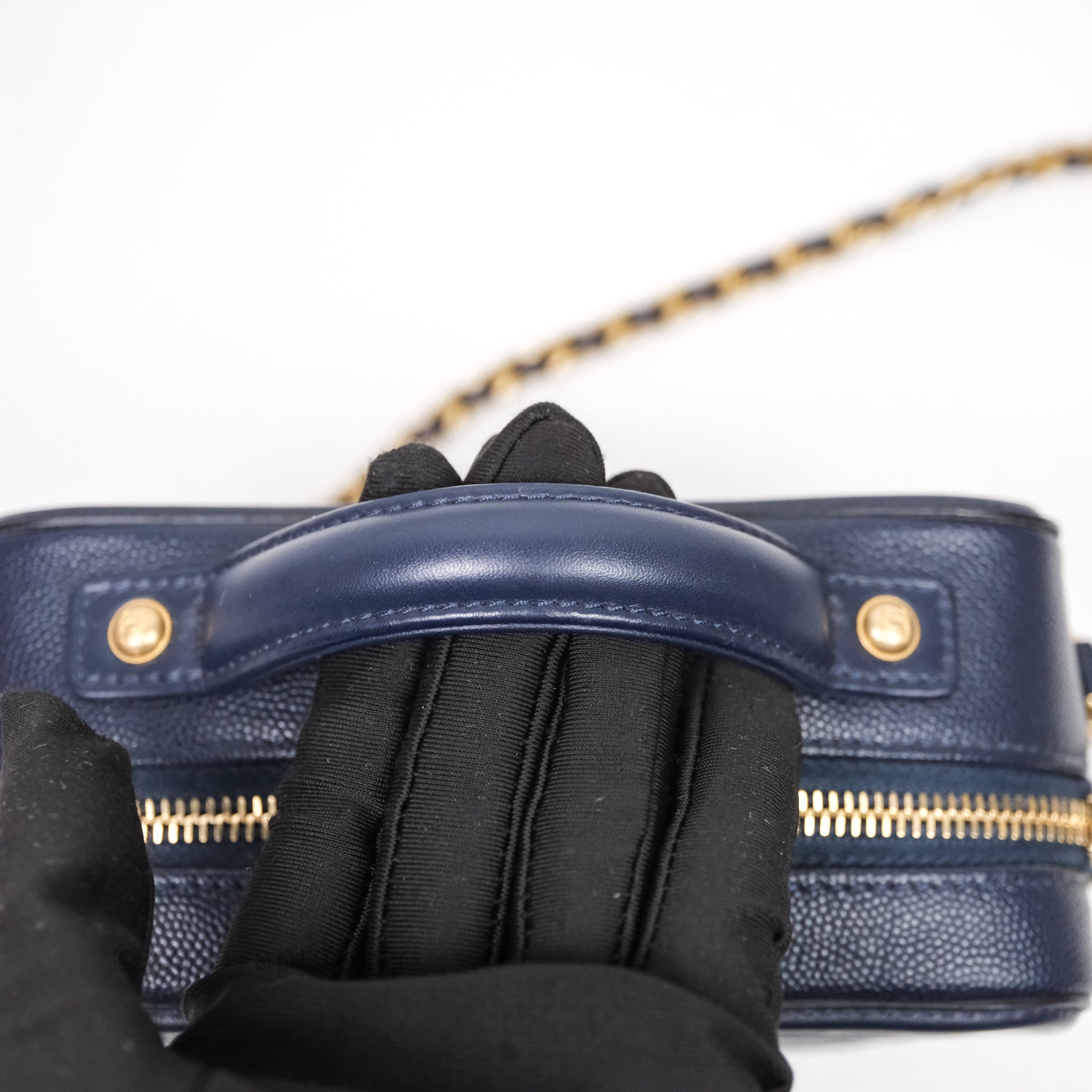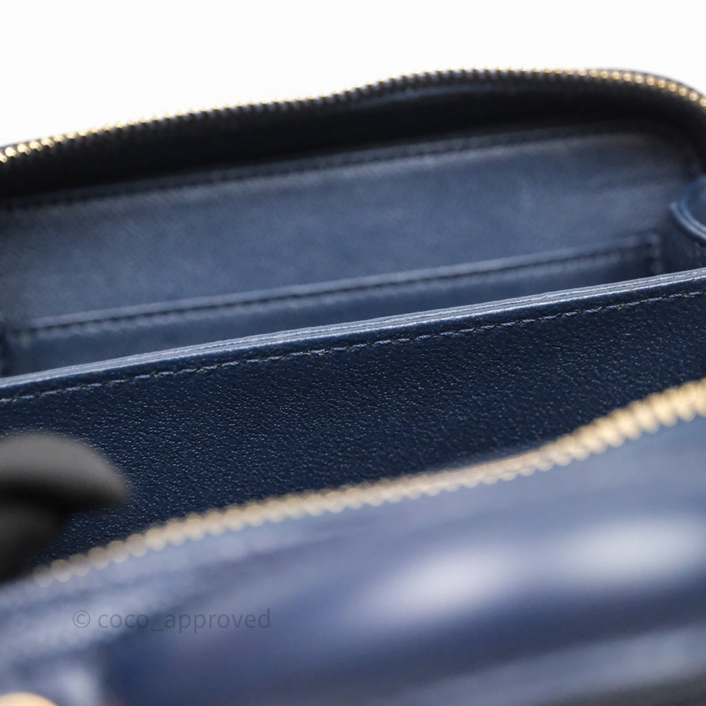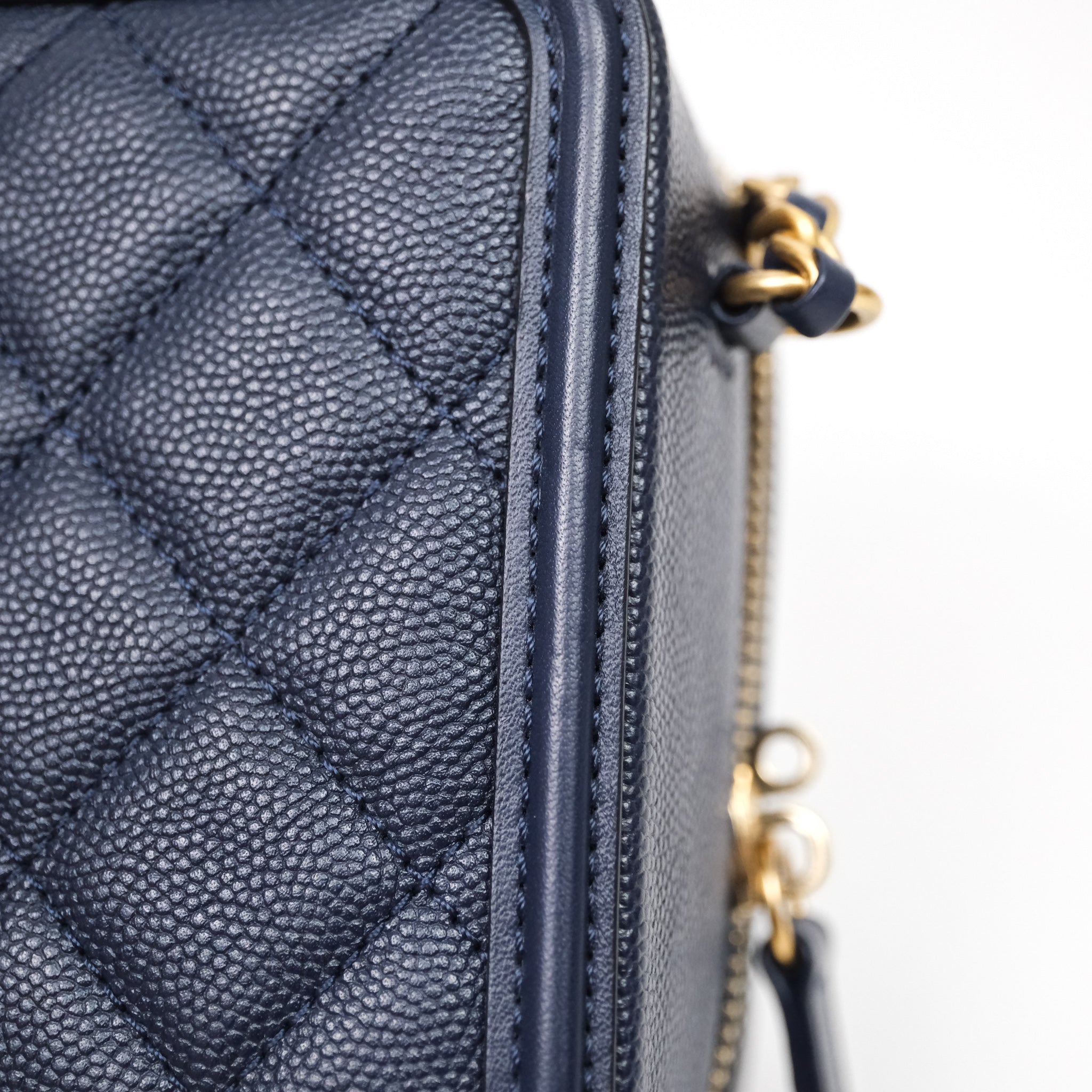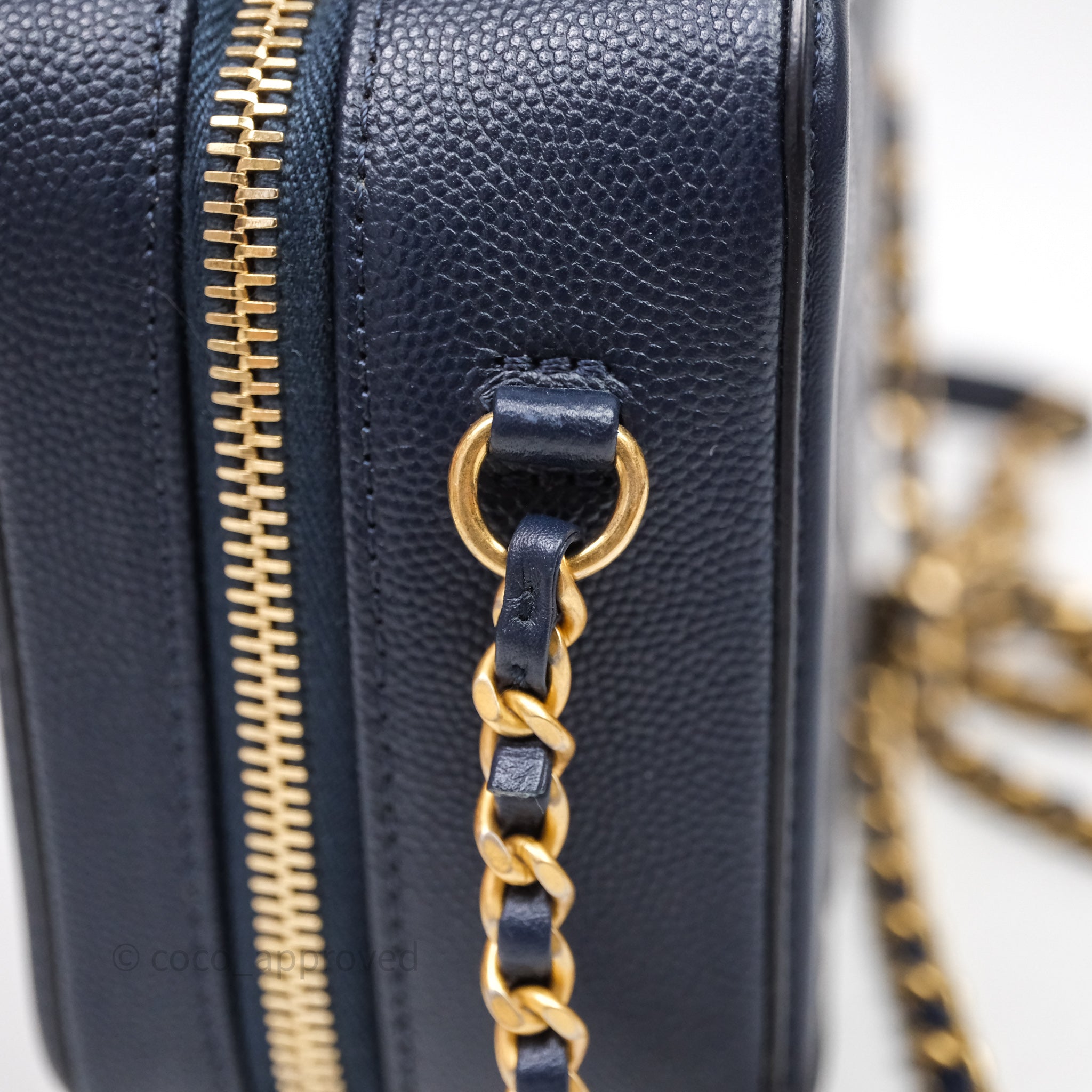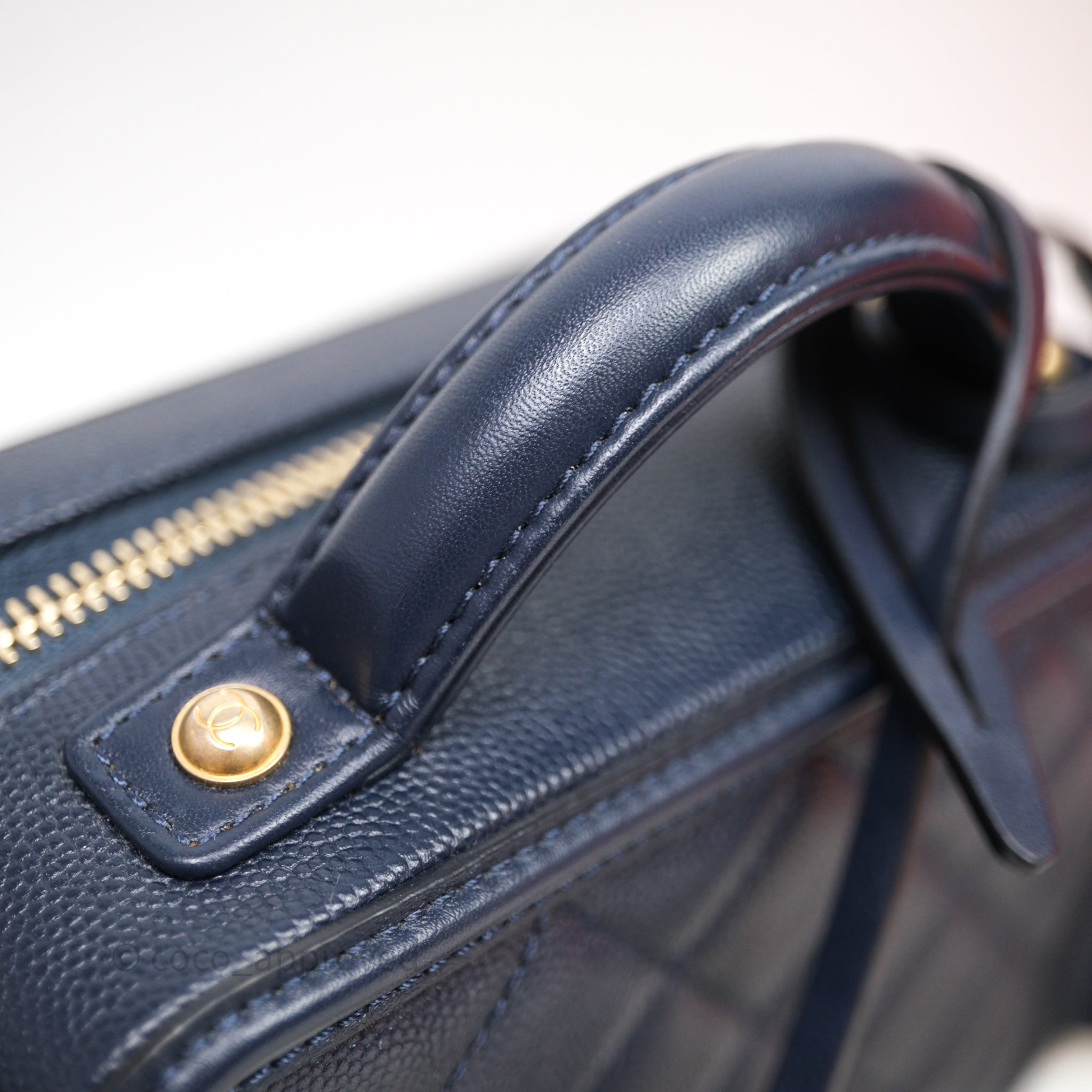 Chanel Quilted Small CC Filigree Vanity Case Navy Caviar Gold Hardware