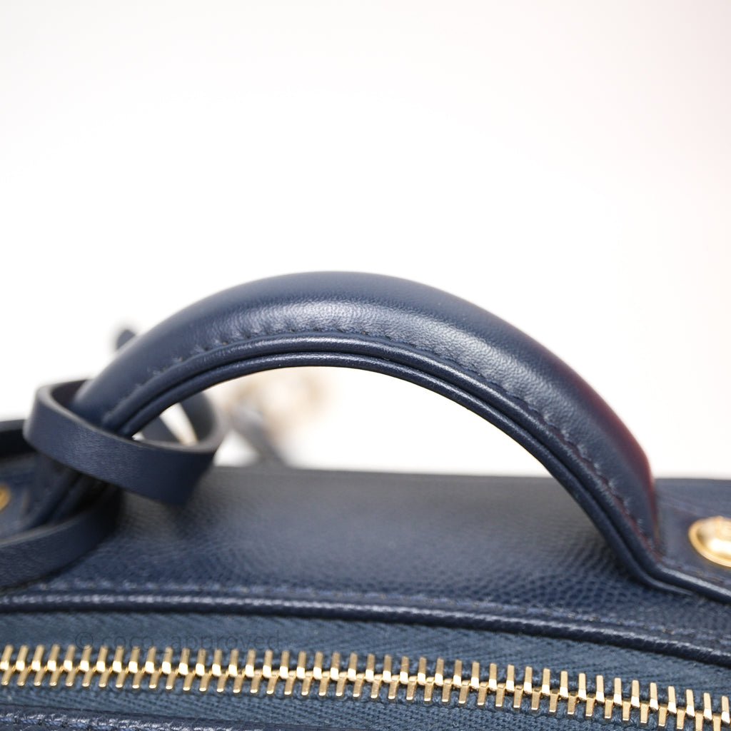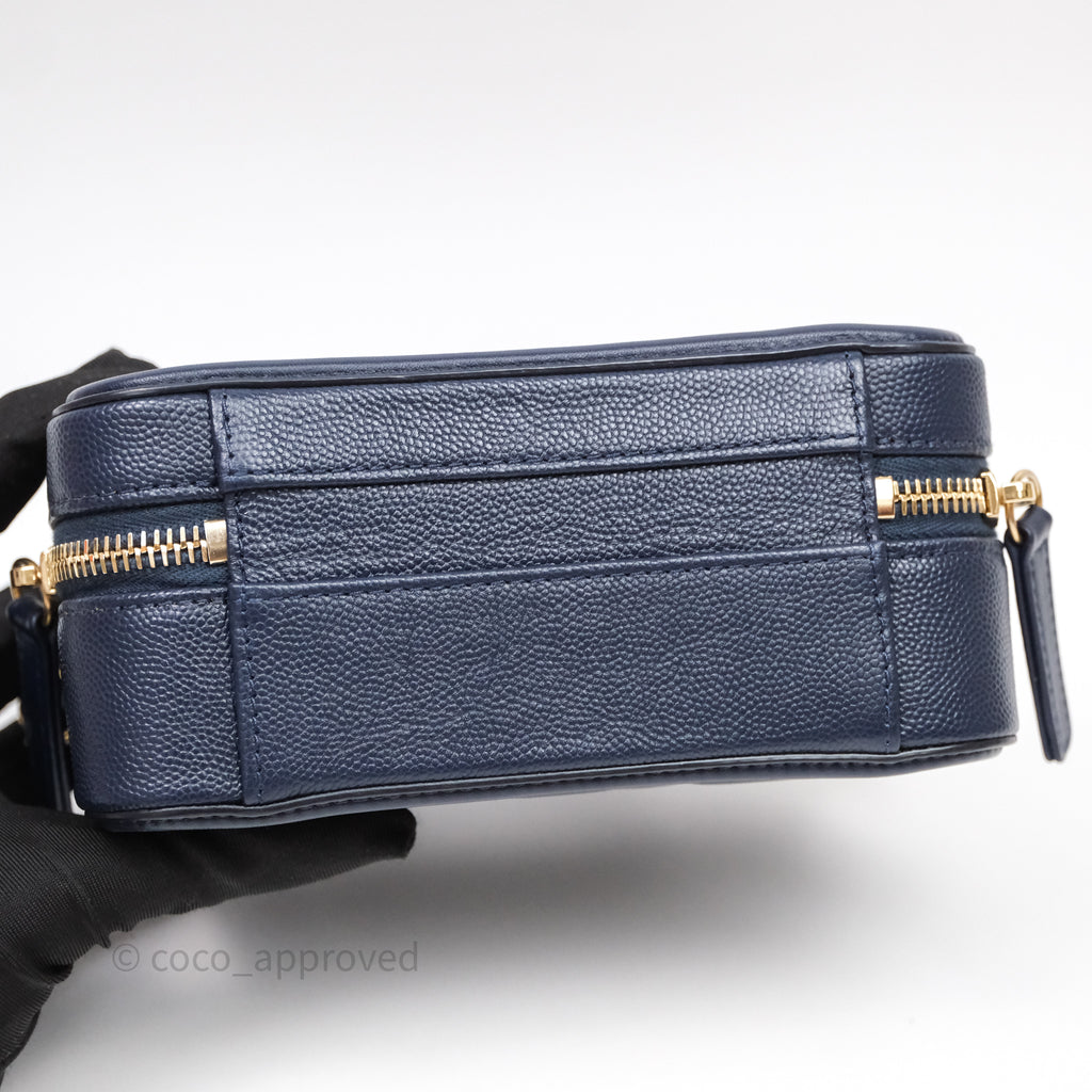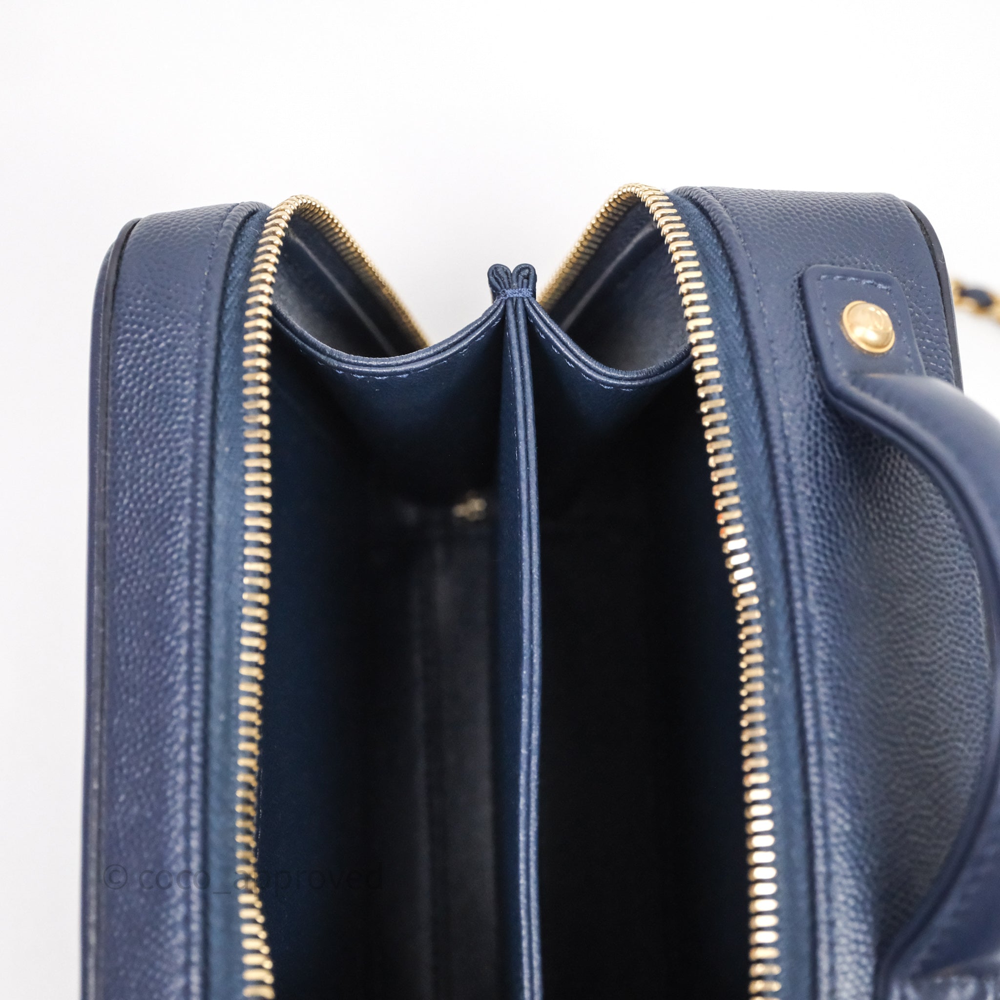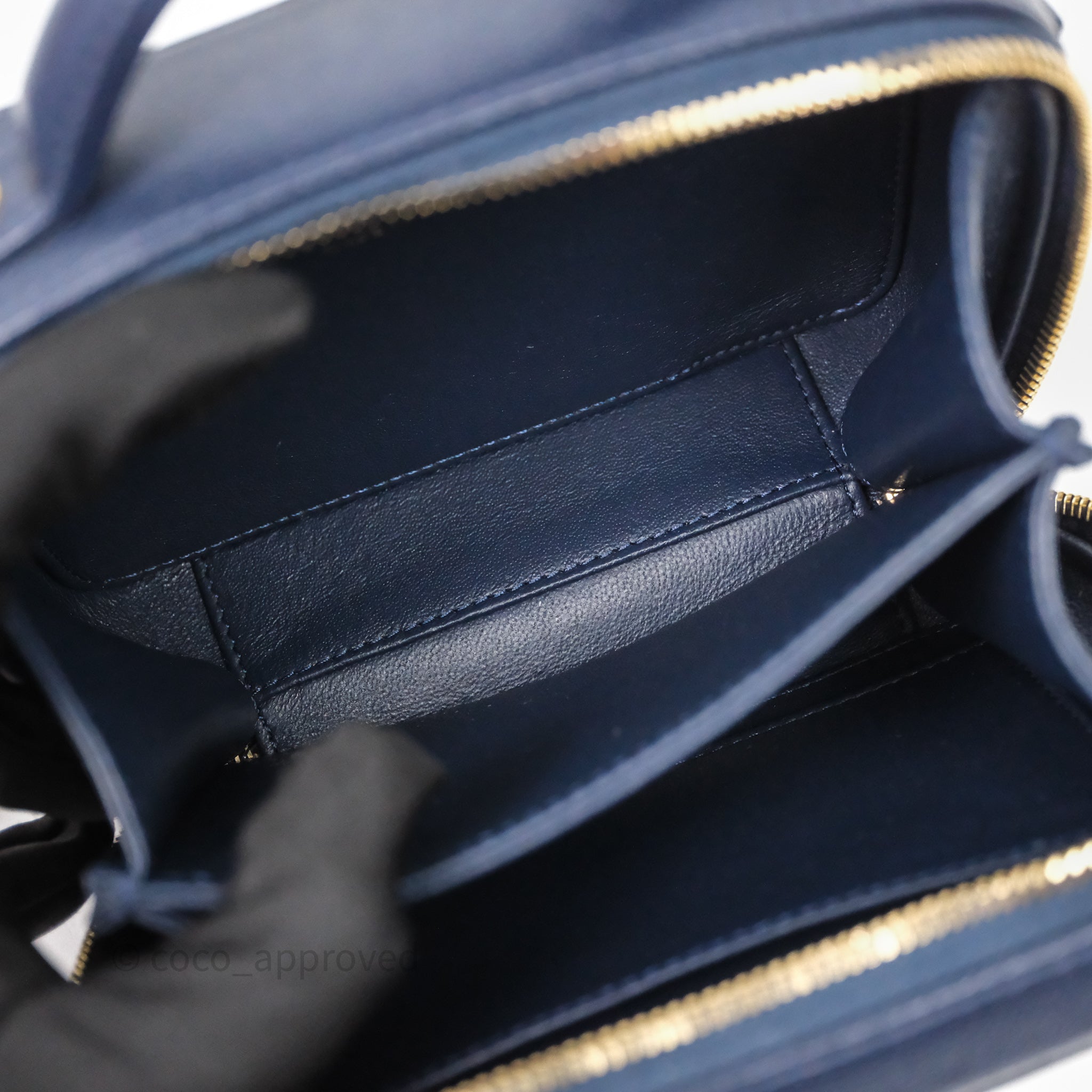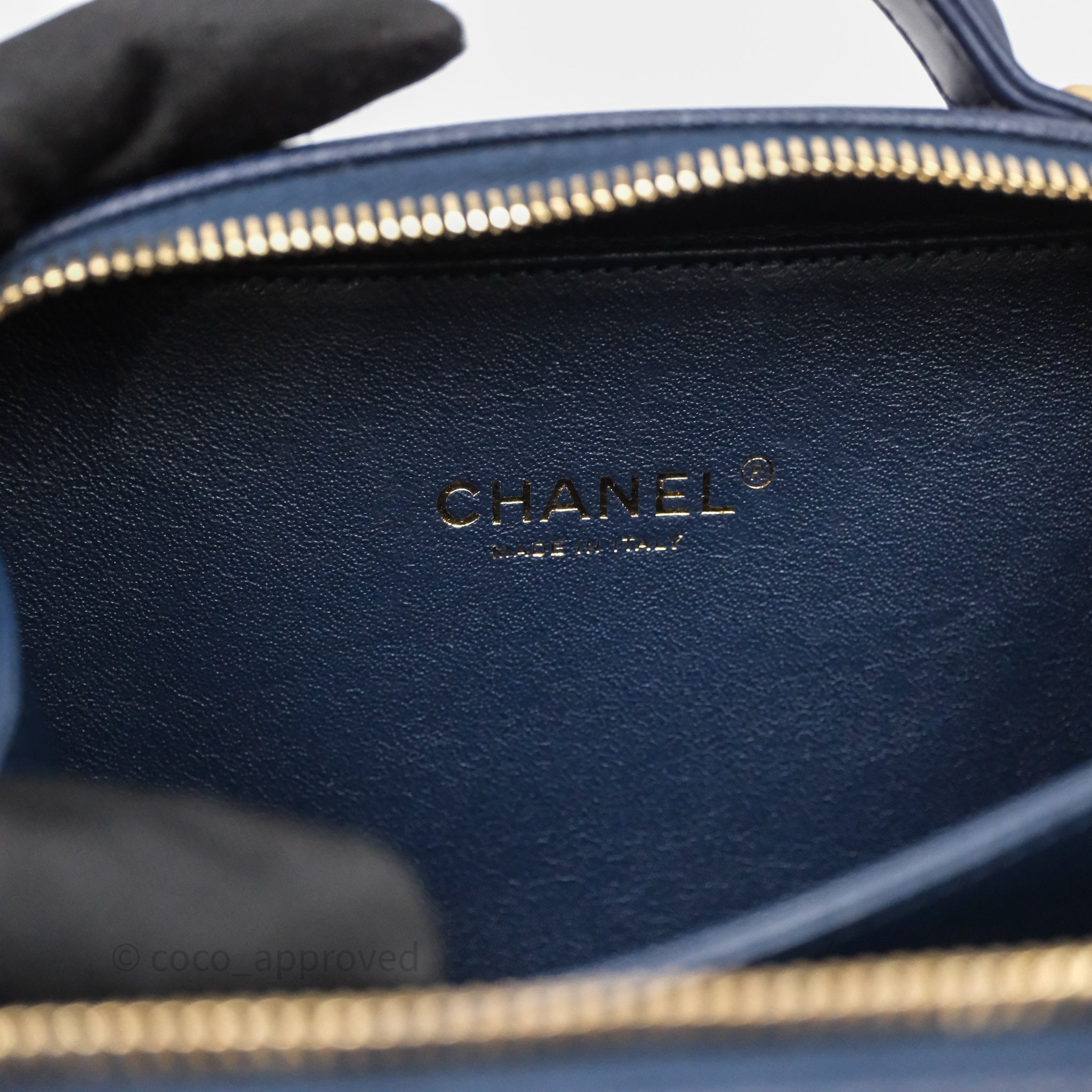 Chanel Quilted Small CC Filigree Vanity Case Navy Caviar Gold Hardware