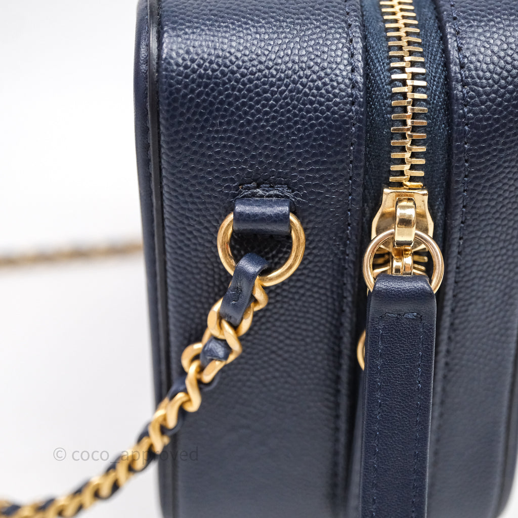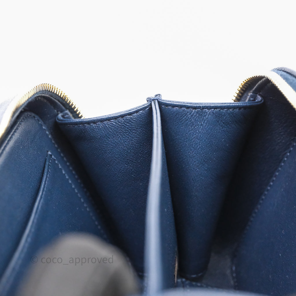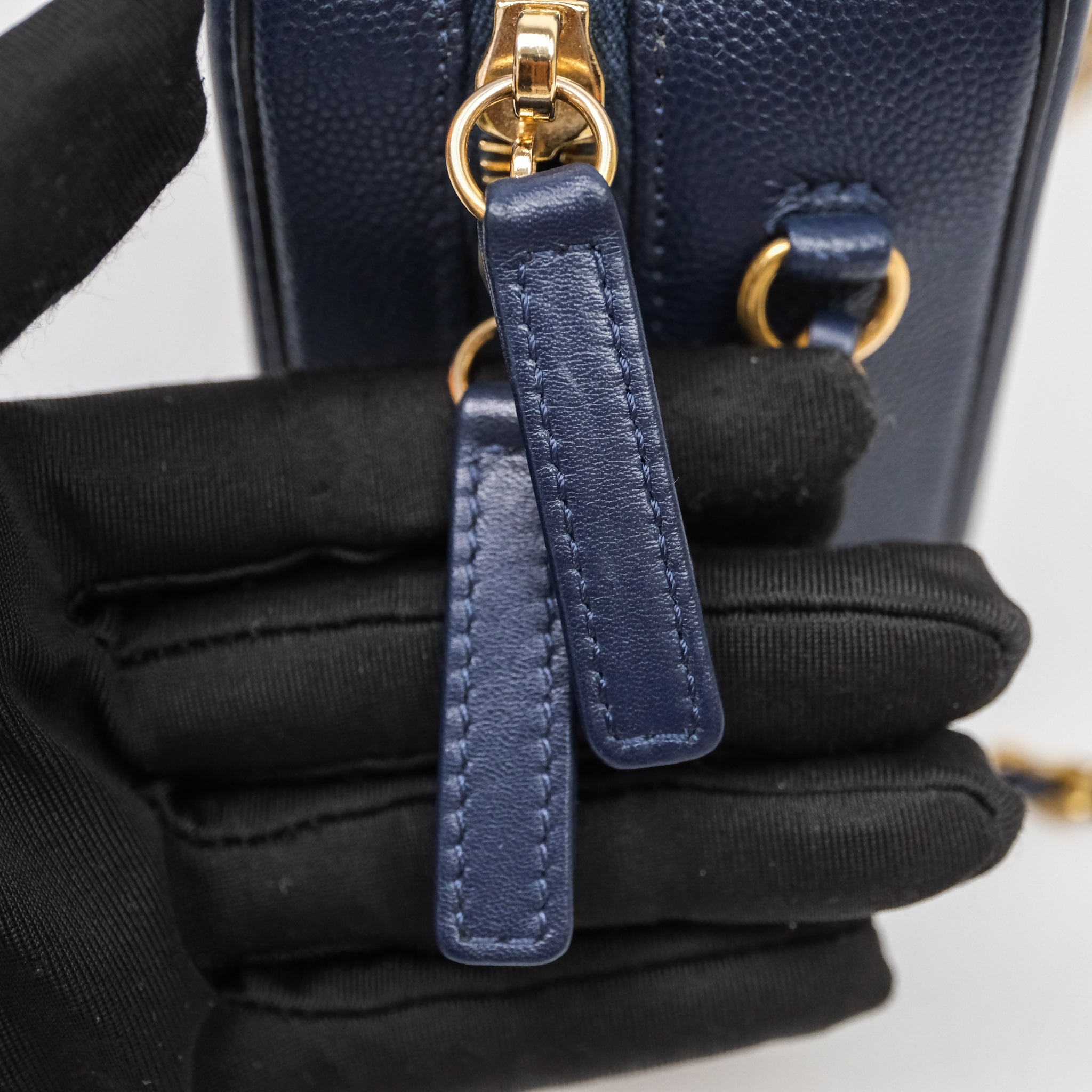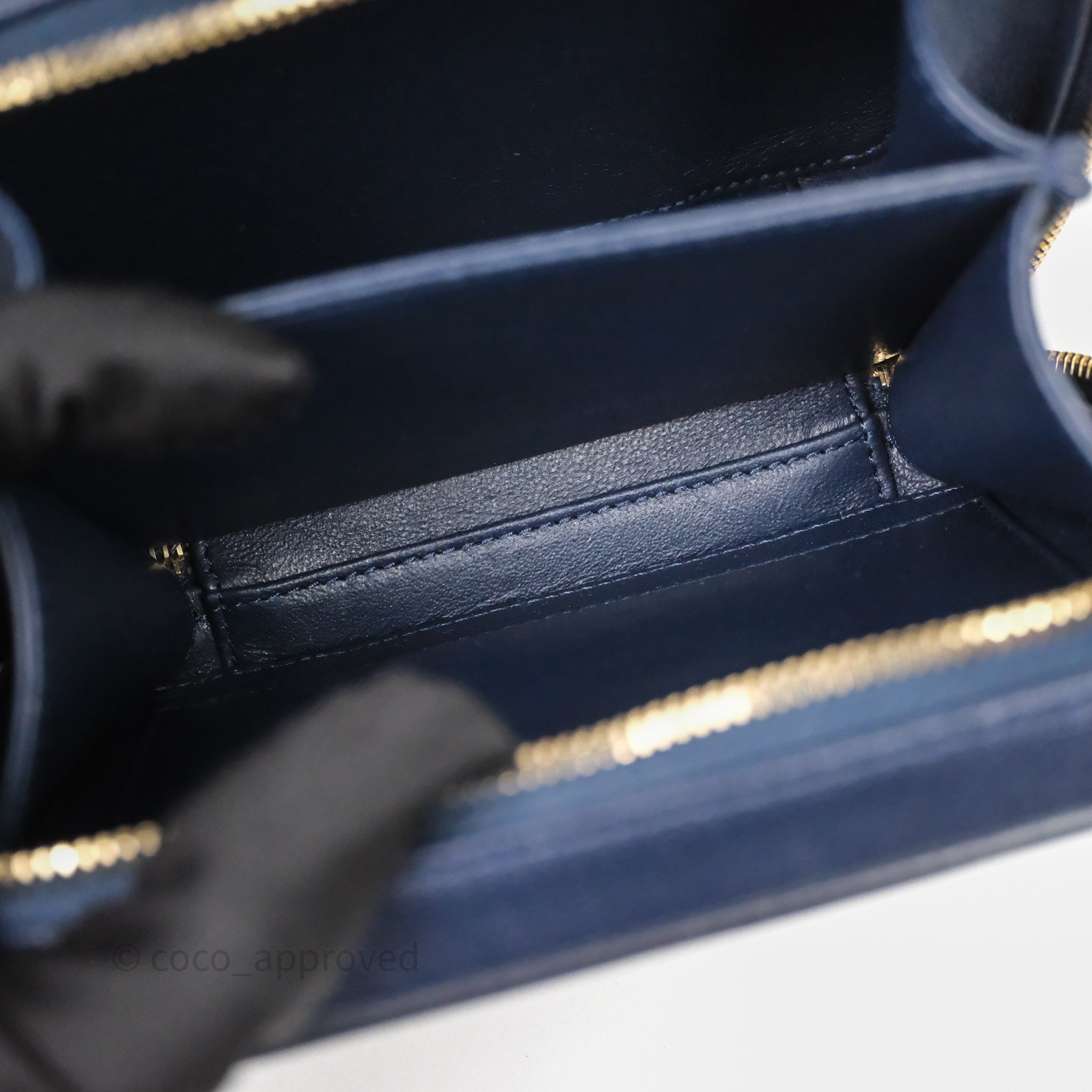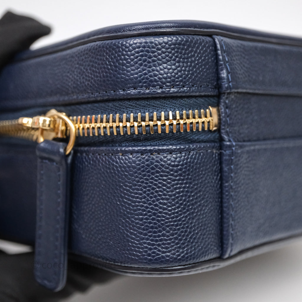 Chanel Quilted Small CC Filigree Vanity Case Navy Caviar Gold Hardware