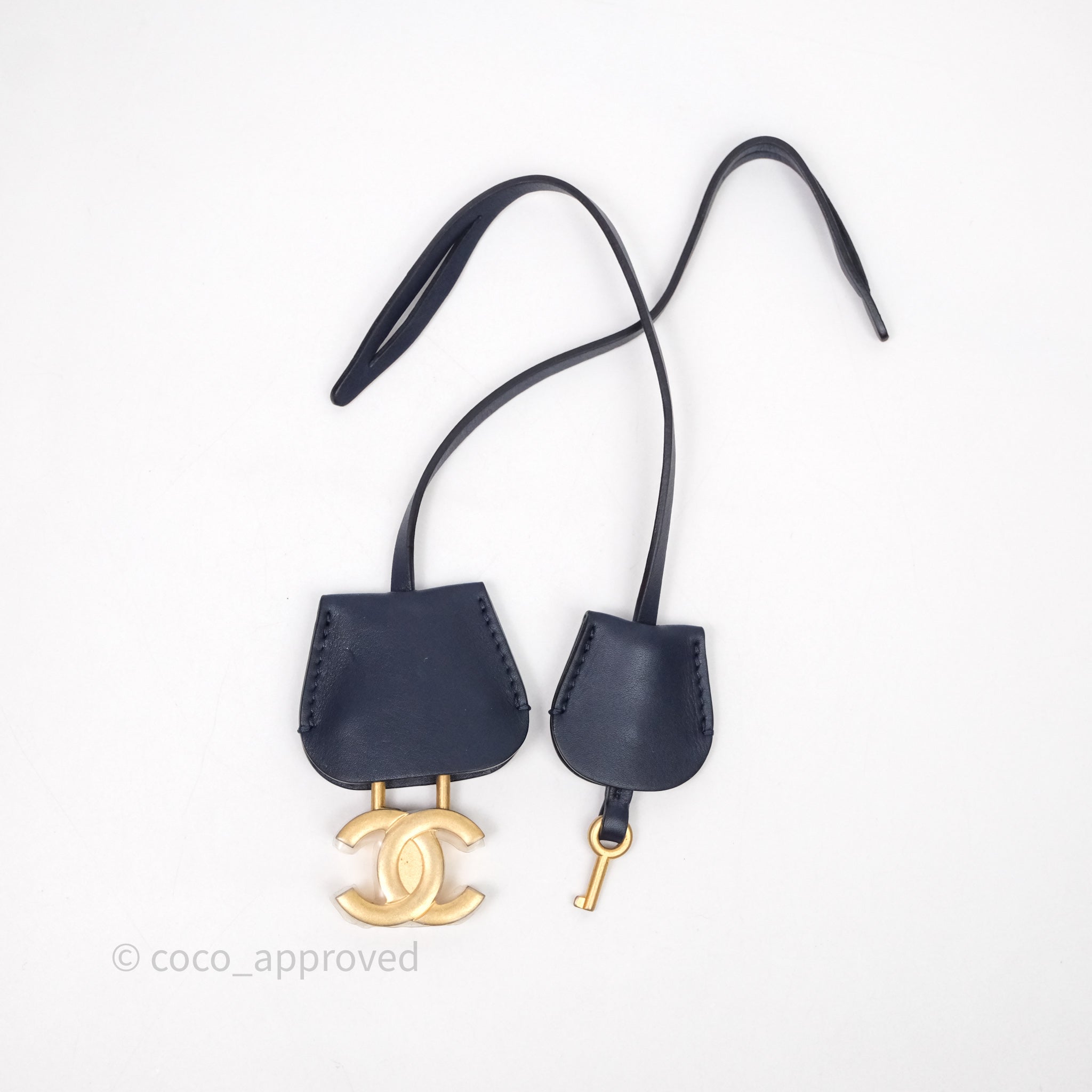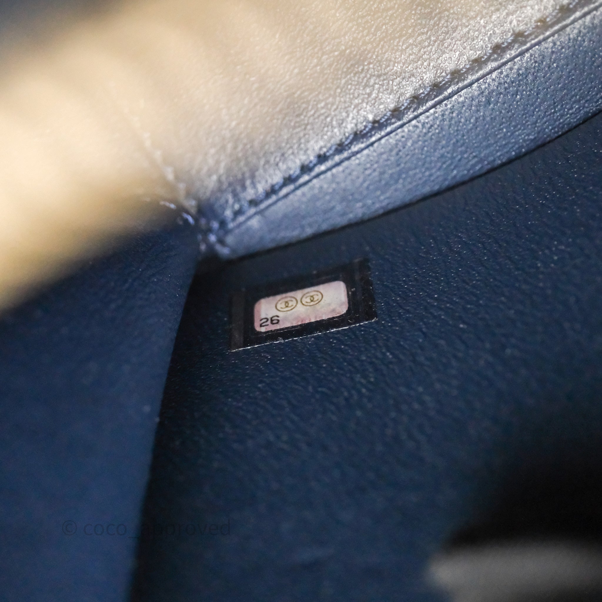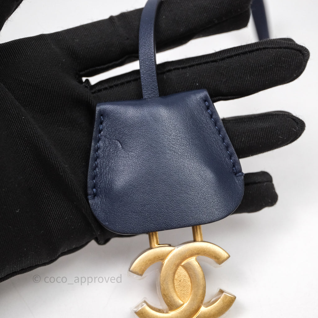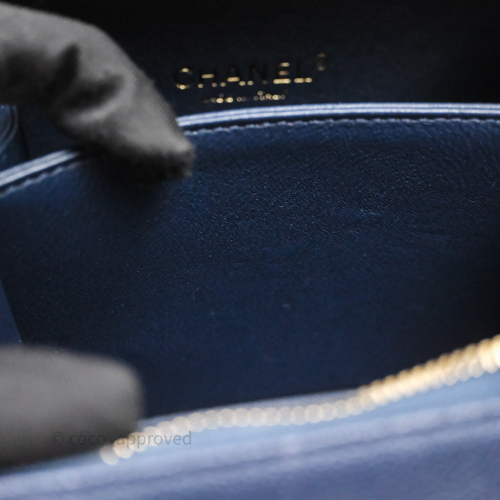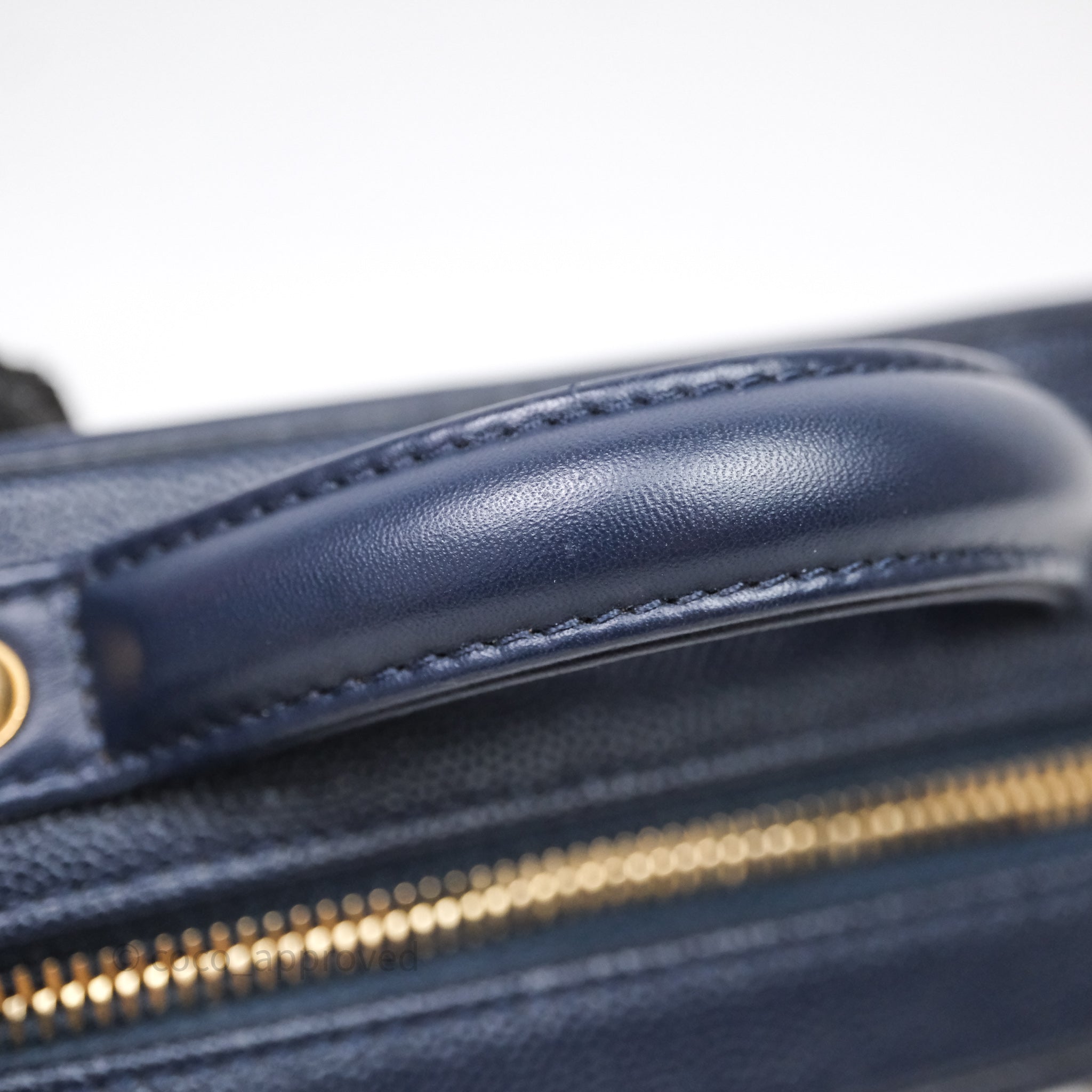 Chanel Quilted Small CC Filigree Vanity Case Navy Caviar Gold Hardware