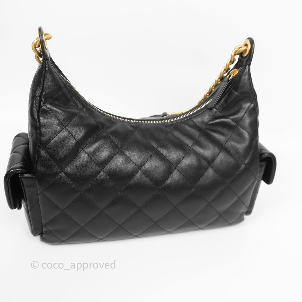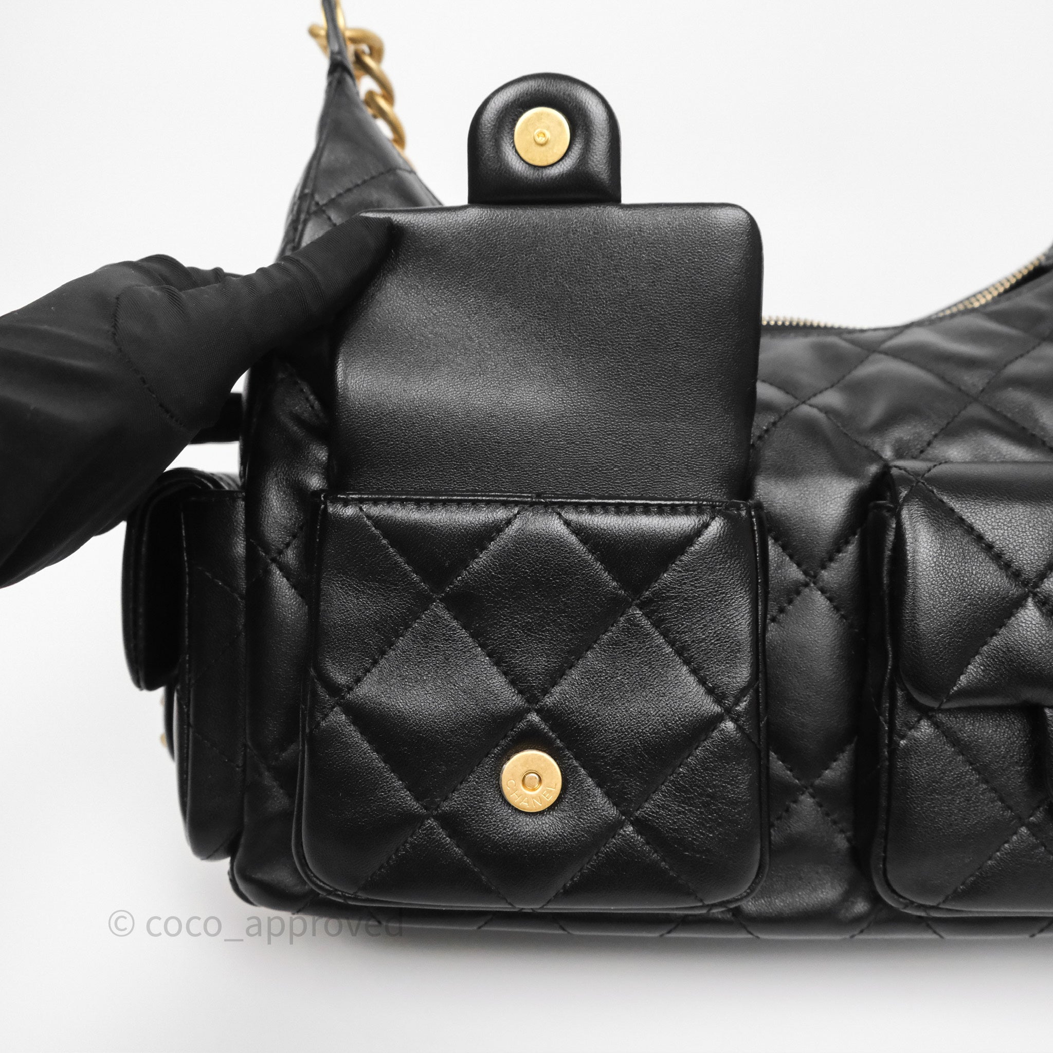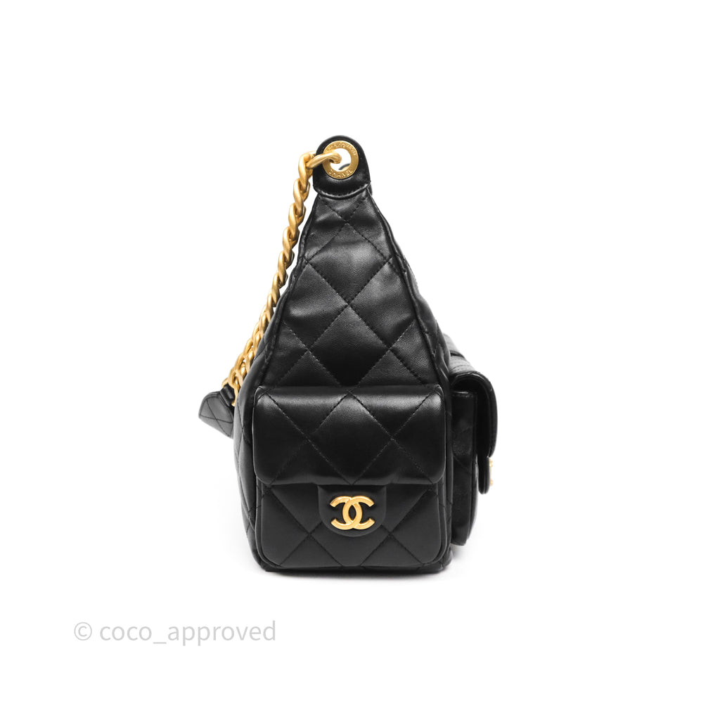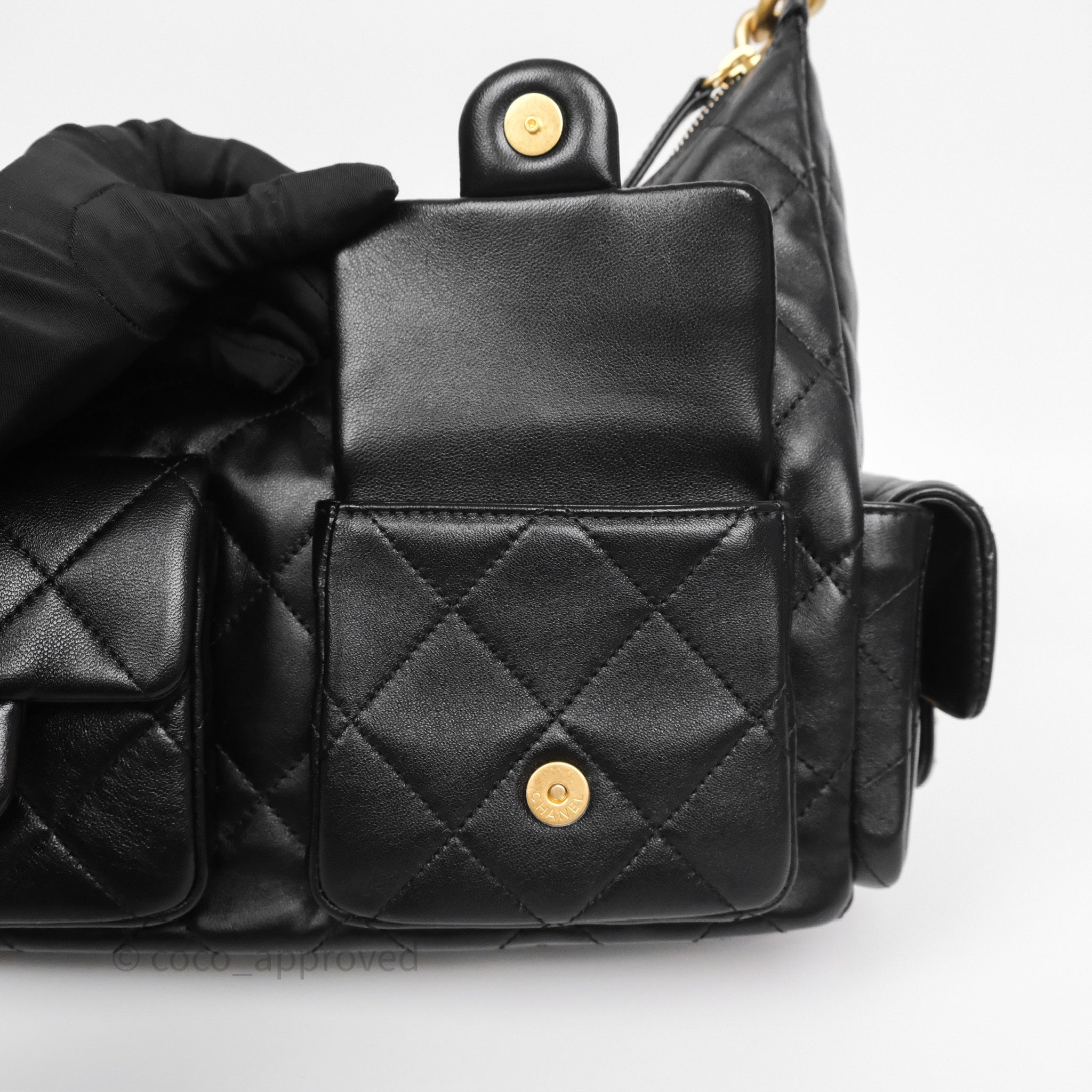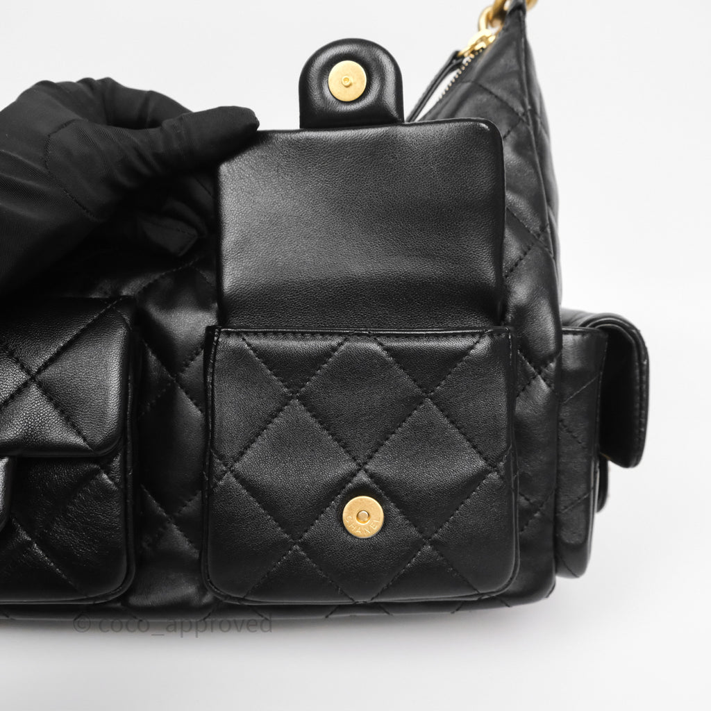 Chanel Quilted Large Trendy Double Pocket Hobo Black Lambskin Gold Hardware