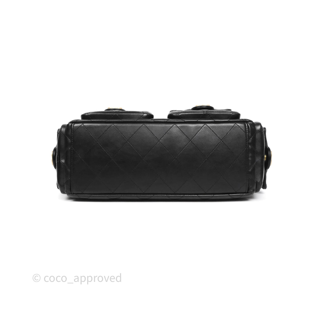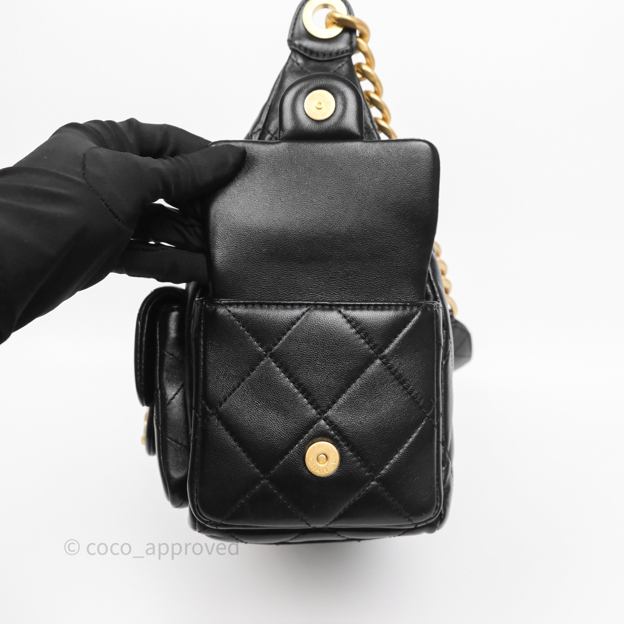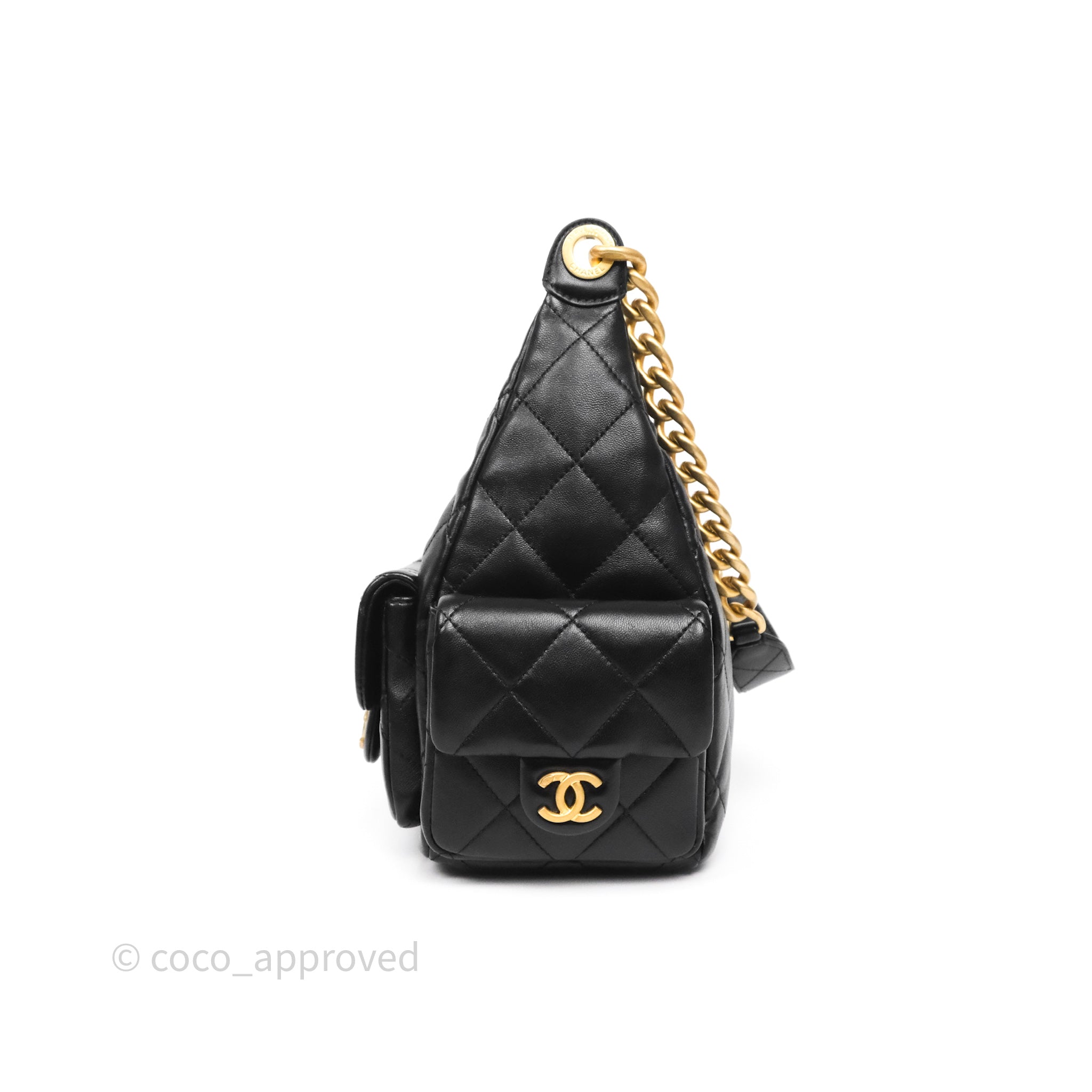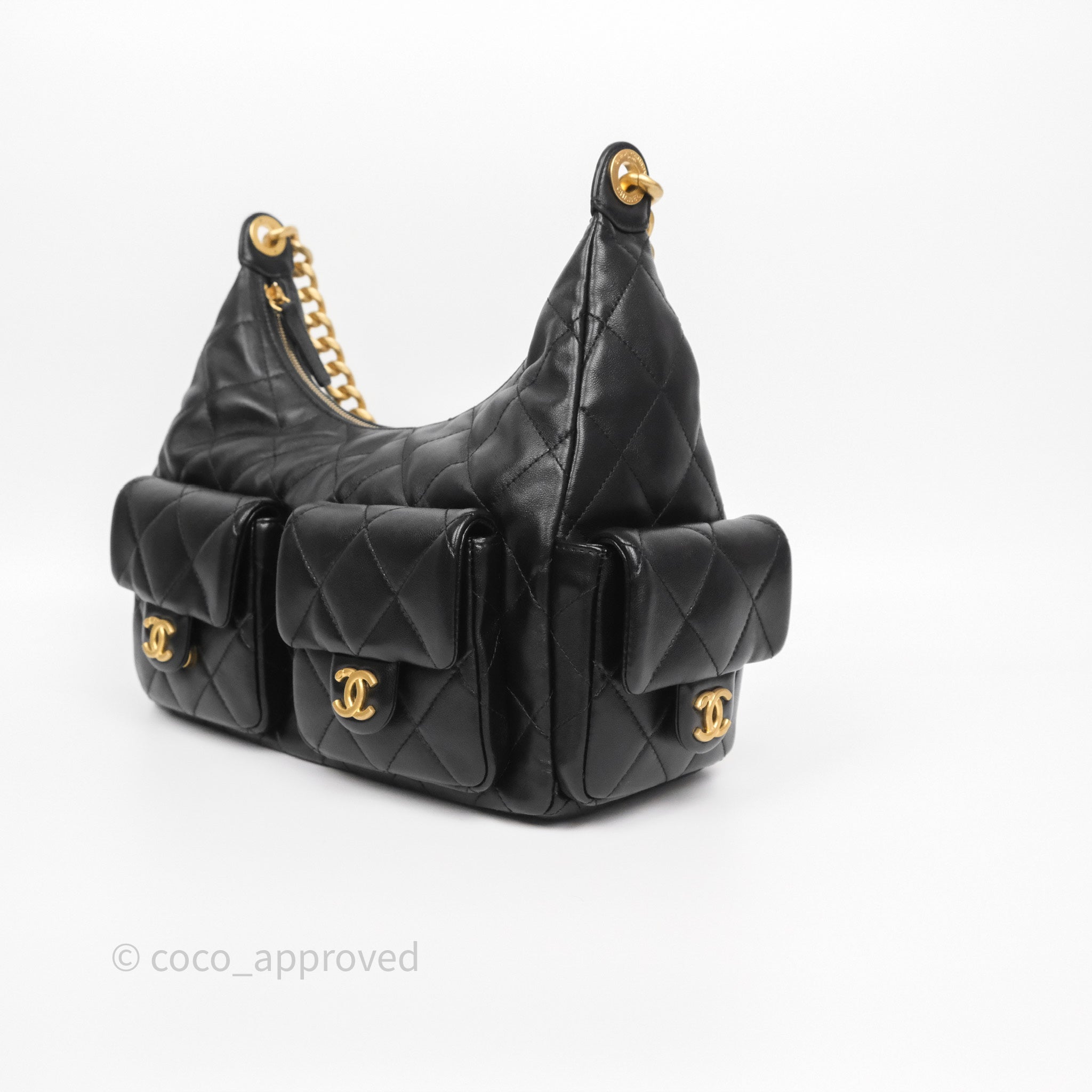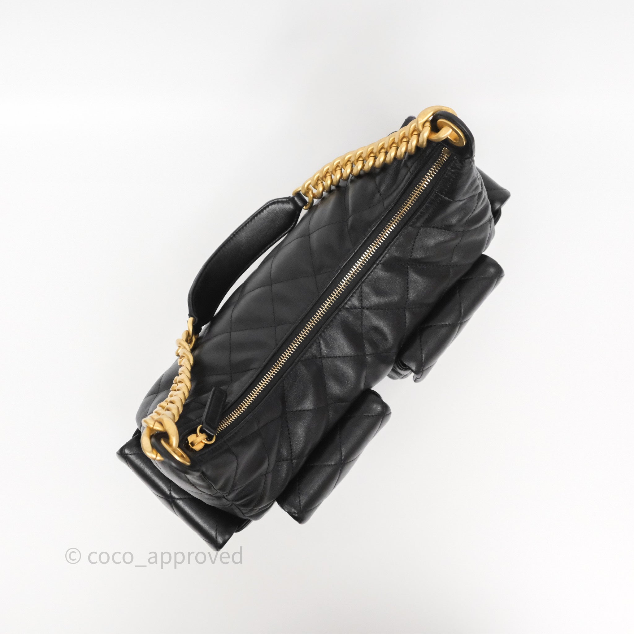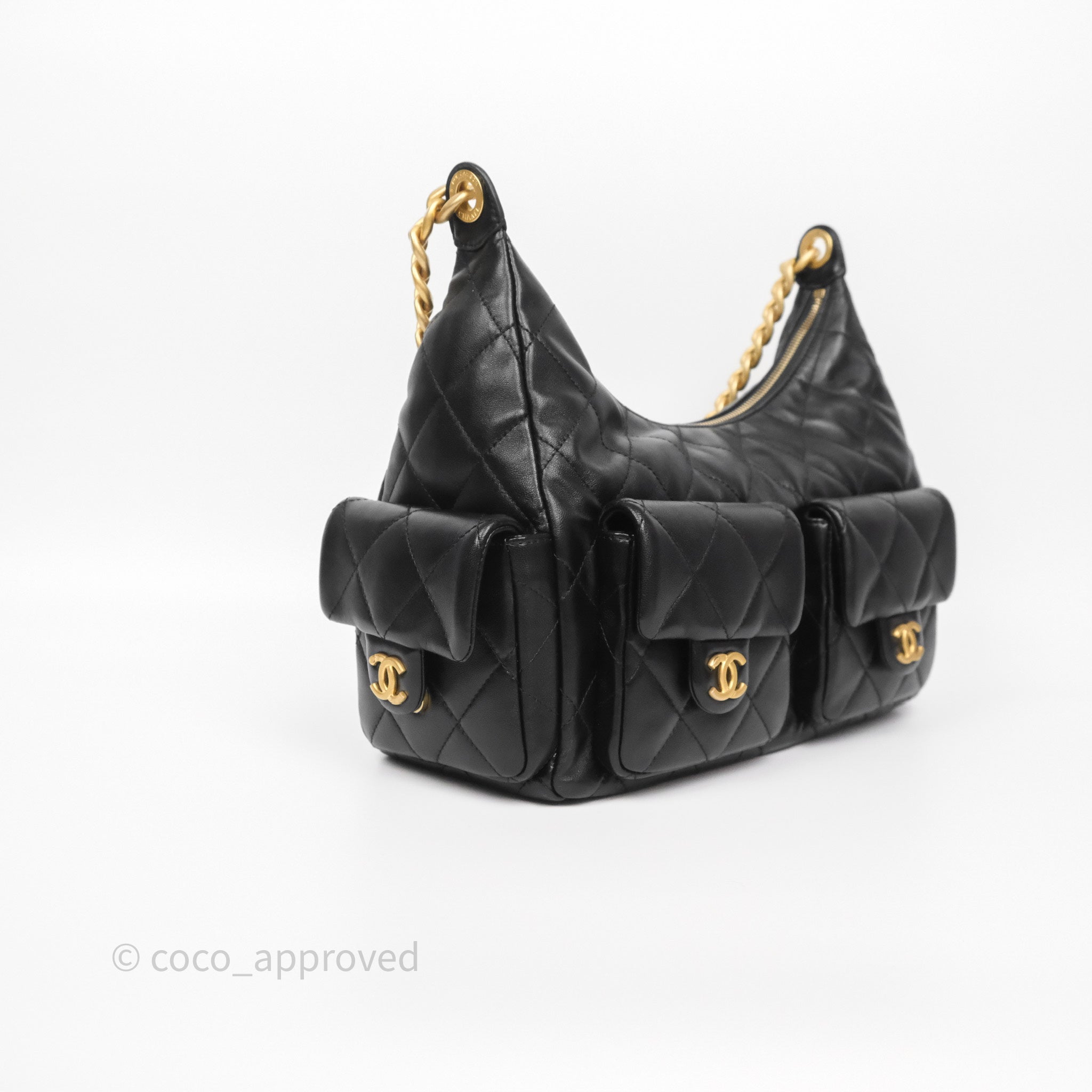 Chanel Quilted Large Trendy Double Pocket Hobo Black Lambskin Gold Hardware