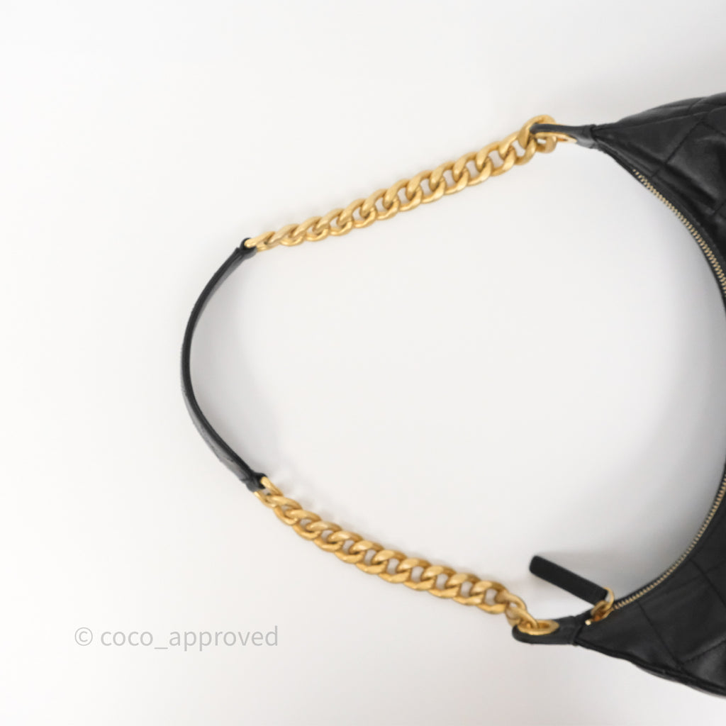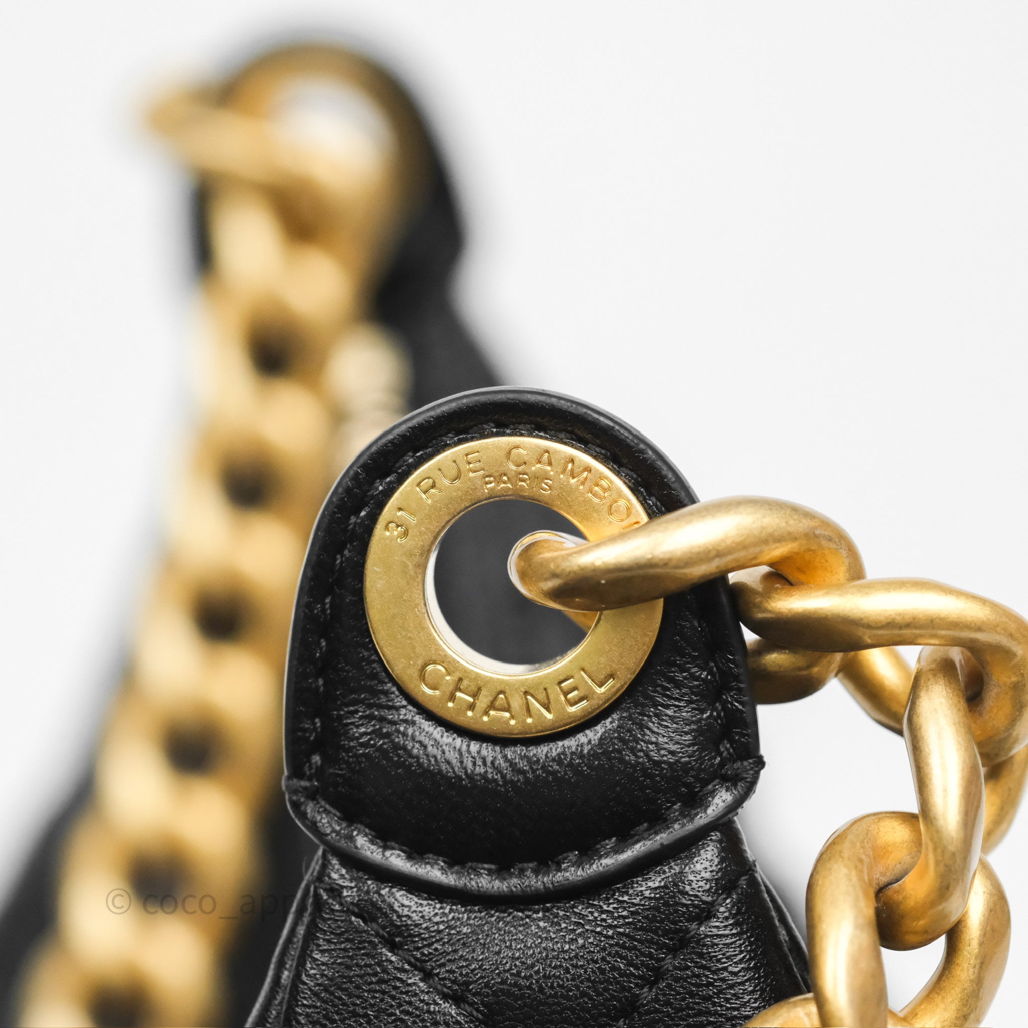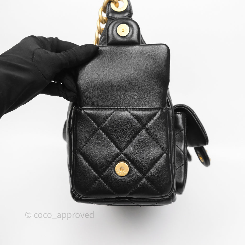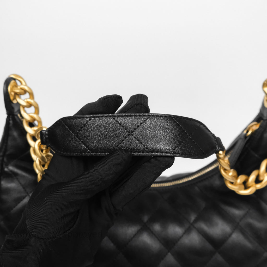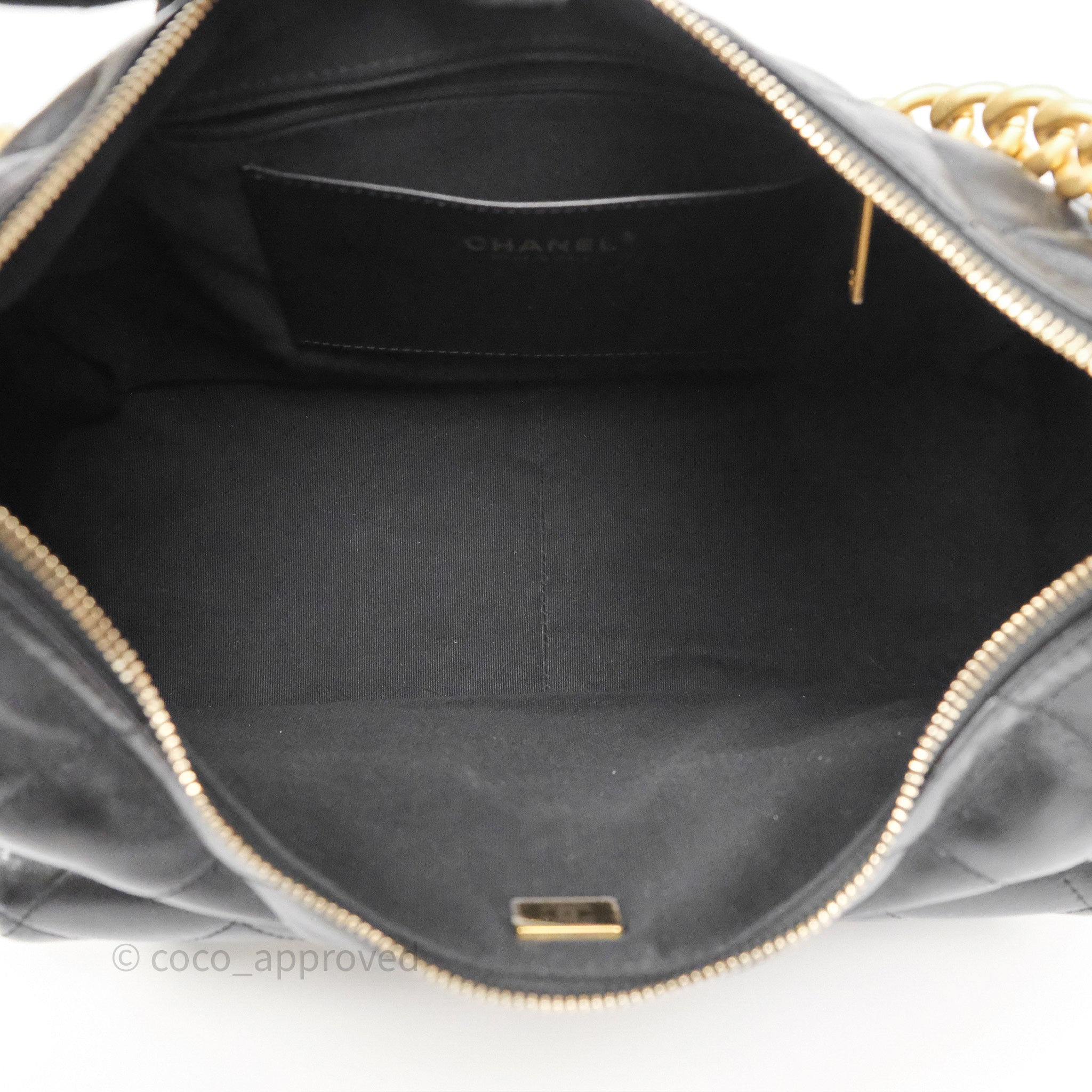 Chanel Quilted Large Trendy Double Pocket Hobo Black Lambskin Gold Hardware