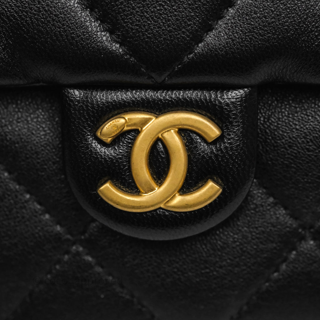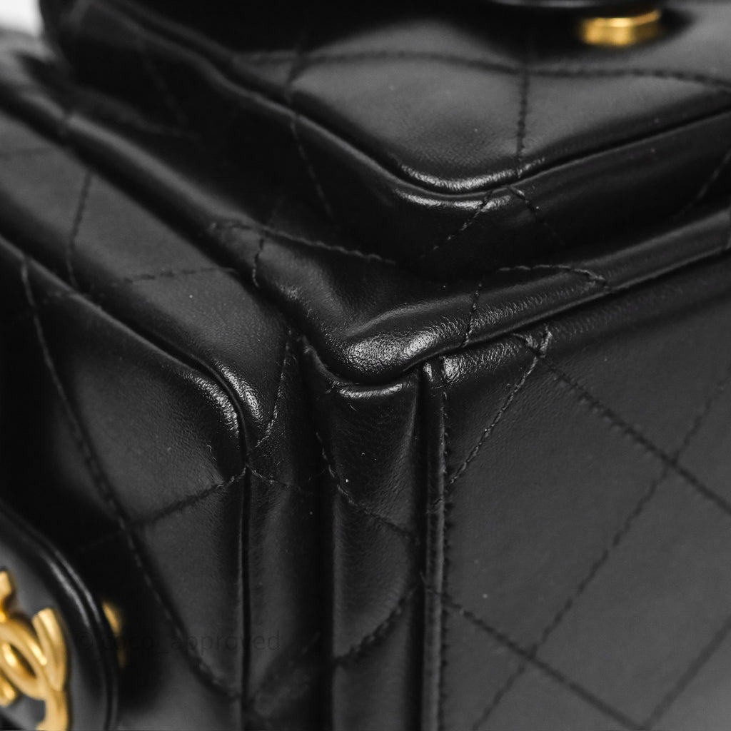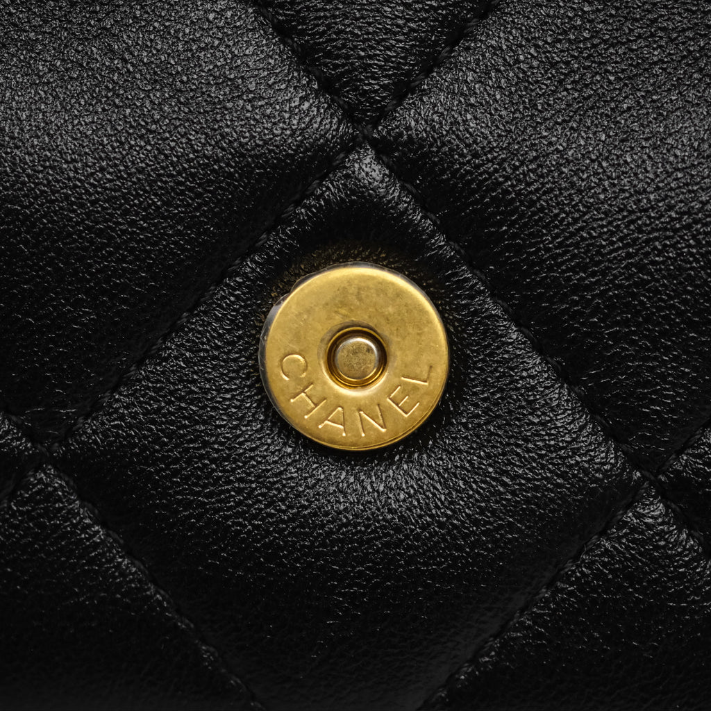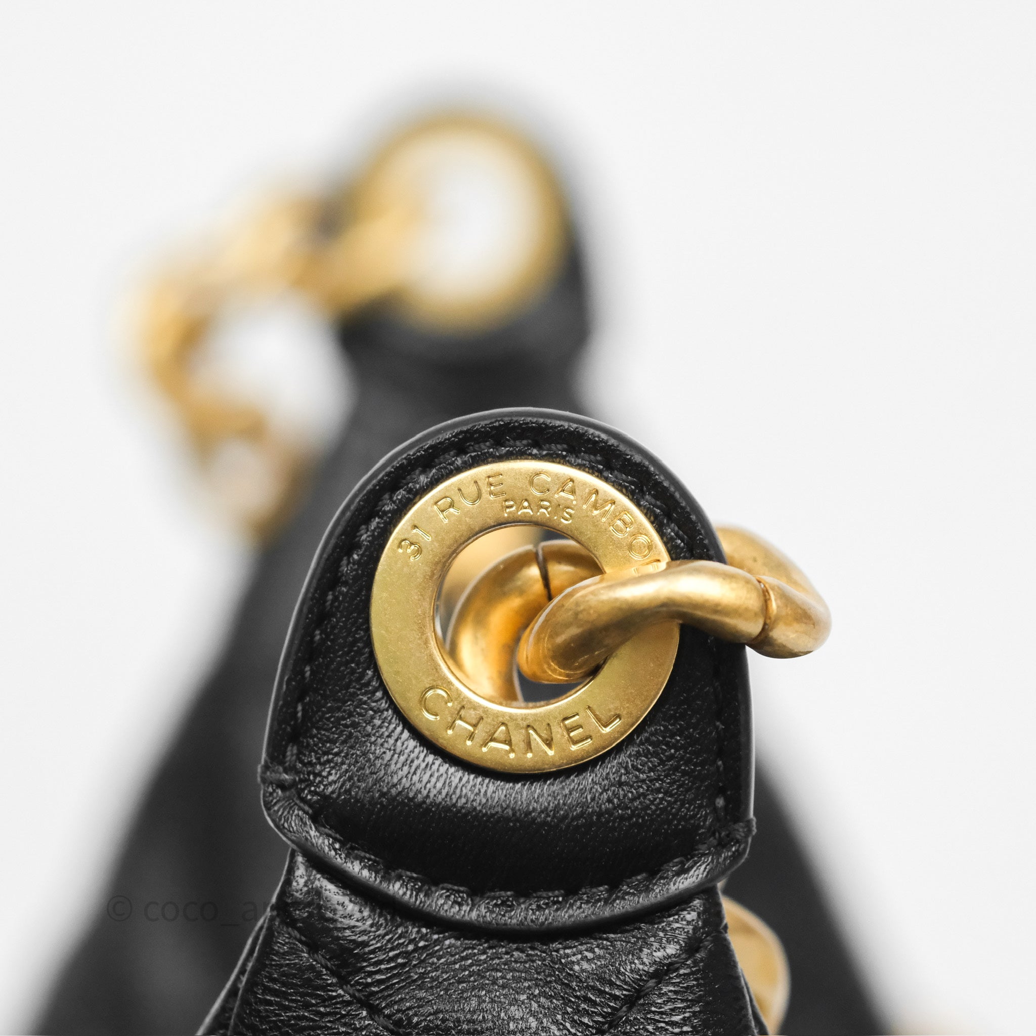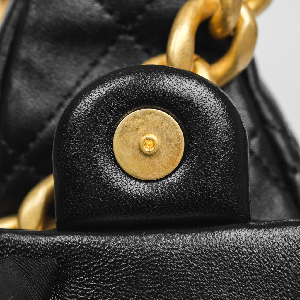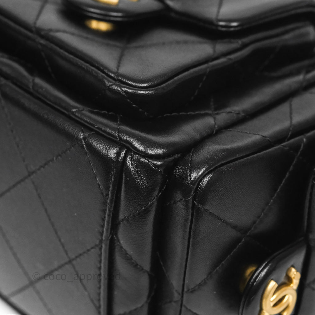 Chanel Quilted Large Trendy Double Pocket Hobo Black Lambskin Gold Hardware