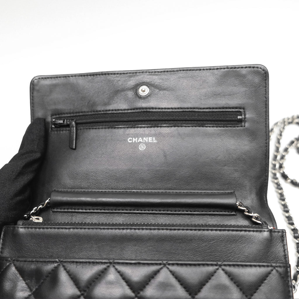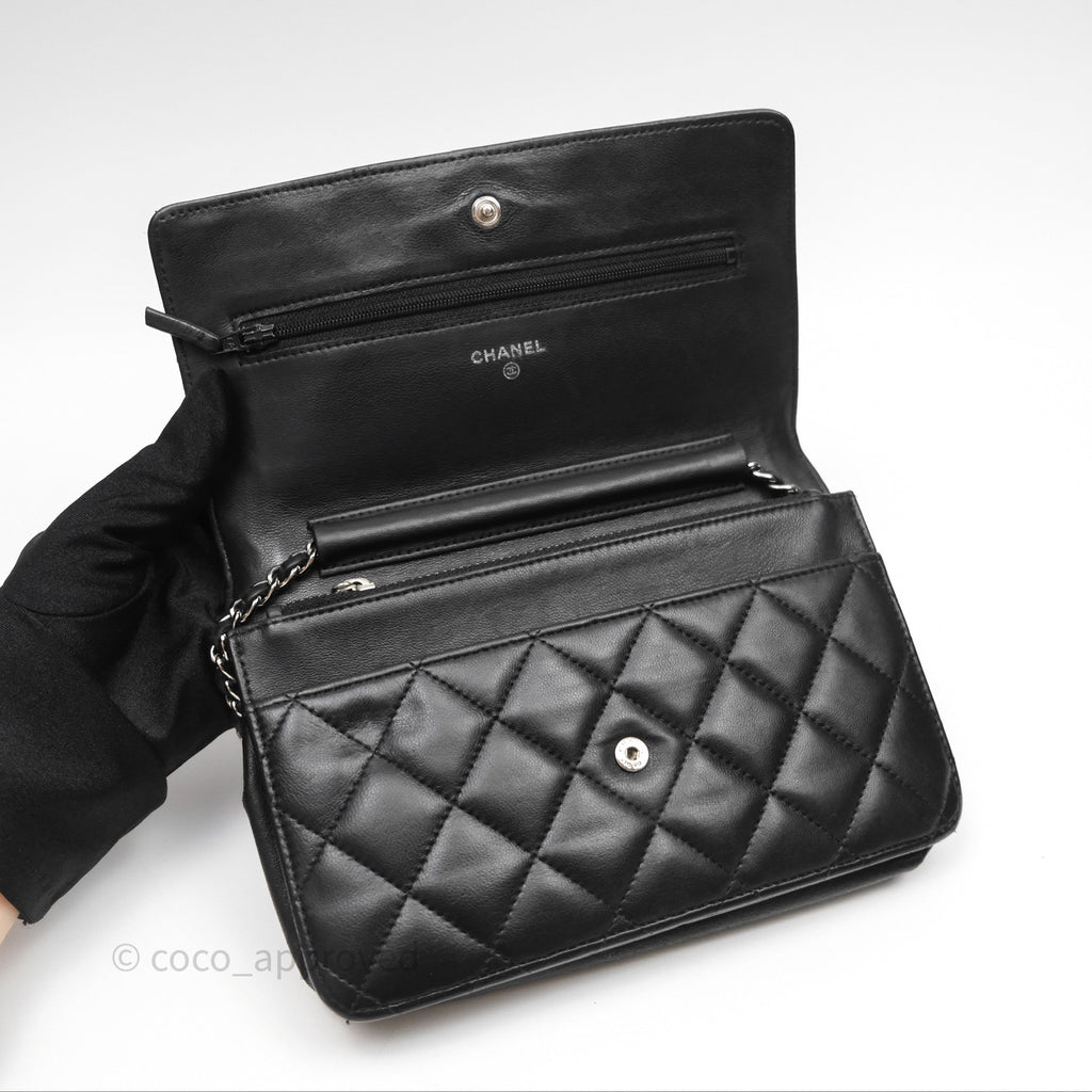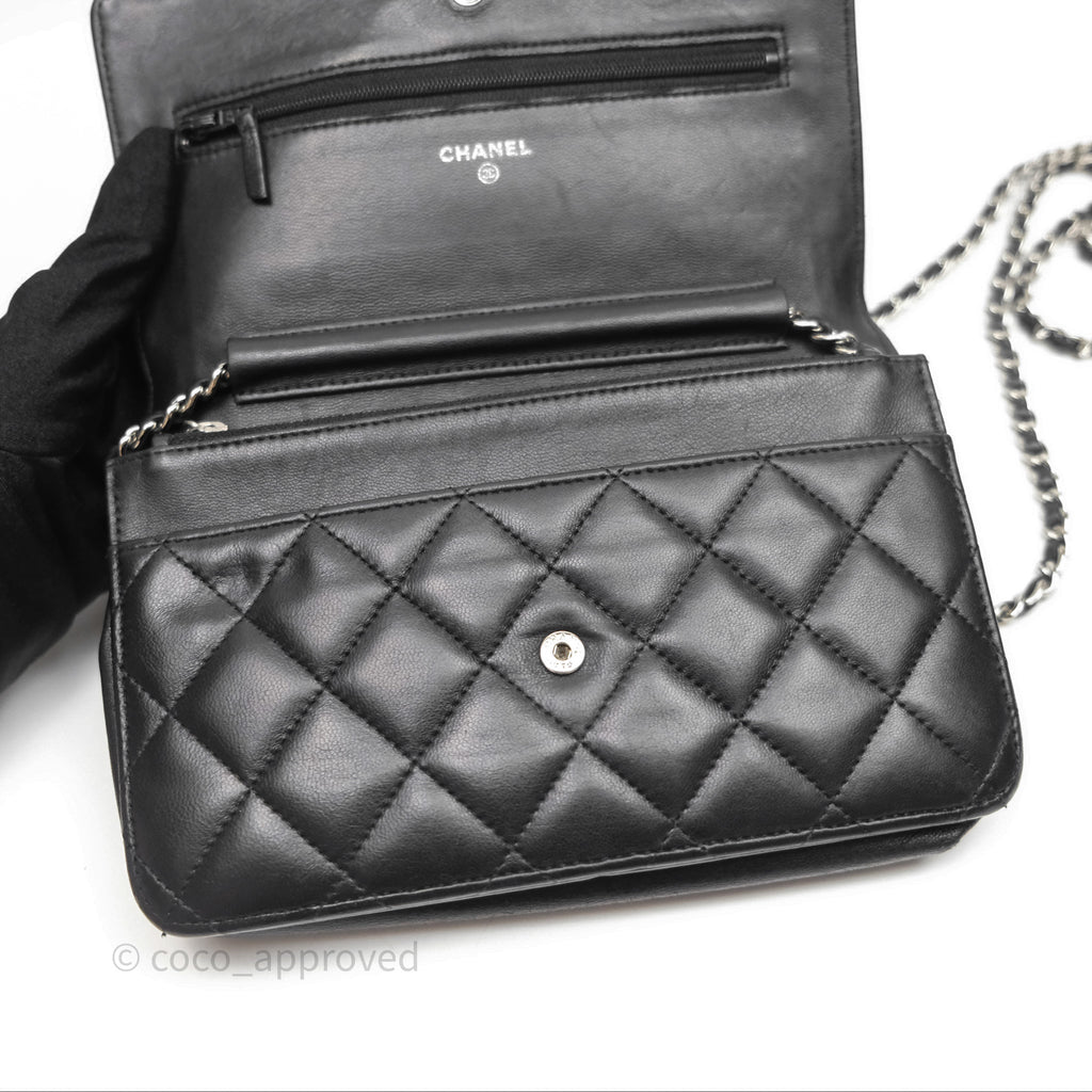 Chanel Quilted WOC Black Lambskin Silver Hardware