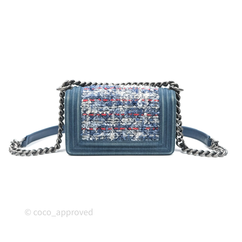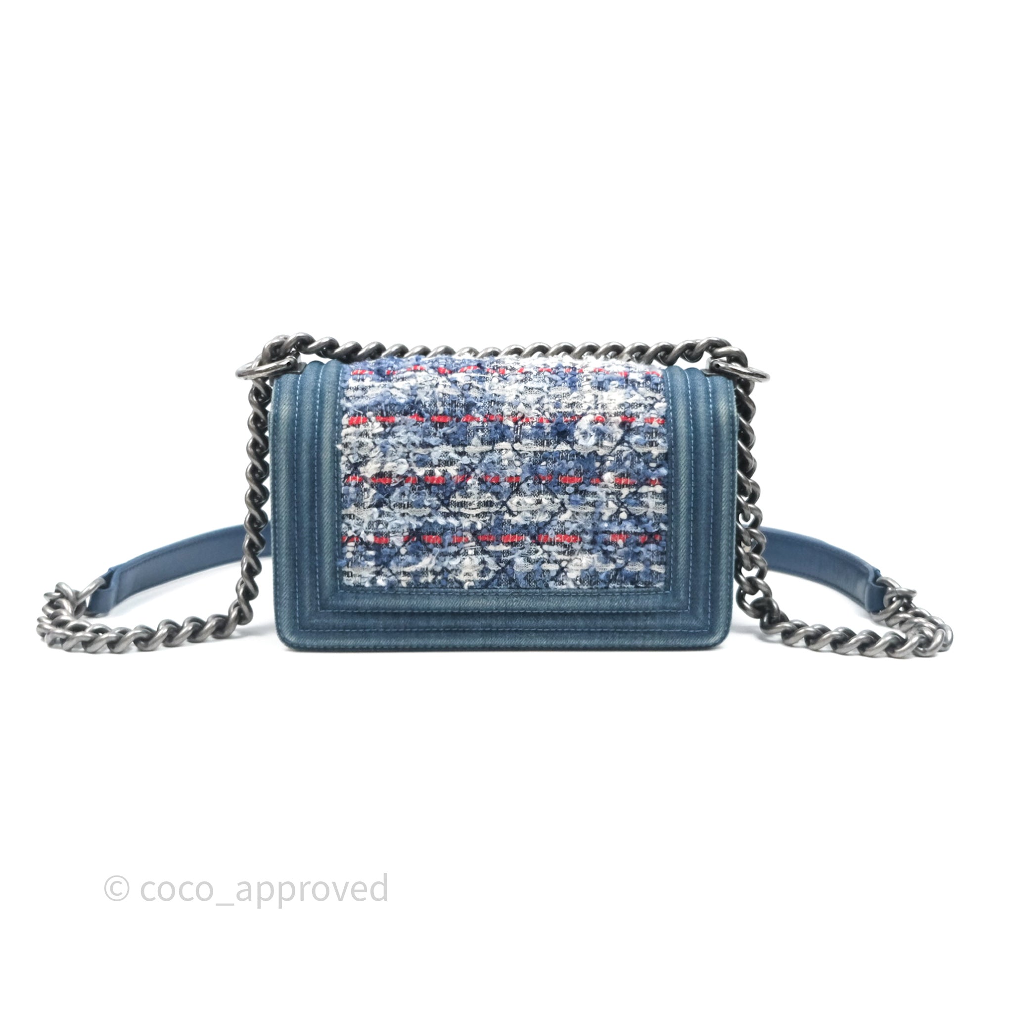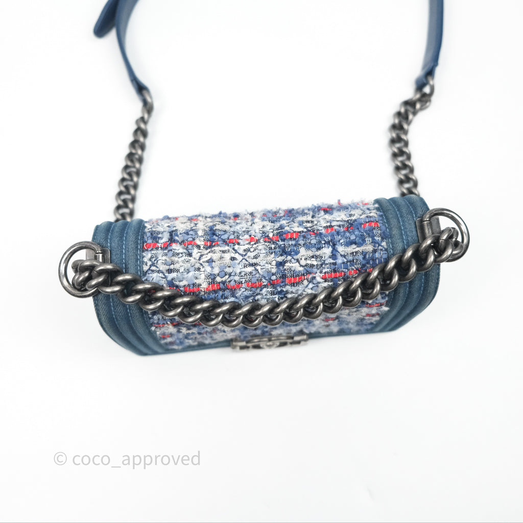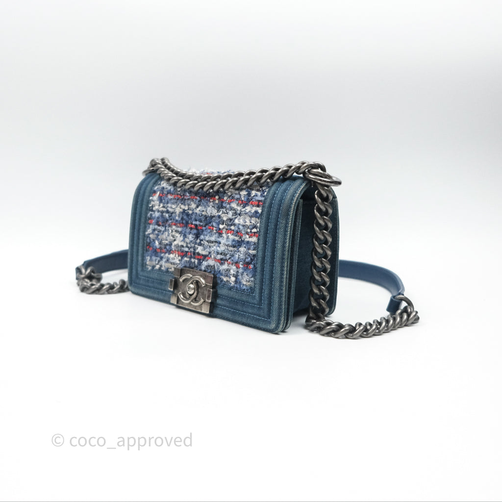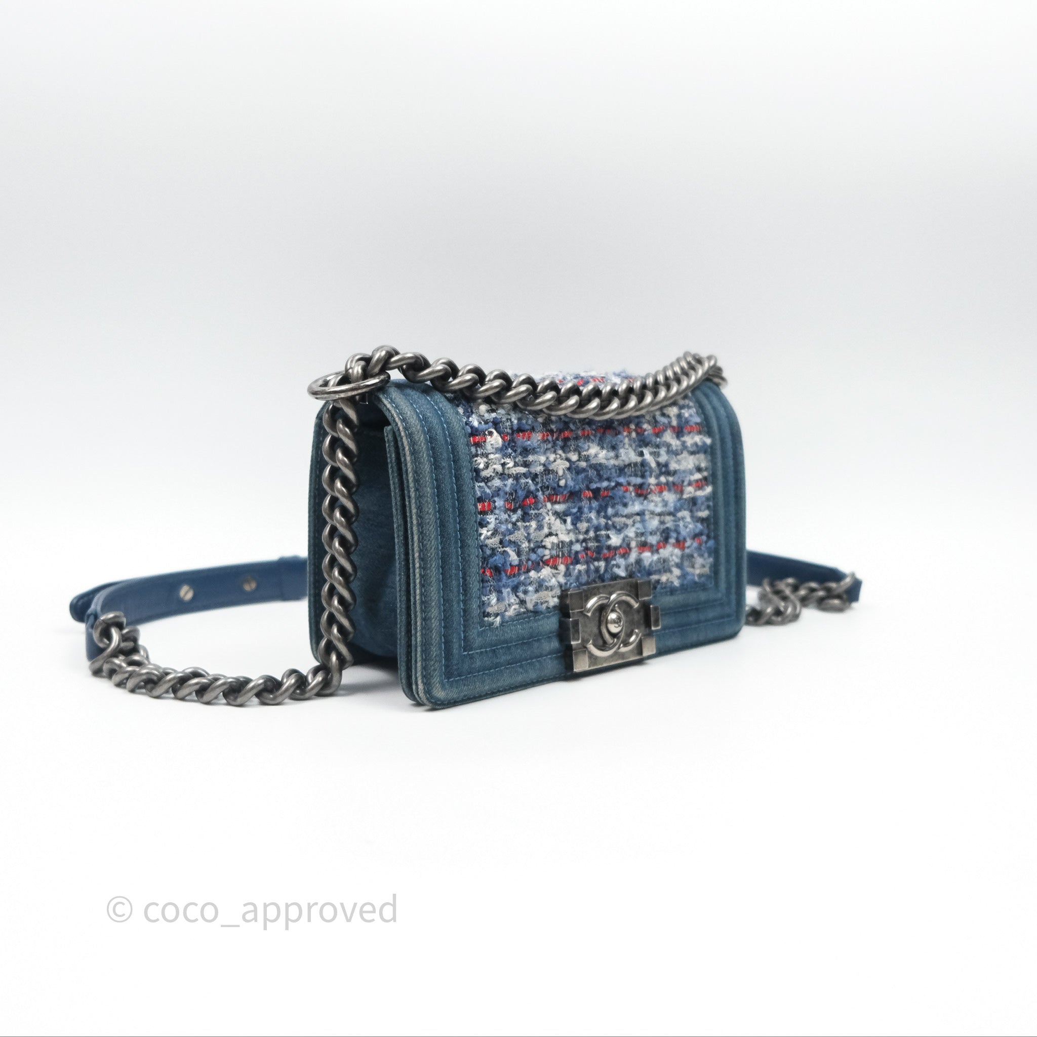 Chanel Small Boy Blue Denim Tweed Ruthenium Hardware