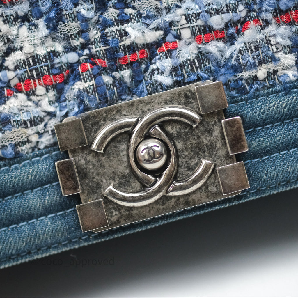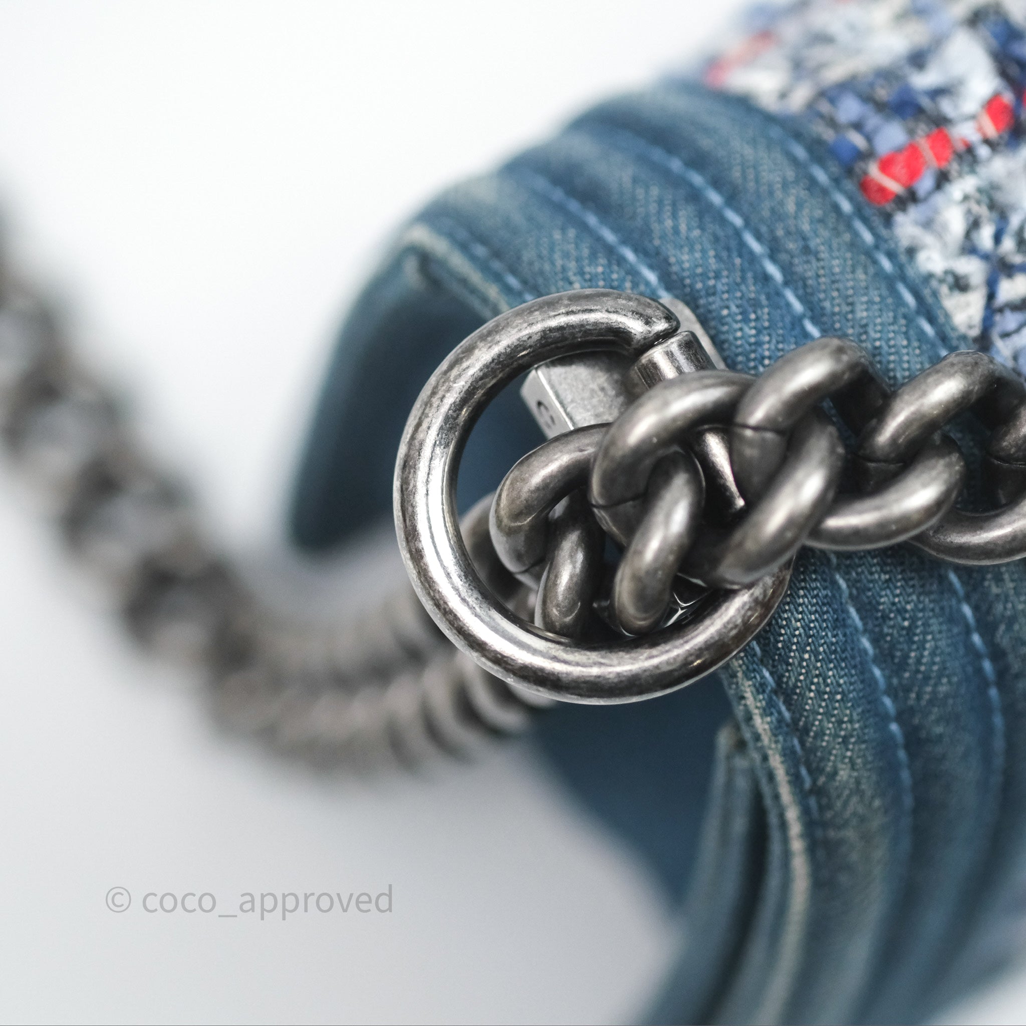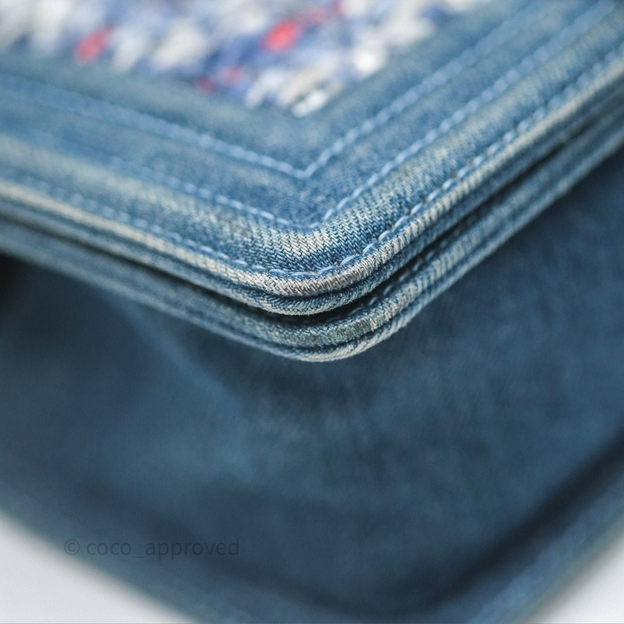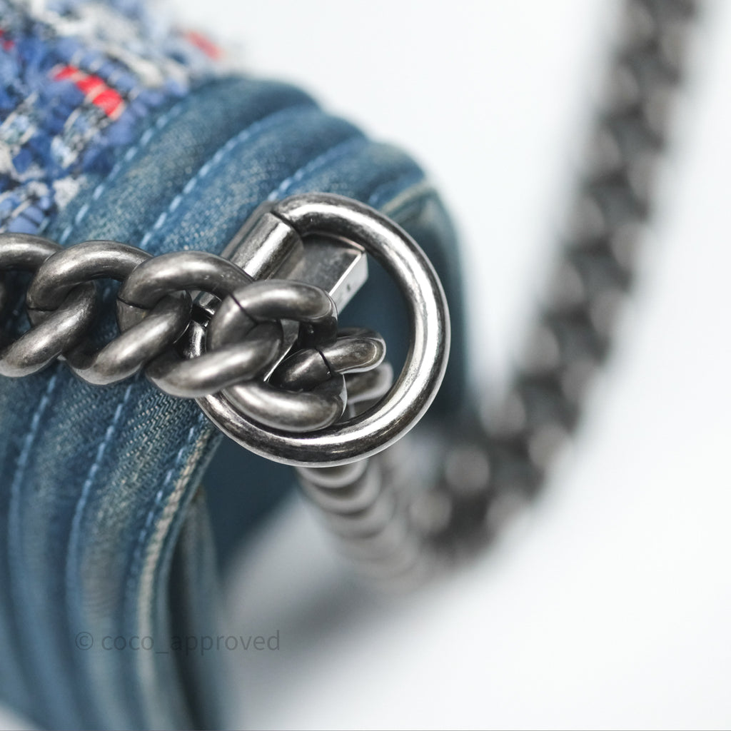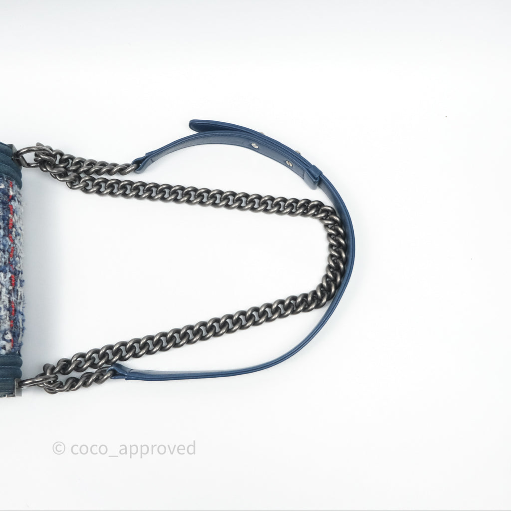 Chanel Small Boy Blue Denim Tweed Ruthenium Hardware