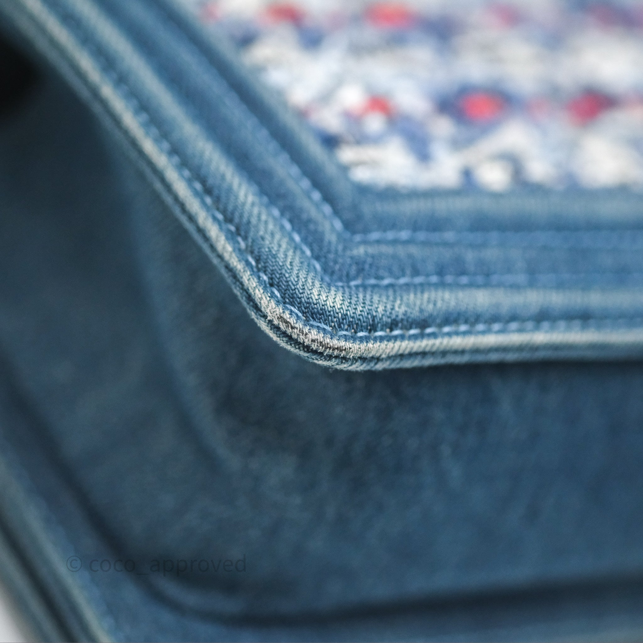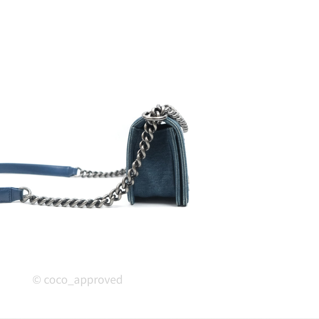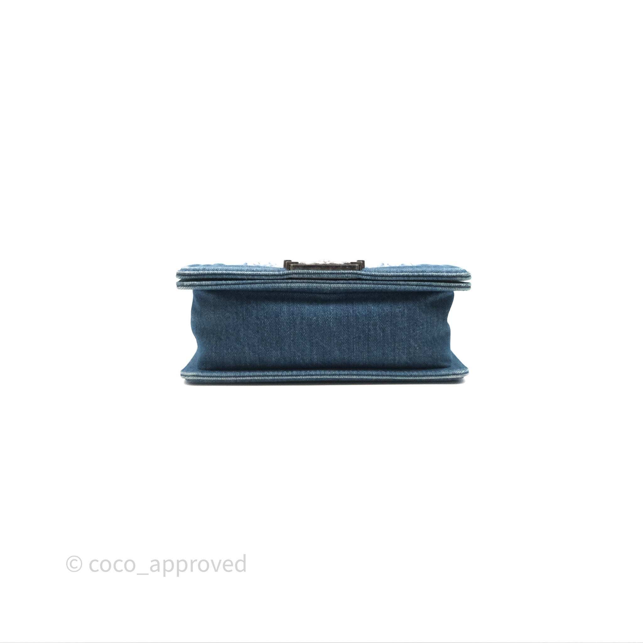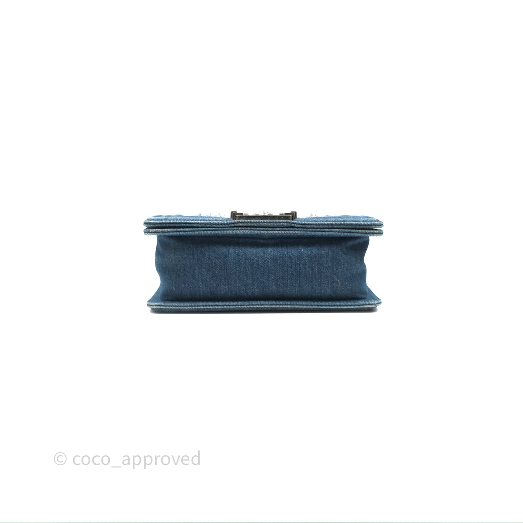 Chanel Small Boy Blue Denim Tweed Ruthenium Hardware