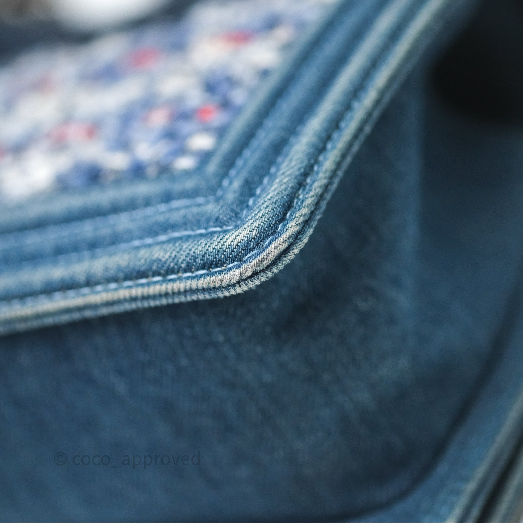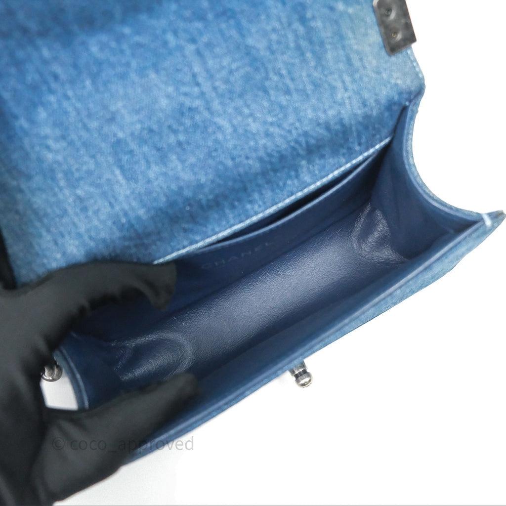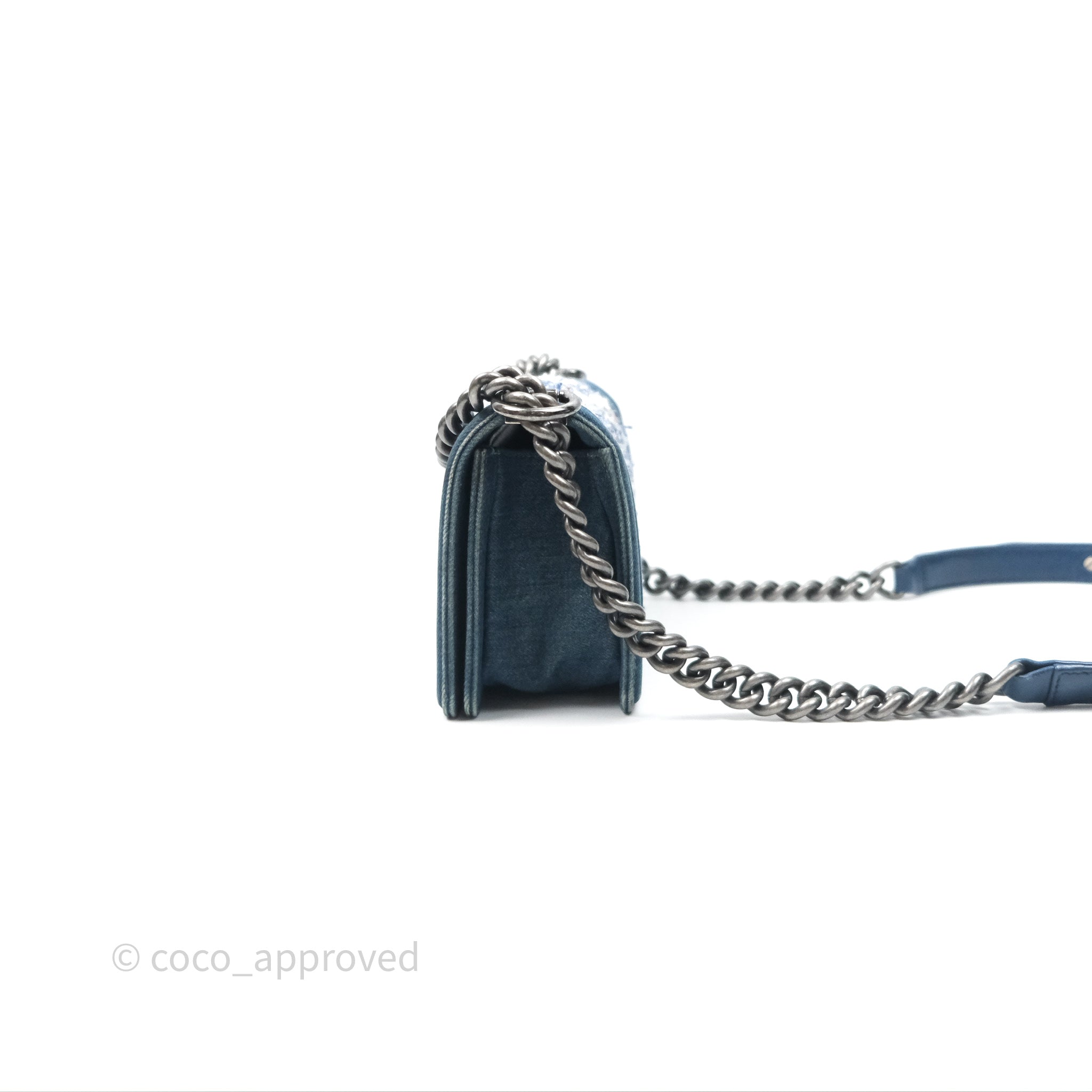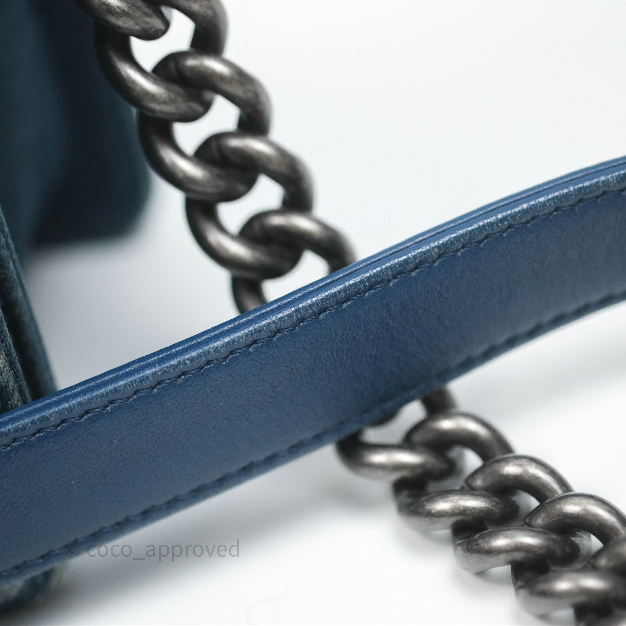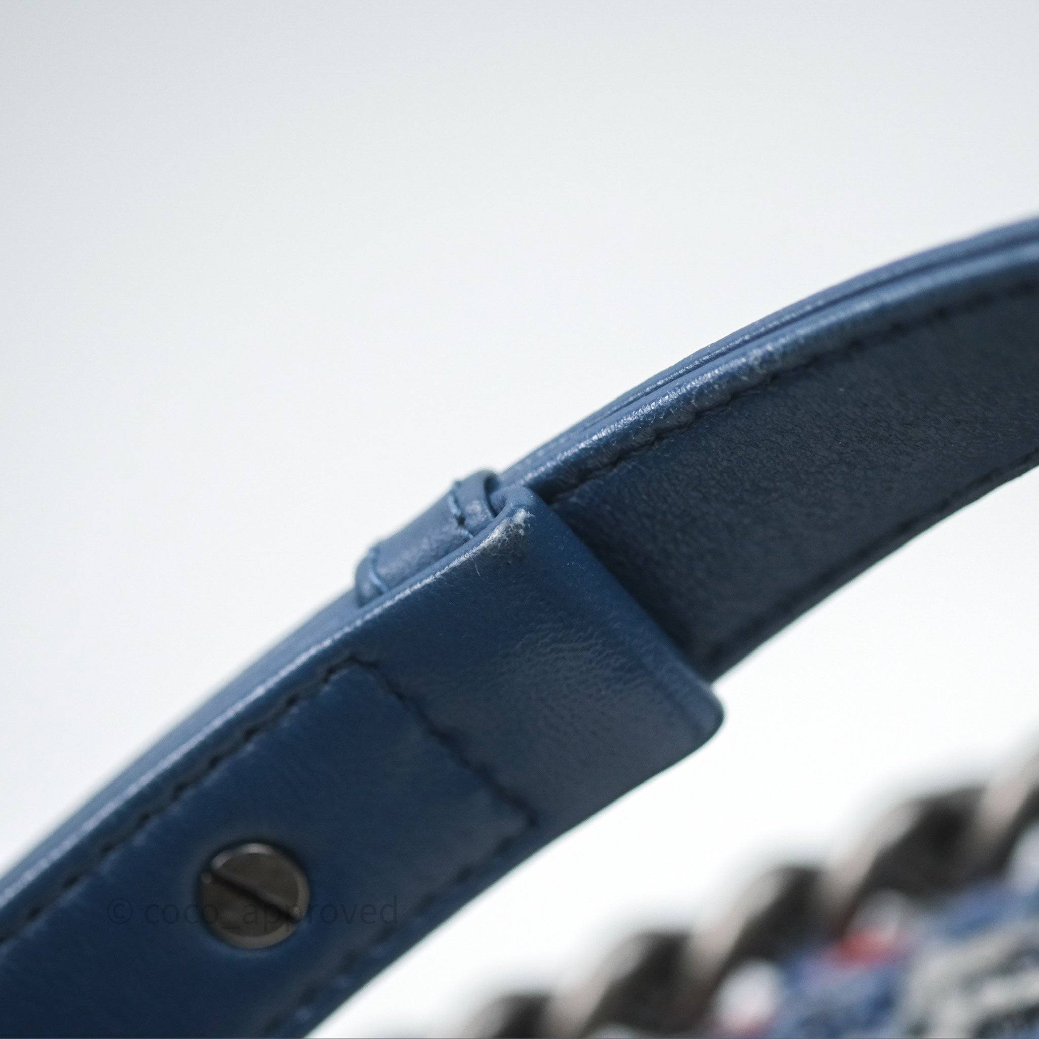 Chanel Small Boy Blue Denim Tweed Ruthenium Hardware