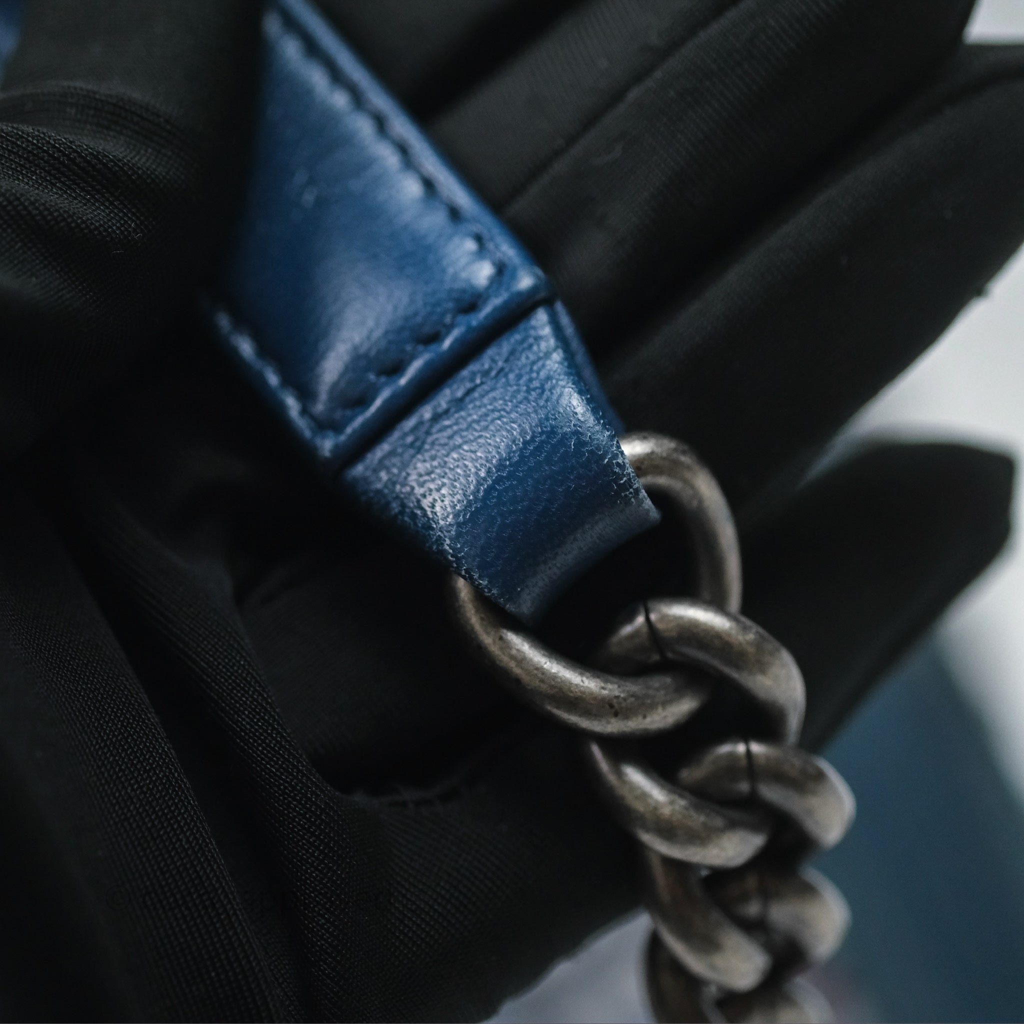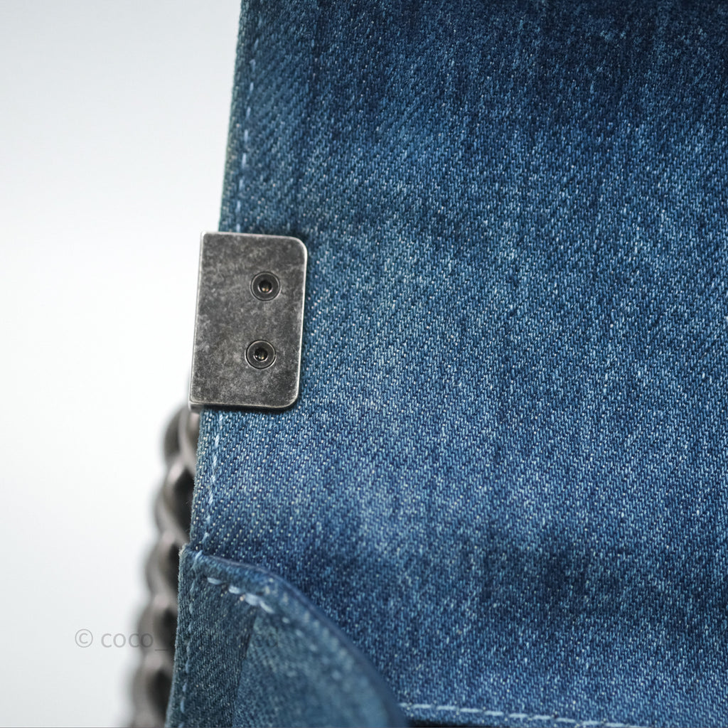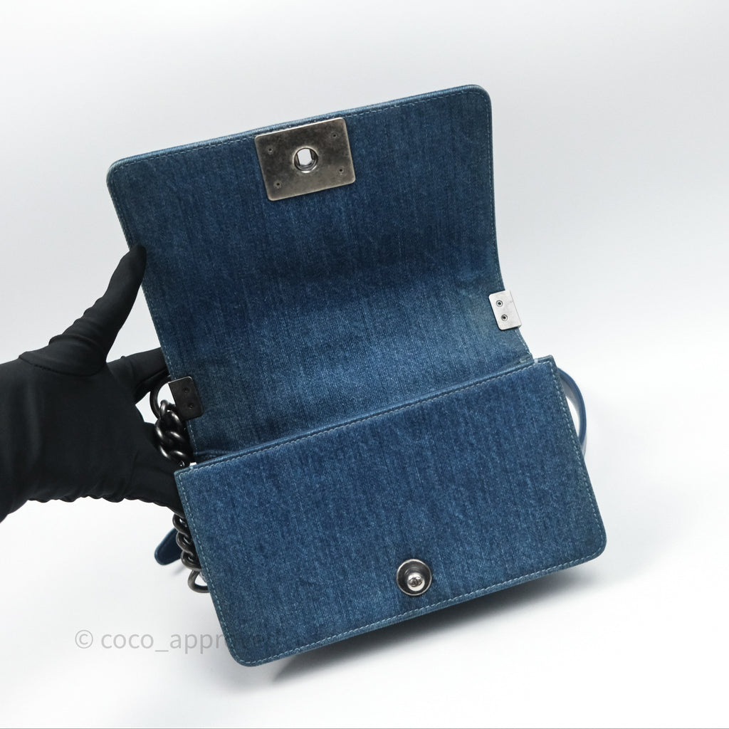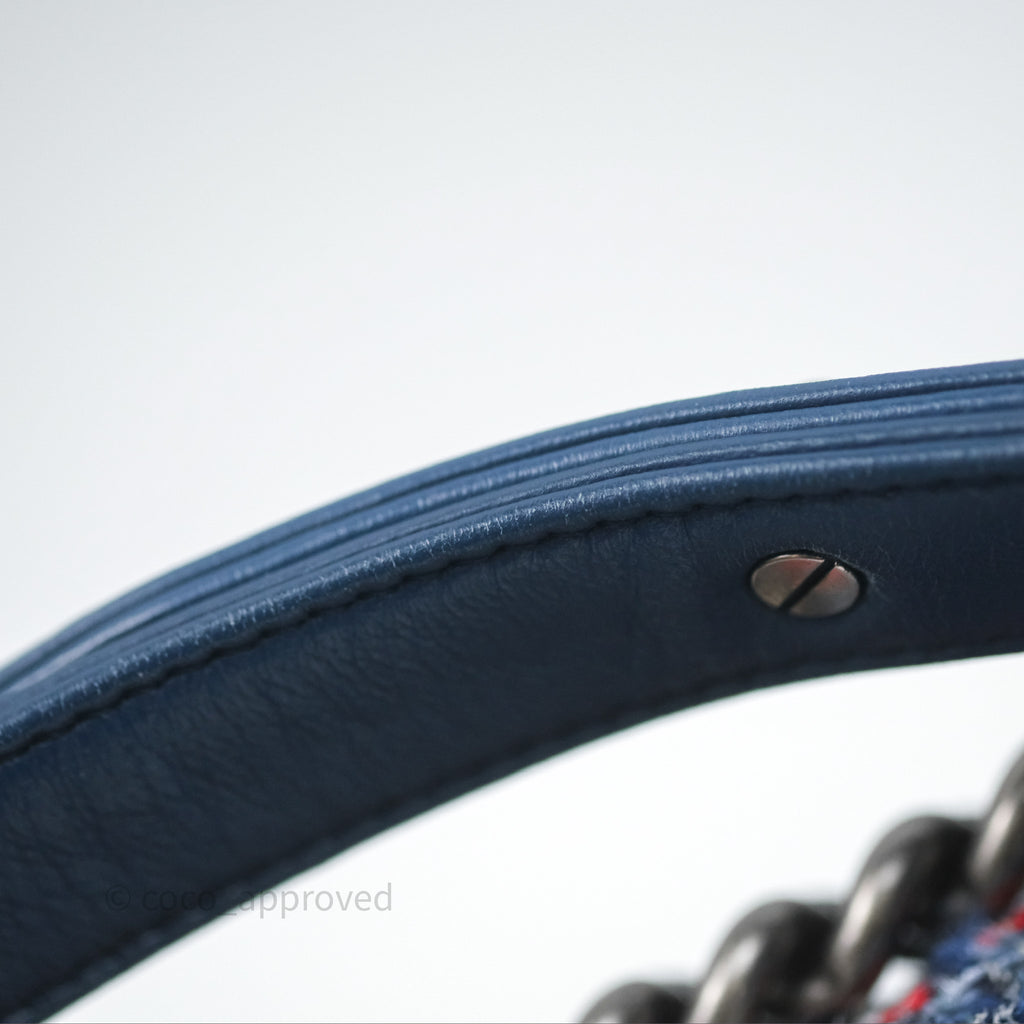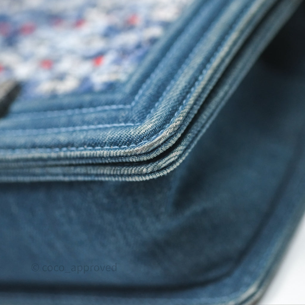Chanel Small Boy Blue Denim Tweed Ruthenium Hardware