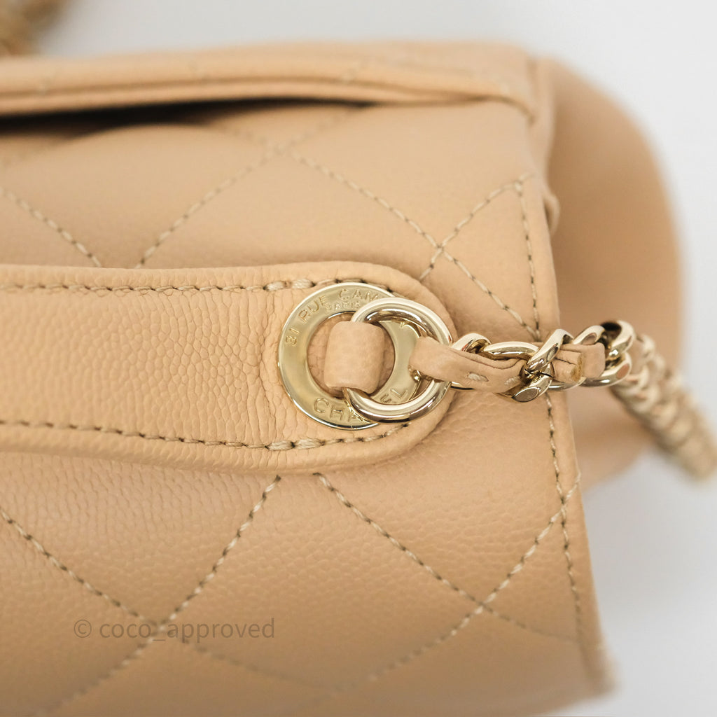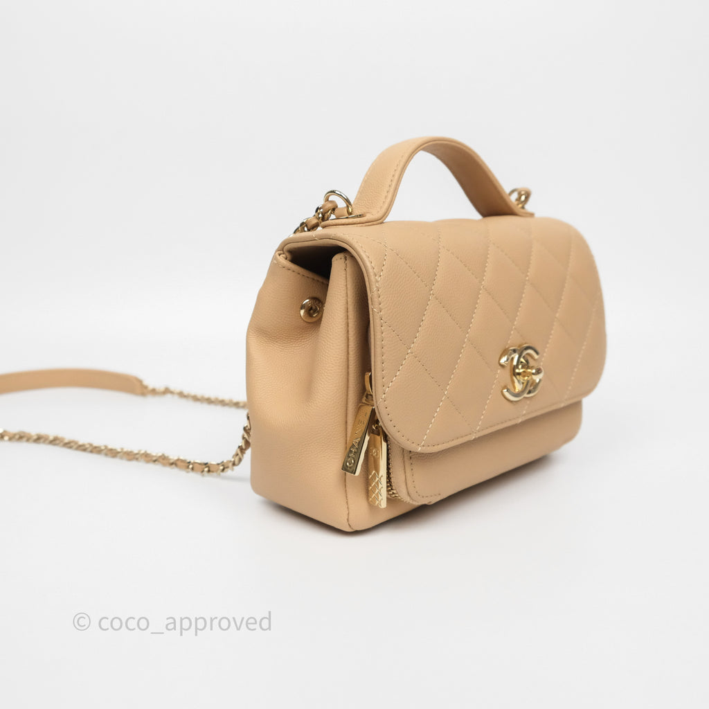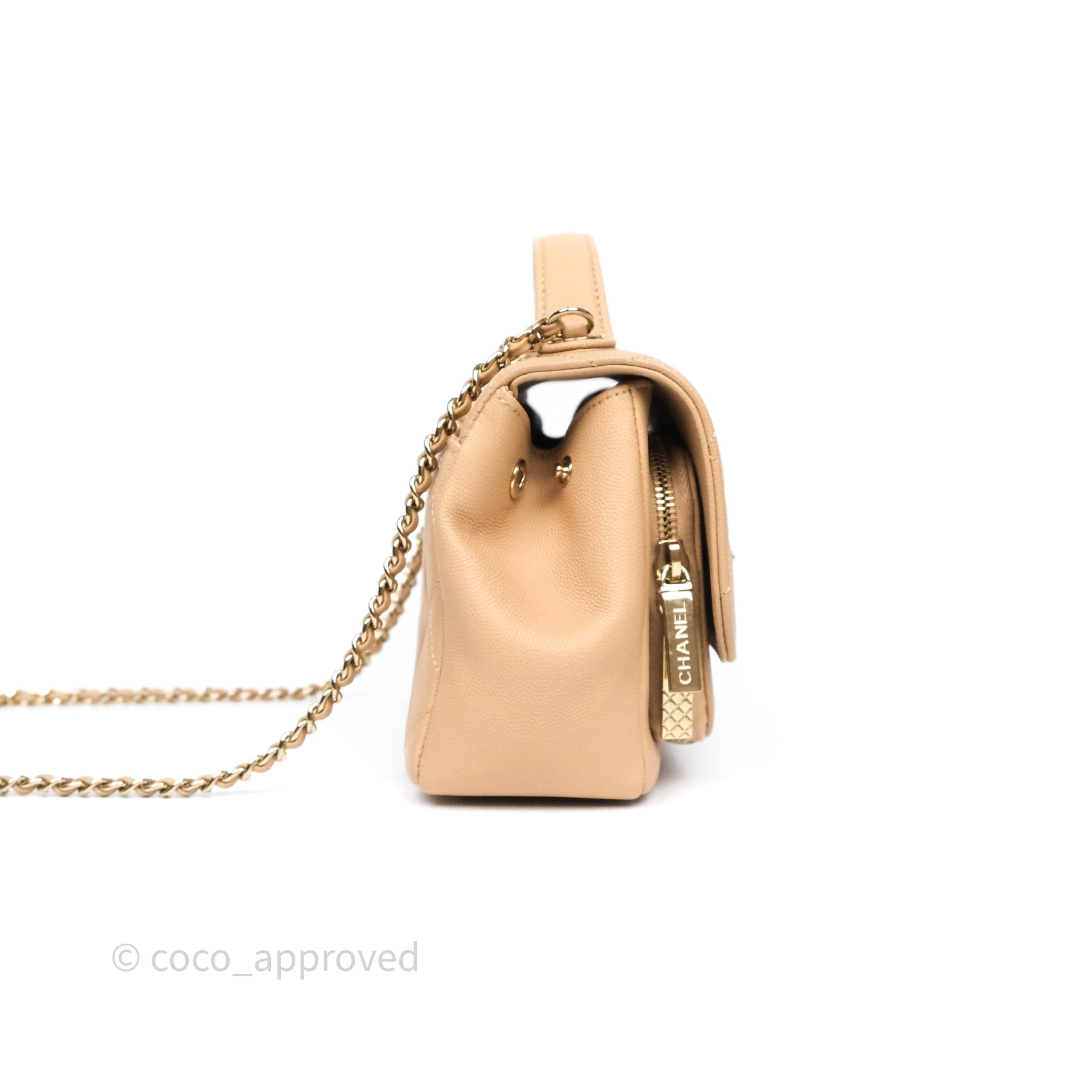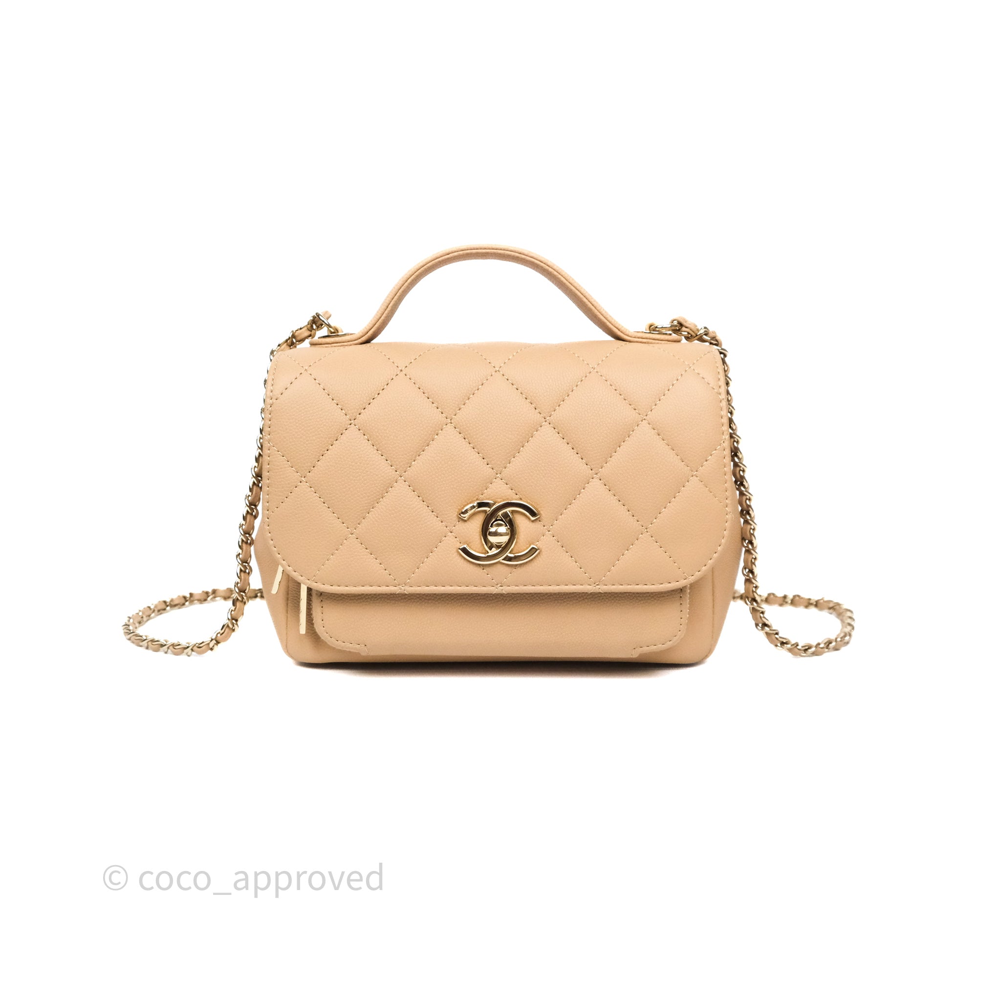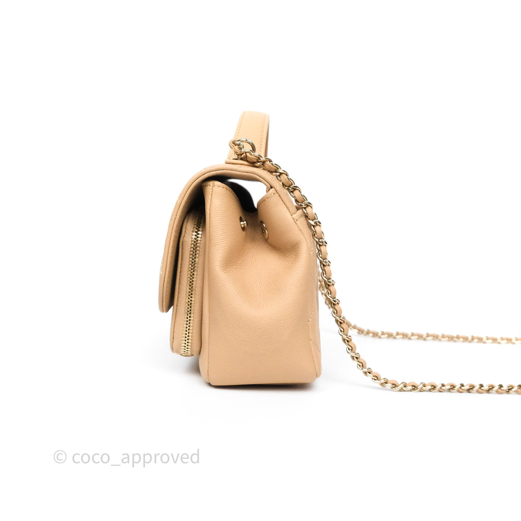 Chanel Small Business Affinity Flap Quilted Beige Caviar Gold Hardware