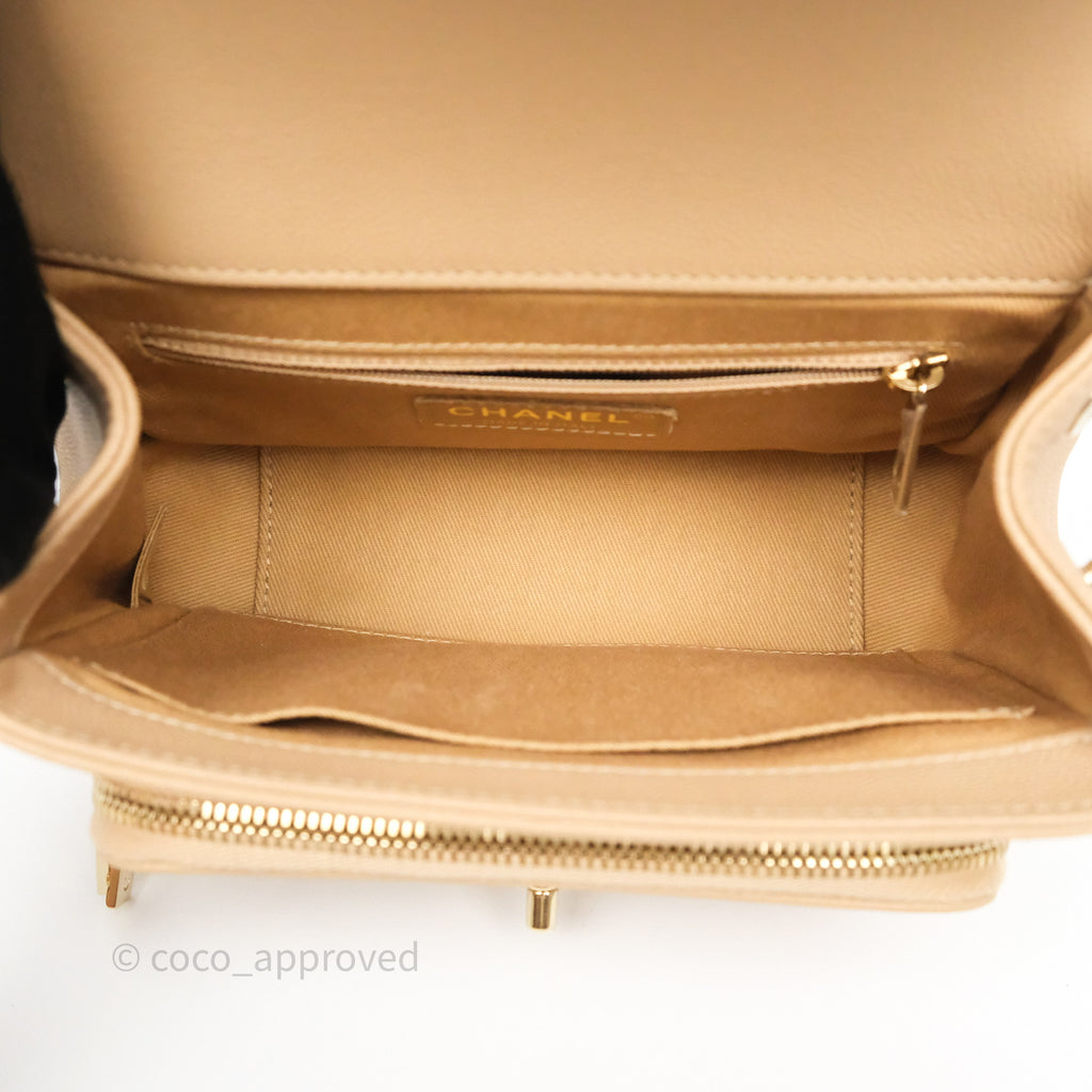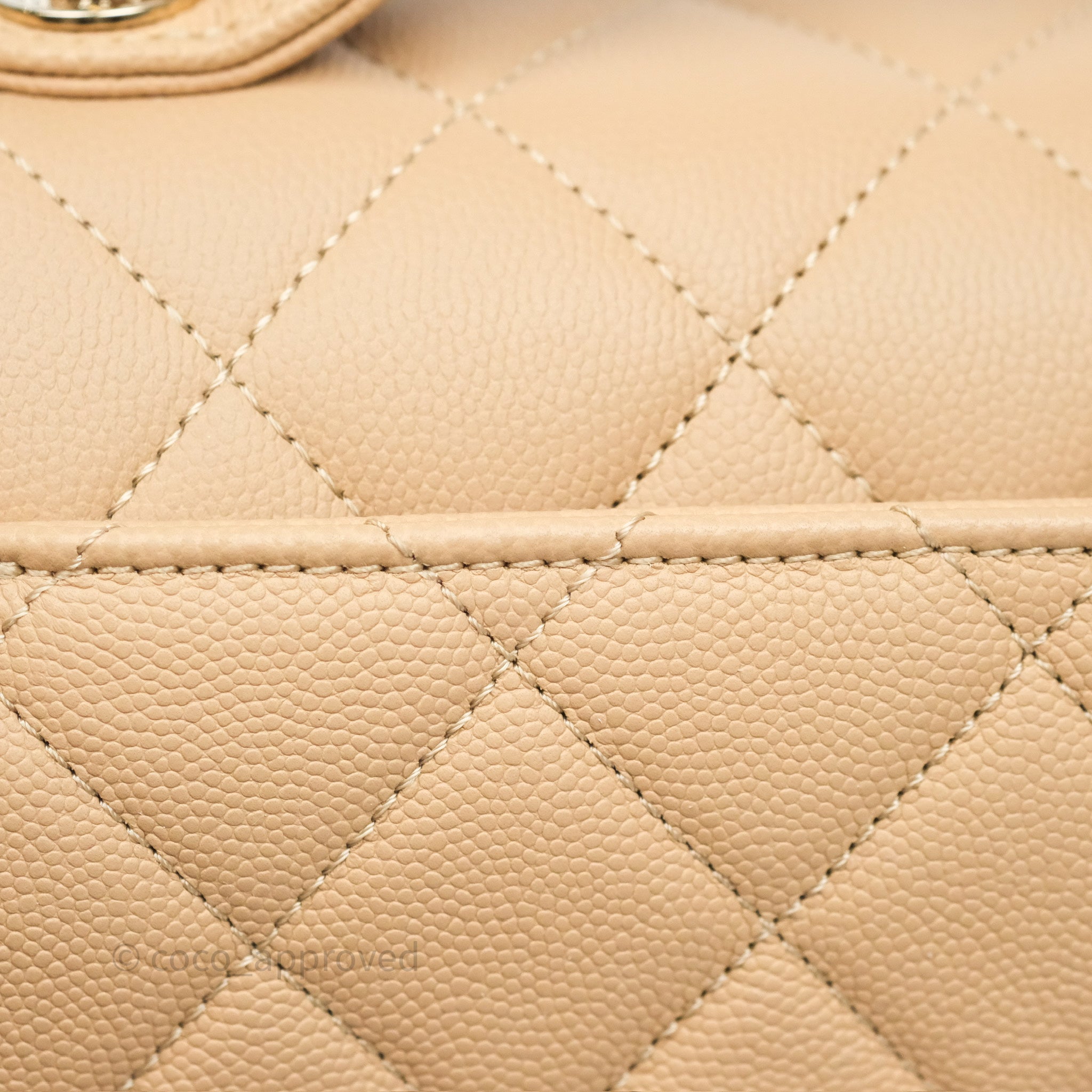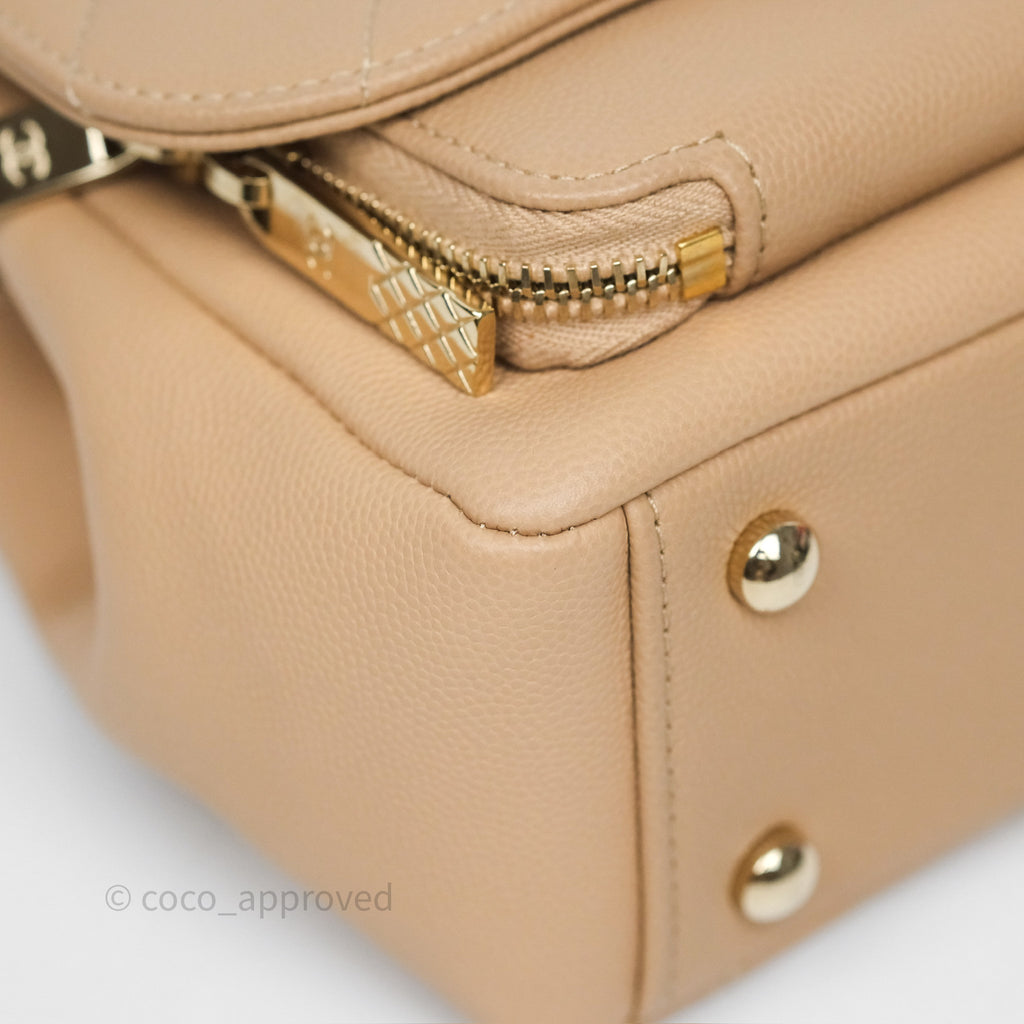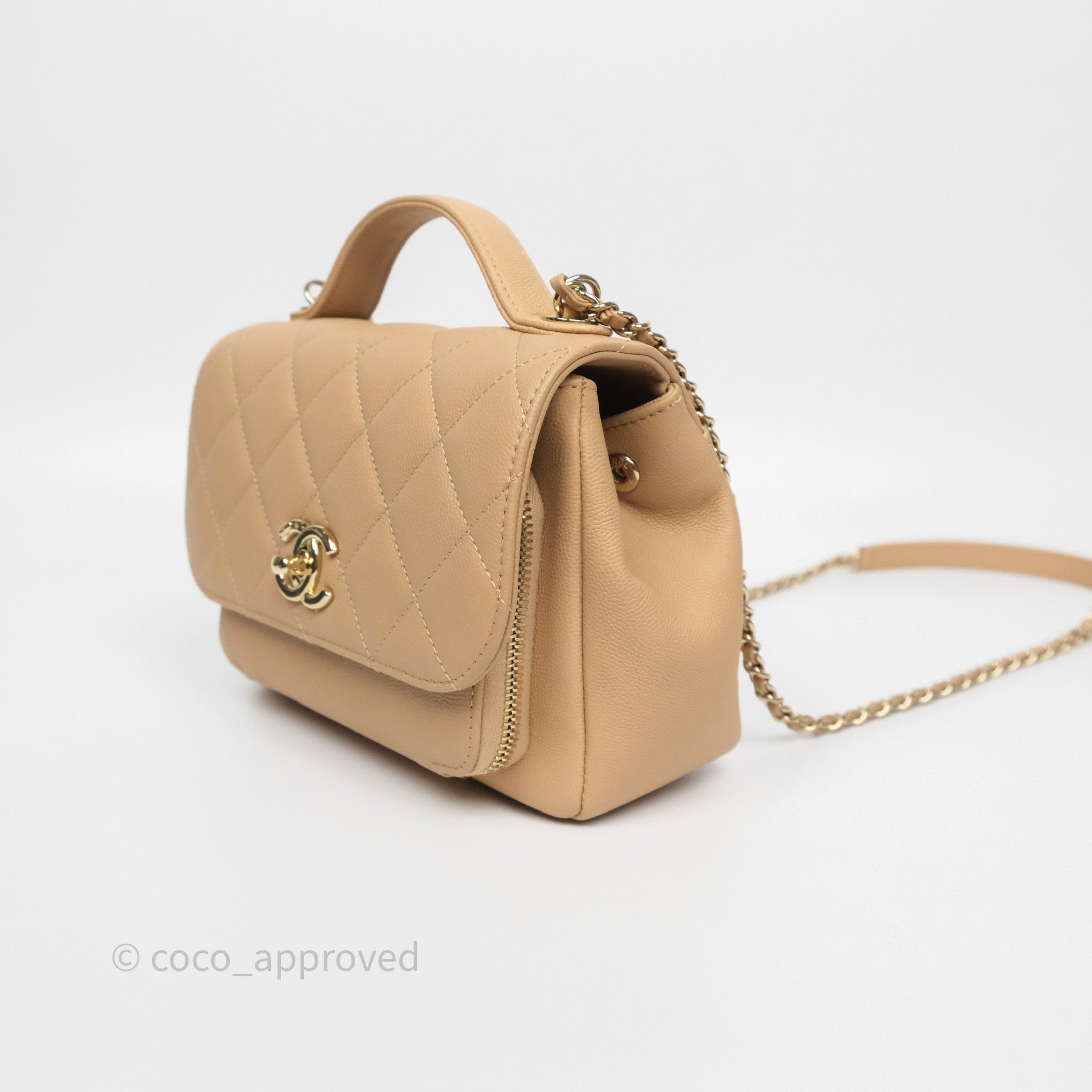 Chanel Small Business Affinity Flap Quilted Beige Caviar Gold Hardware