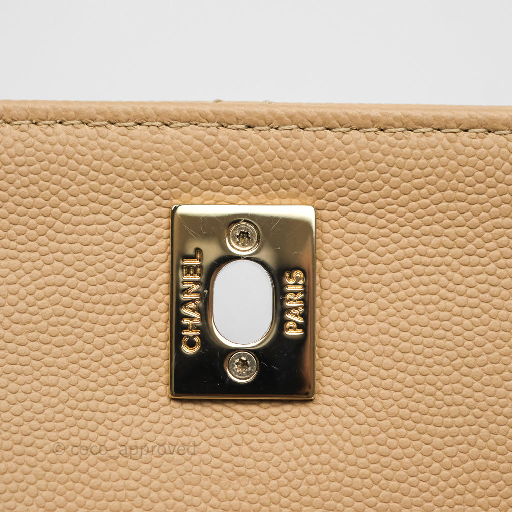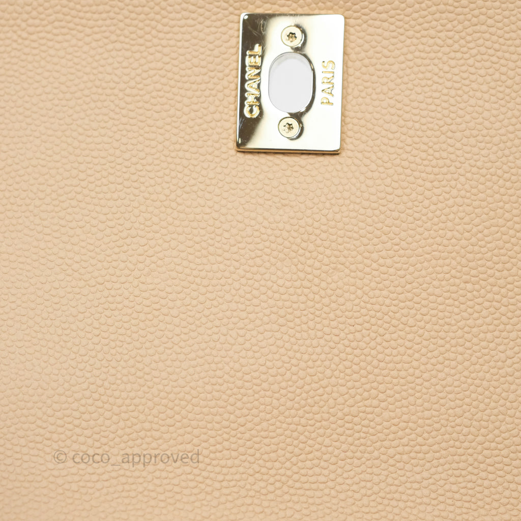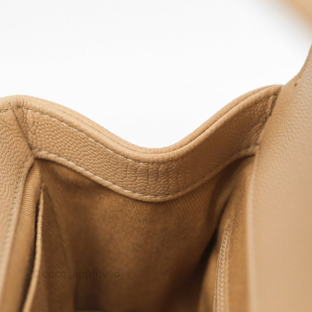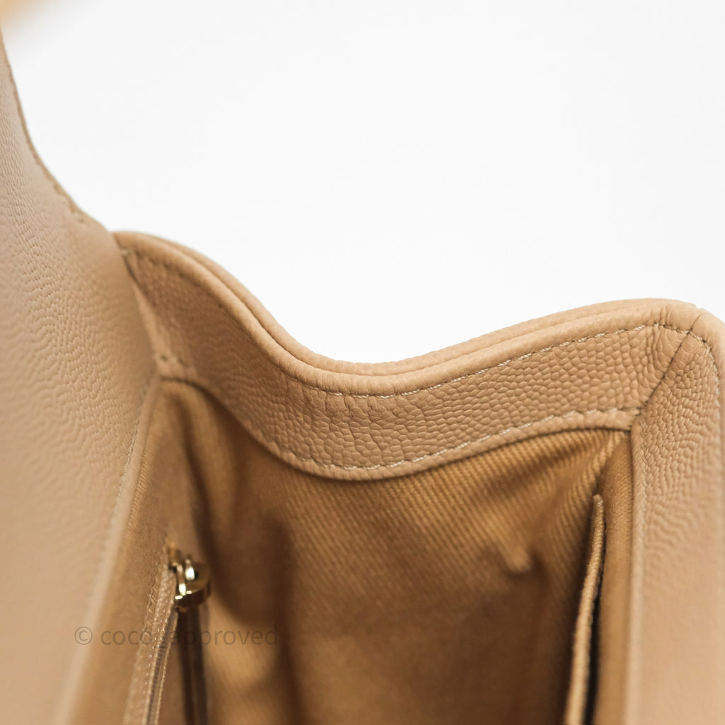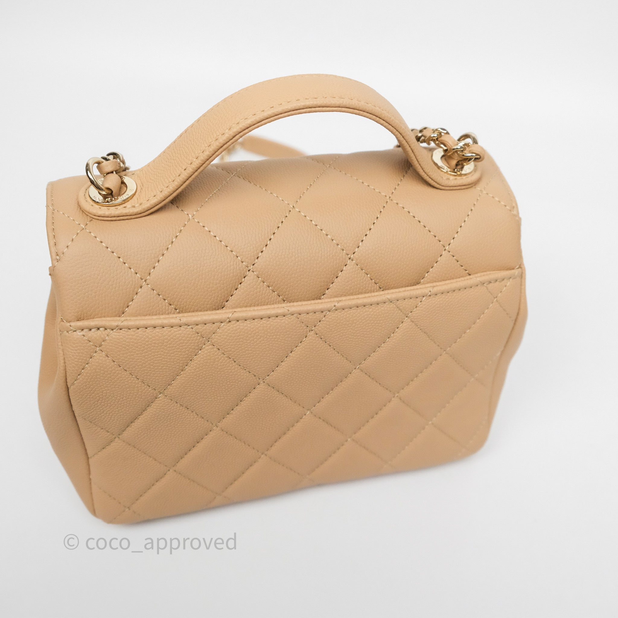 Chanel Small Business Affinity Flap Quilted Beige Caviar Gold Hardware