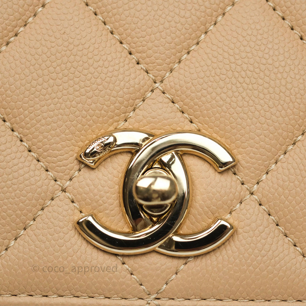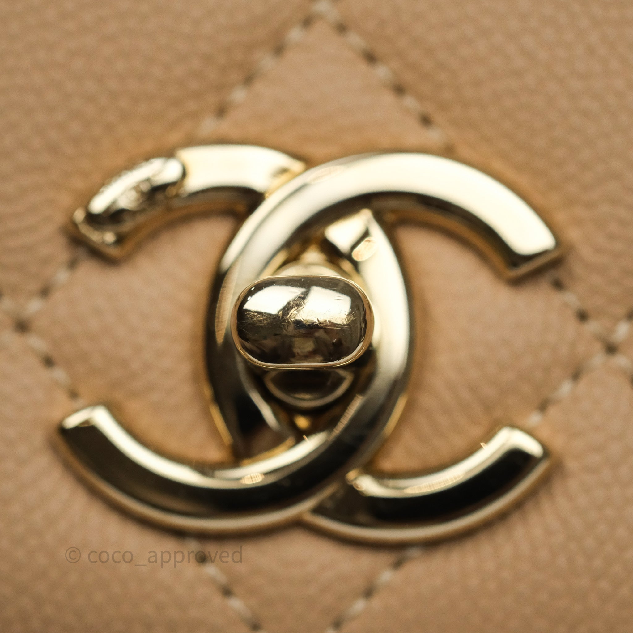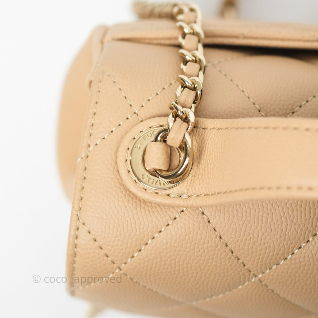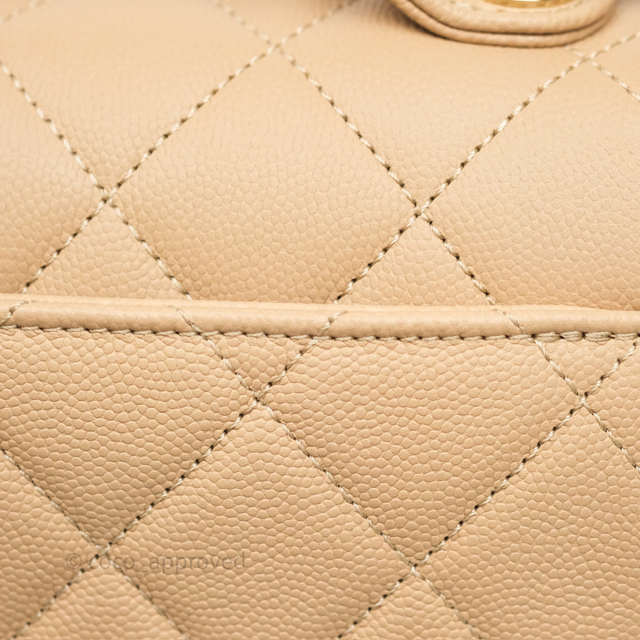 Chanel Small Business Affinity Flap Quilted Beige Caviar Gold Hardware