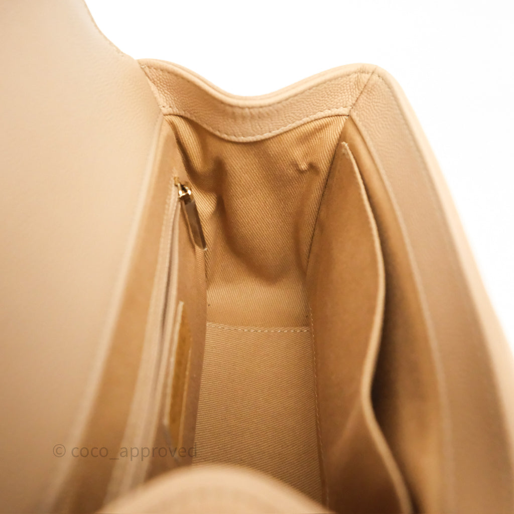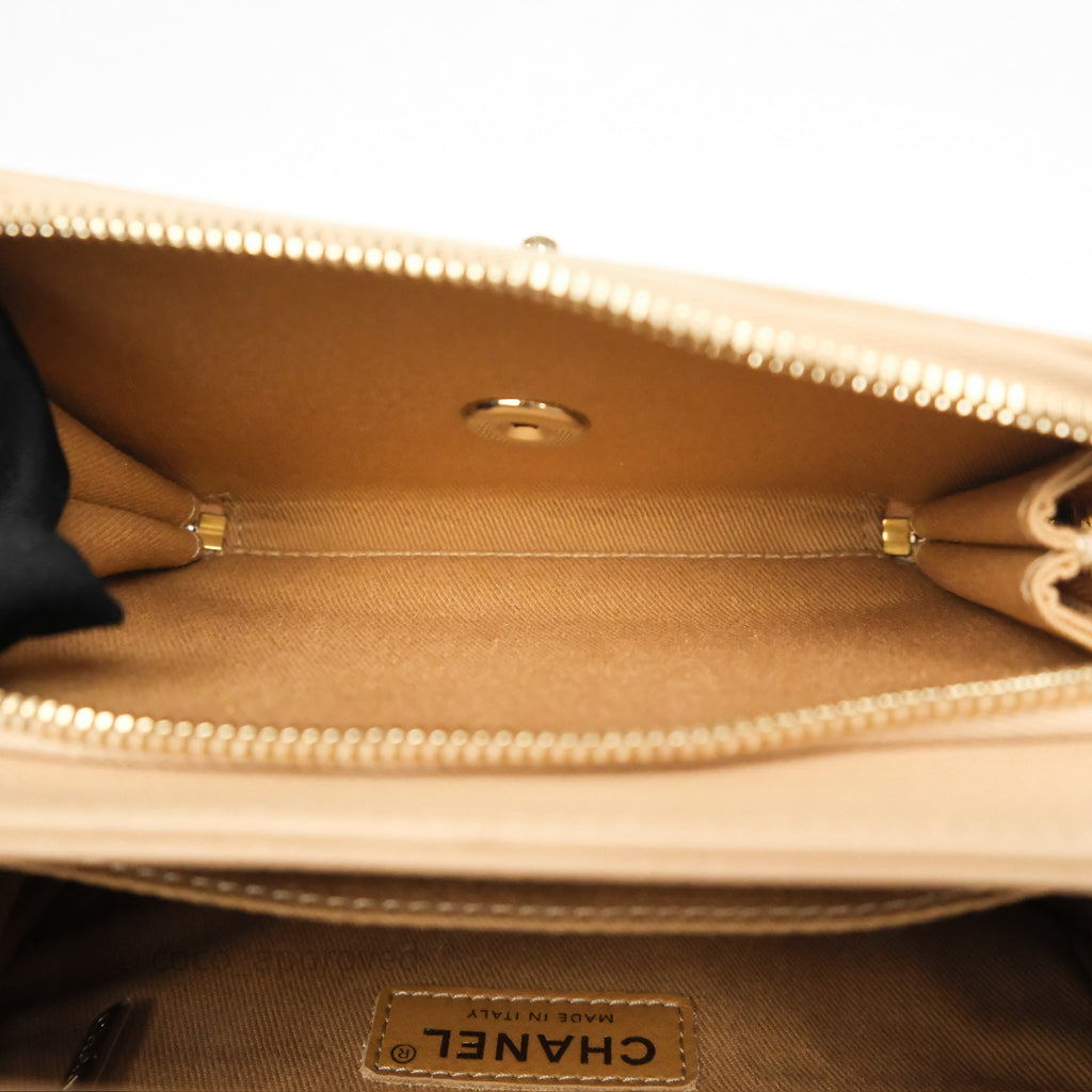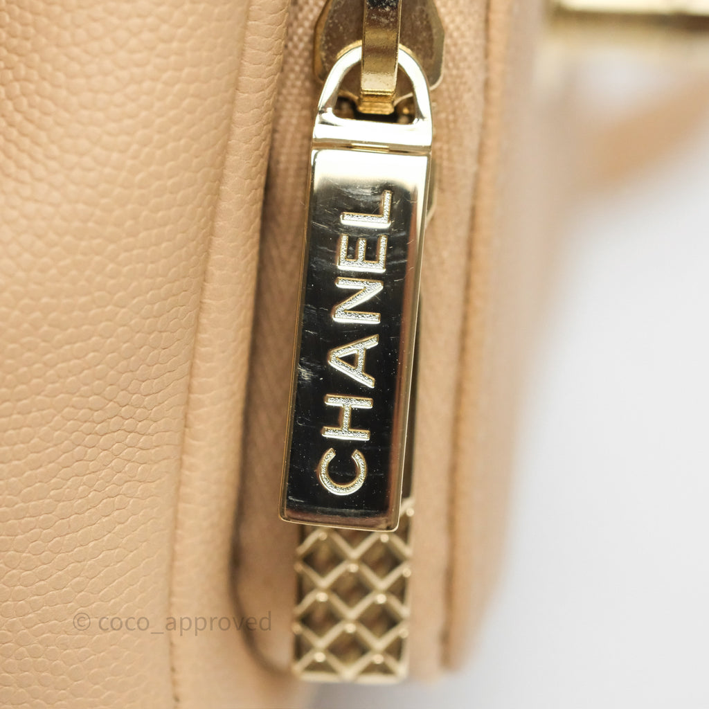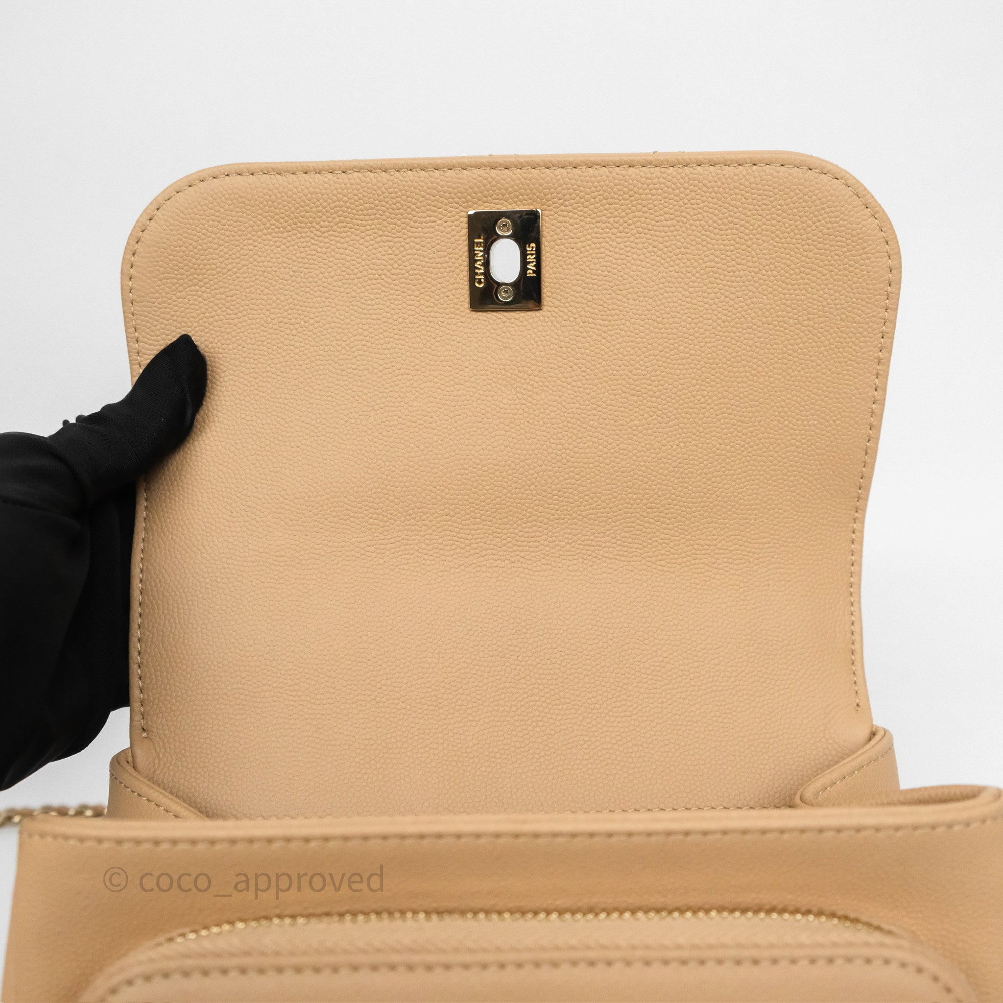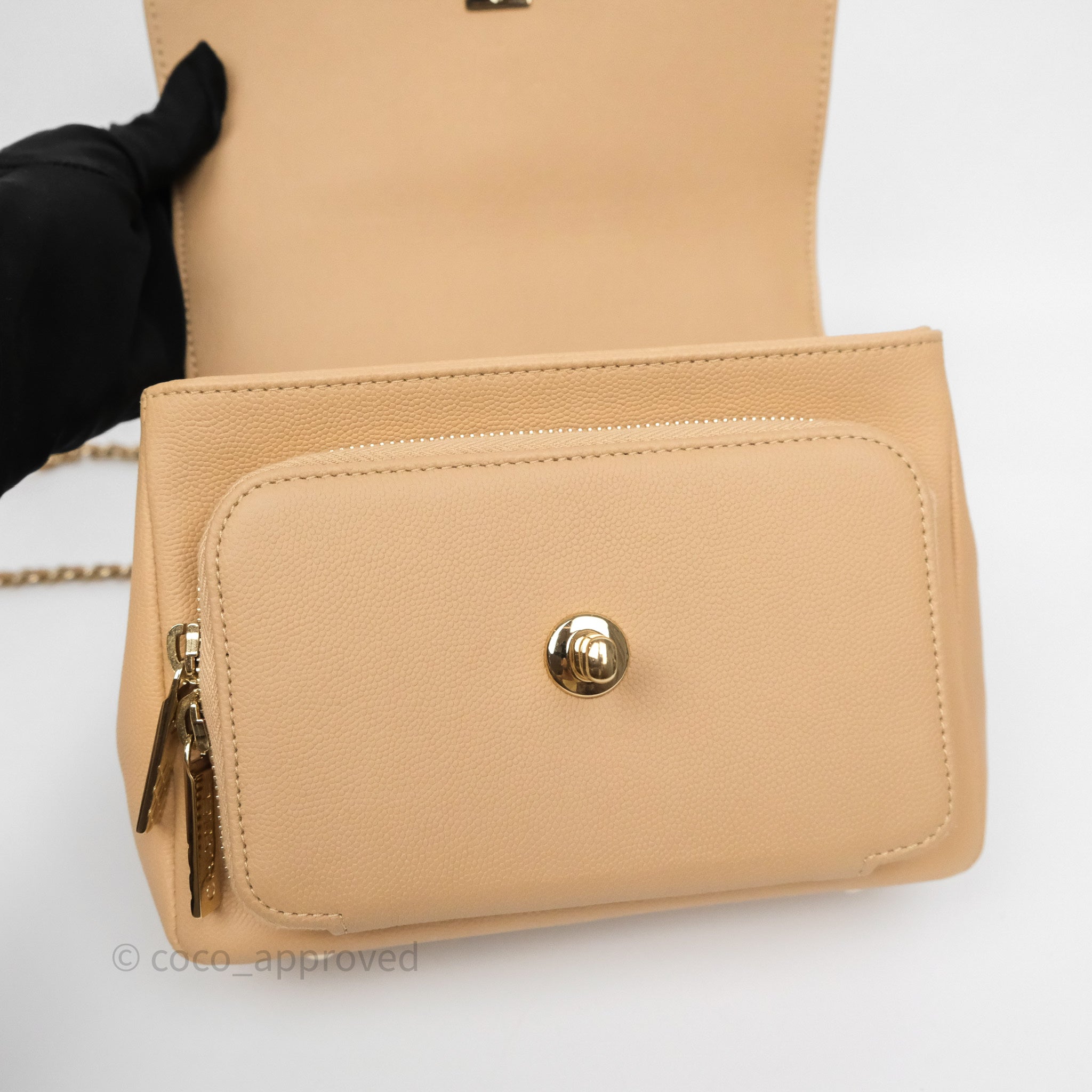 Chanel Small Business Affinity Flap Quilted Beige Caviar Gold Hardware