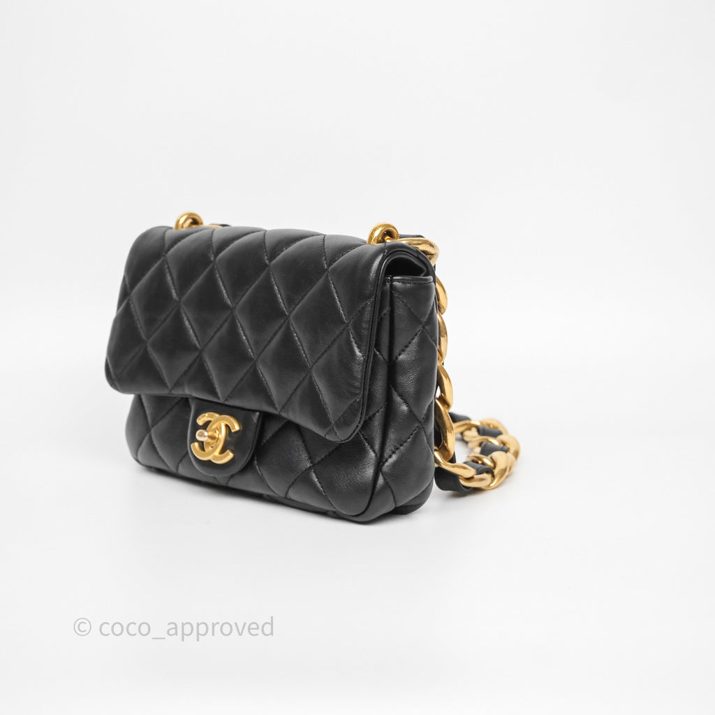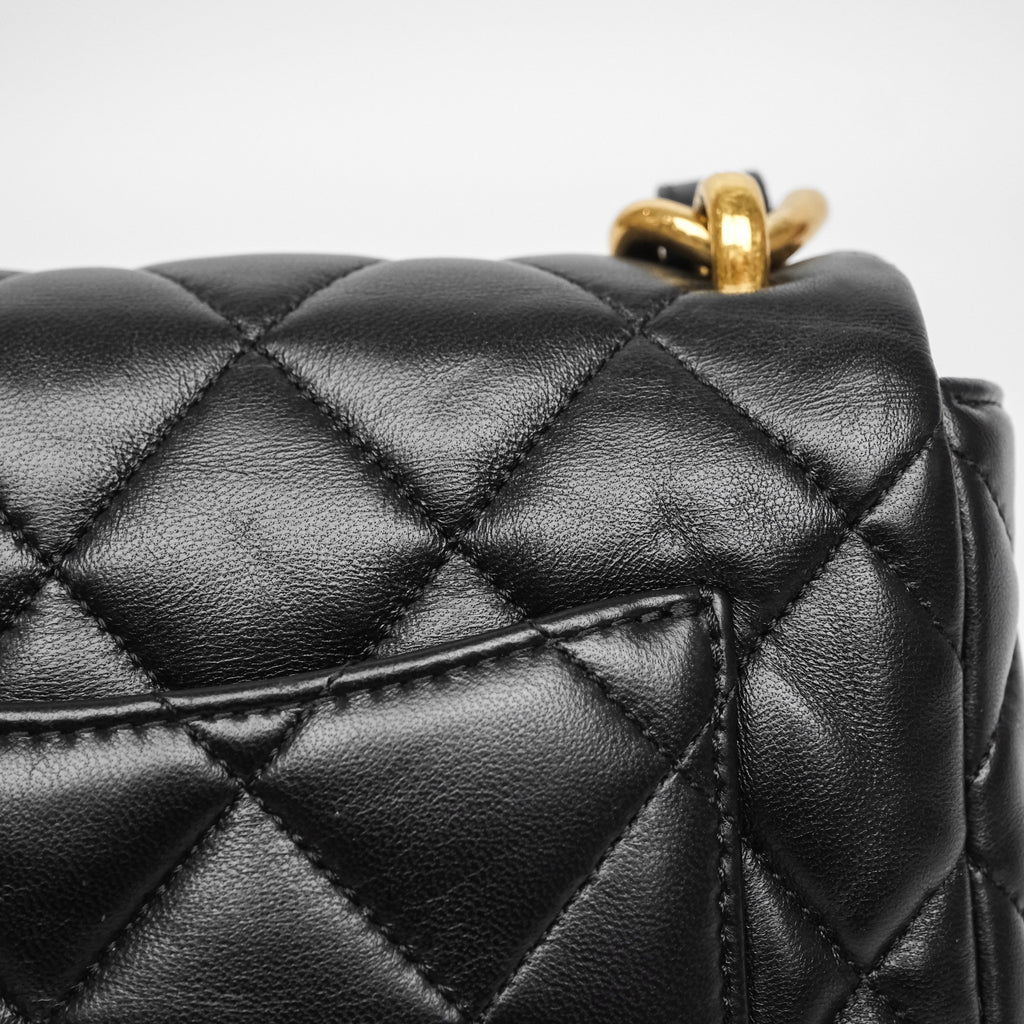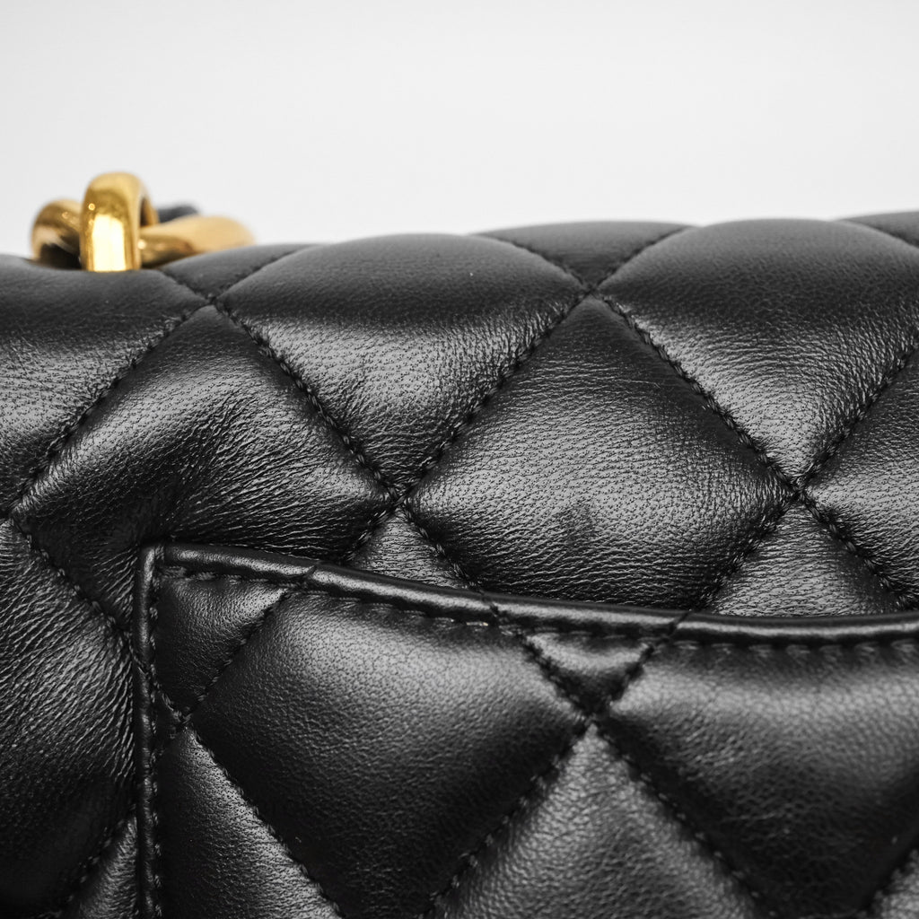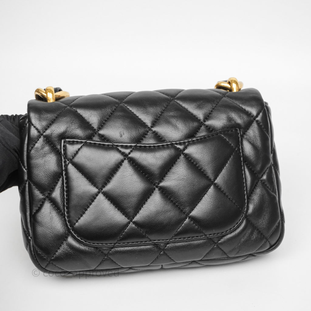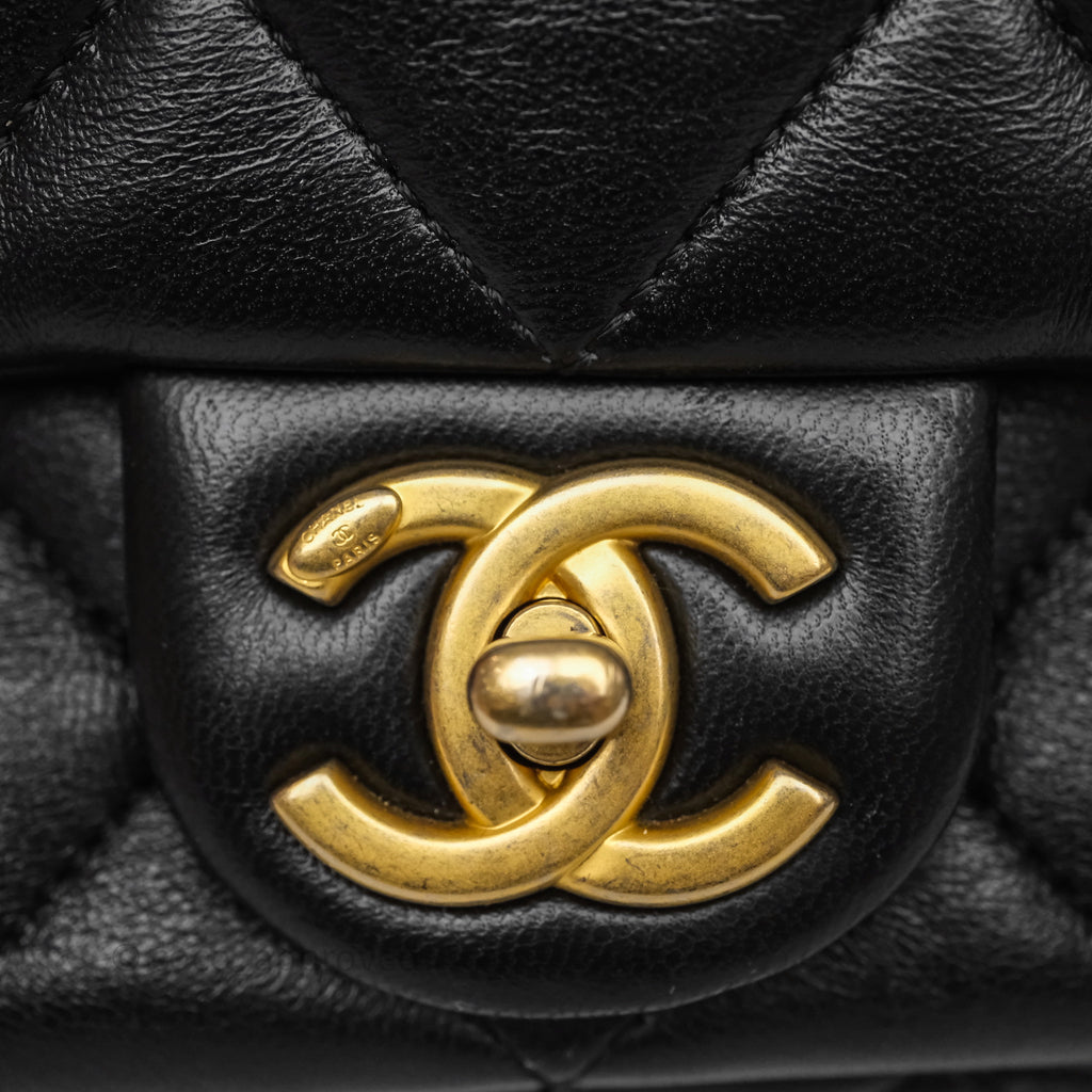 Chanel Small CC Funky Town Flap Quilted Black Lambskin Aged Gold Hardware