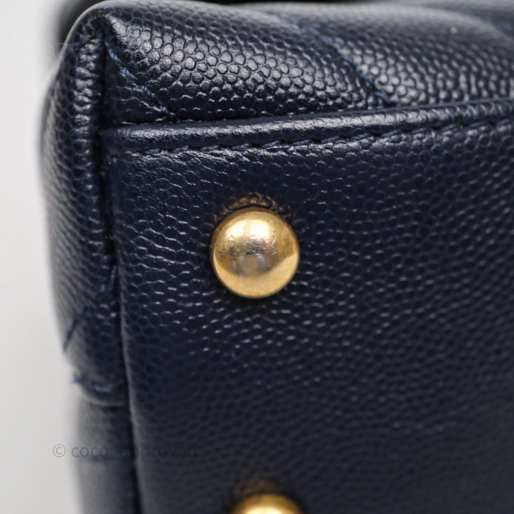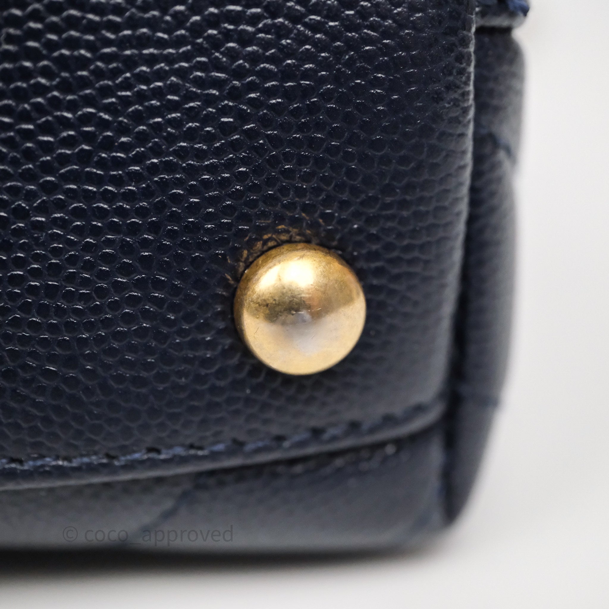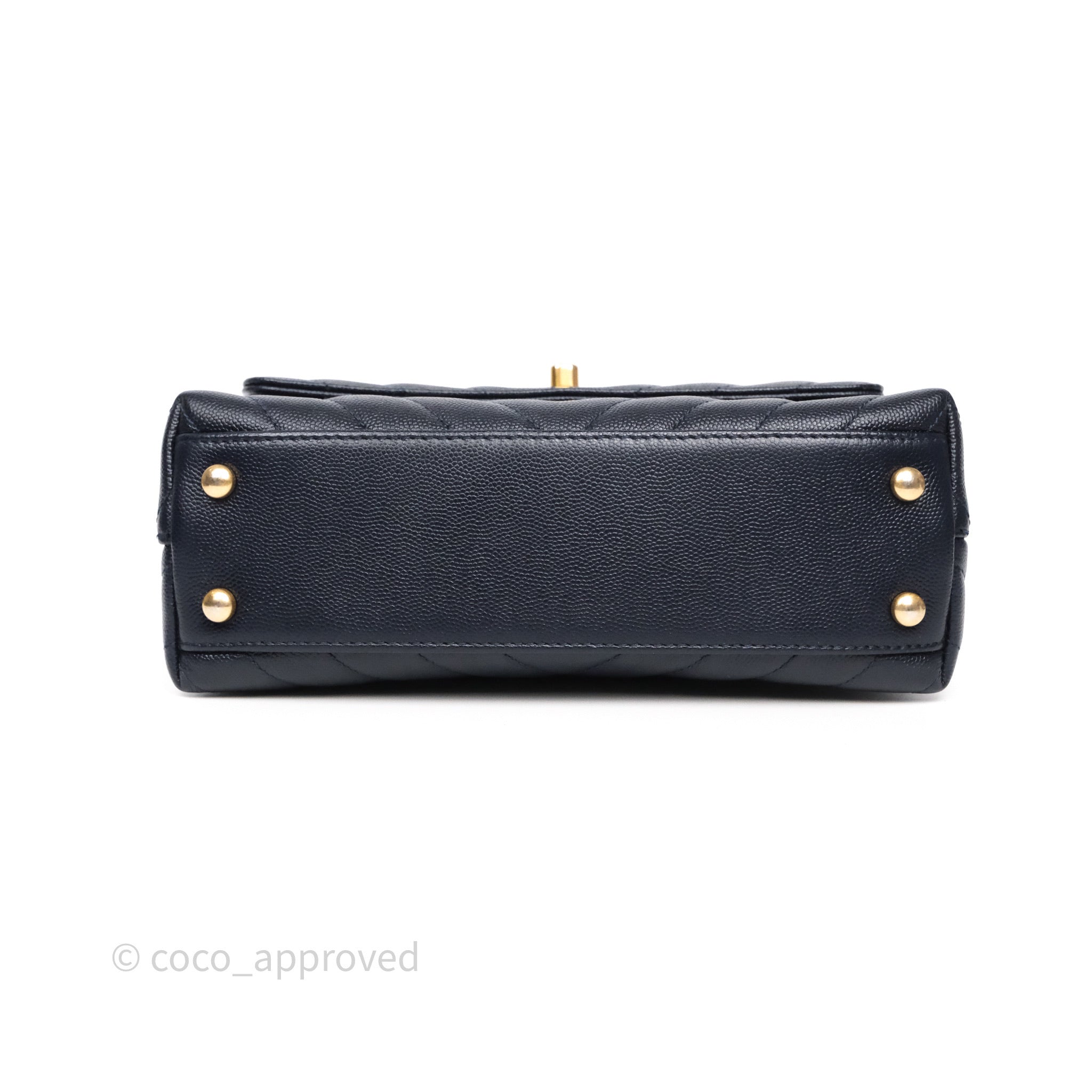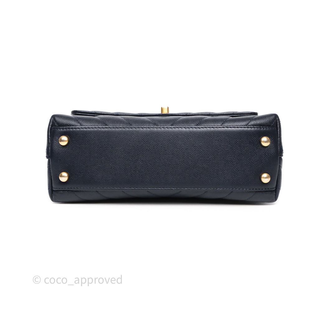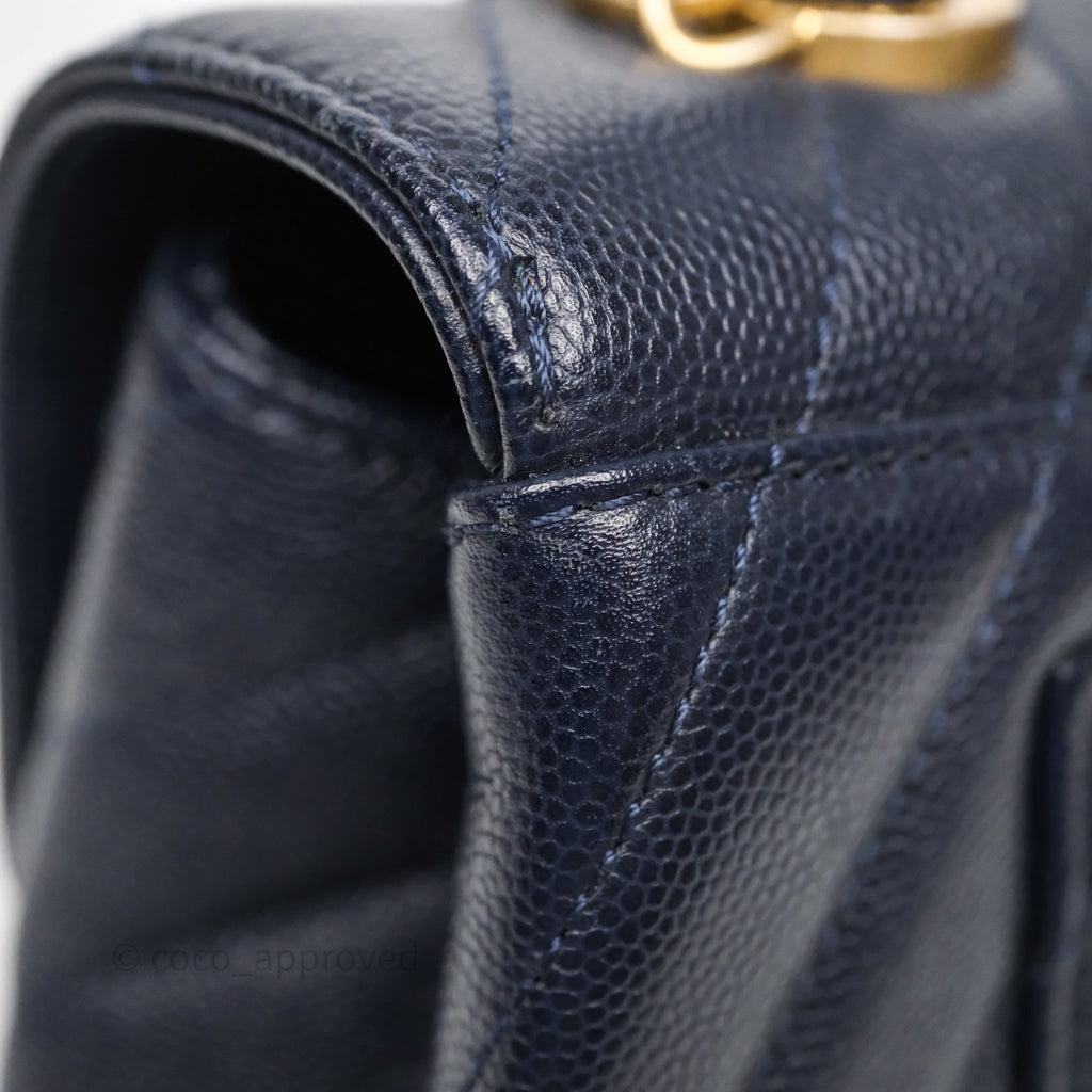 Chanel Small Coco Handle Chevron Navy Caviar Aged Gold Hardware Lizard Handle