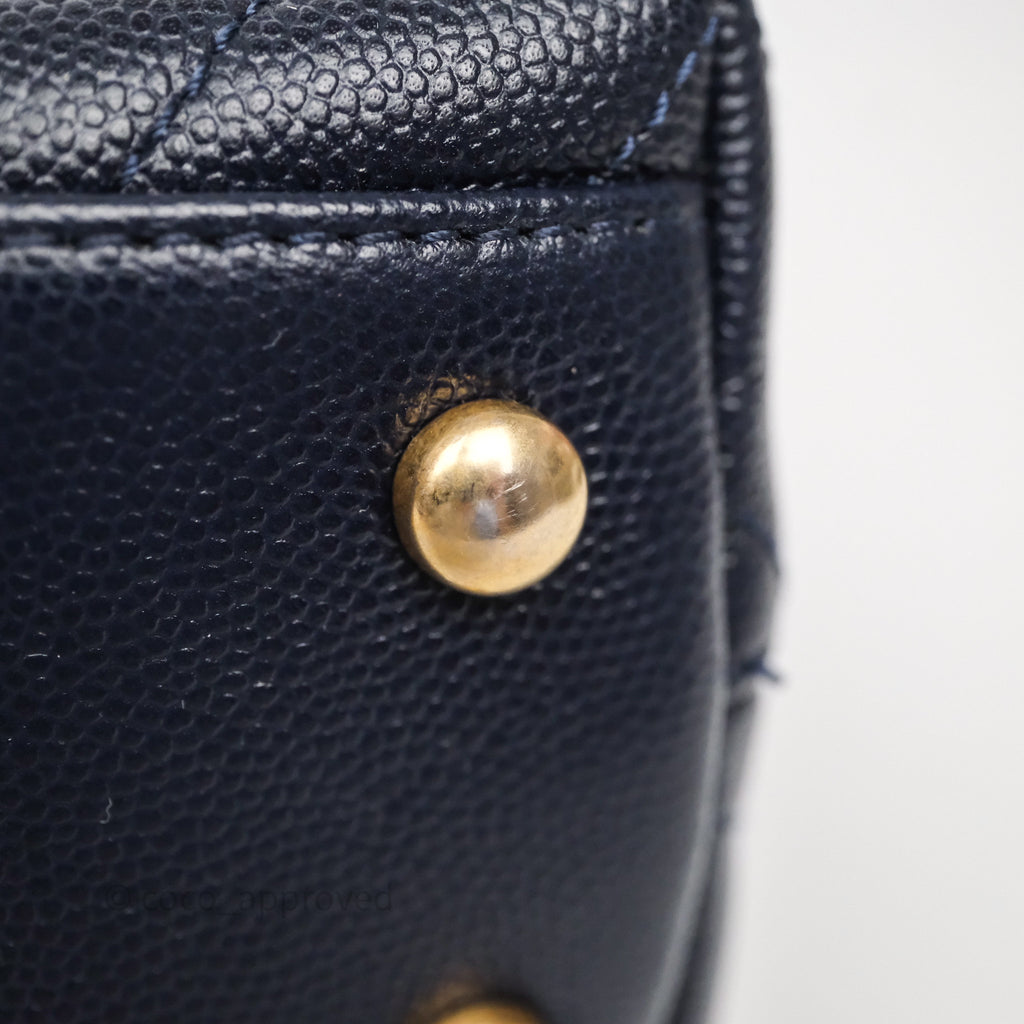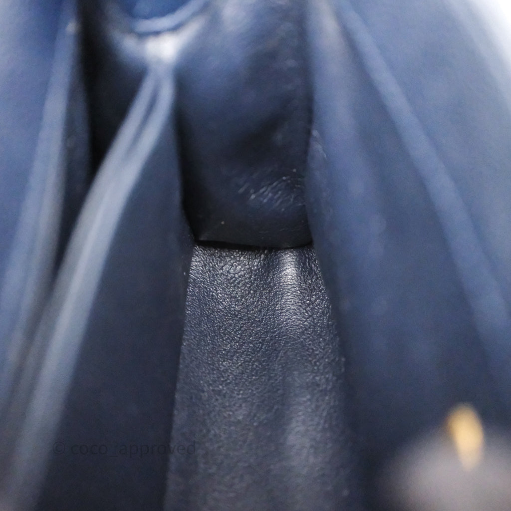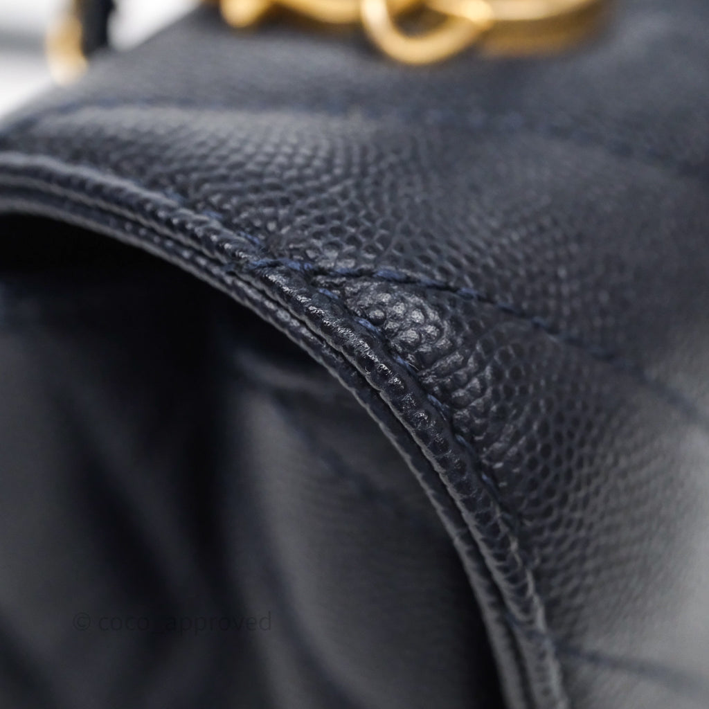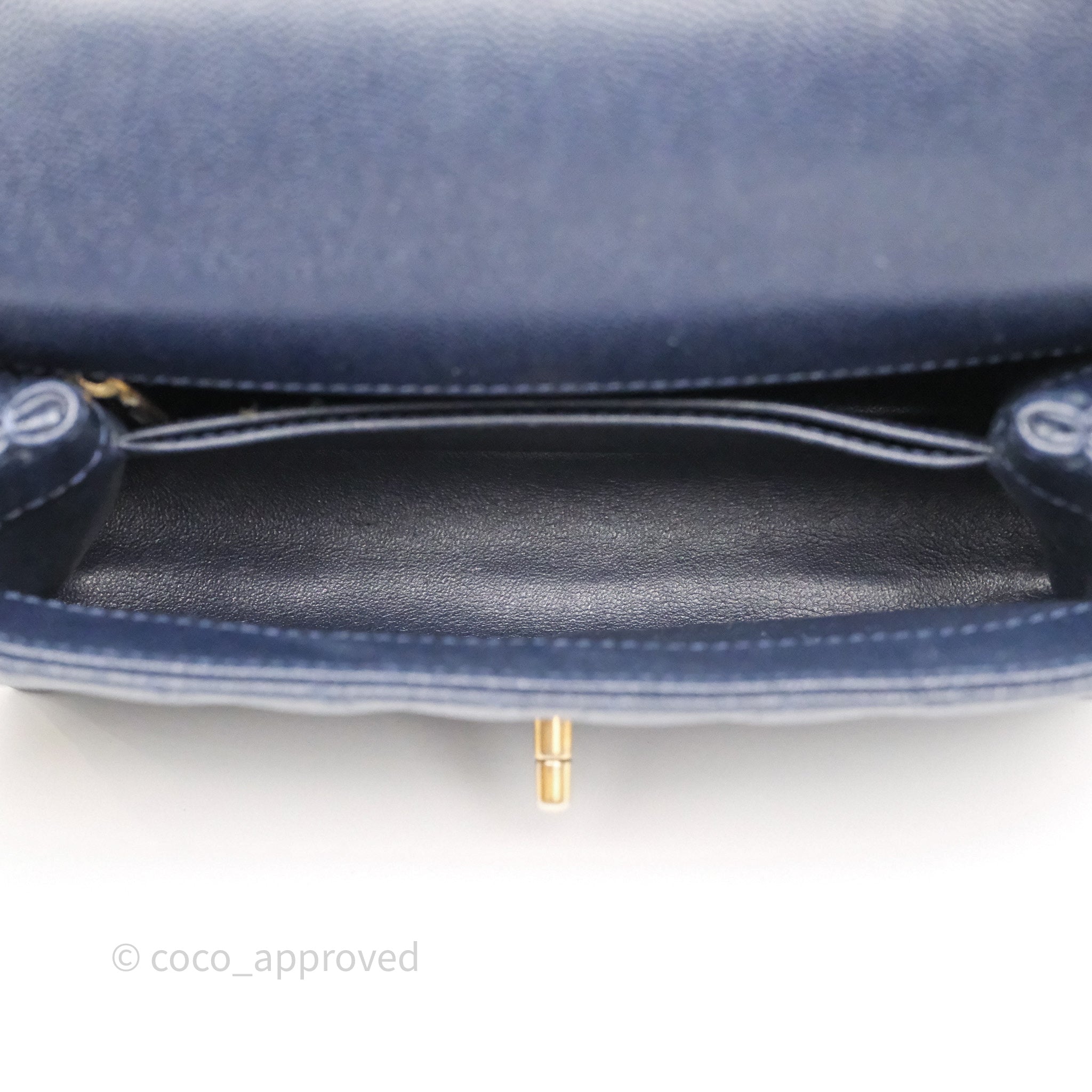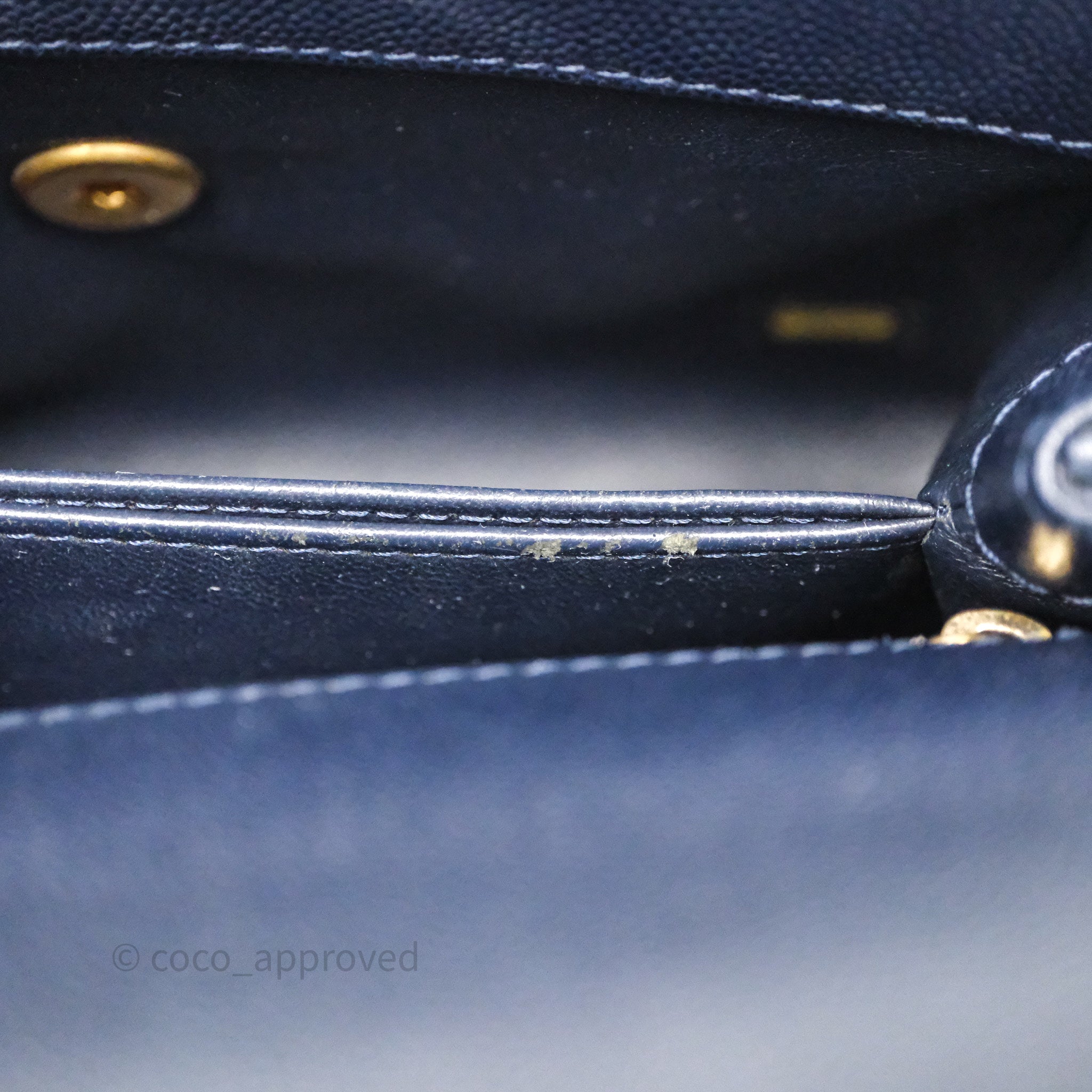 Chanel Small Coco Handle Chevron Navy Caviar Aged Gold Hardware Lizard Handle