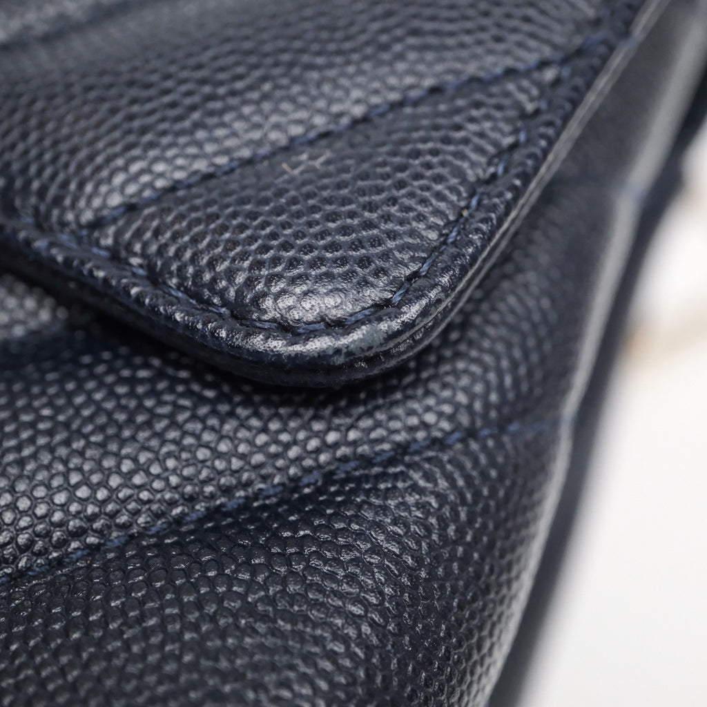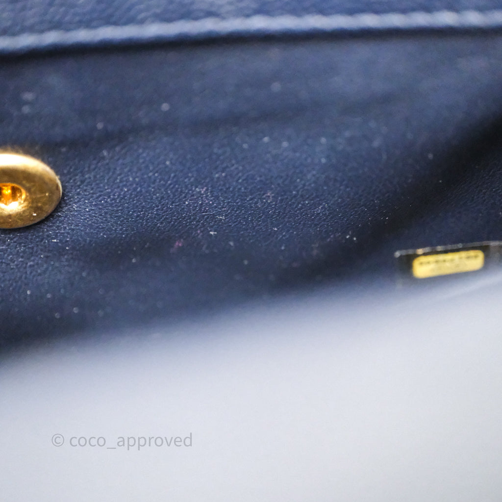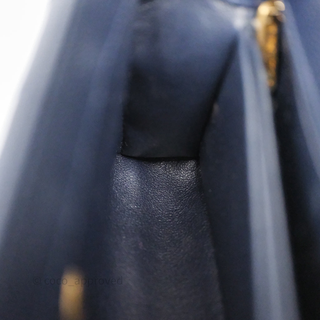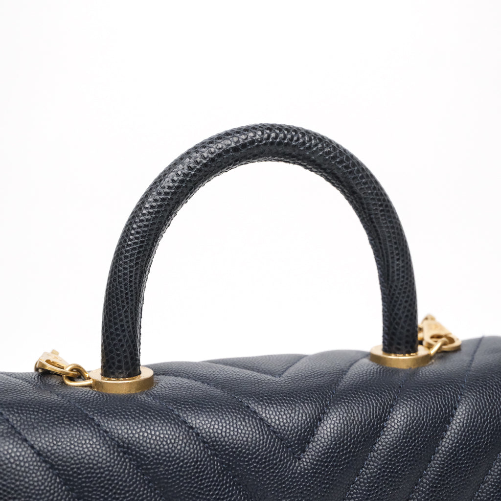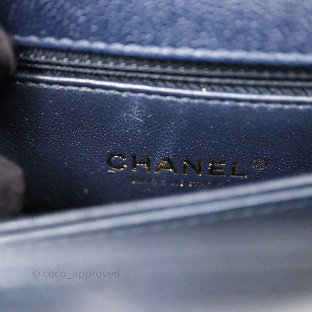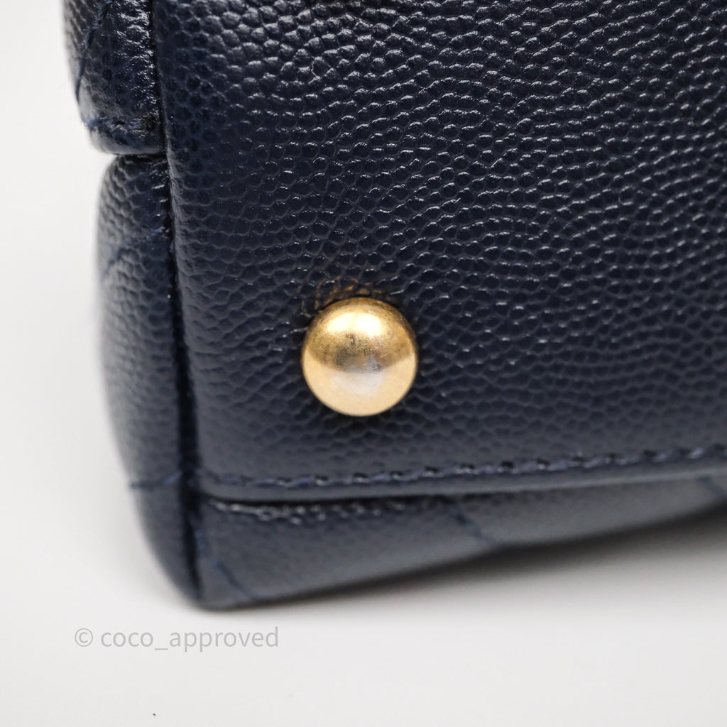 Chanel Small Coco Handle Chevron Navy Caviar Aged Gold Hardware Lizard Handle