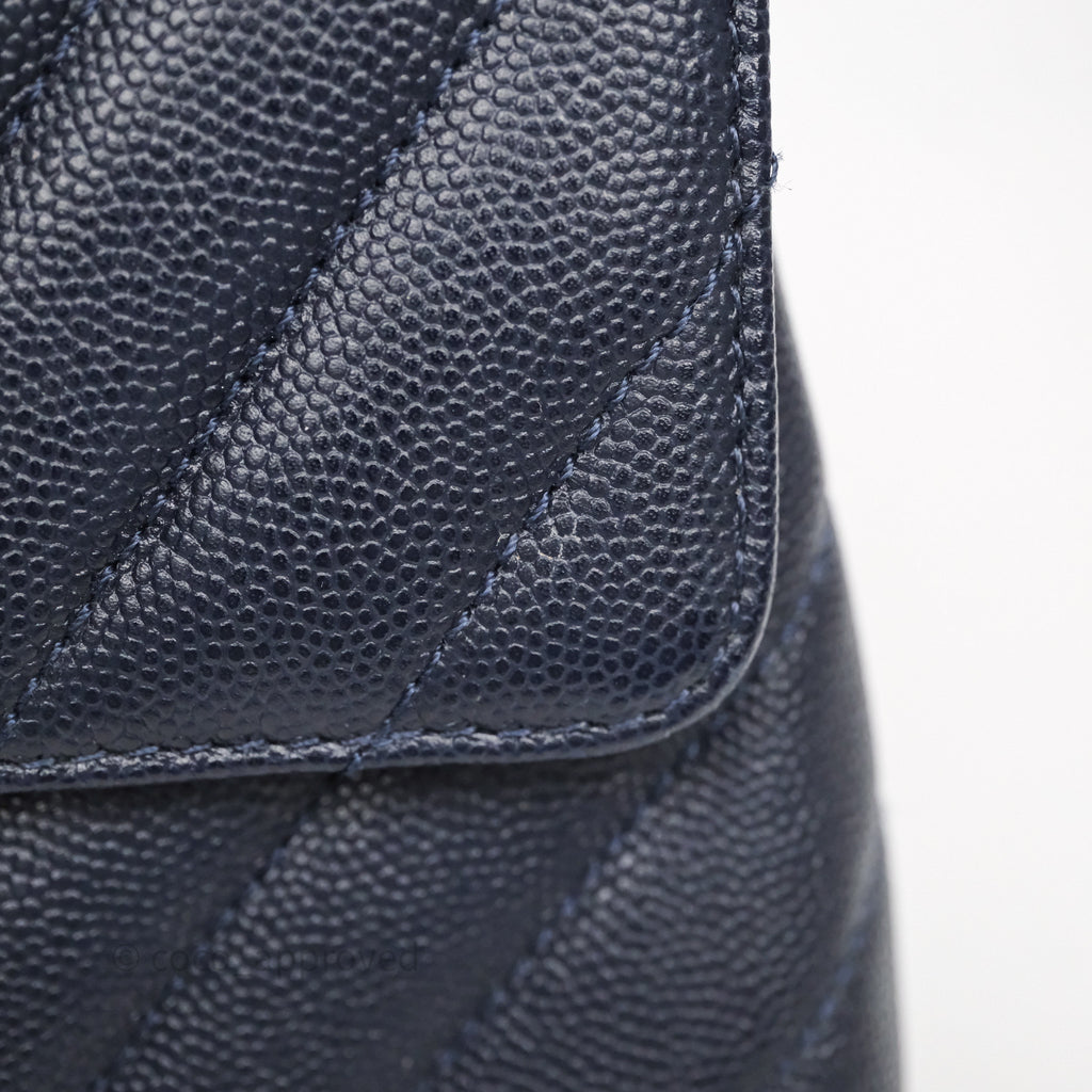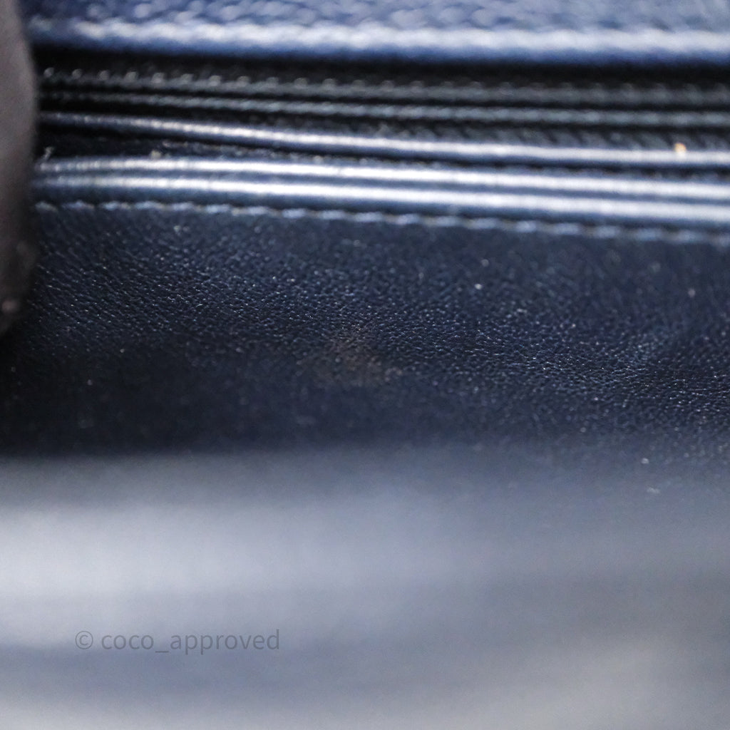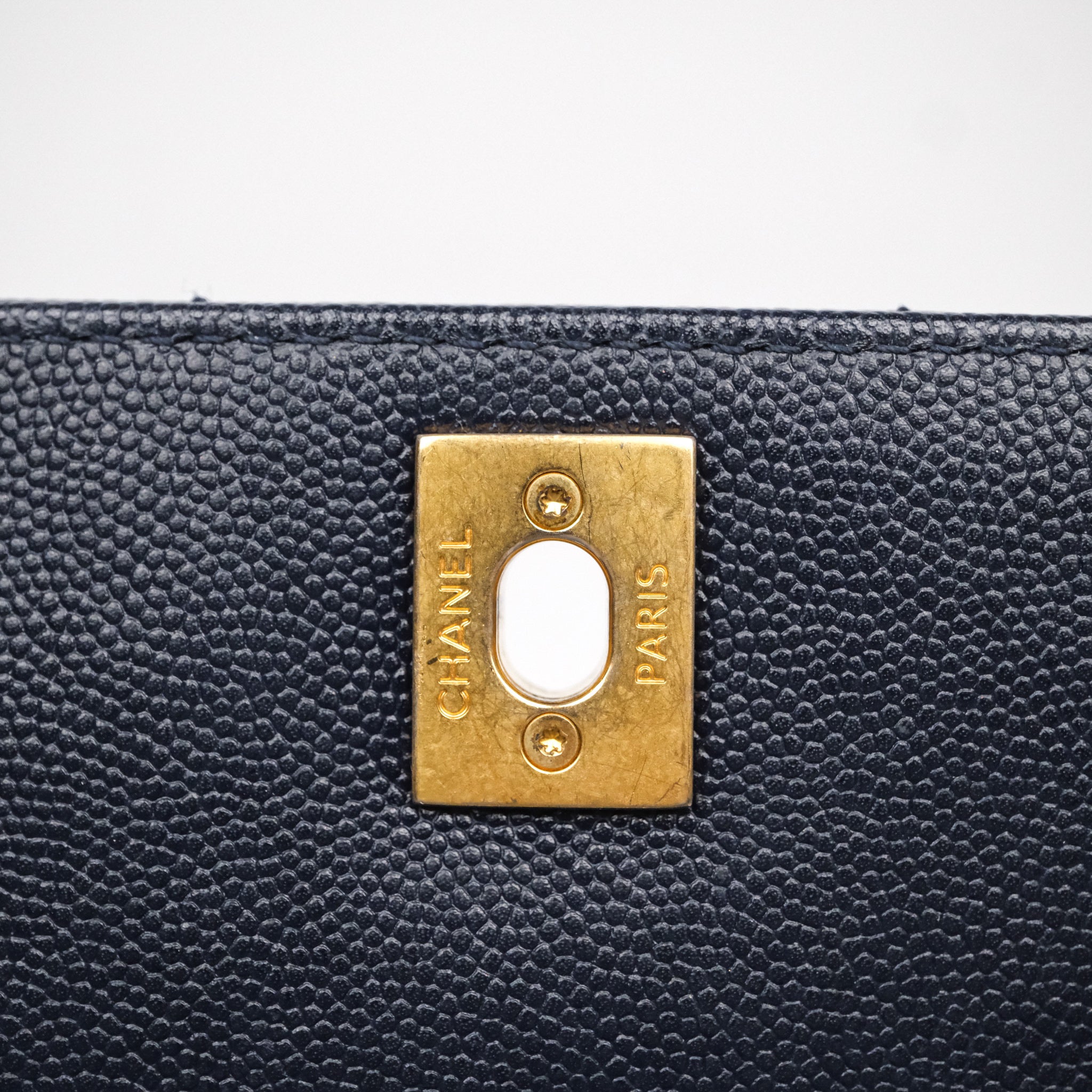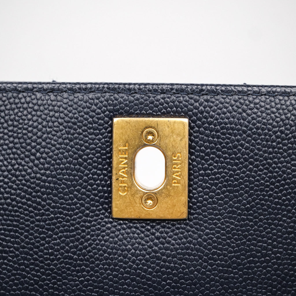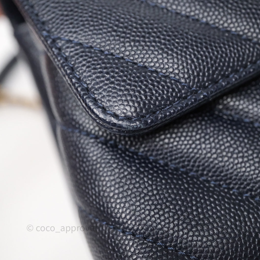 Chanel Small Coco Handle Chevron Navy Caviar Aged Gold Hardware Lizard Handle