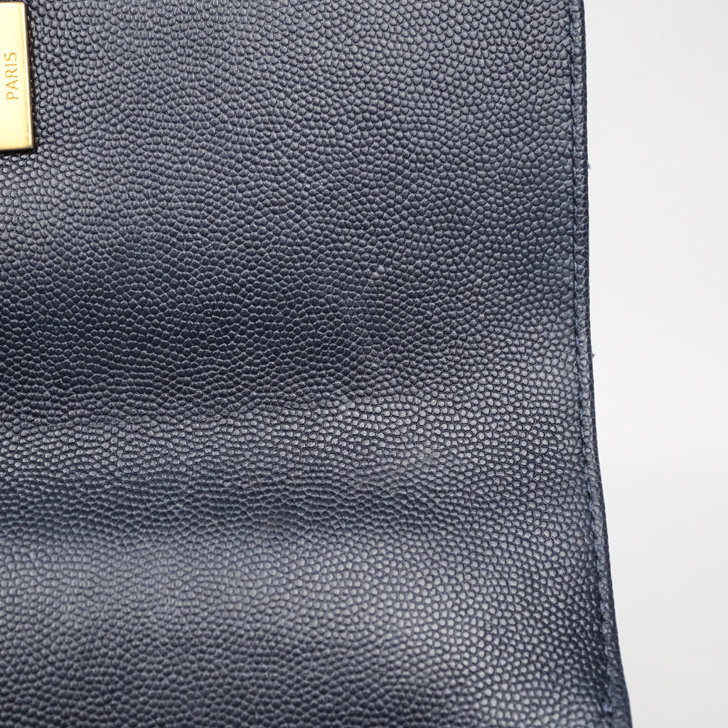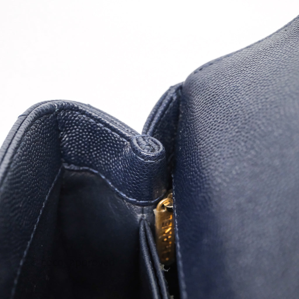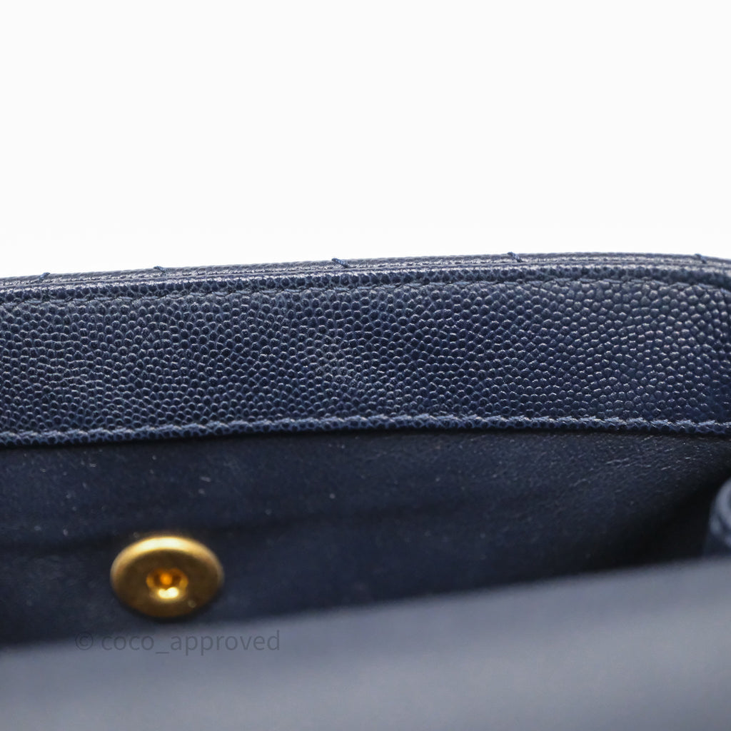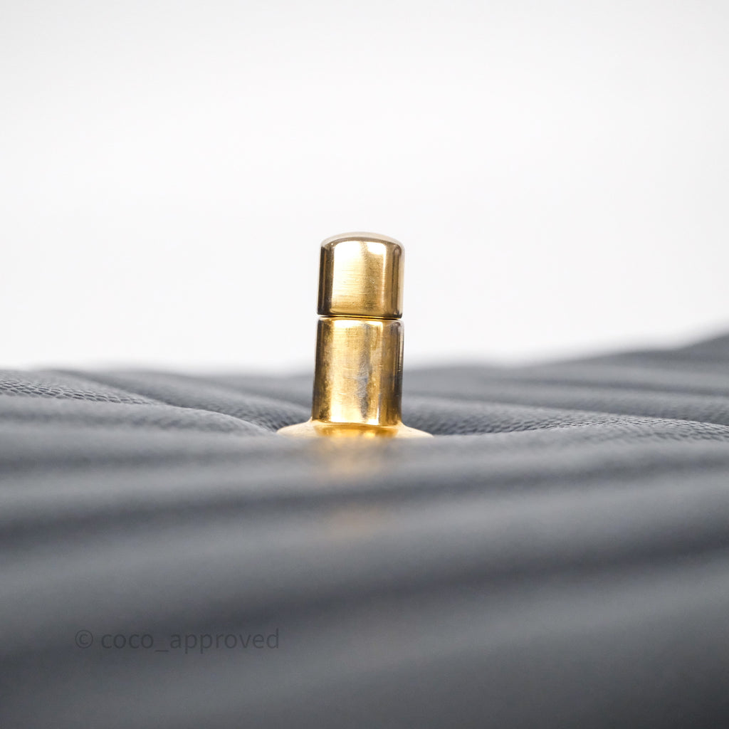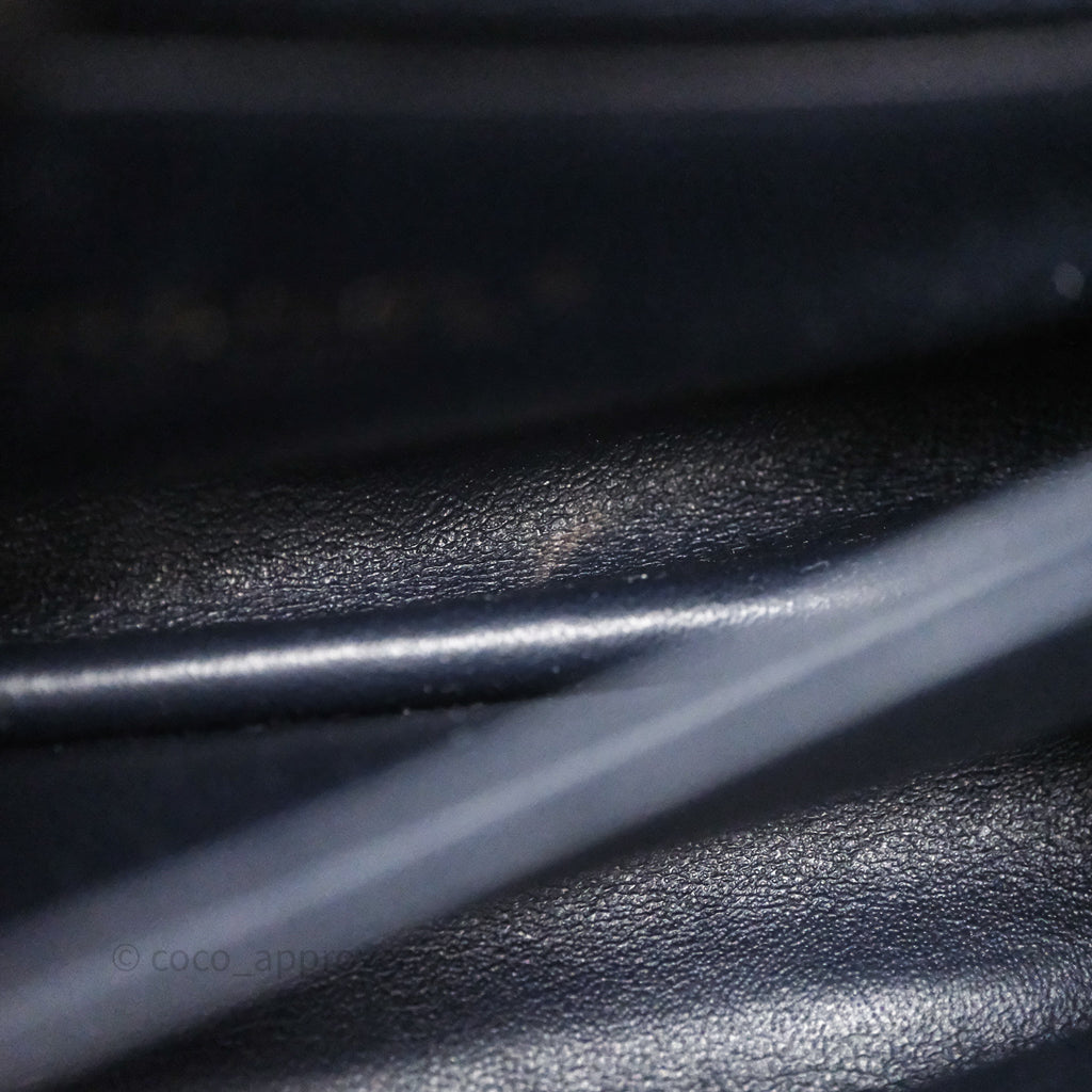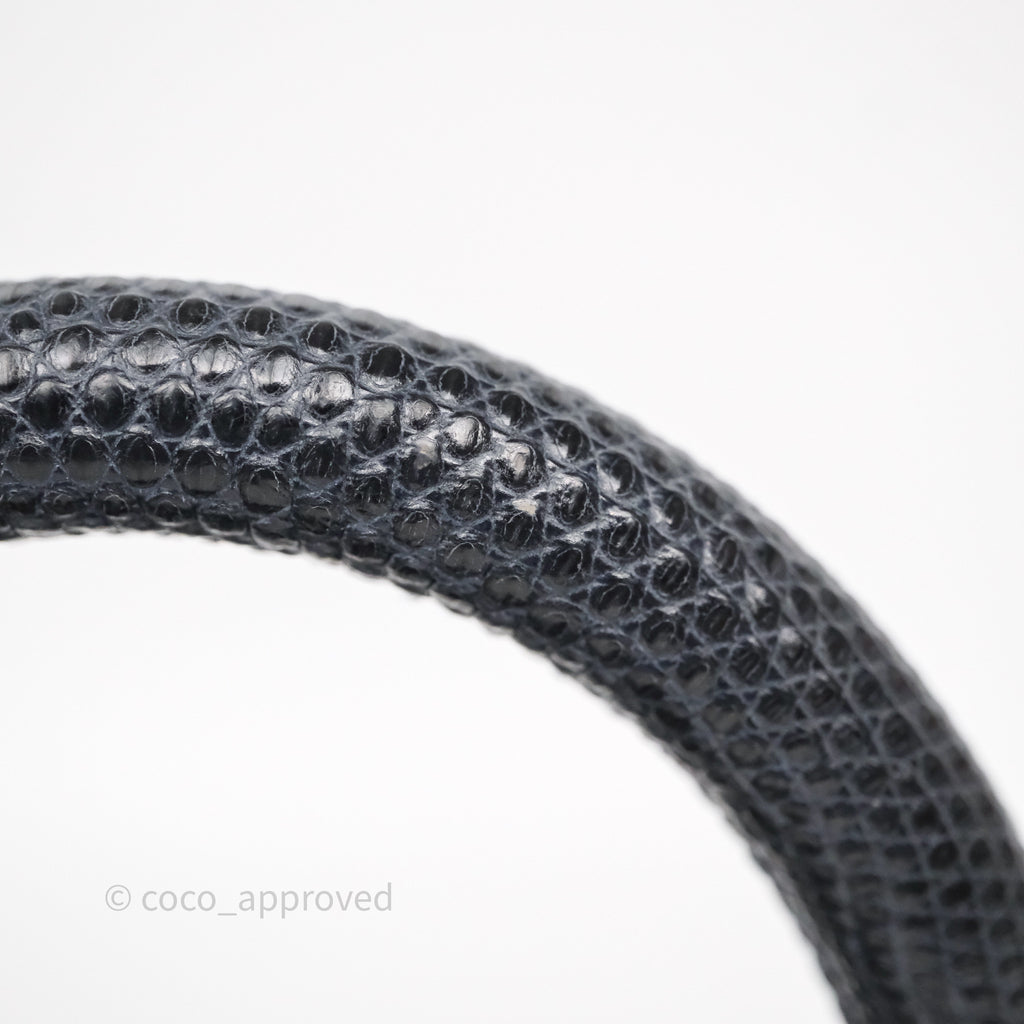 Chanel Small Coco Handle Chevron Navy Caviar Aged Gold Hardware Lizard Handle