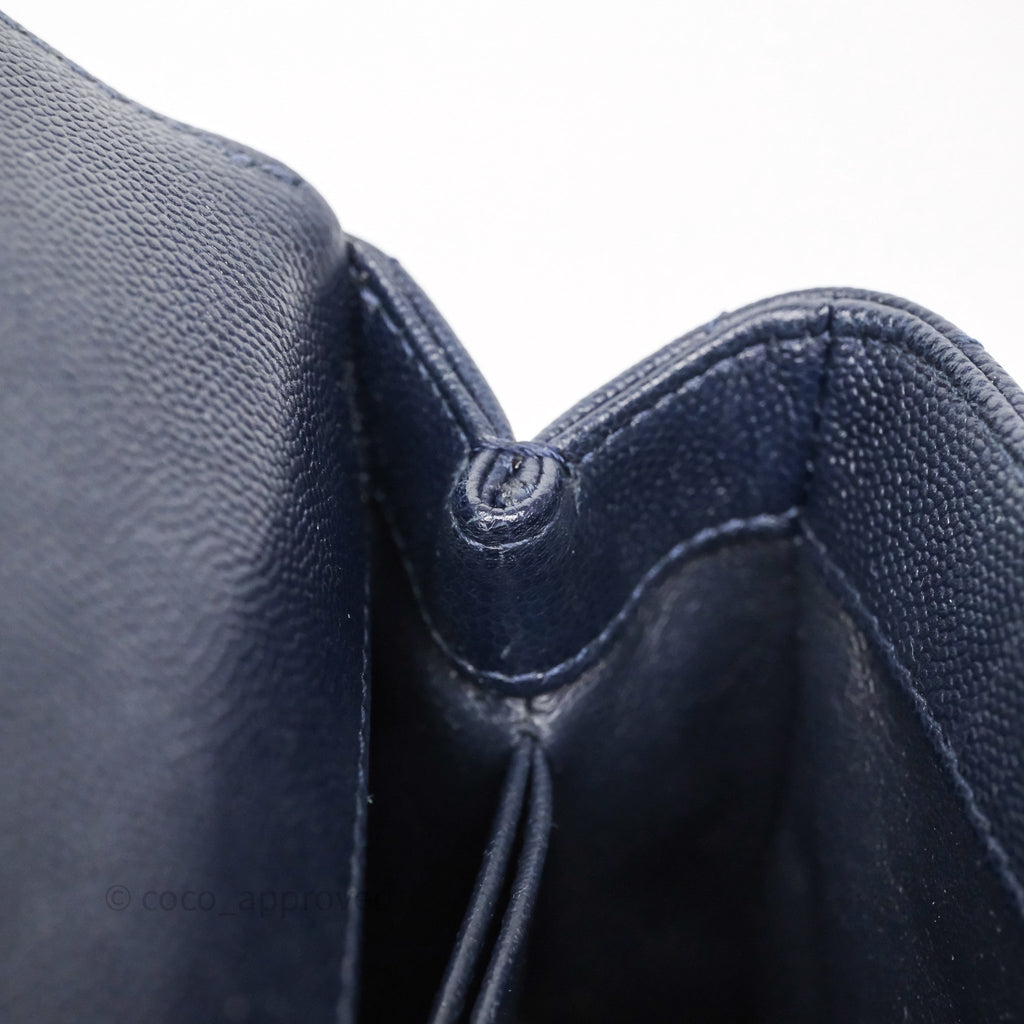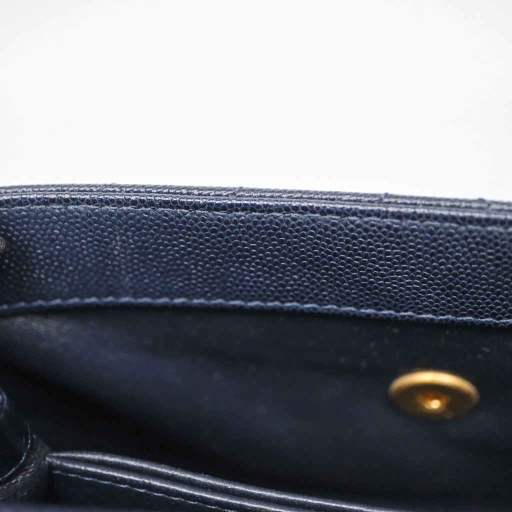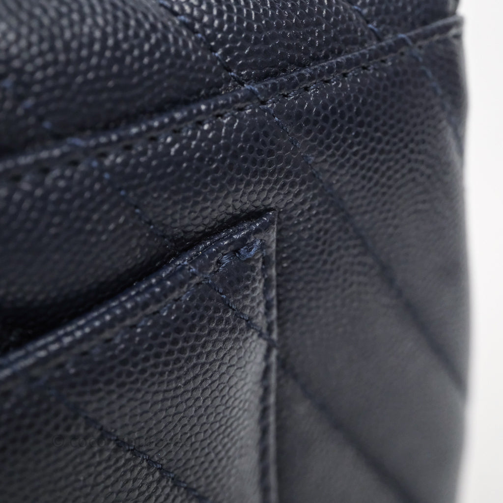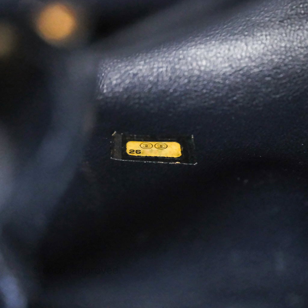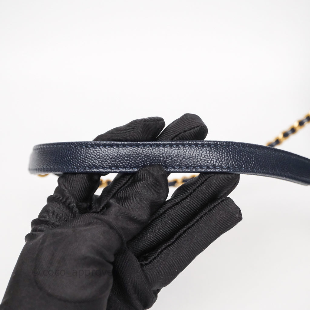 Chanel Small Coco Handle Chevron Navy Caviar Aged Gold Hardware Lizard Handle